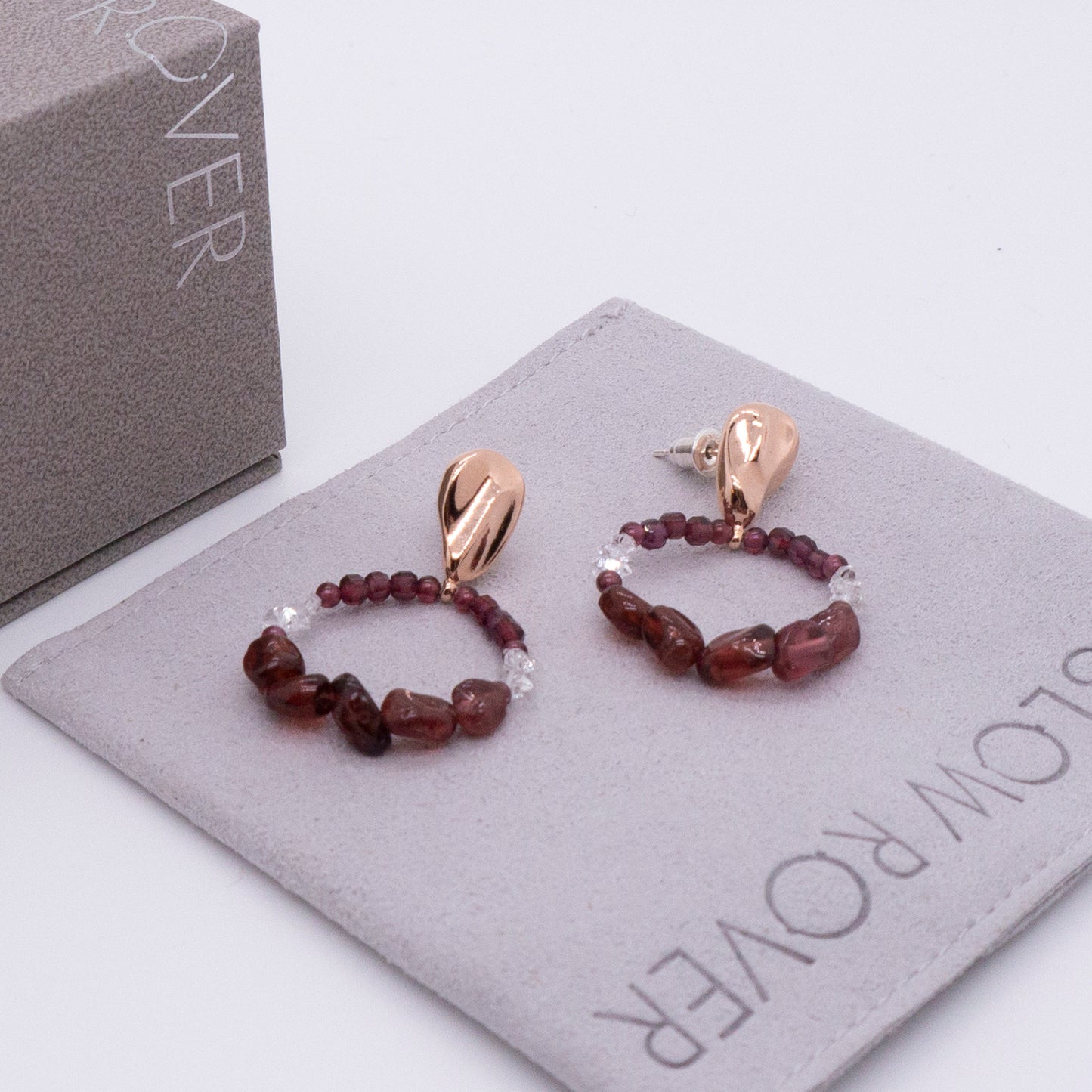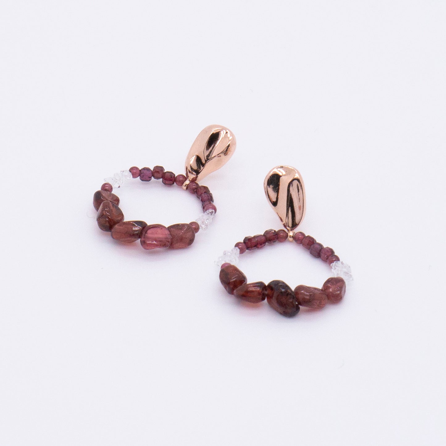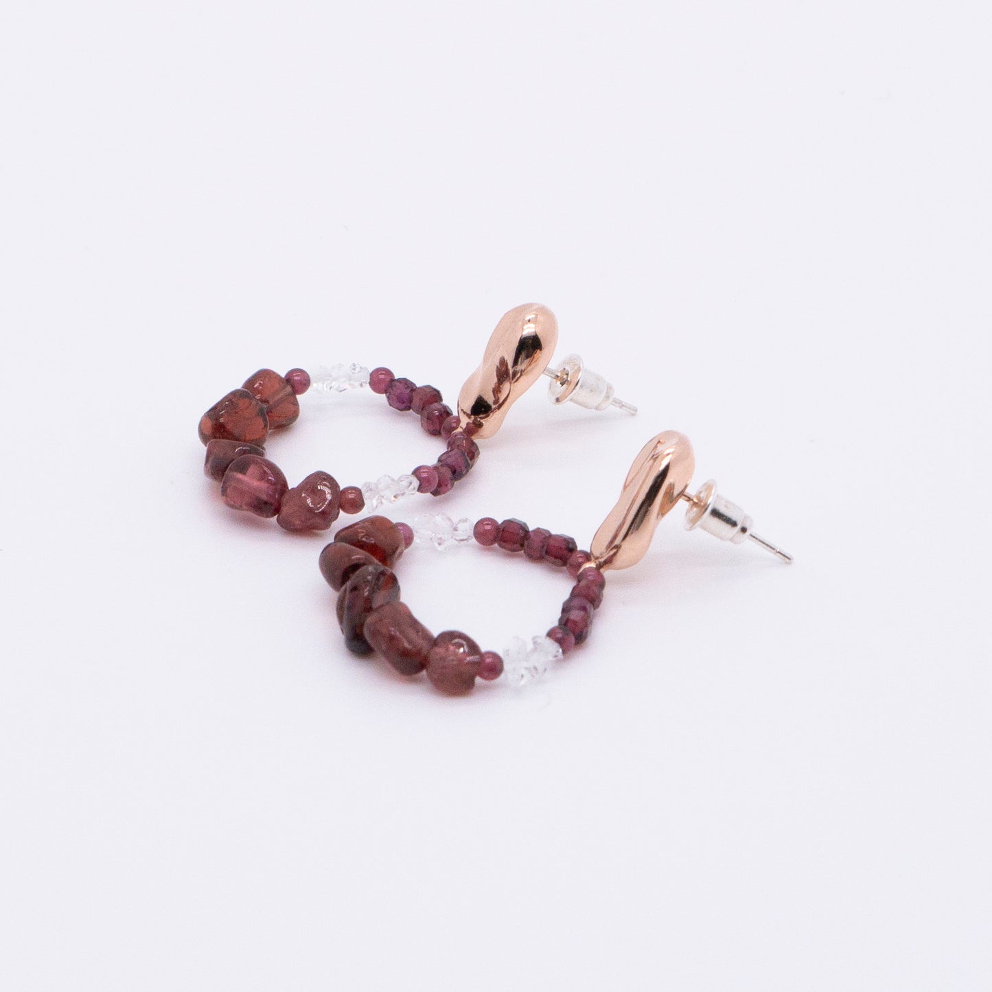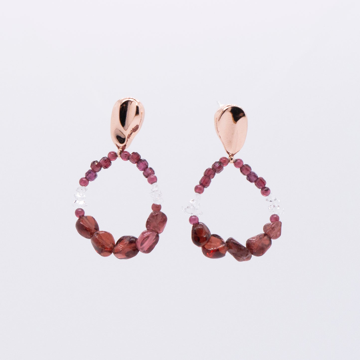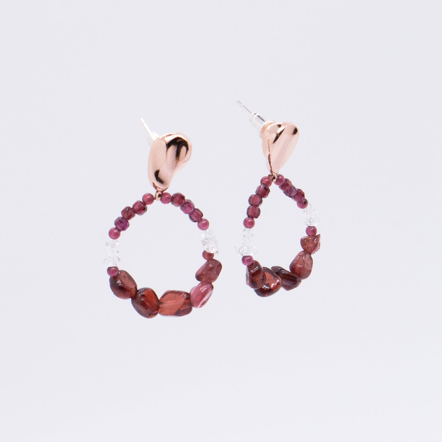 宇宙冰晶系列 - 胭紅薄霧 冰晶石榴石垂墜耳環-玫瑰金
