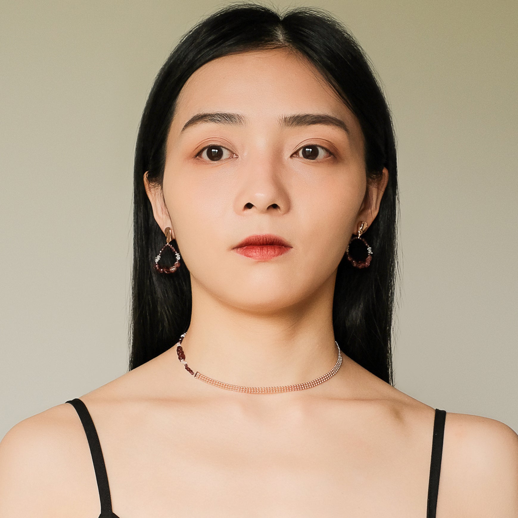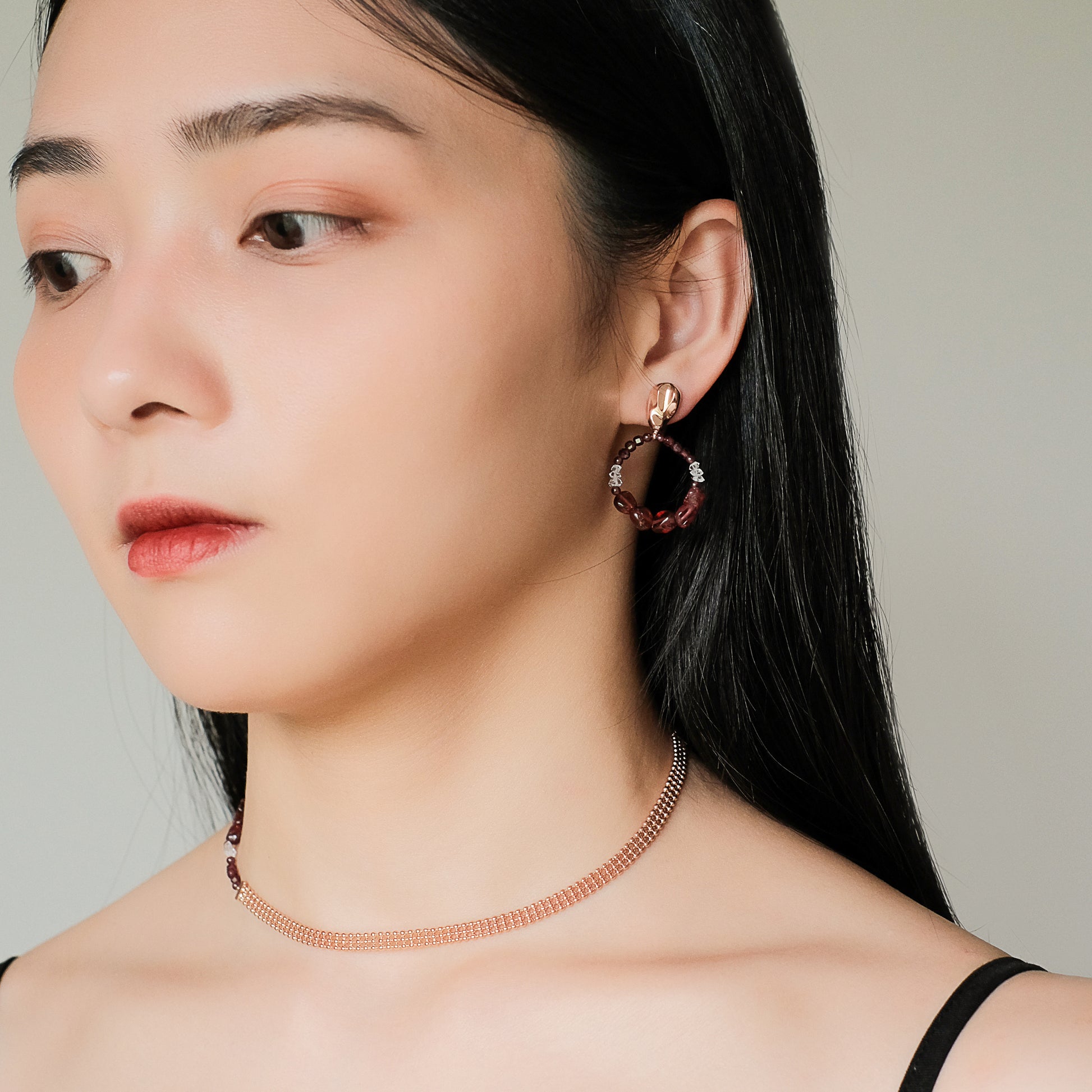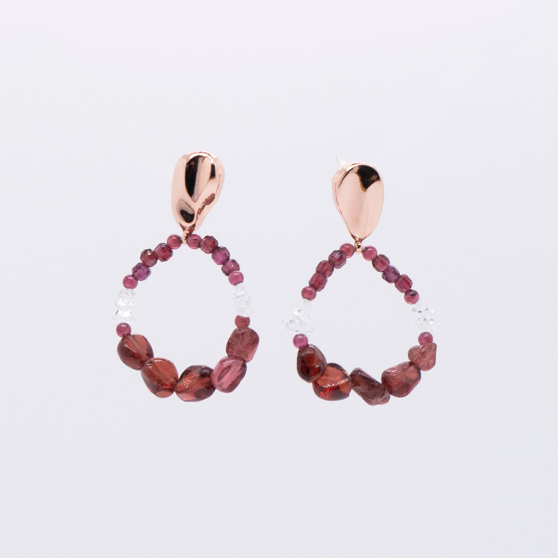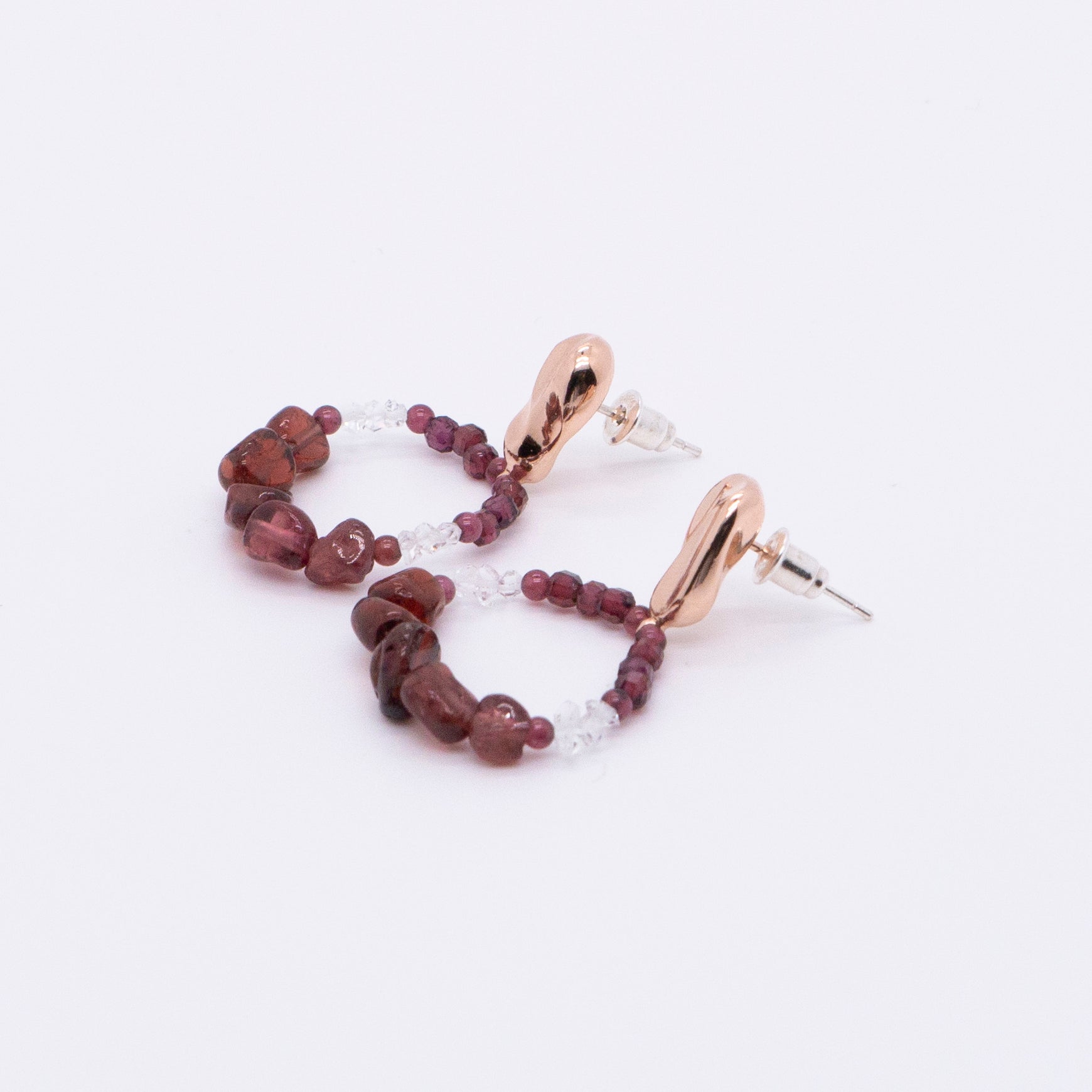 / 商品規格- 材質:黃銅厚鍍玫瑰金、純銀耳針與後扣、閃靈鑽(赫基蒙水晶)、天然石榴石