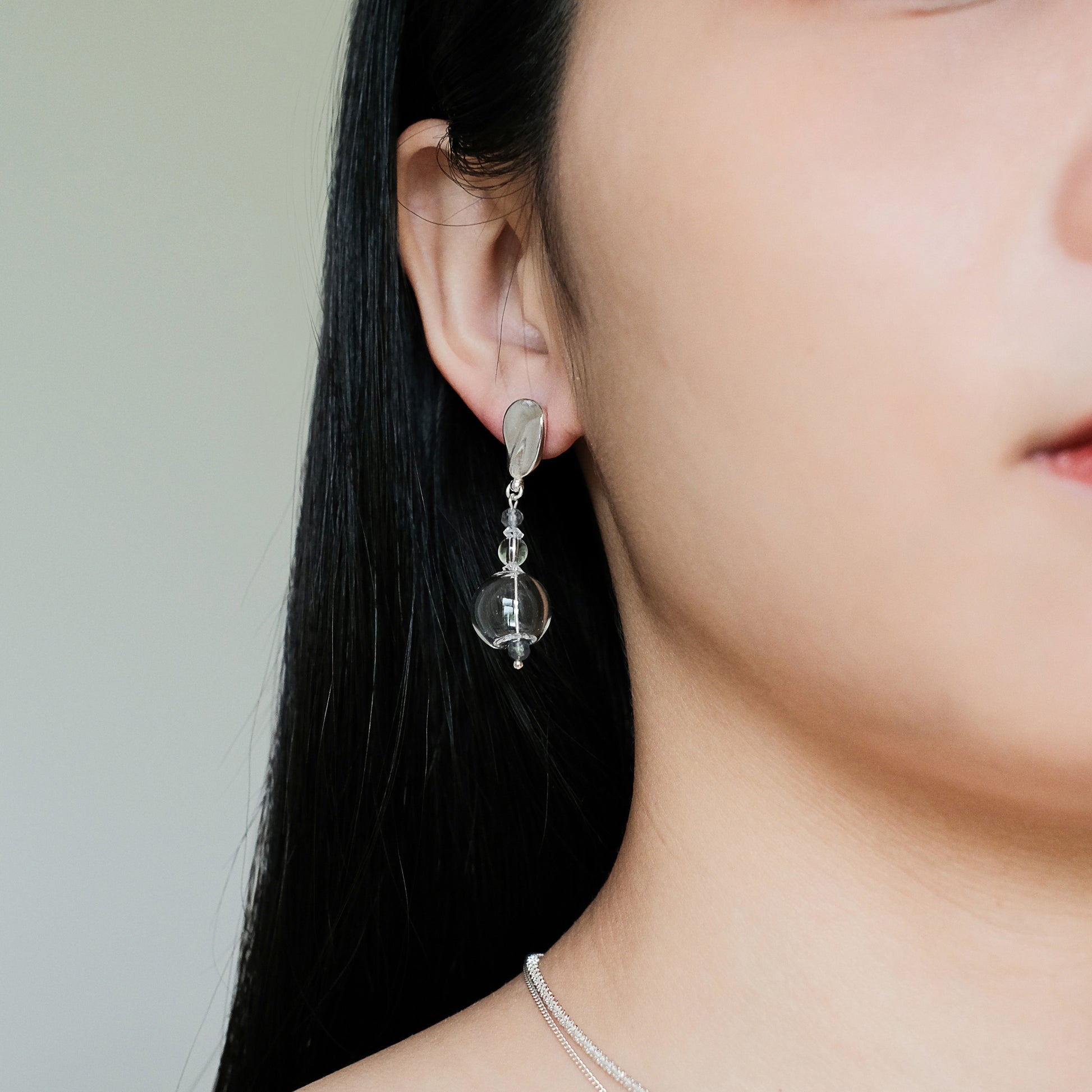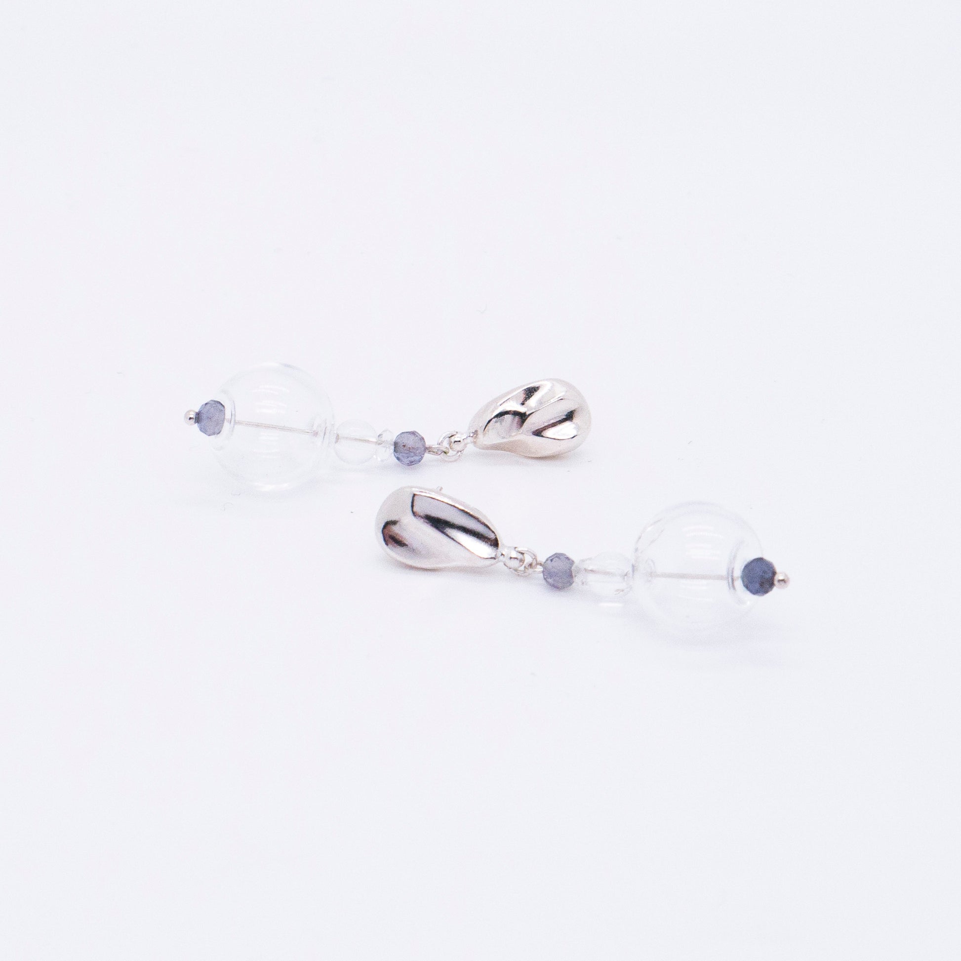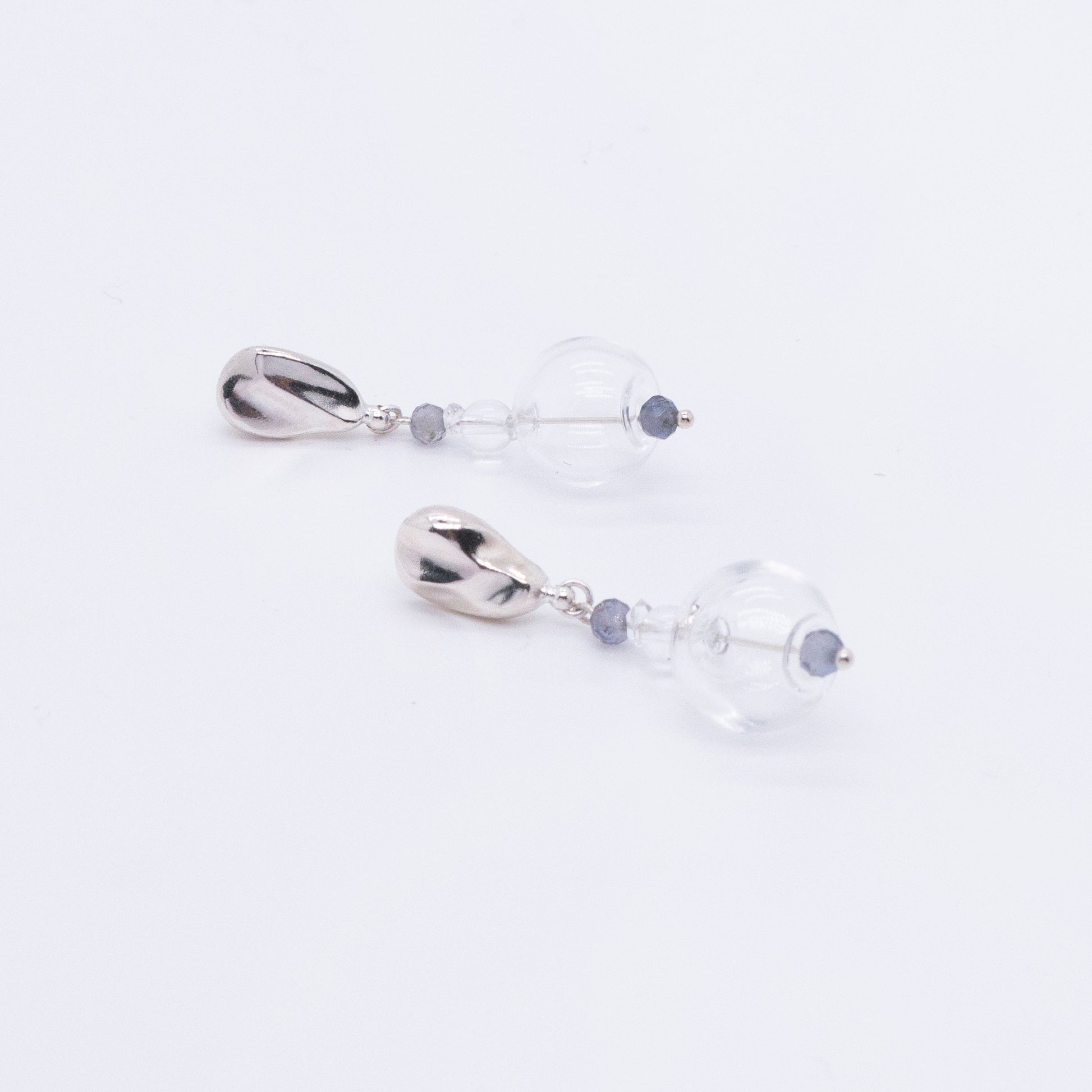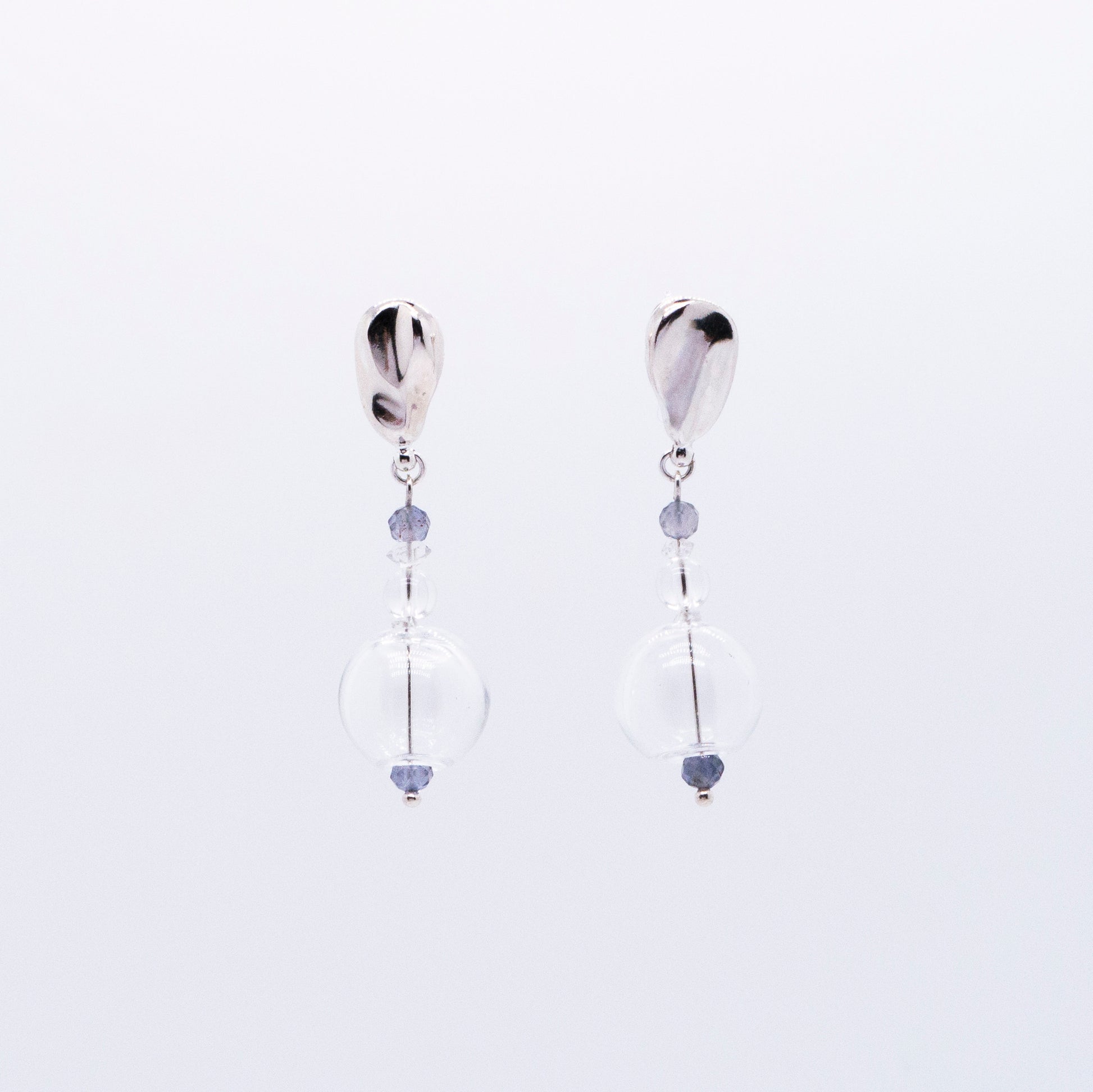 - 材質:925 純銀、閃靈鑽(赫基蒙水晶)、天然堇青石、手工琉璃氣泡
