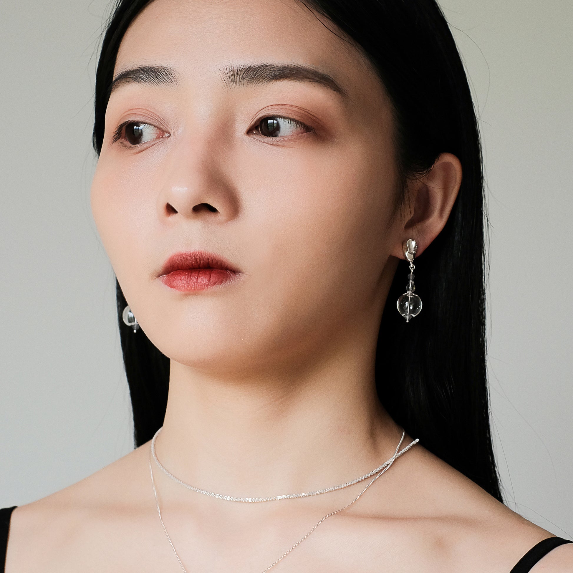 宇宙冰晶系列 - 胭紅薄霧 氣泡冰晶垂墜耳環 - 純銀