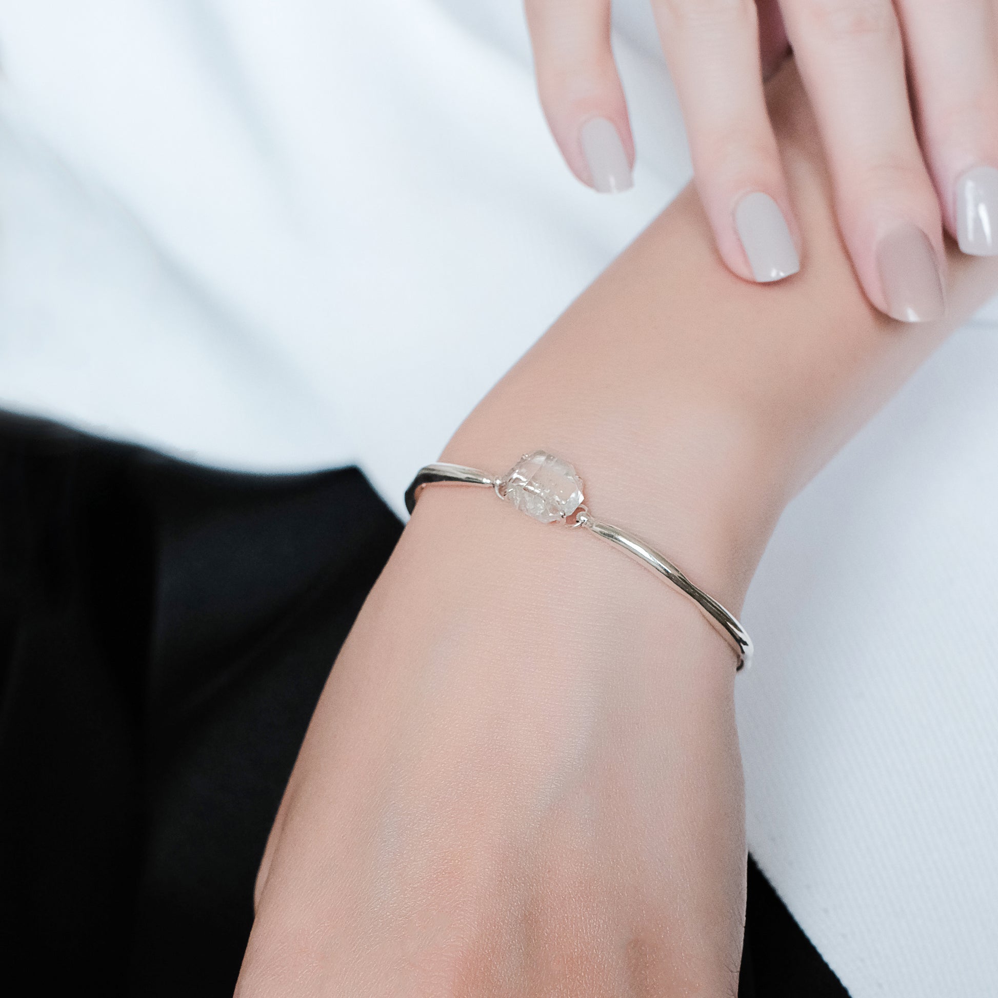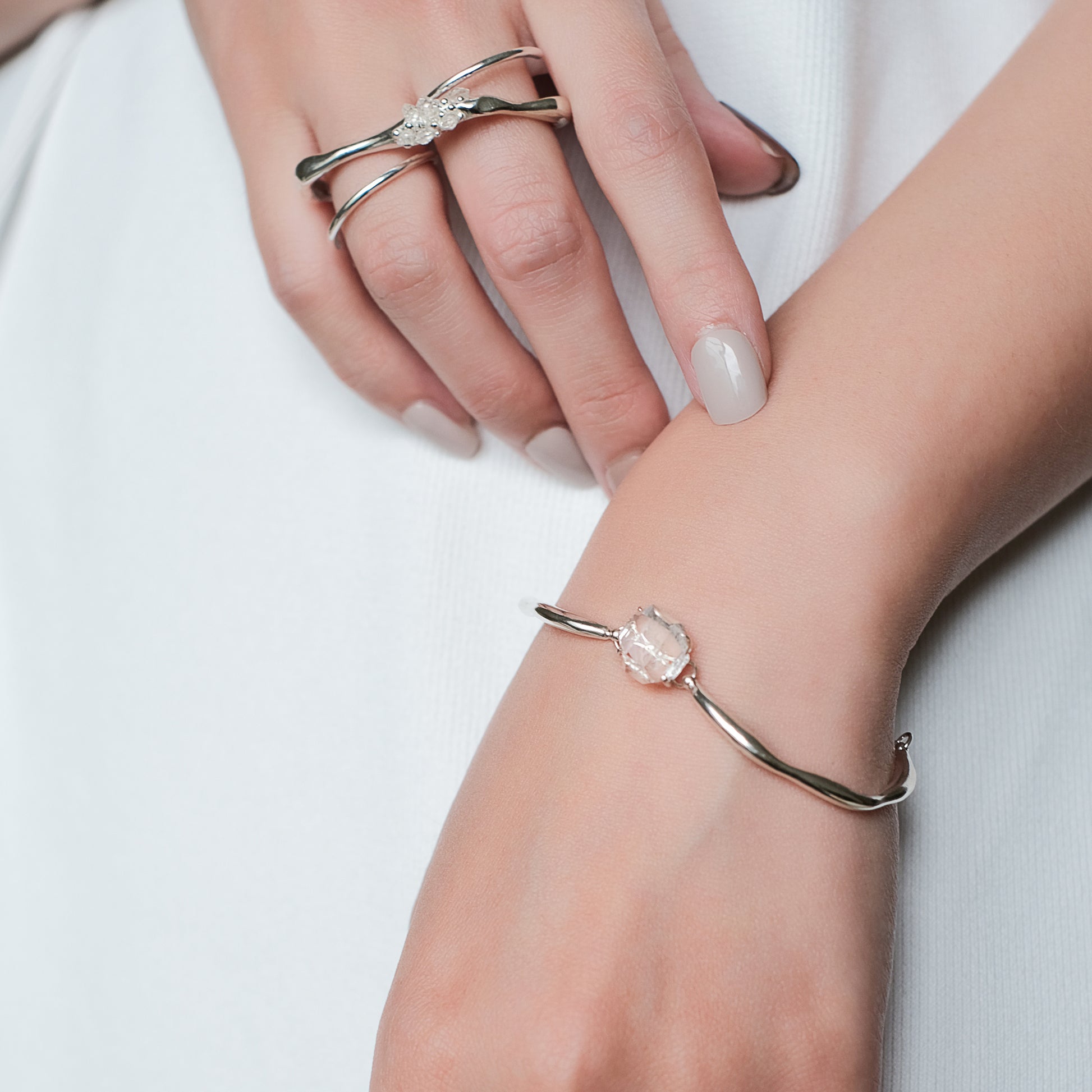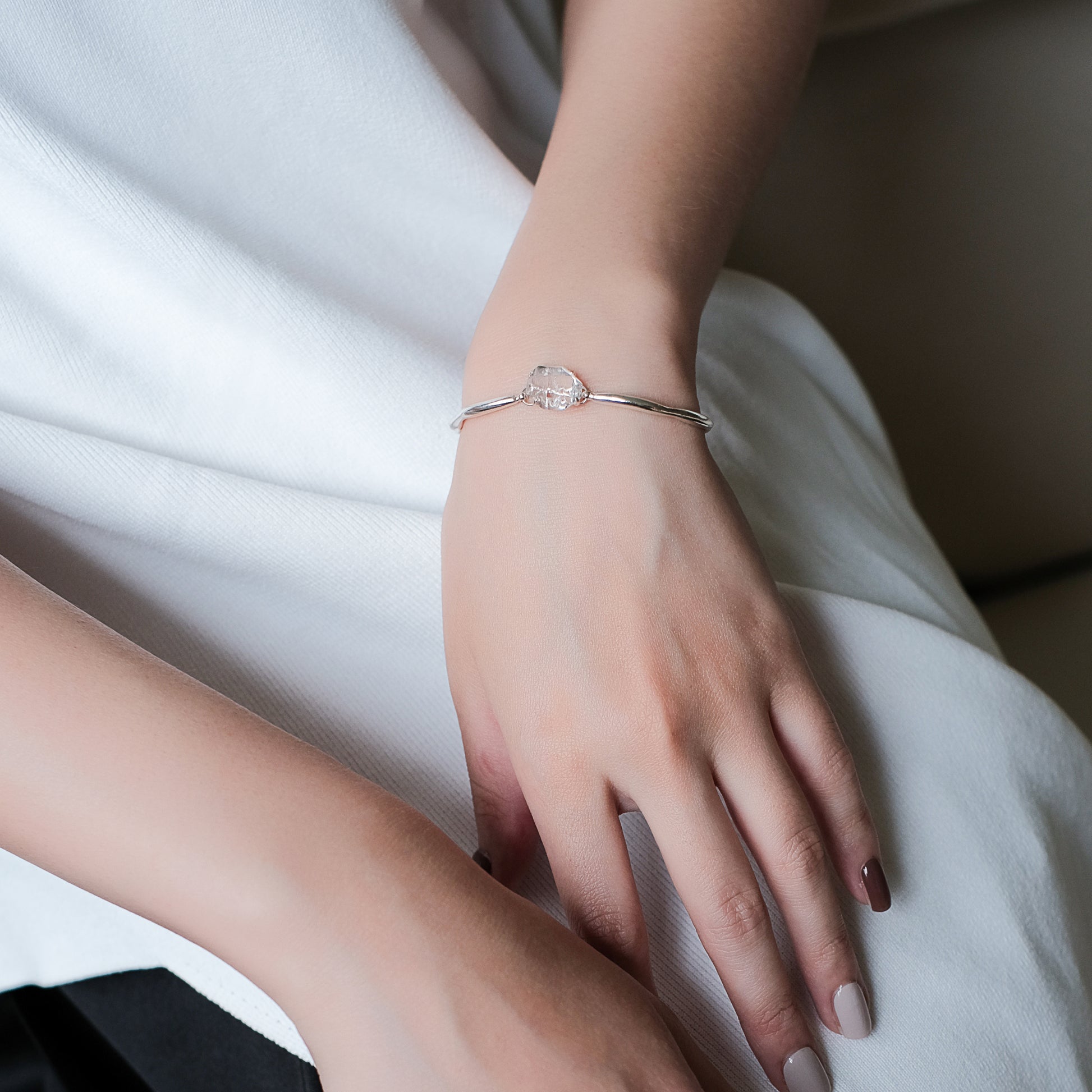 宇宙冰晶系列 - 胭紅薄霧 大冰晶手環鍊 - 純銀