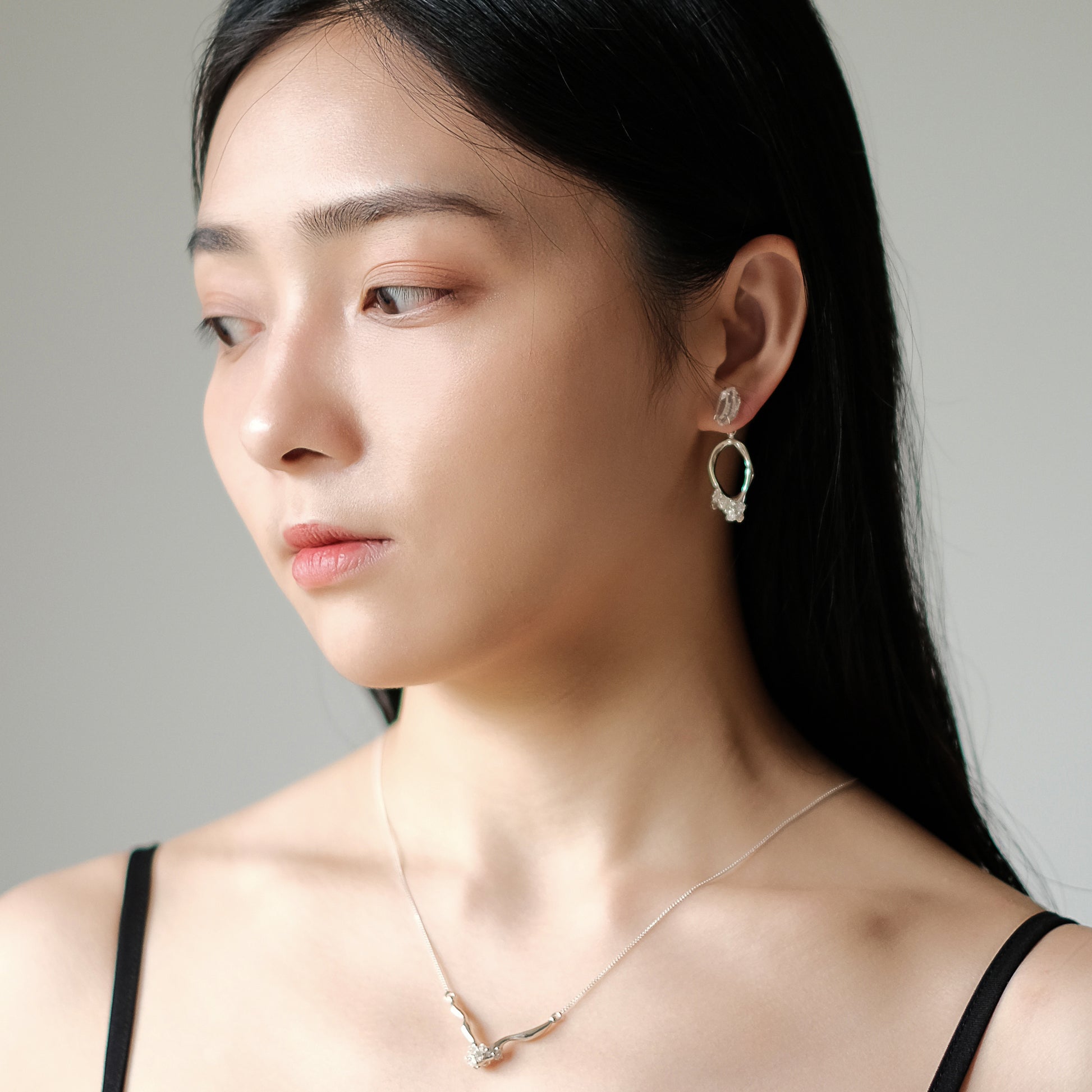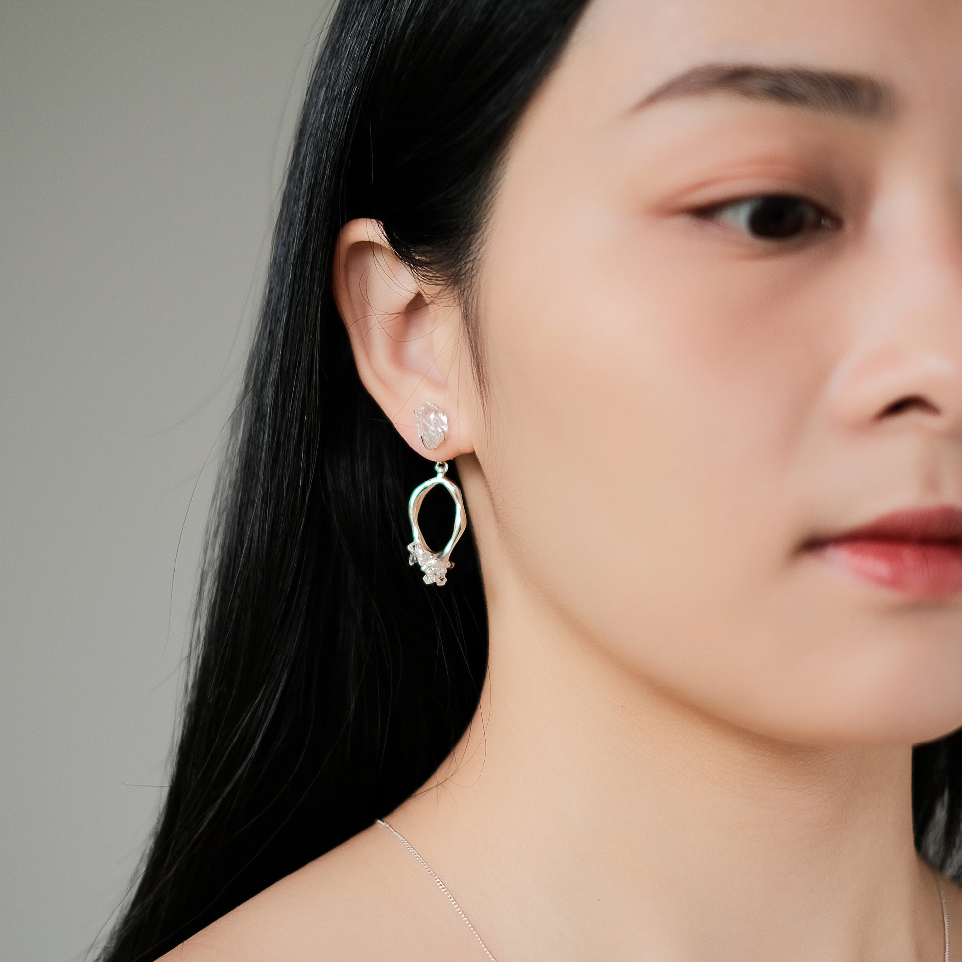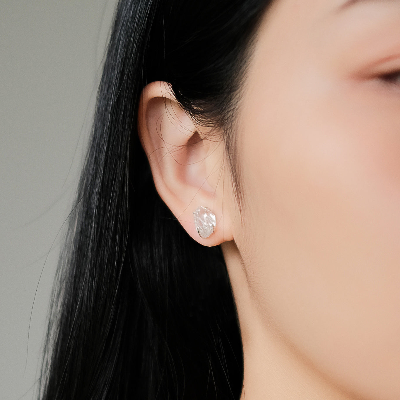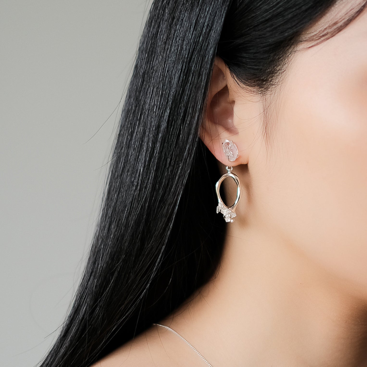 宇宙冰晶系列 - 胭紅薄霧 大冰晶兩用耳環 - 純銀