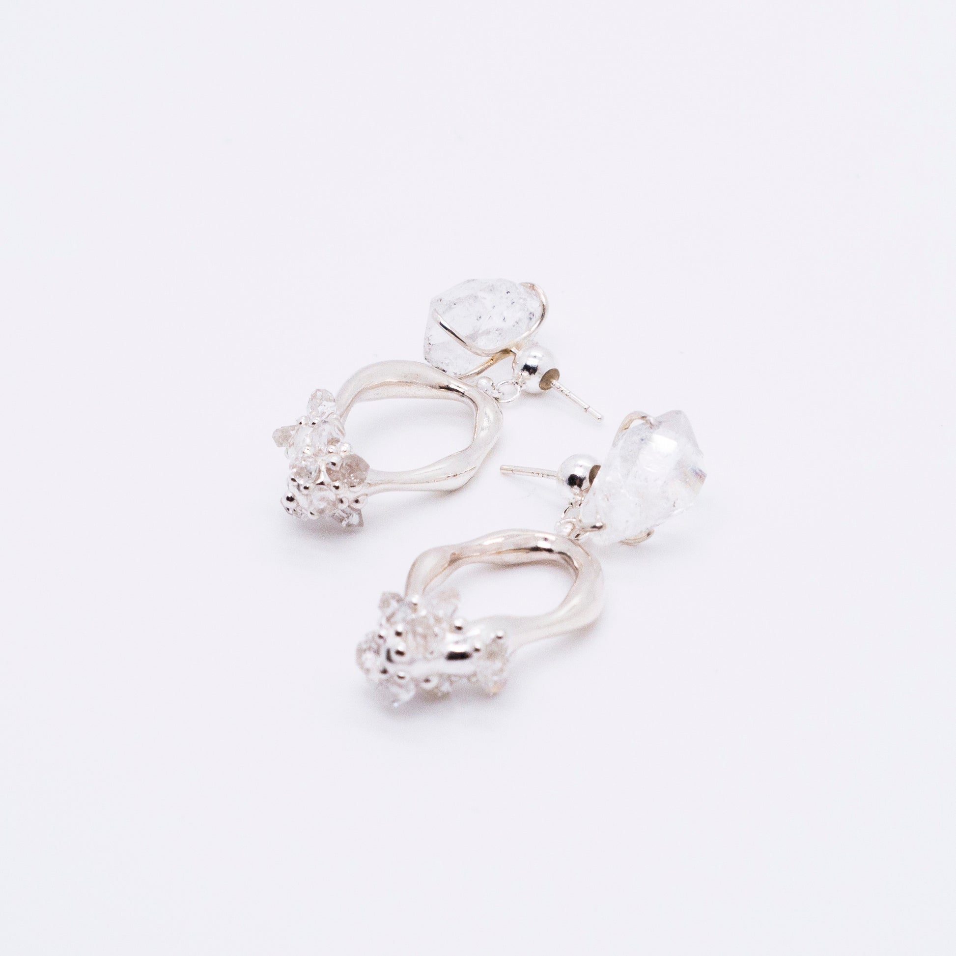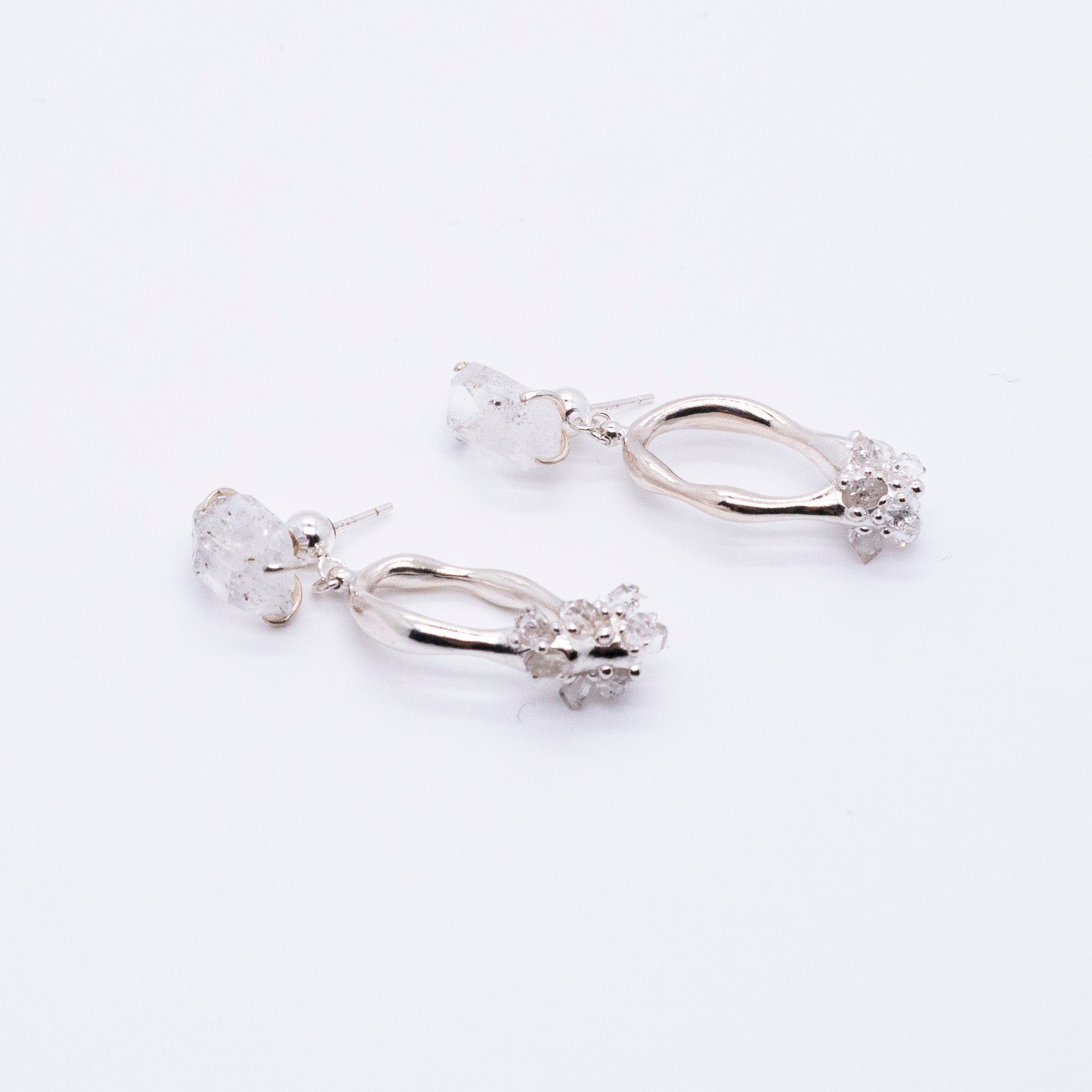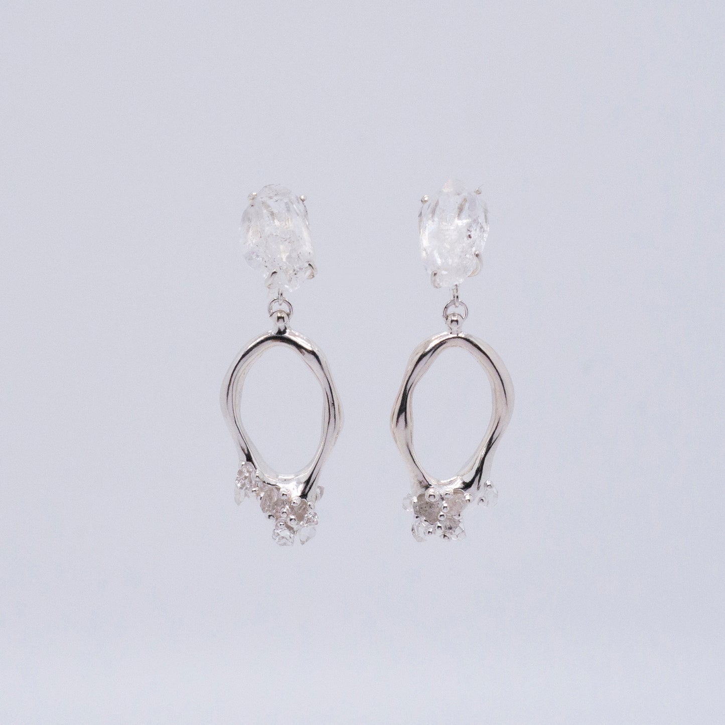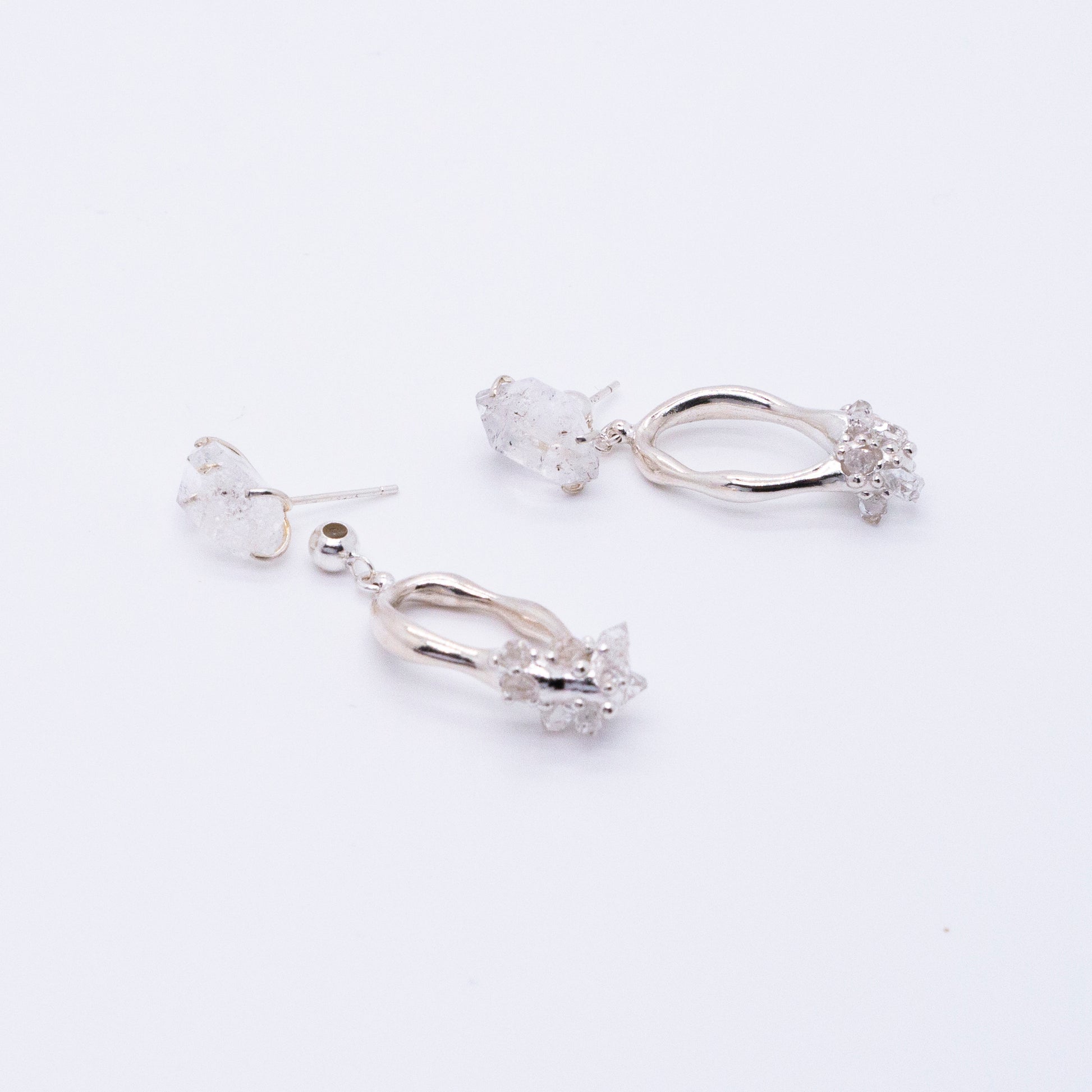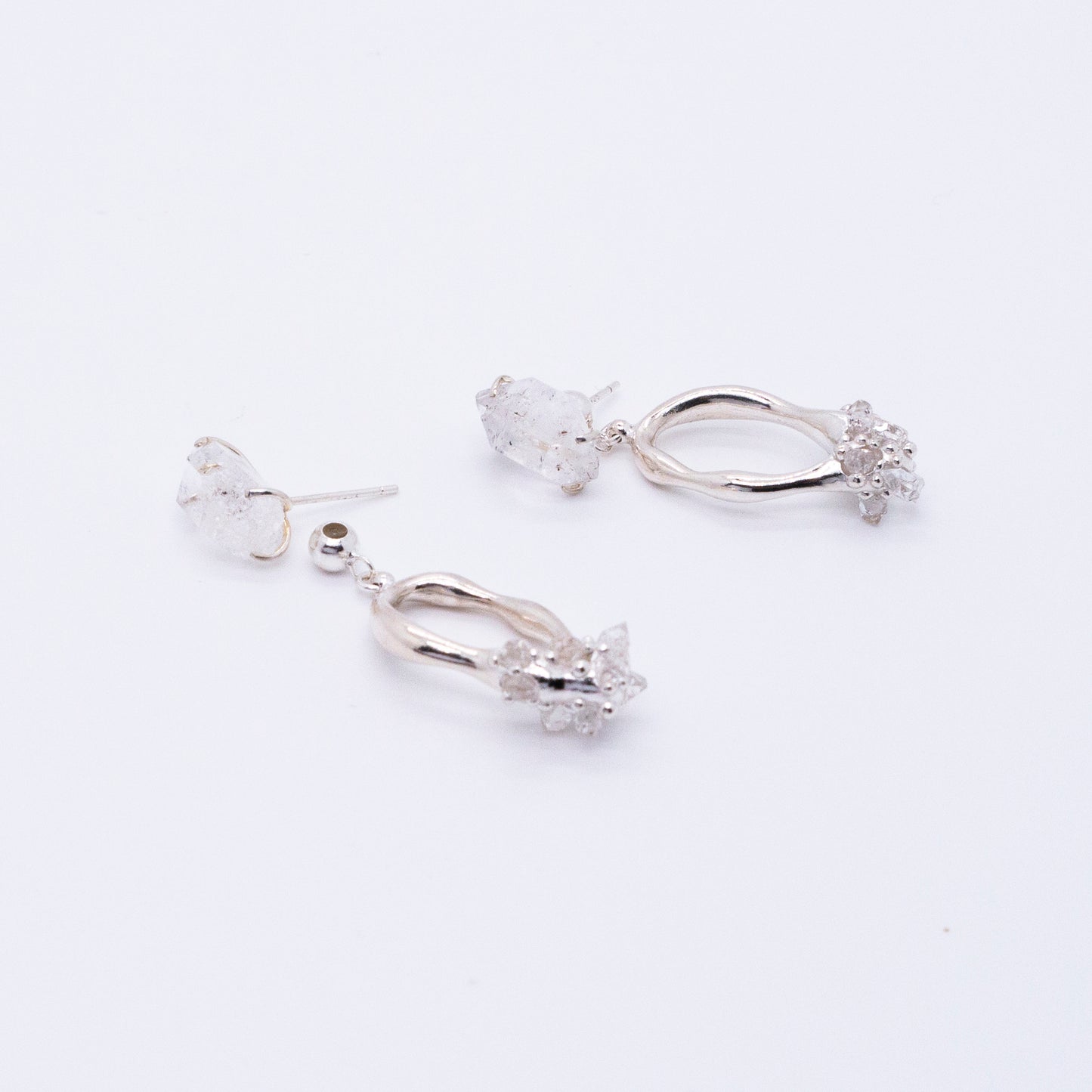 宇宙冰晶系列 - 胭紅薄霧 大冰晶兩用耳環 - 純銀