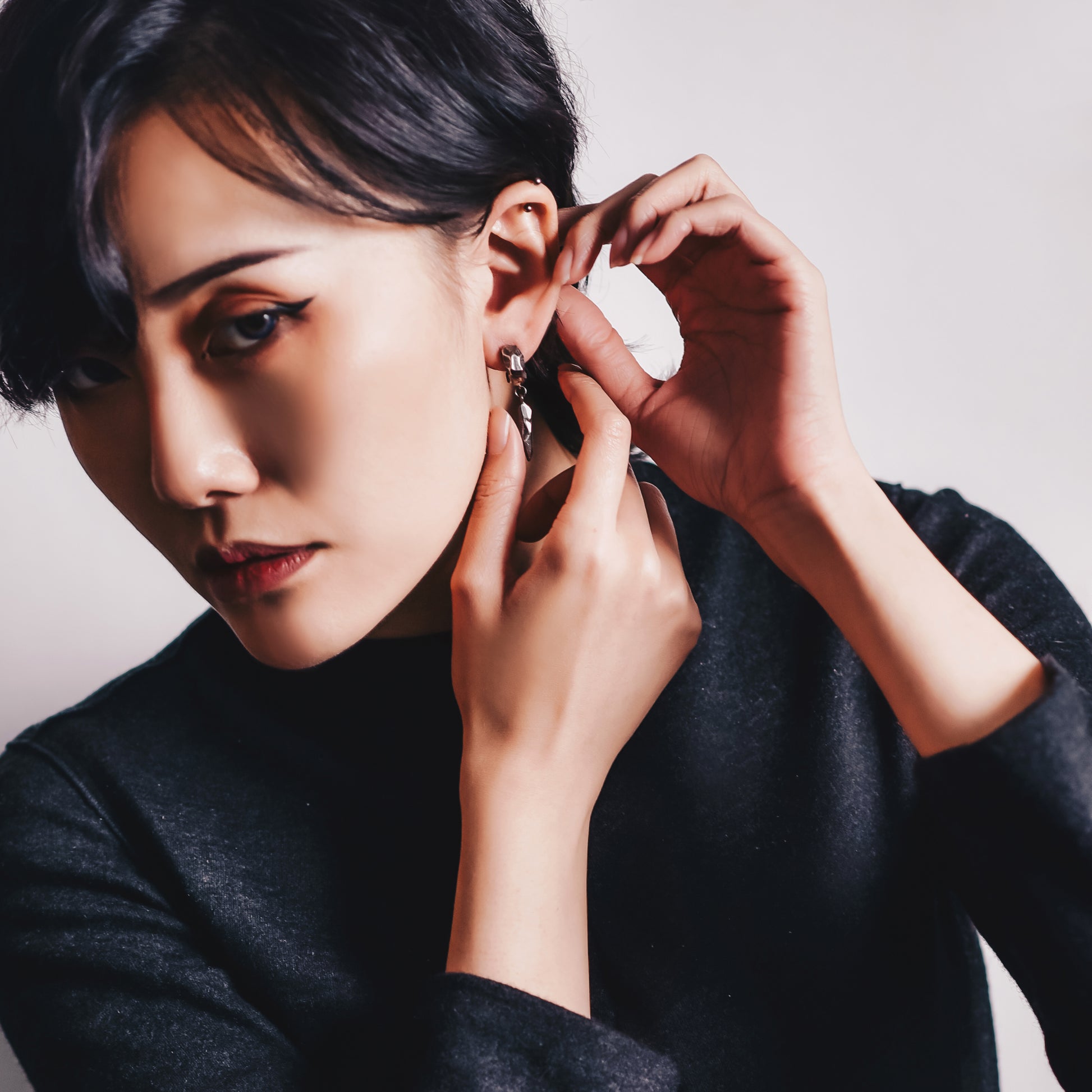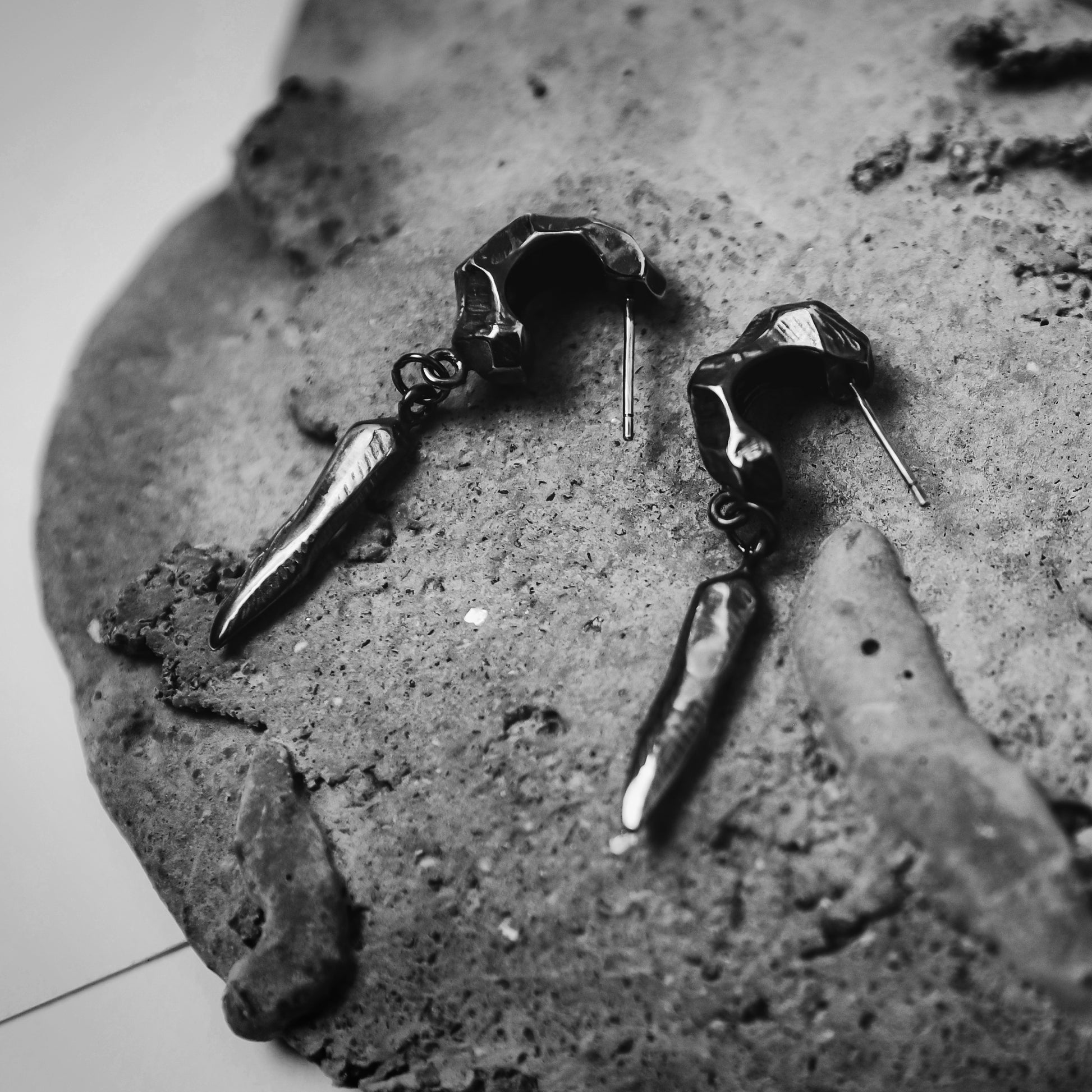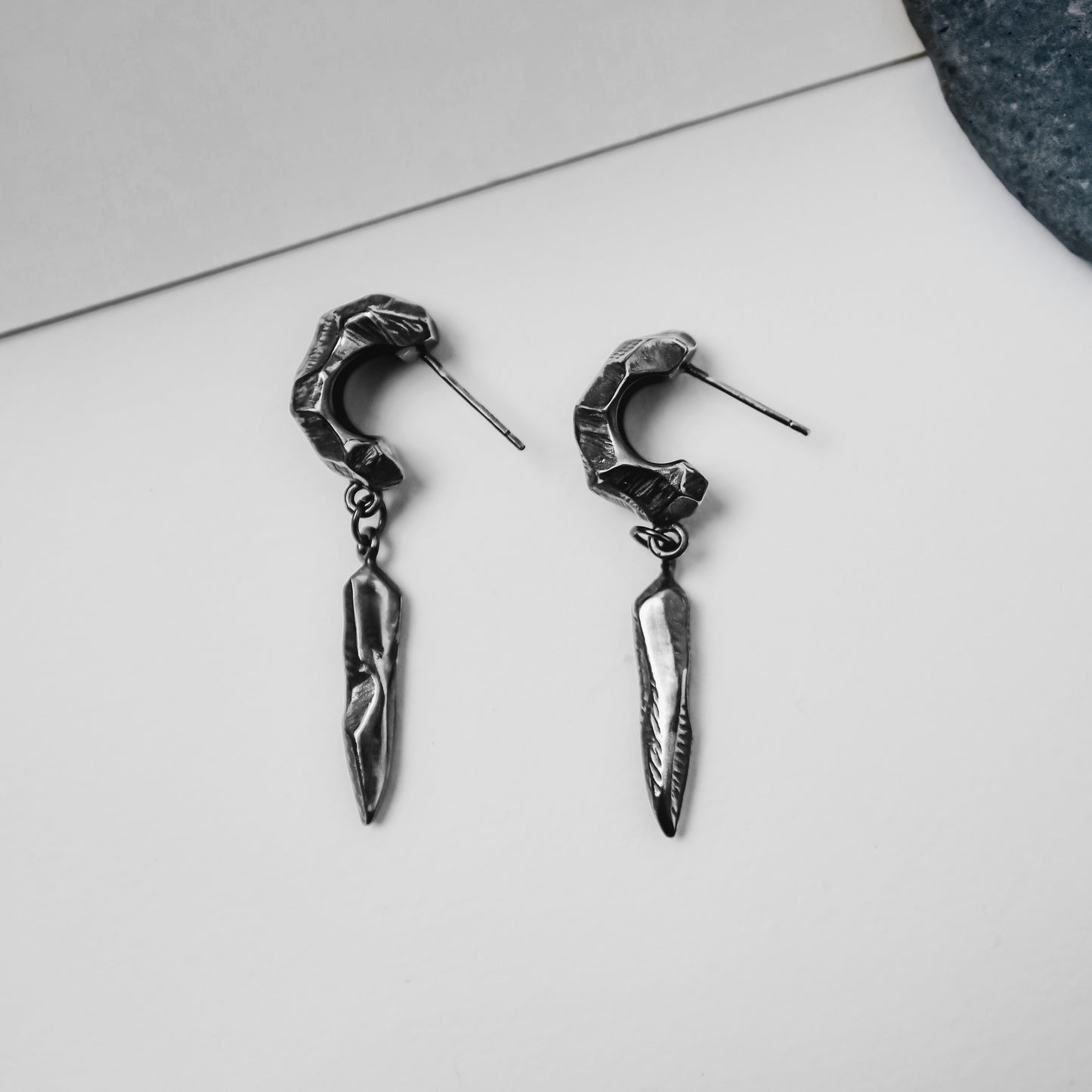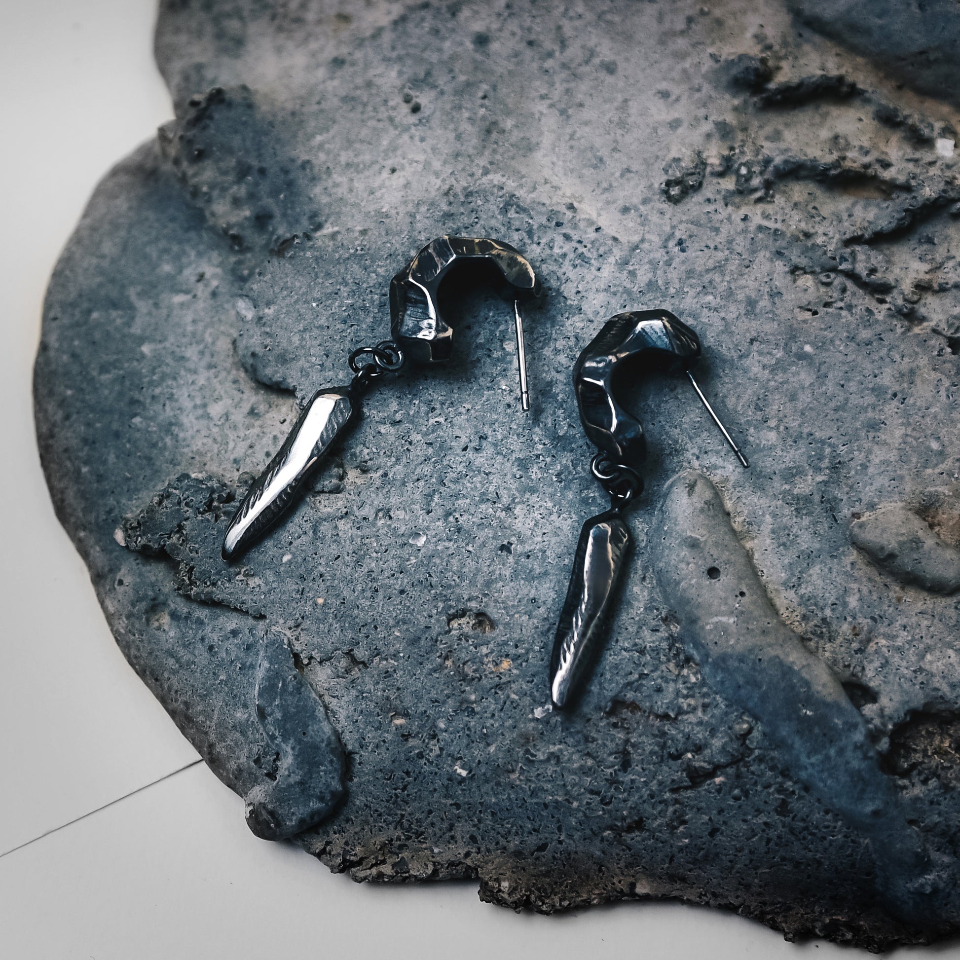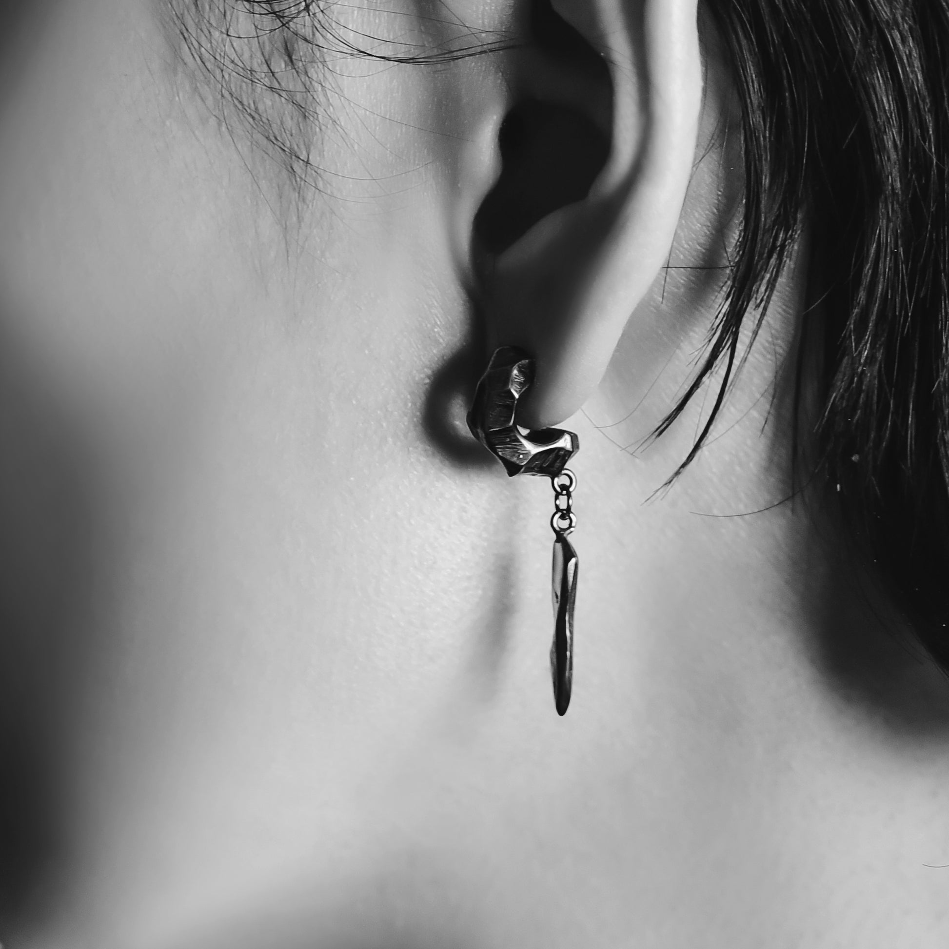 迷途之星系列 隕石純銀垂墜耳環-銀黑