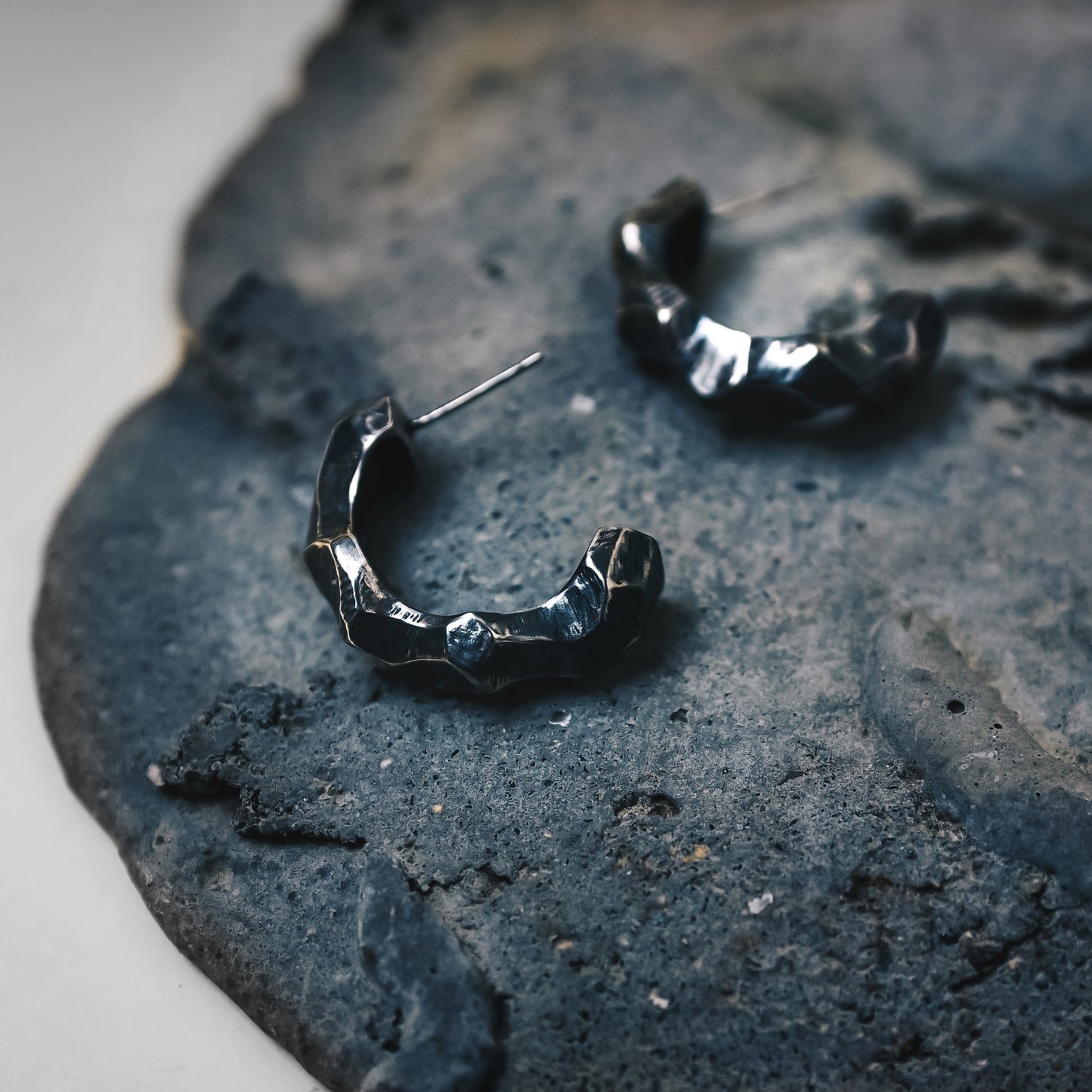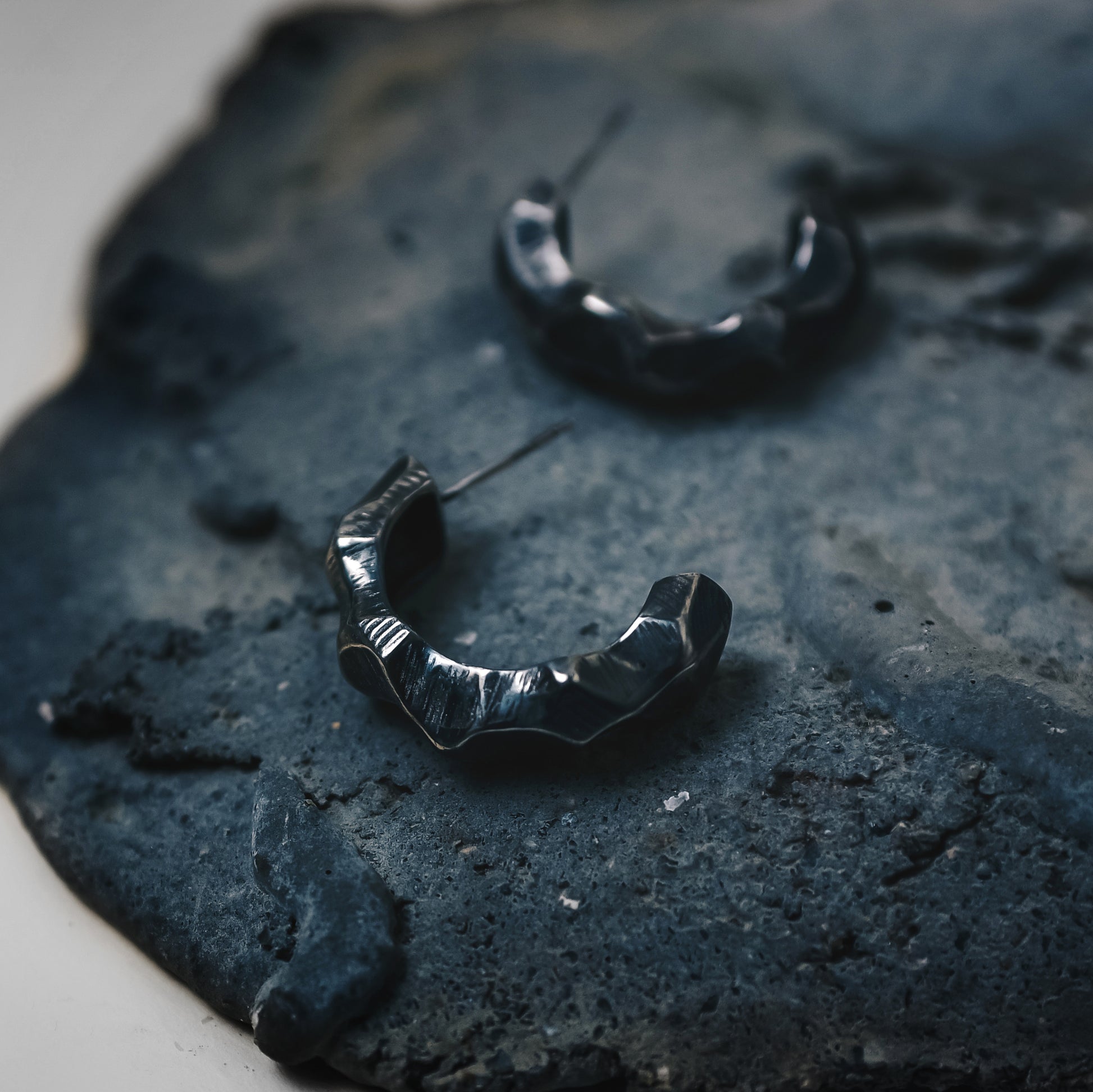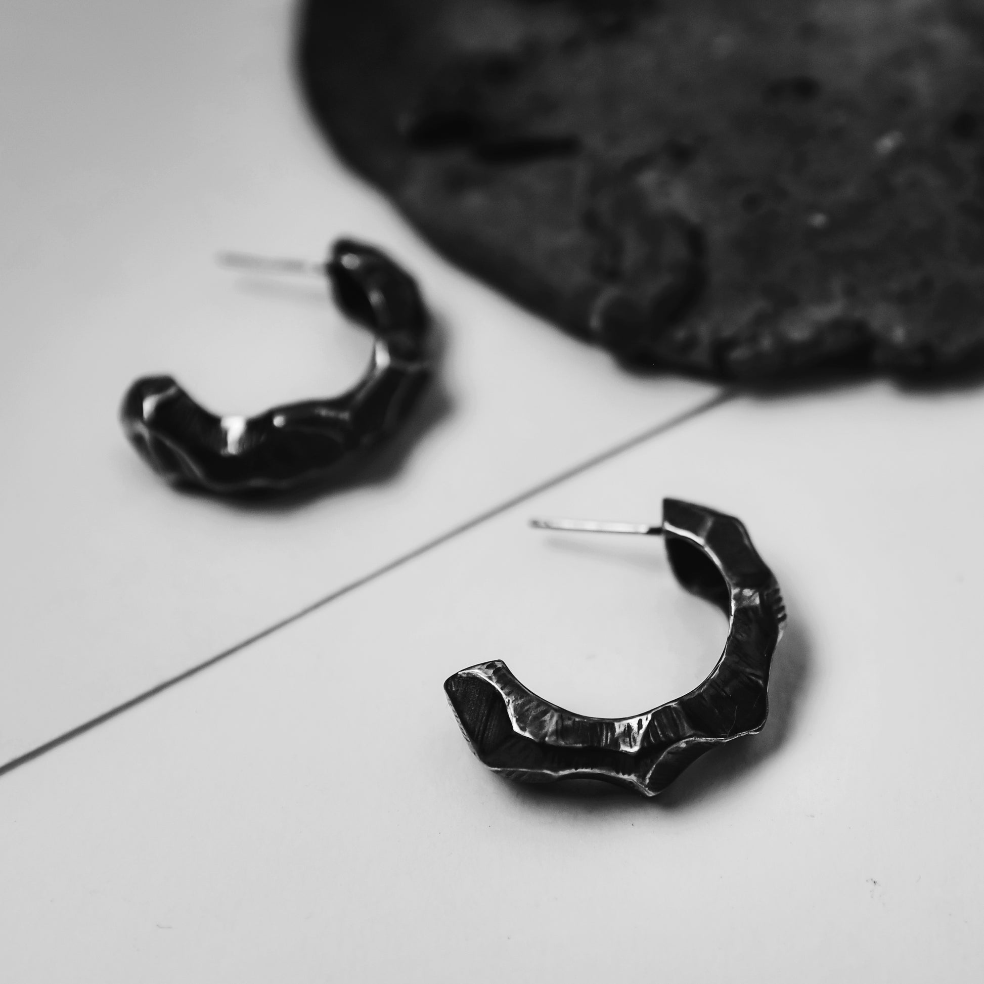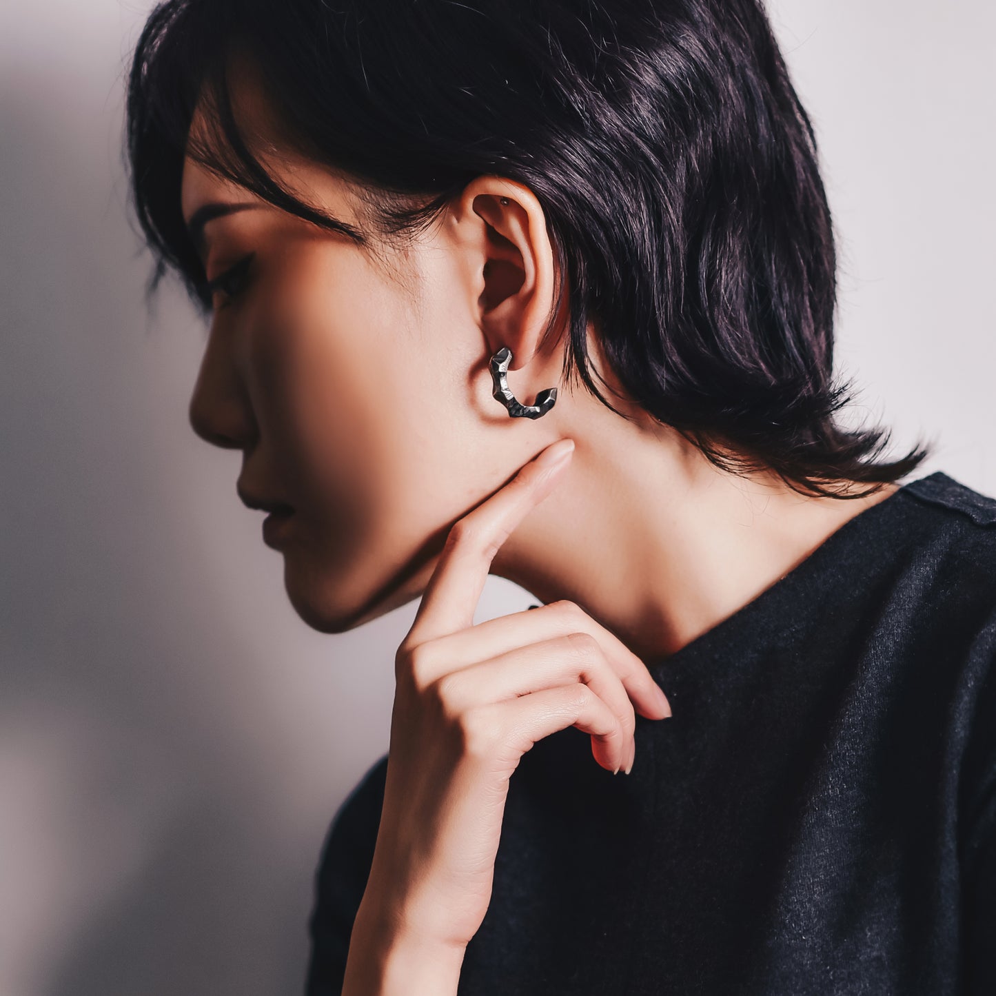 迷途之星系列 大圈隕石純銀耳環-銀黑