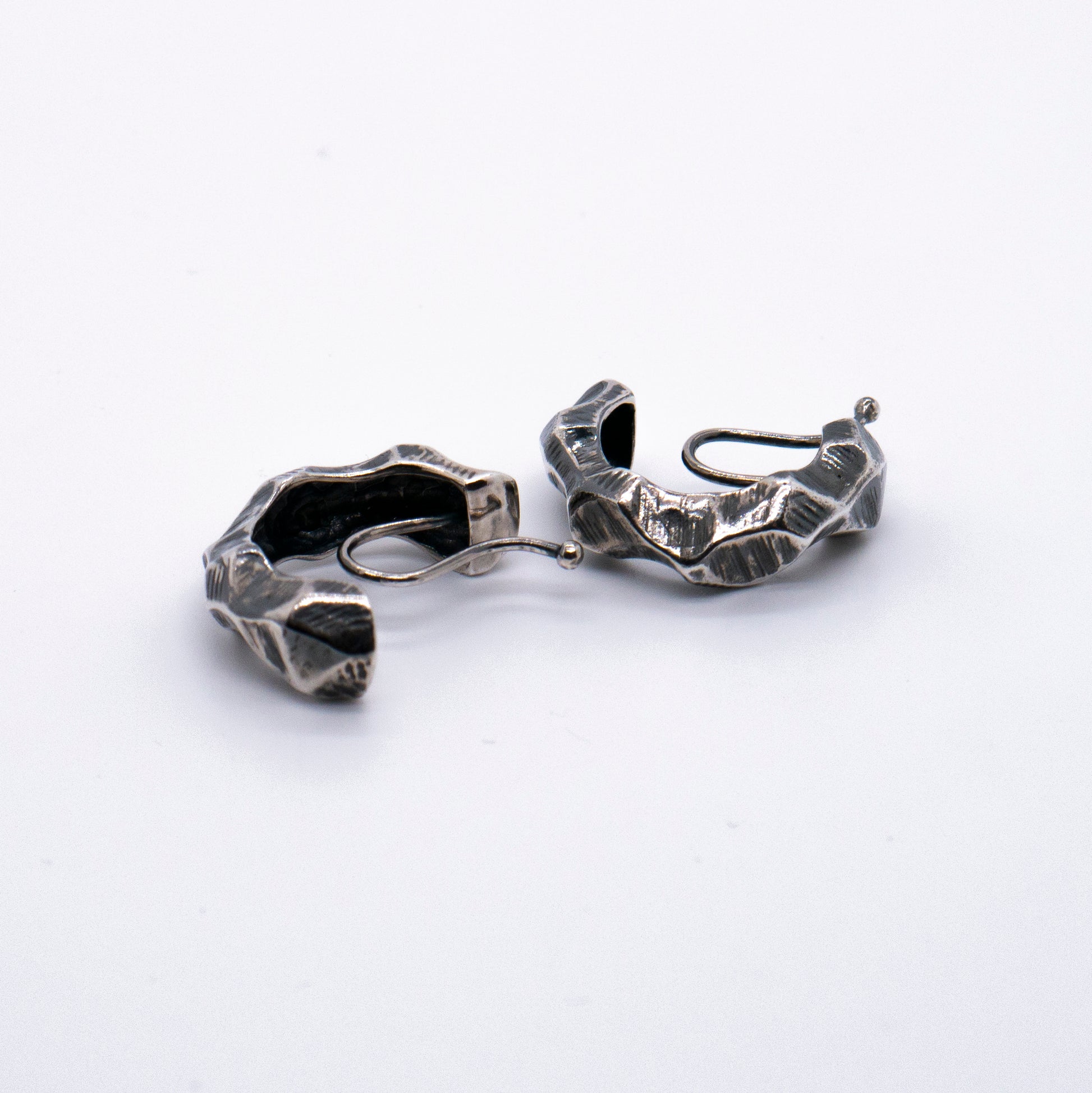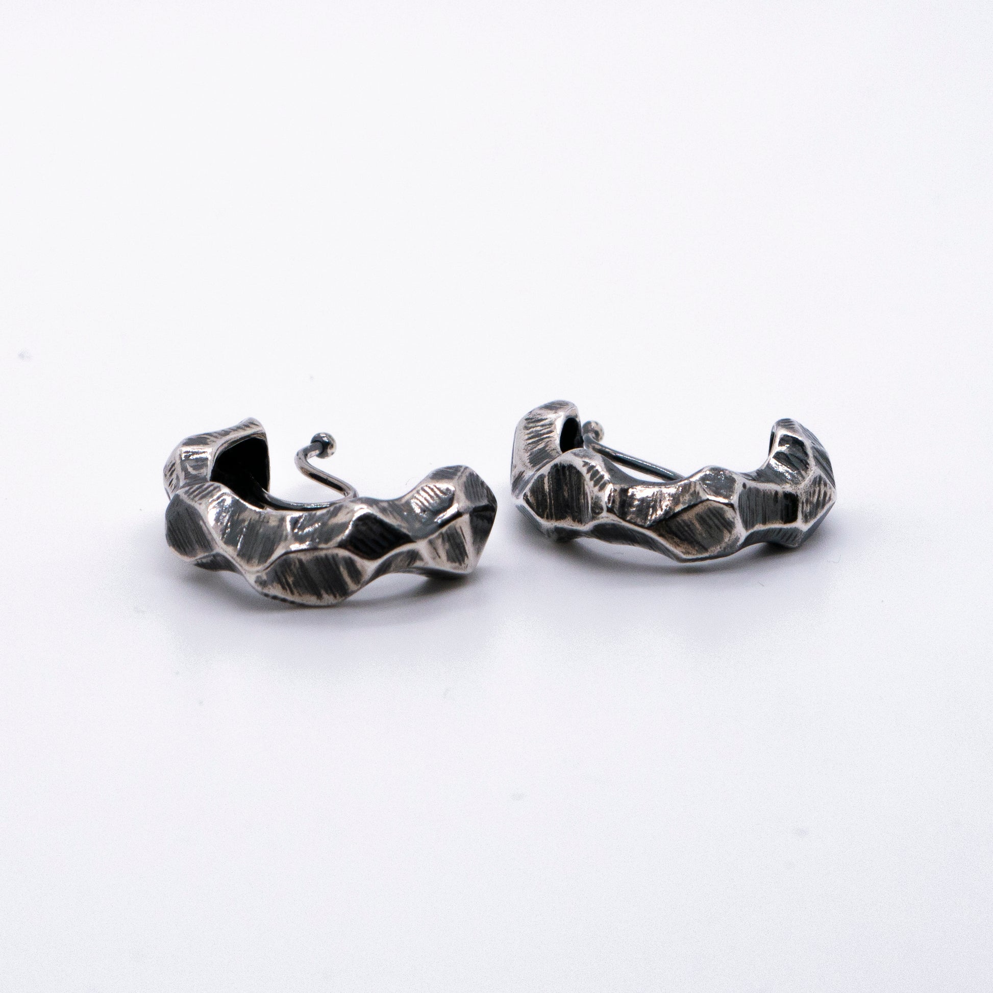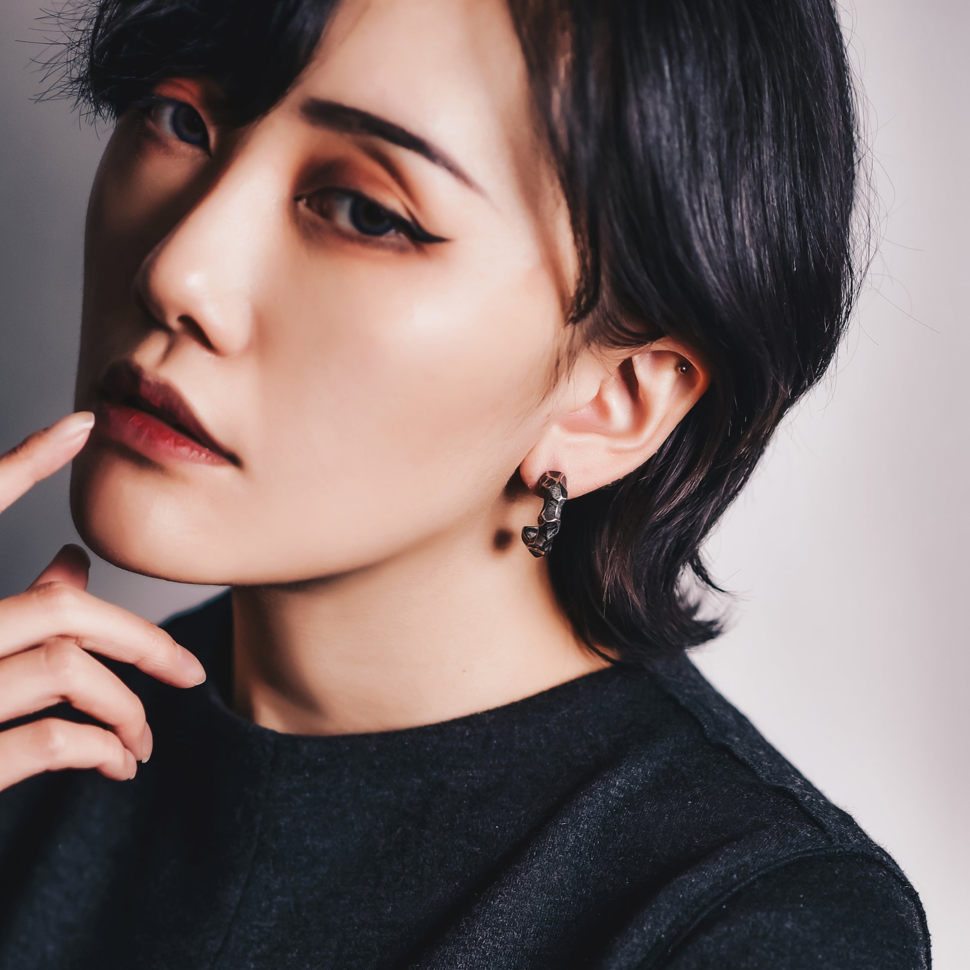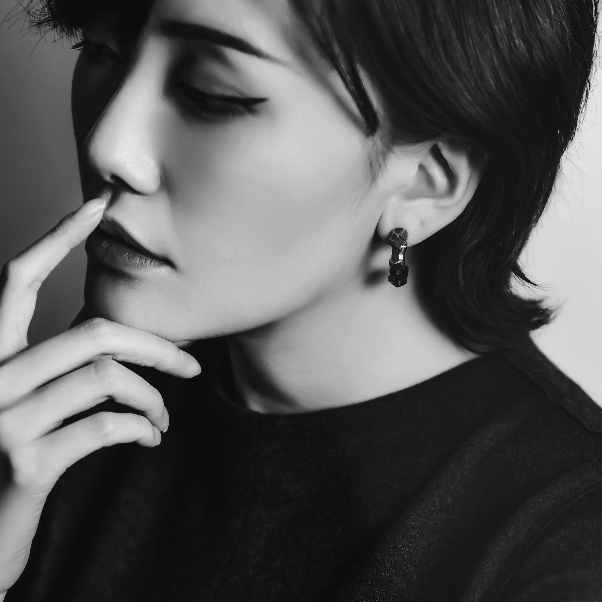迷途之星系列 大圈隕石純銀耳環-銀黑