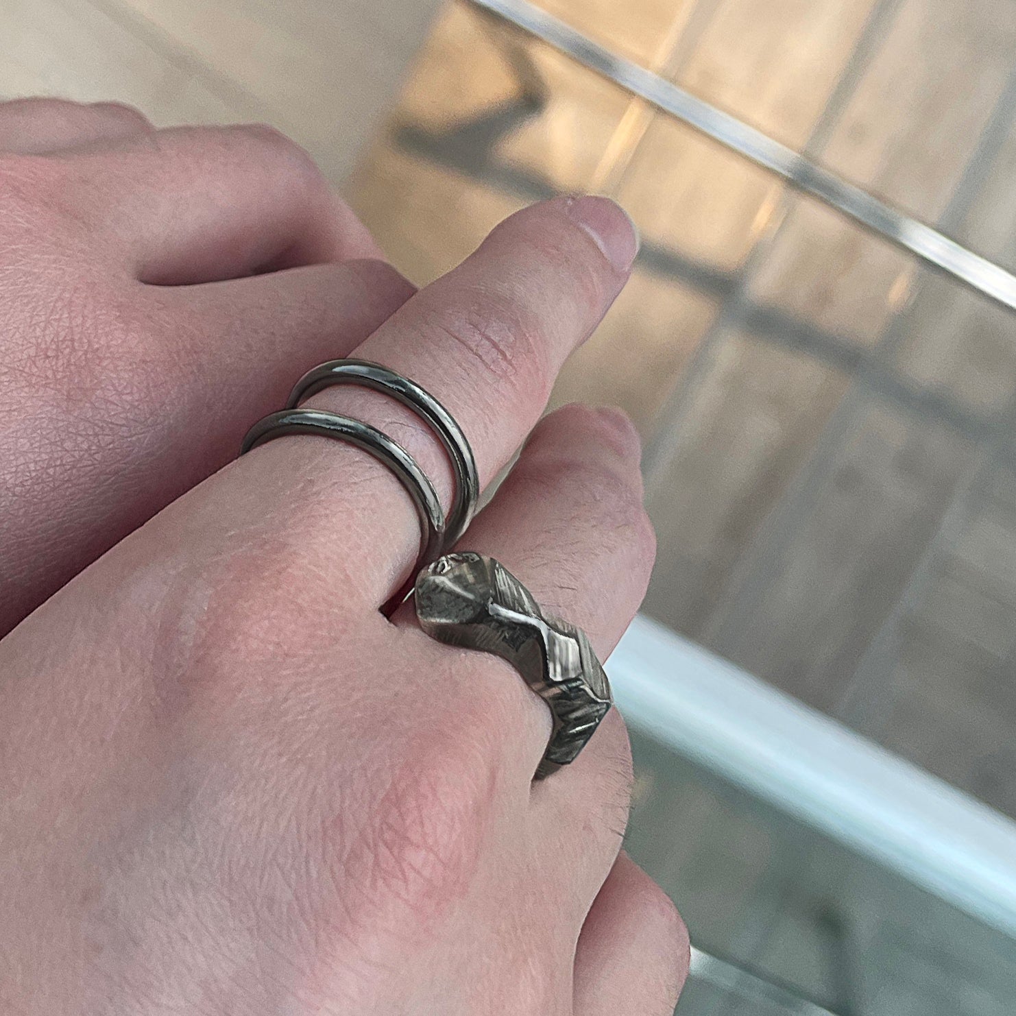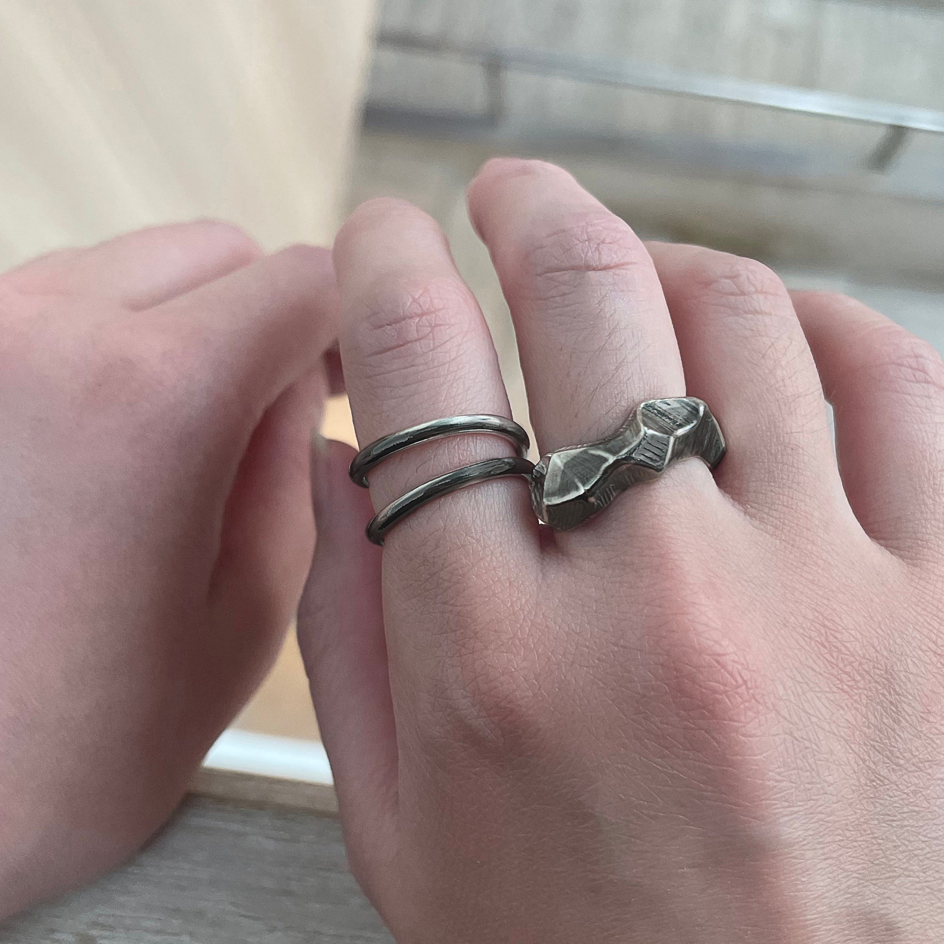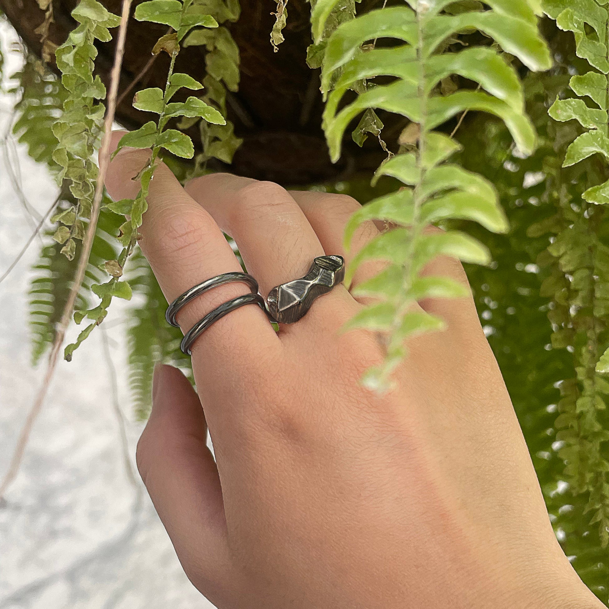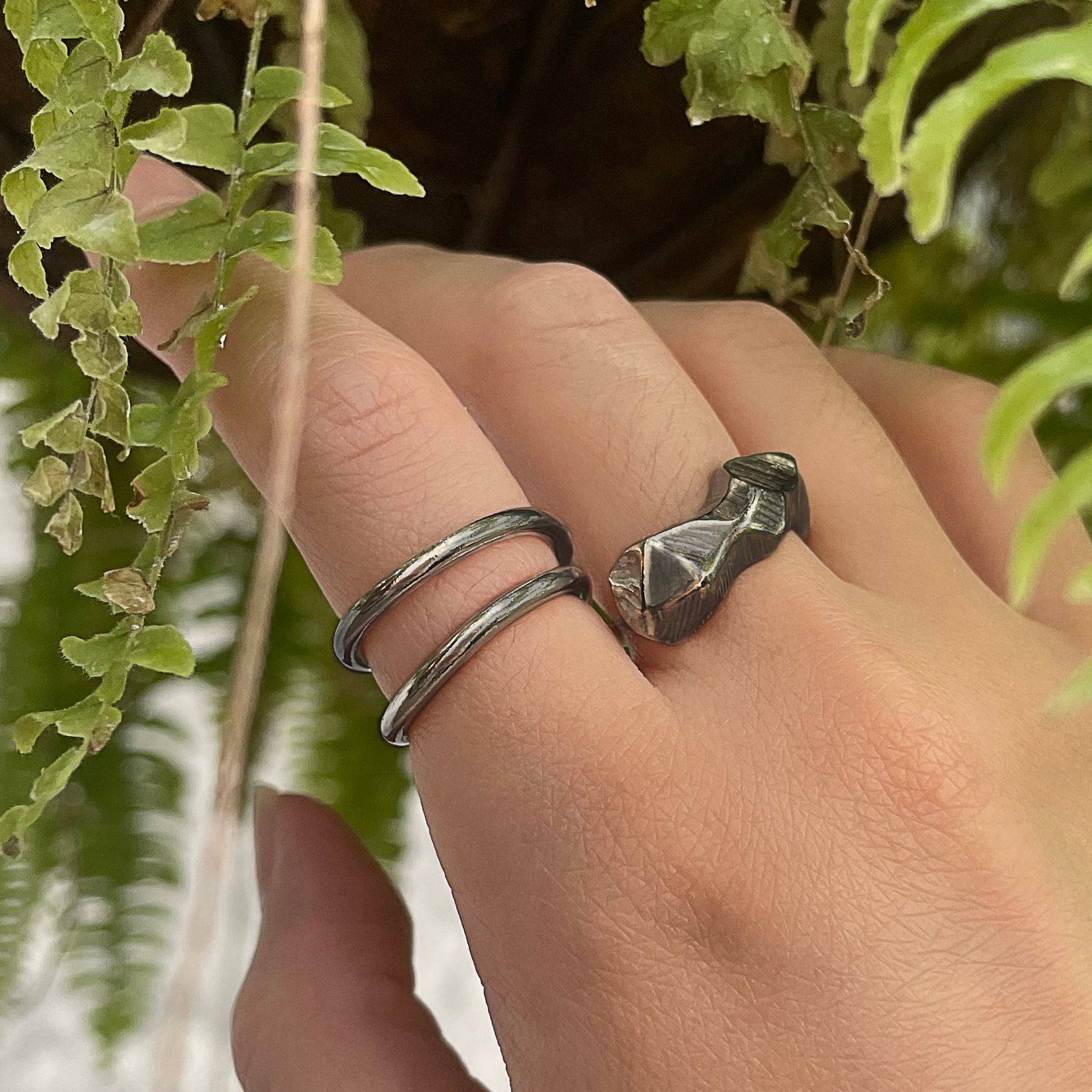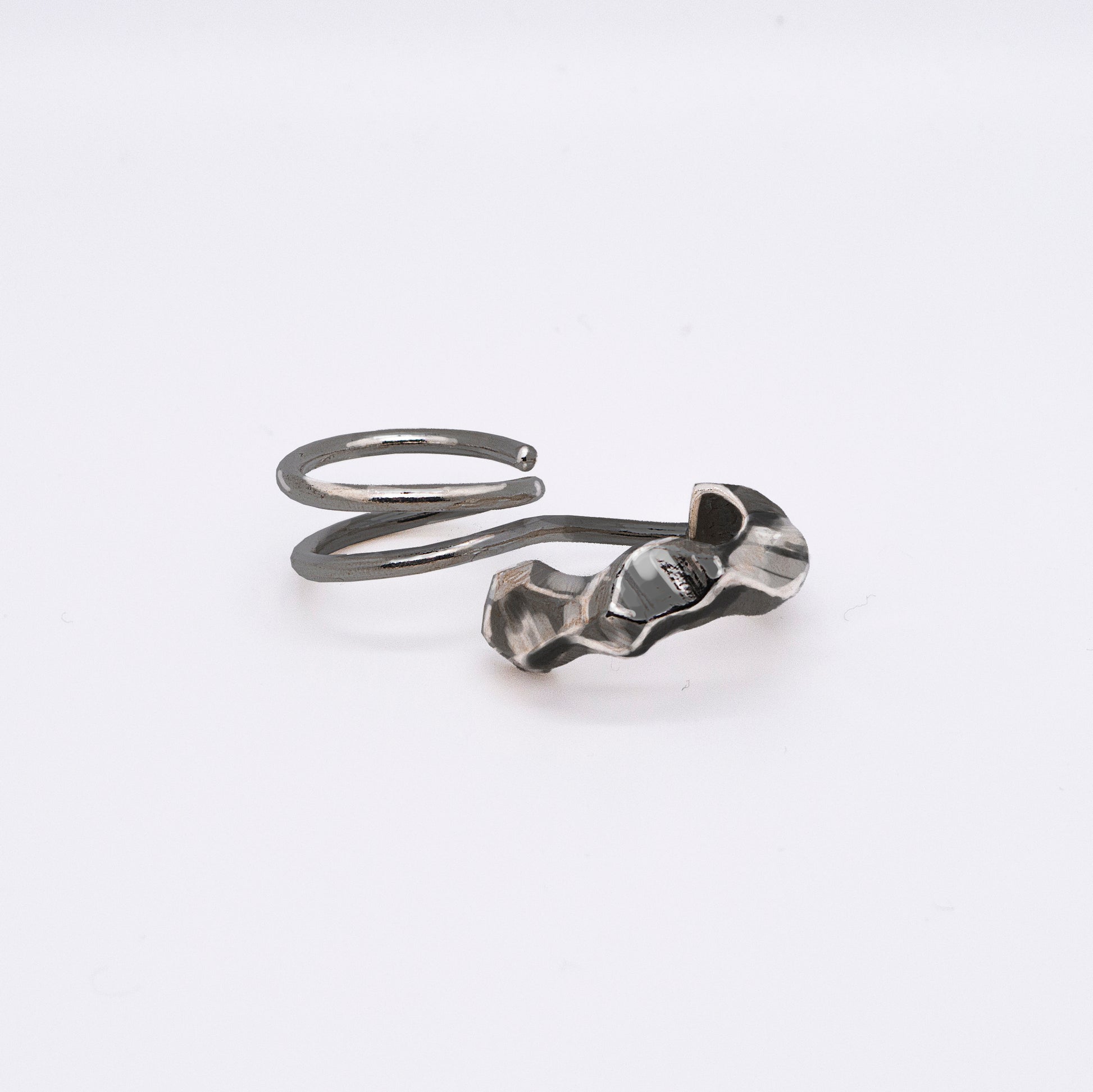 迷途之星系列 隕石純銀雙指戒-銀黑