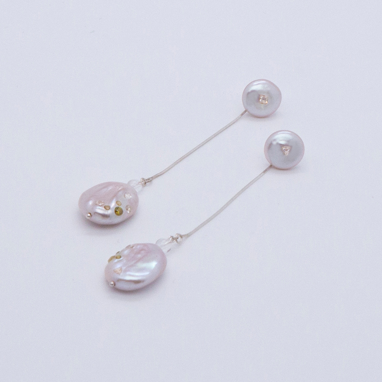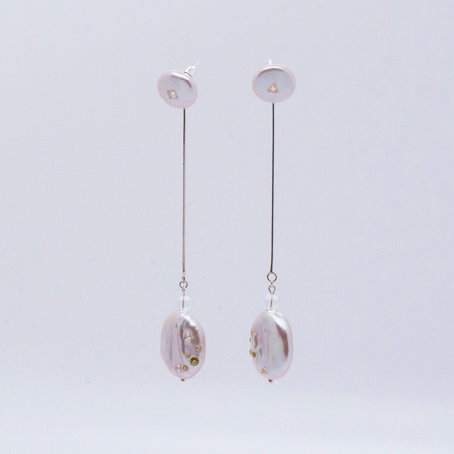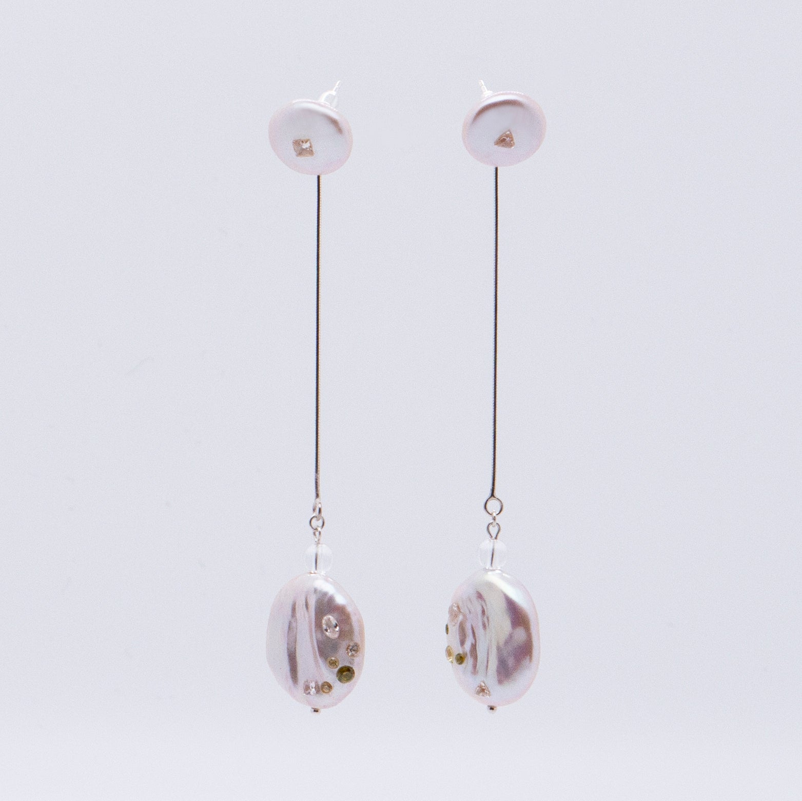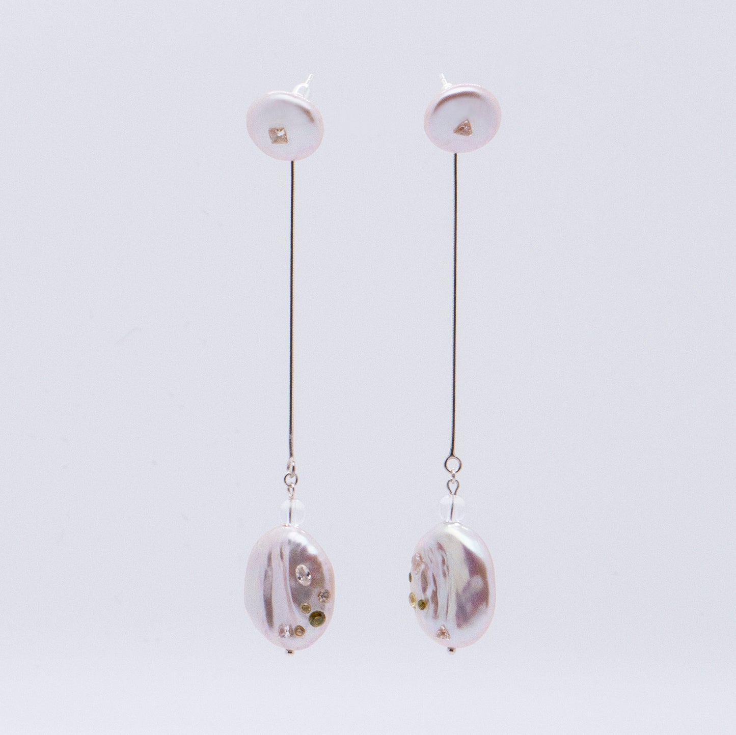 多重宇宙 巴洛克圓餅珍珠耳環+可拆式垂墜耳後扣-純銀
