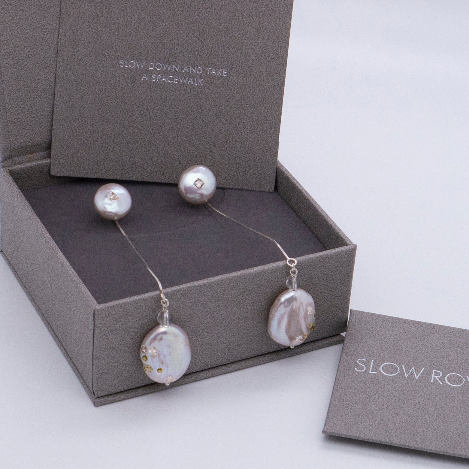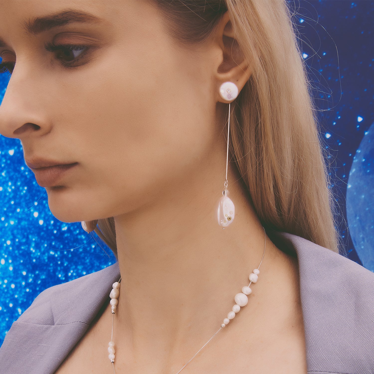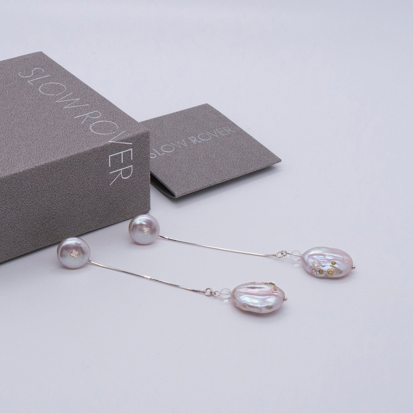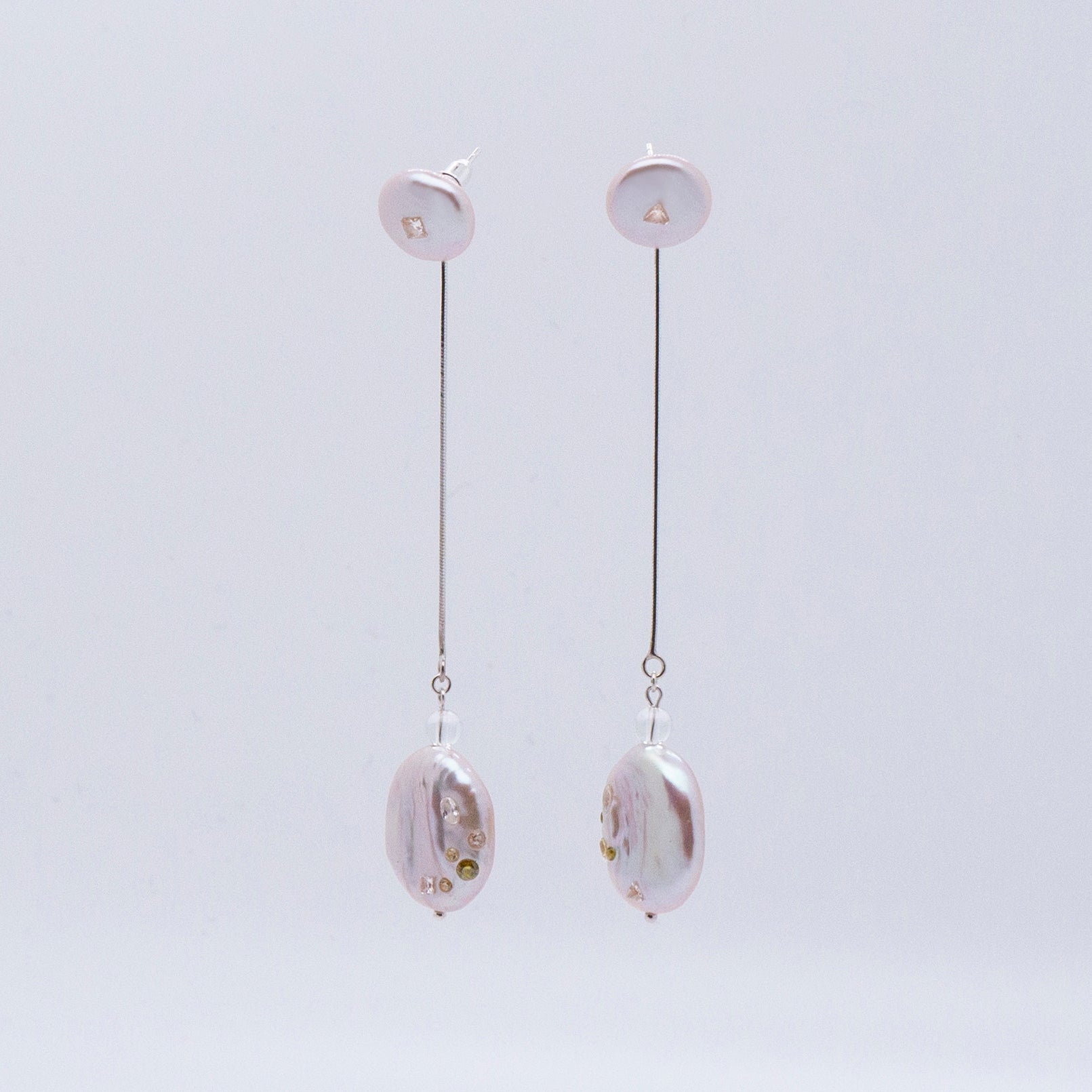 多重宇宙 巴洛克圓餅珍珠耳環+可拆式垂墜耳後扣-純銀