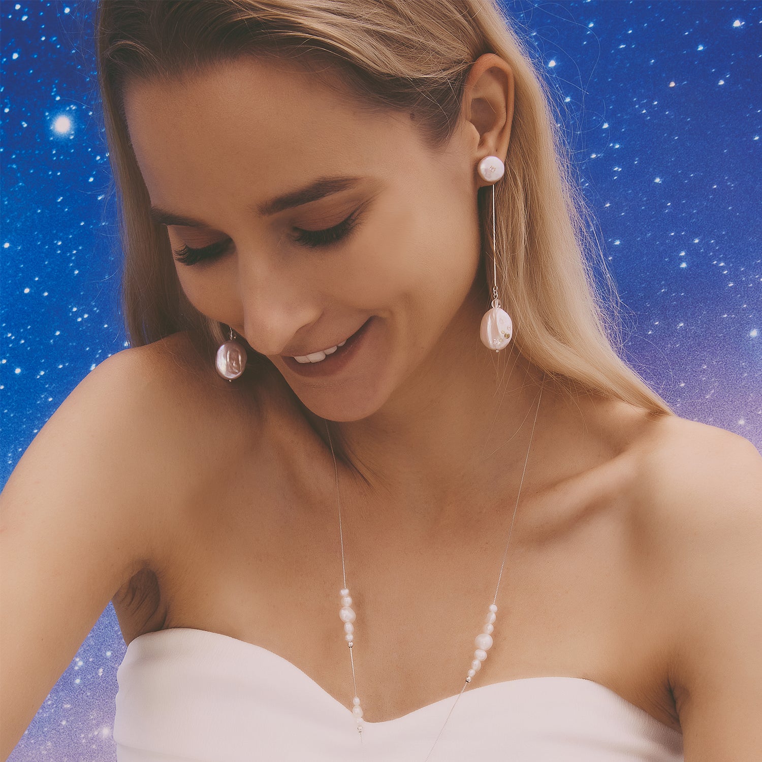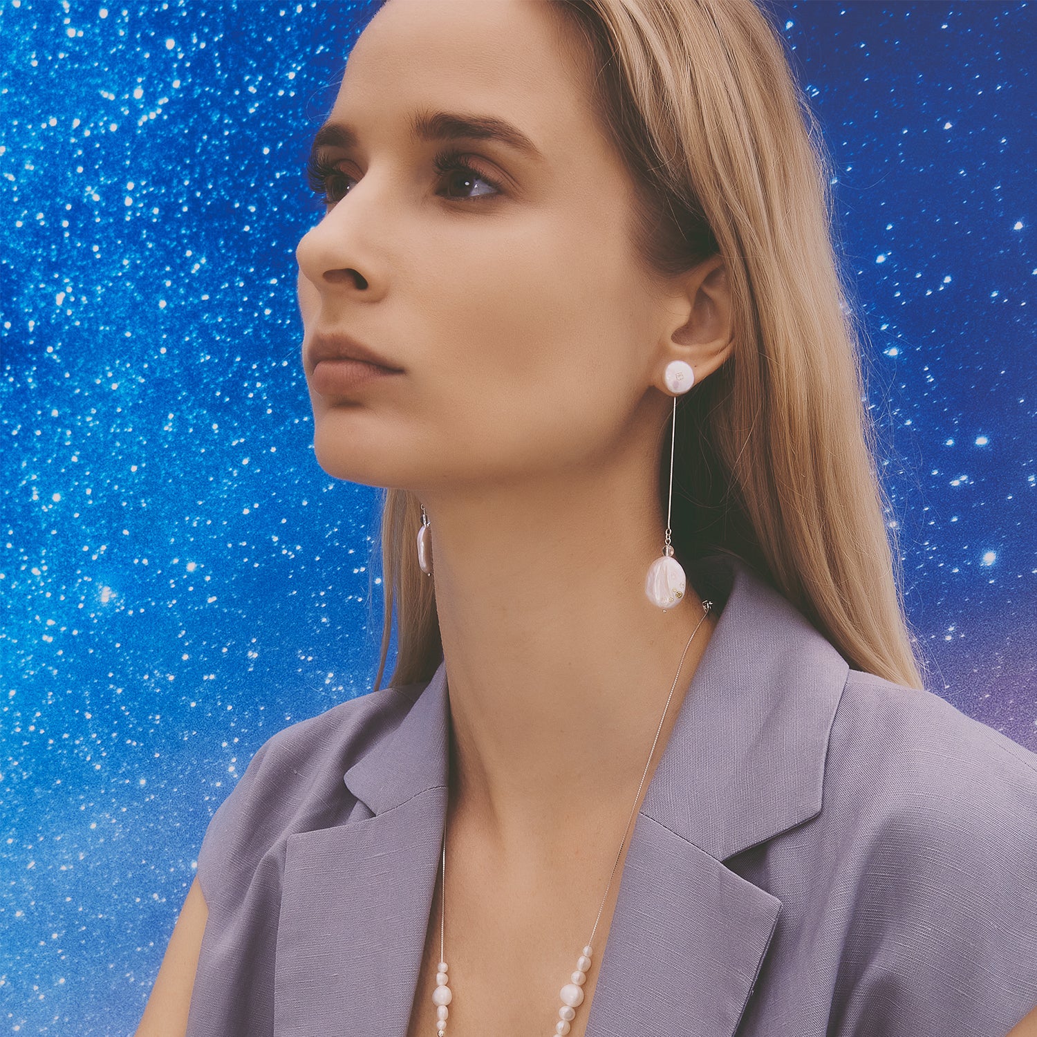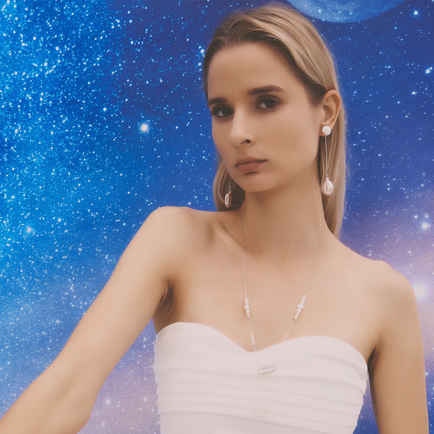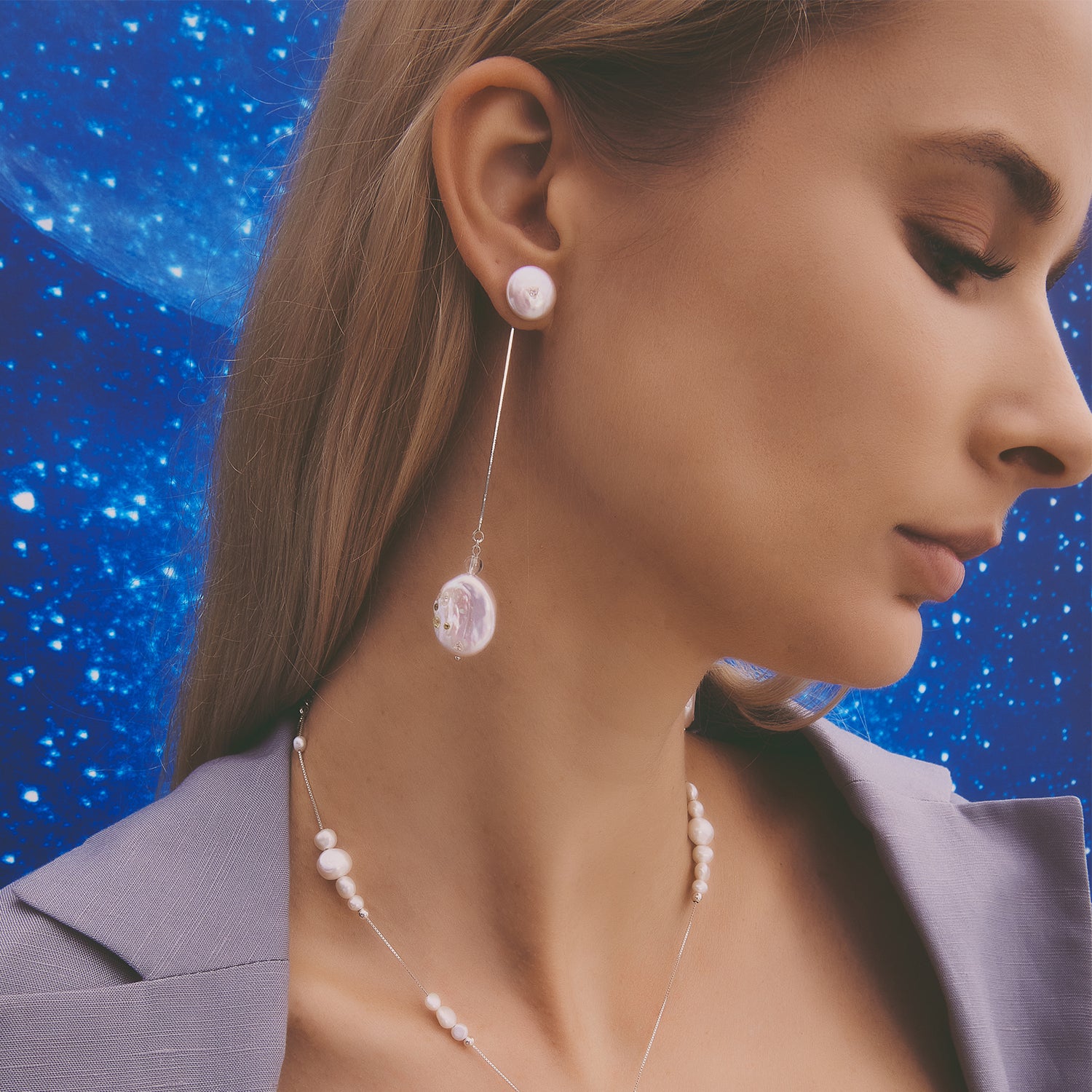 多重宇宙 巴洛克圓餅珍珠耳環+可拆式垂墜耳後扣-純銀