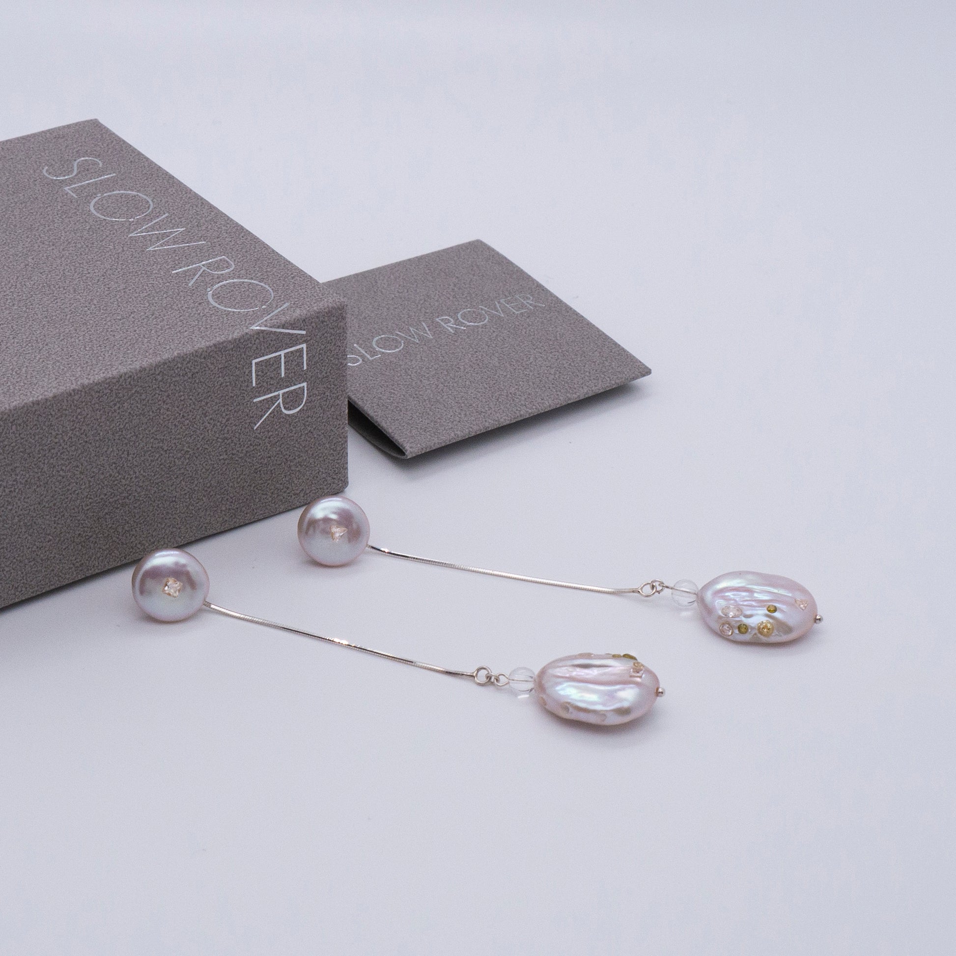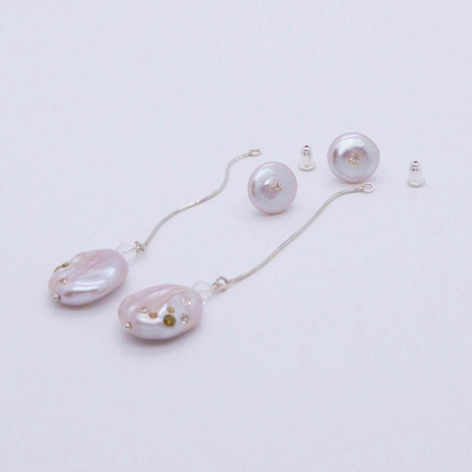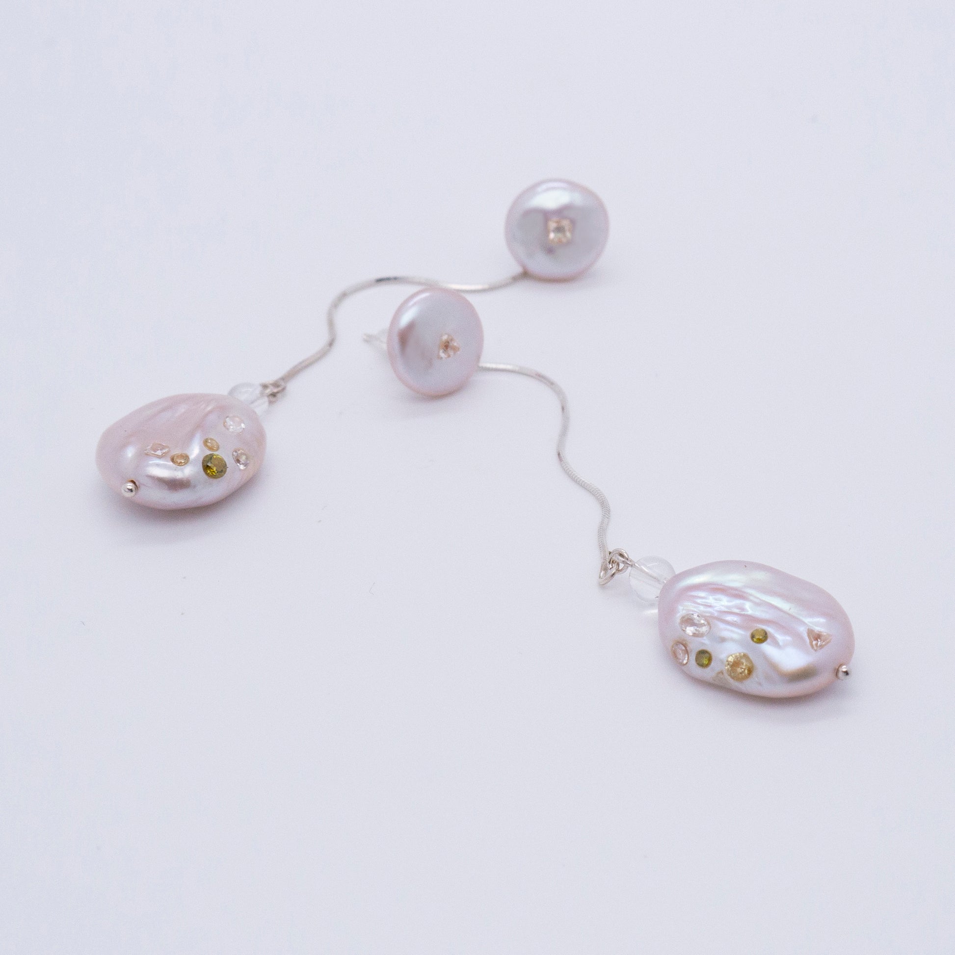 多重宇宙系列 - 巴洛克圓餅珍珠耳環+可拆式垂墜耳後扣 - 純銀