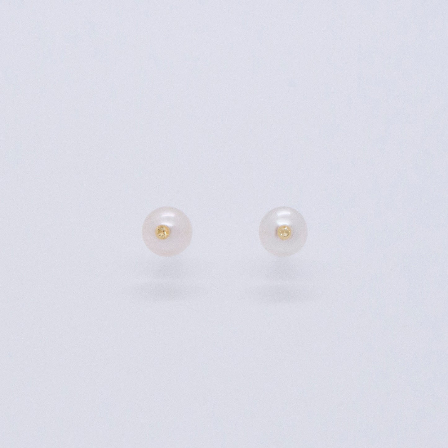 多重宇宙 簡約鋯石5mm白珍珠耳環-檸檬黃色