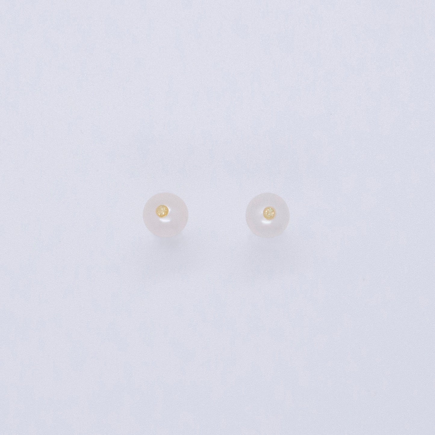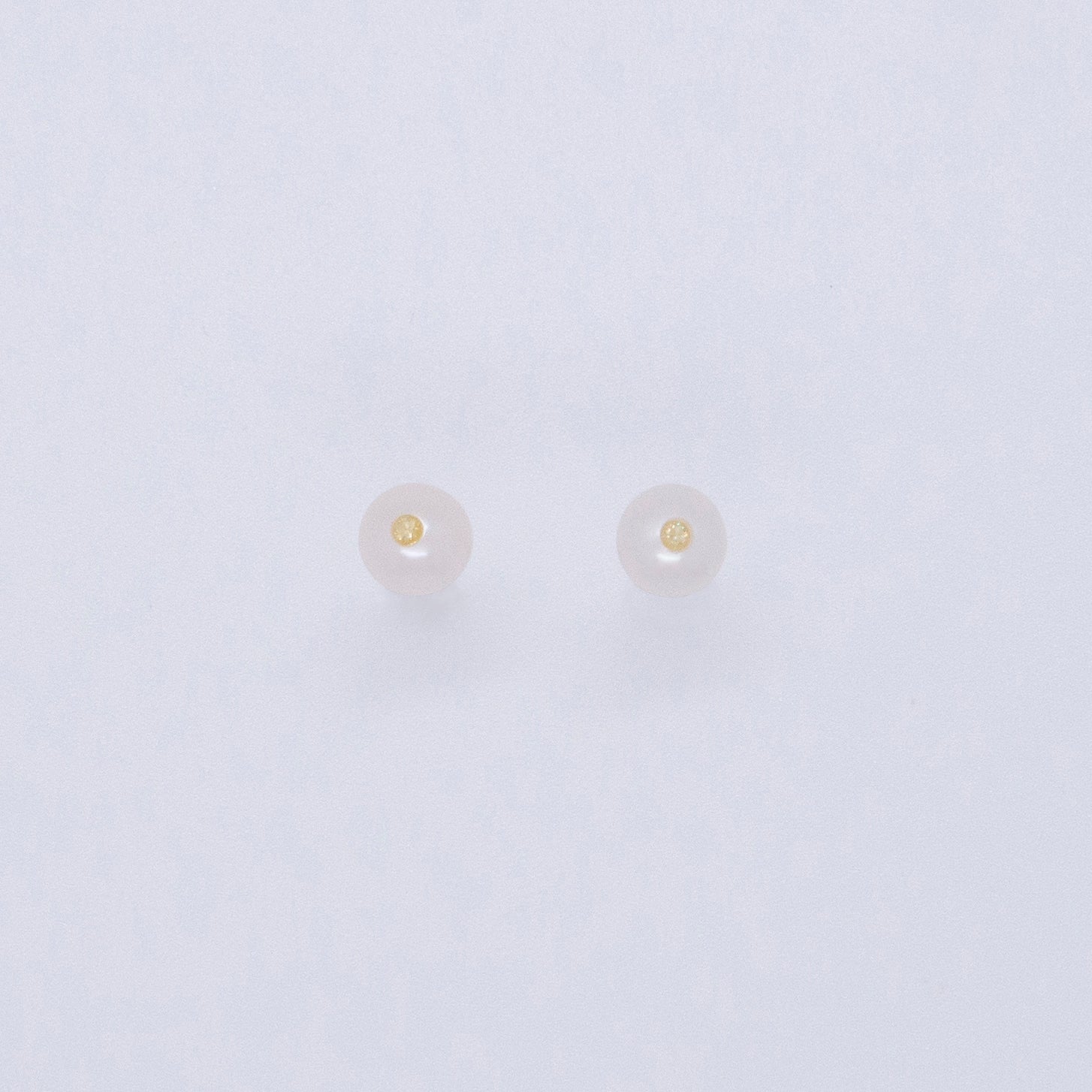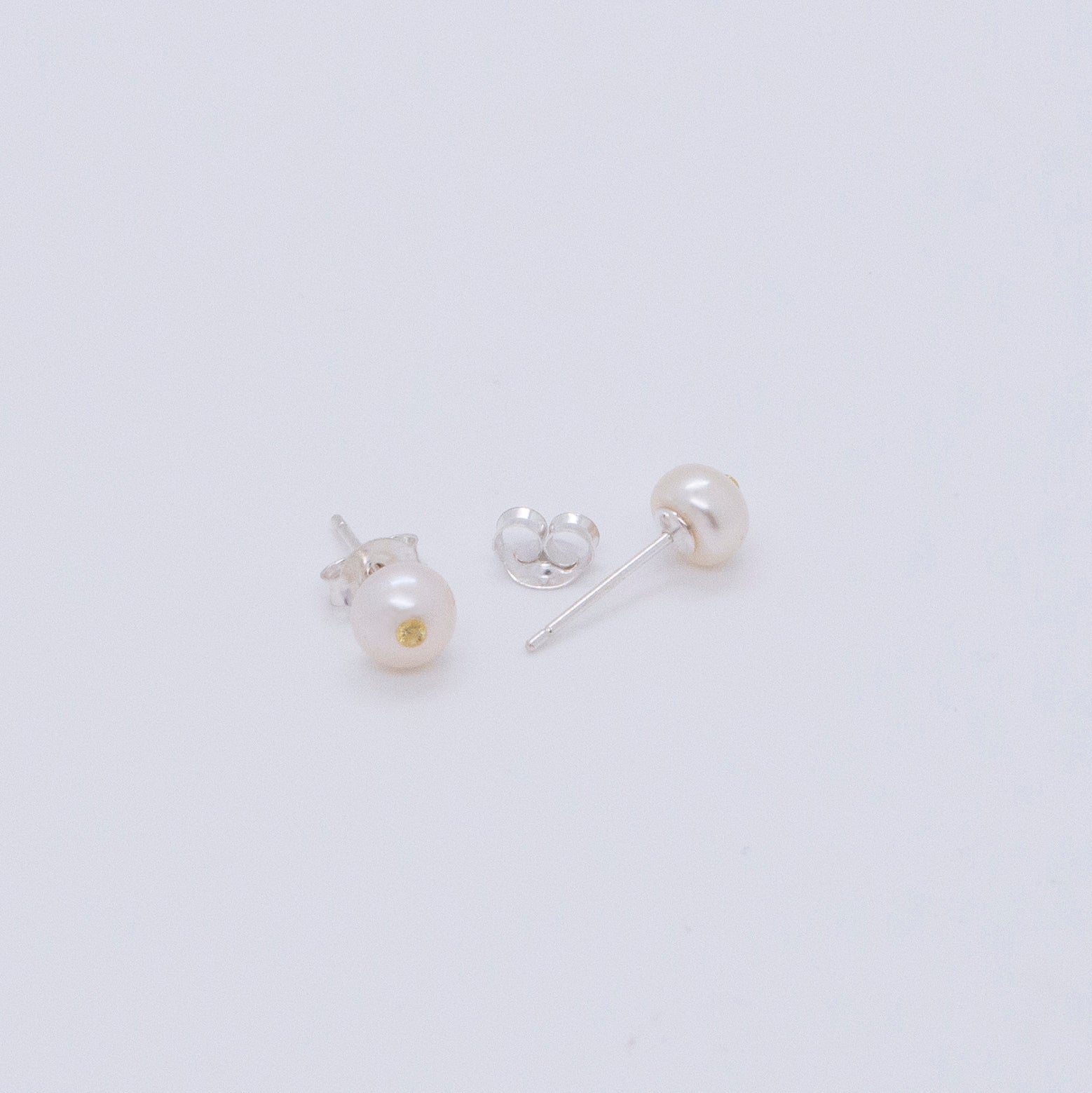 多重宇宙系列 - 簡約鋯石5mm白珍珠耳環 - 檸檬黃色