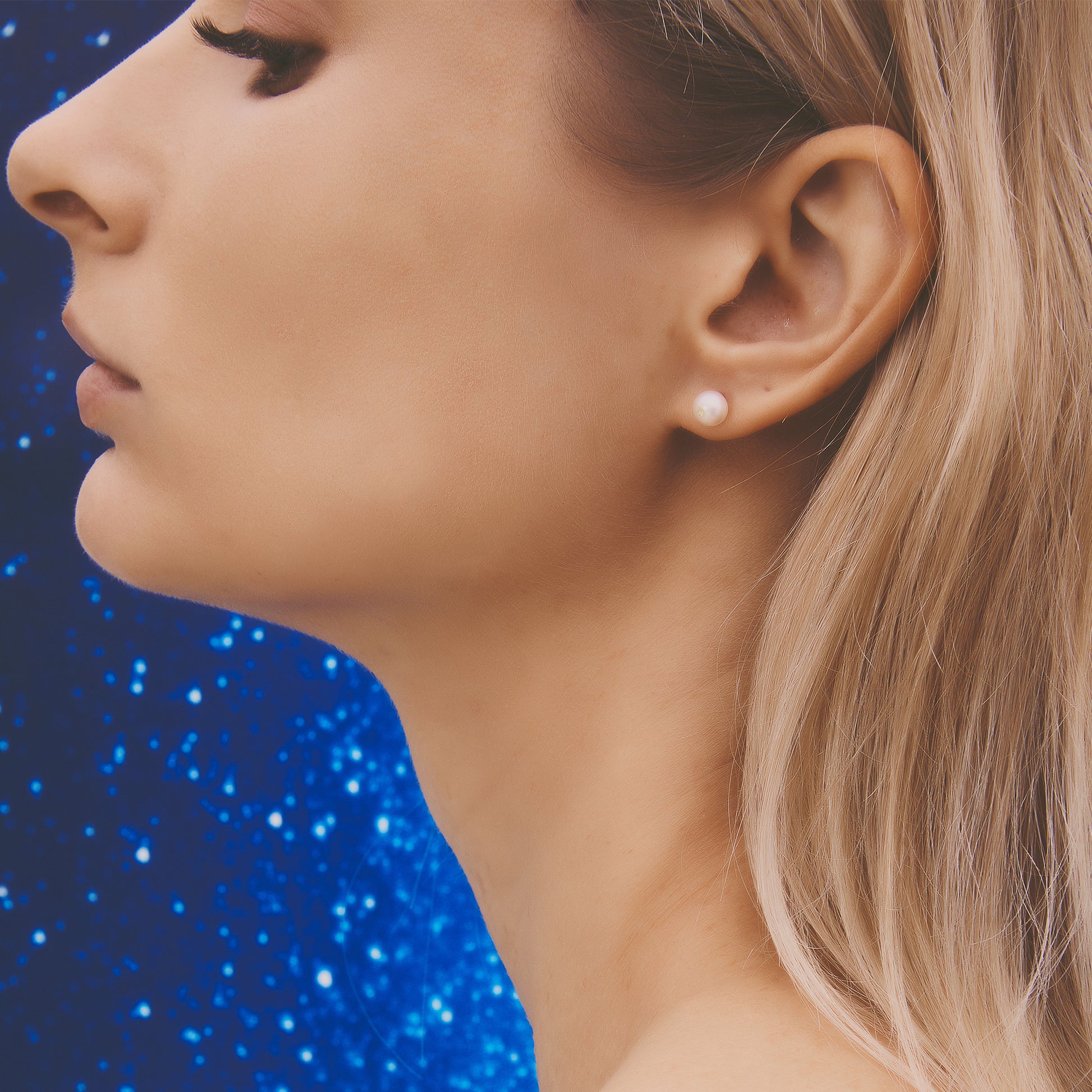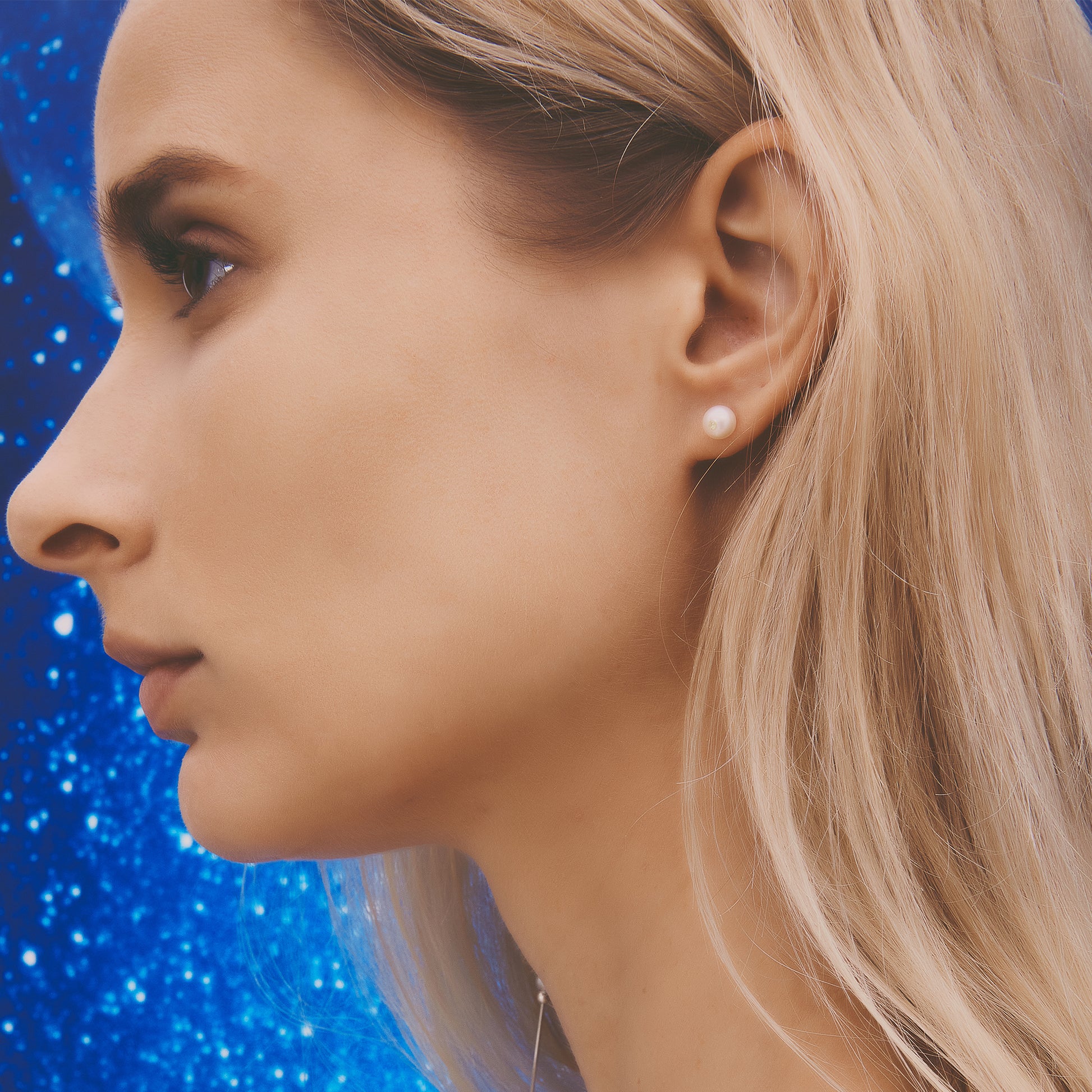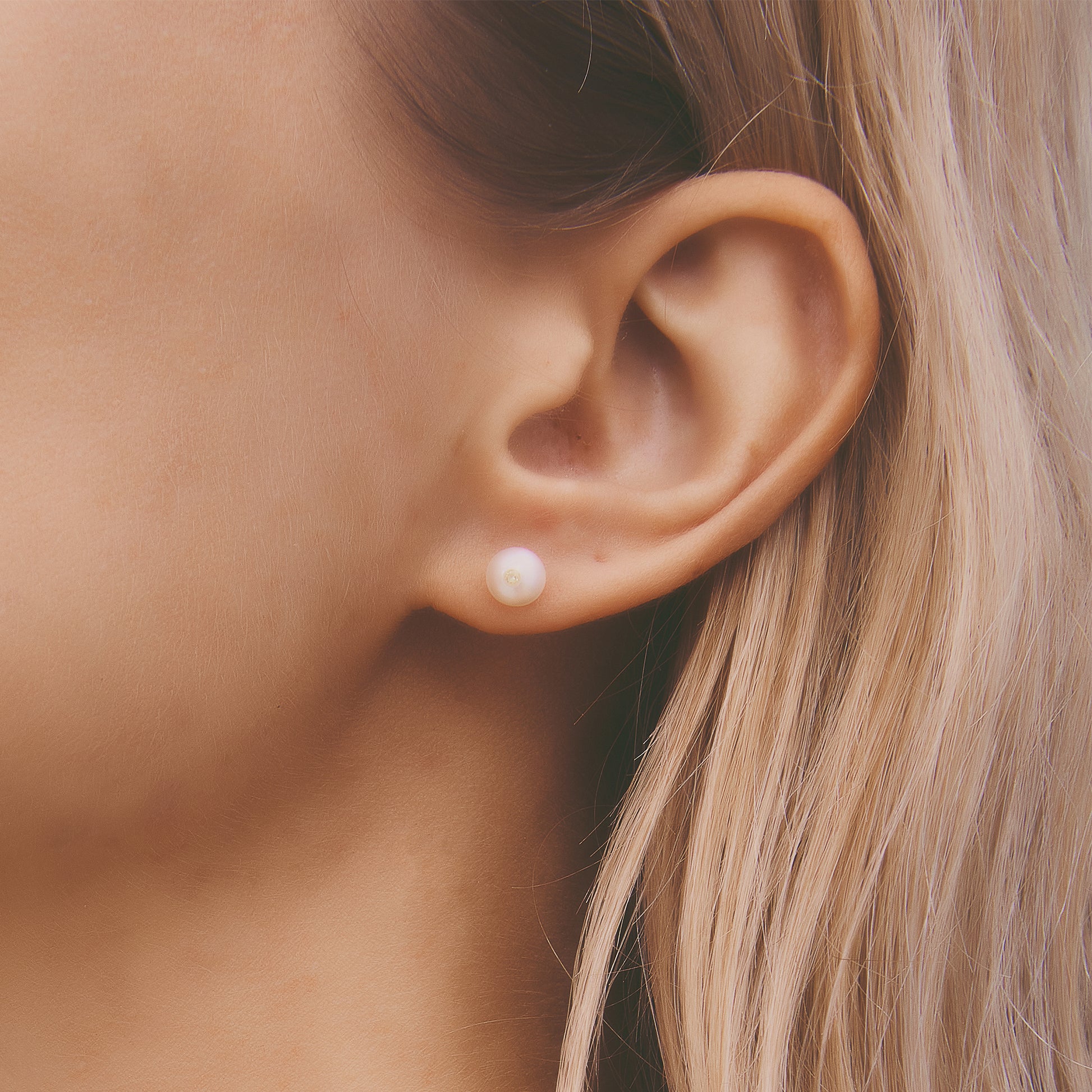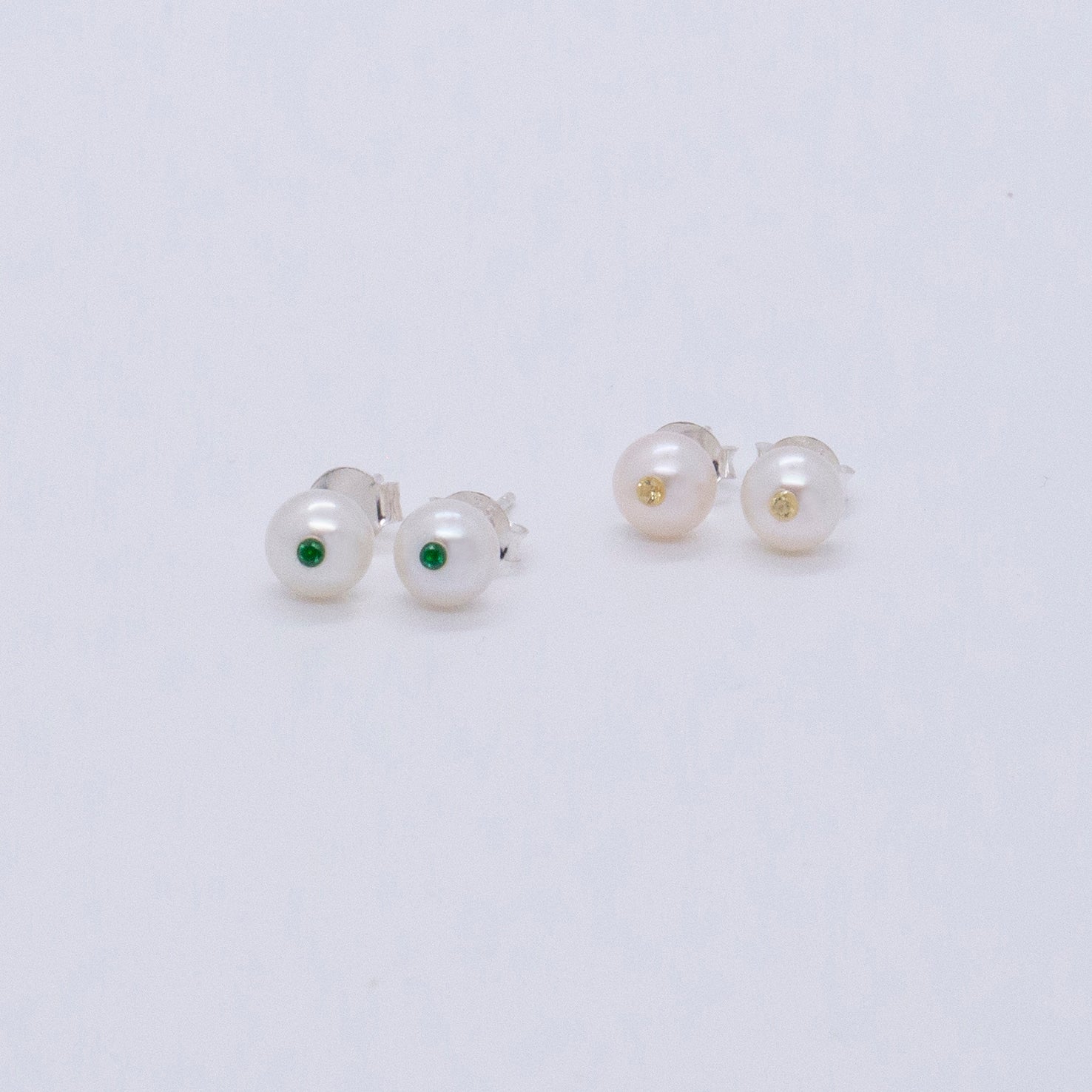 多重宇宙系列 - 簡約鋯石5mm白珍珠耳環 - 檸檬黃色