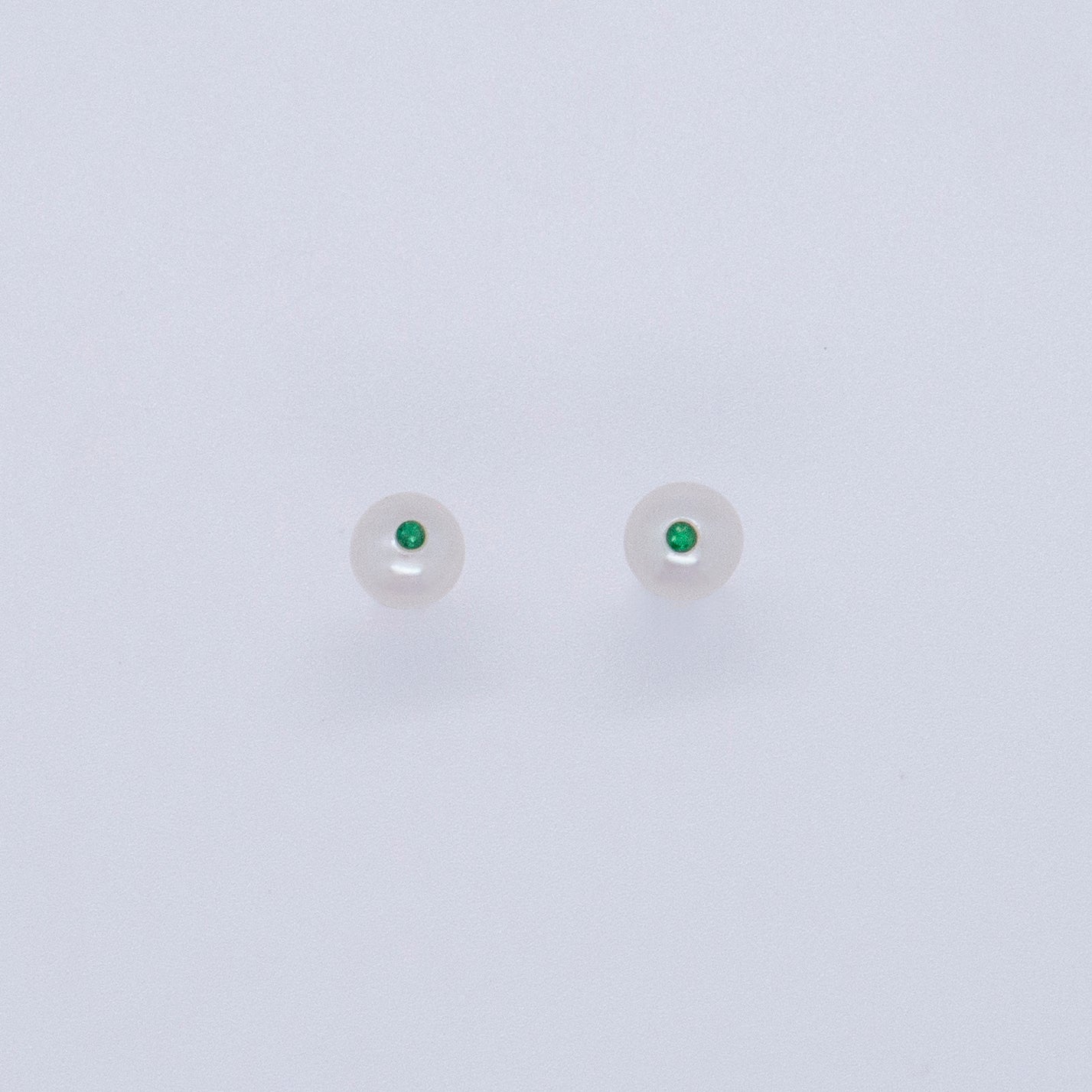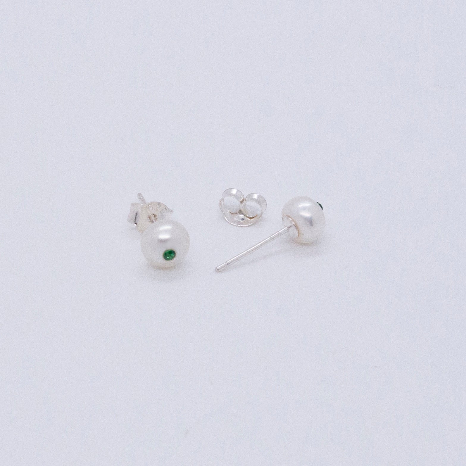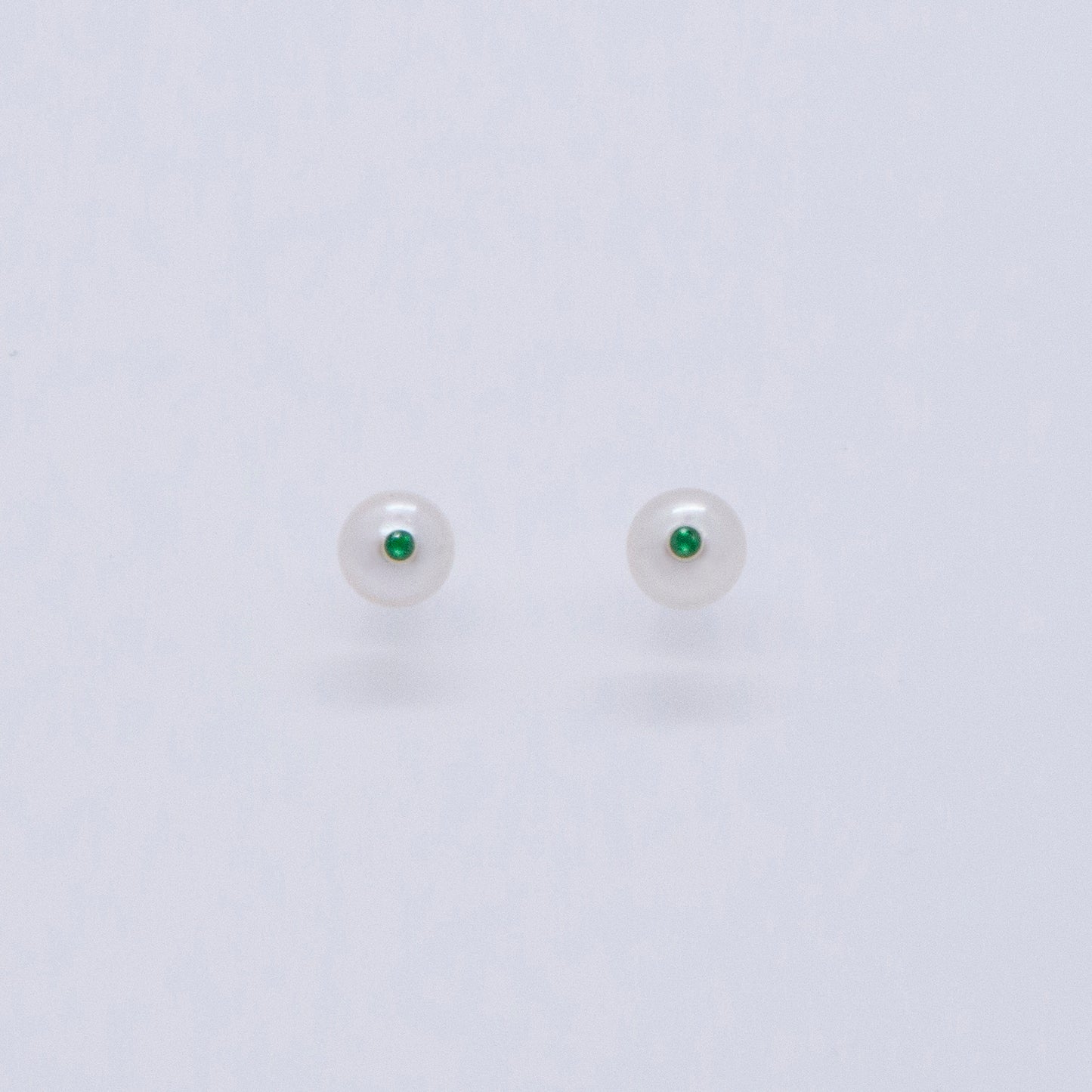 多重宇宙 簡約鋯石5mm白珍珠耳環-祖母綠色