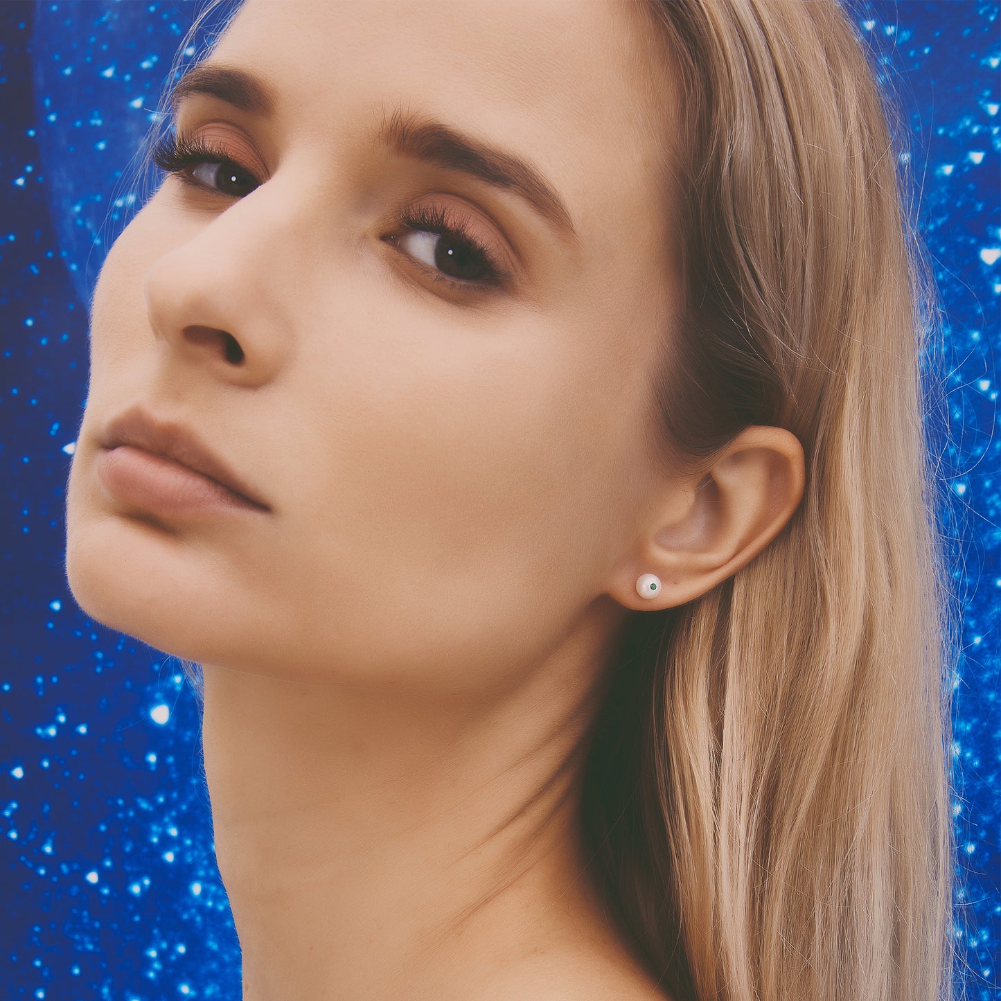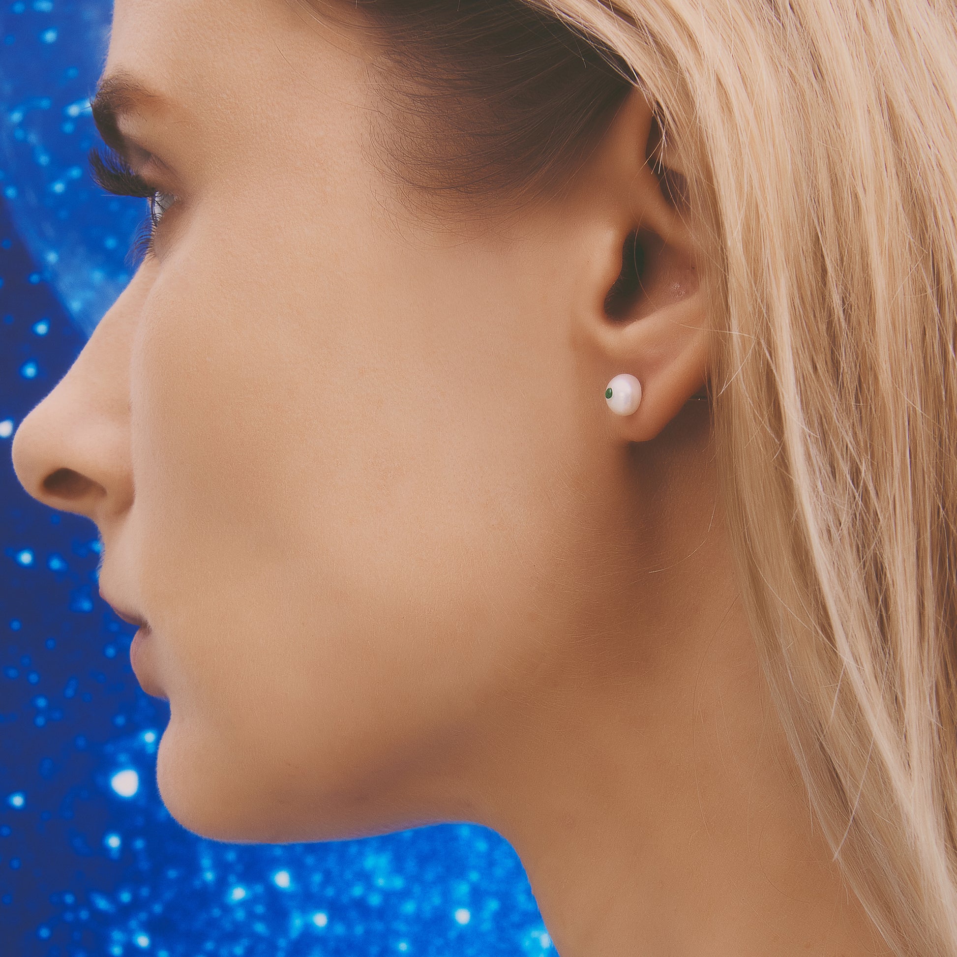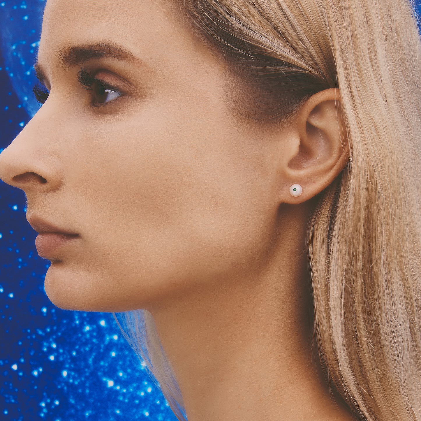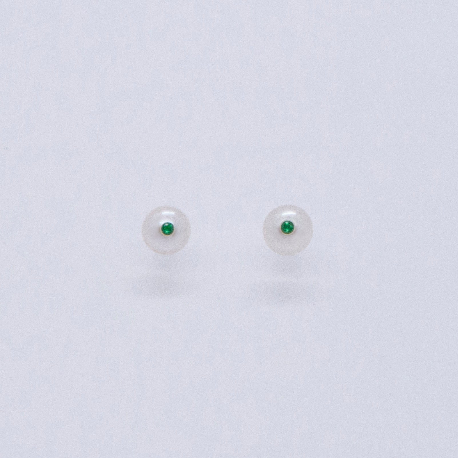 多重宇宙系列 - 簡約鋯石5mm白珍珠耳環 - 祖母綠色