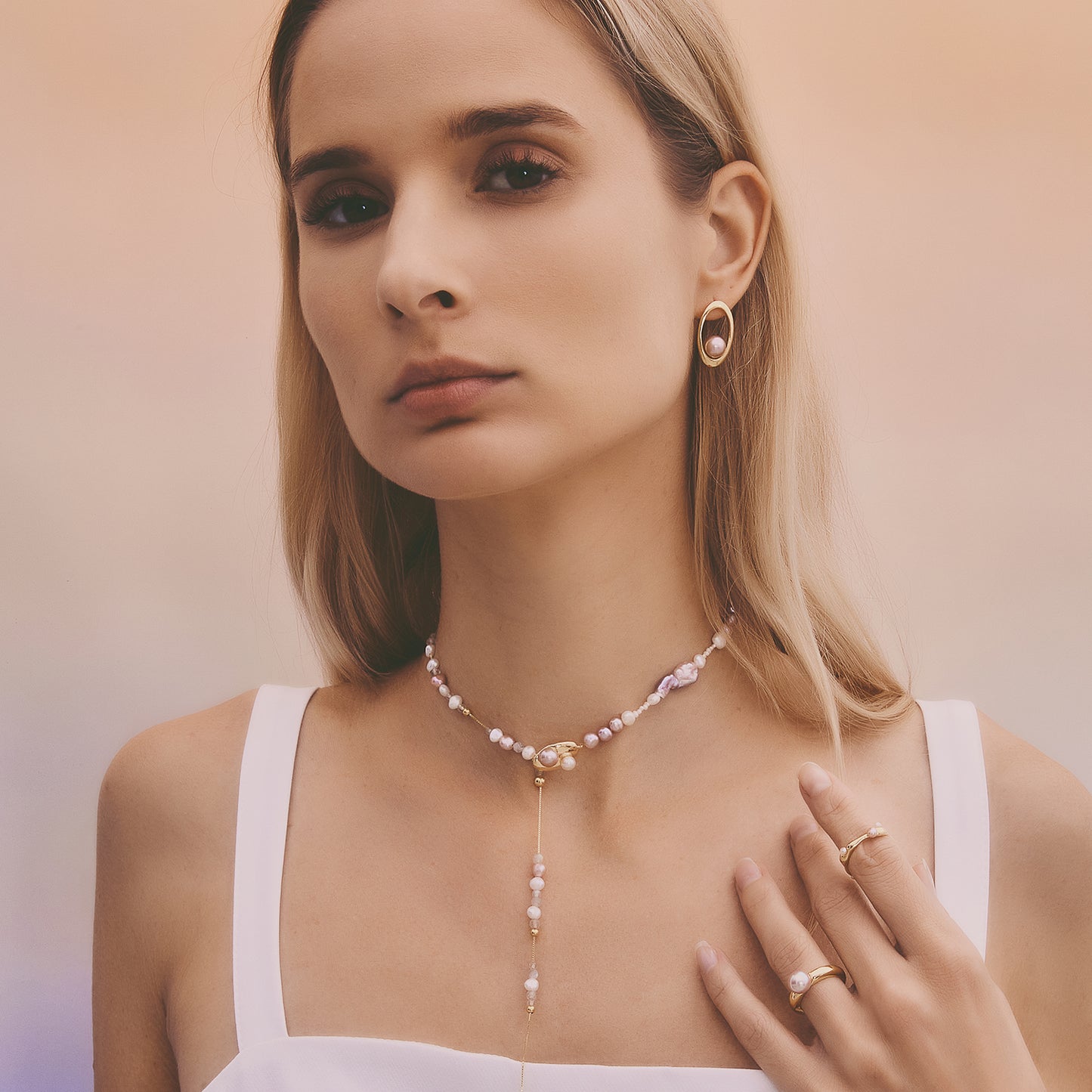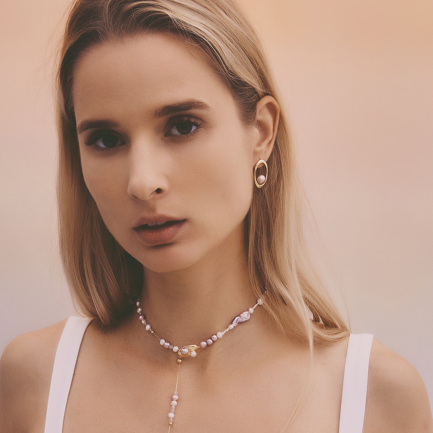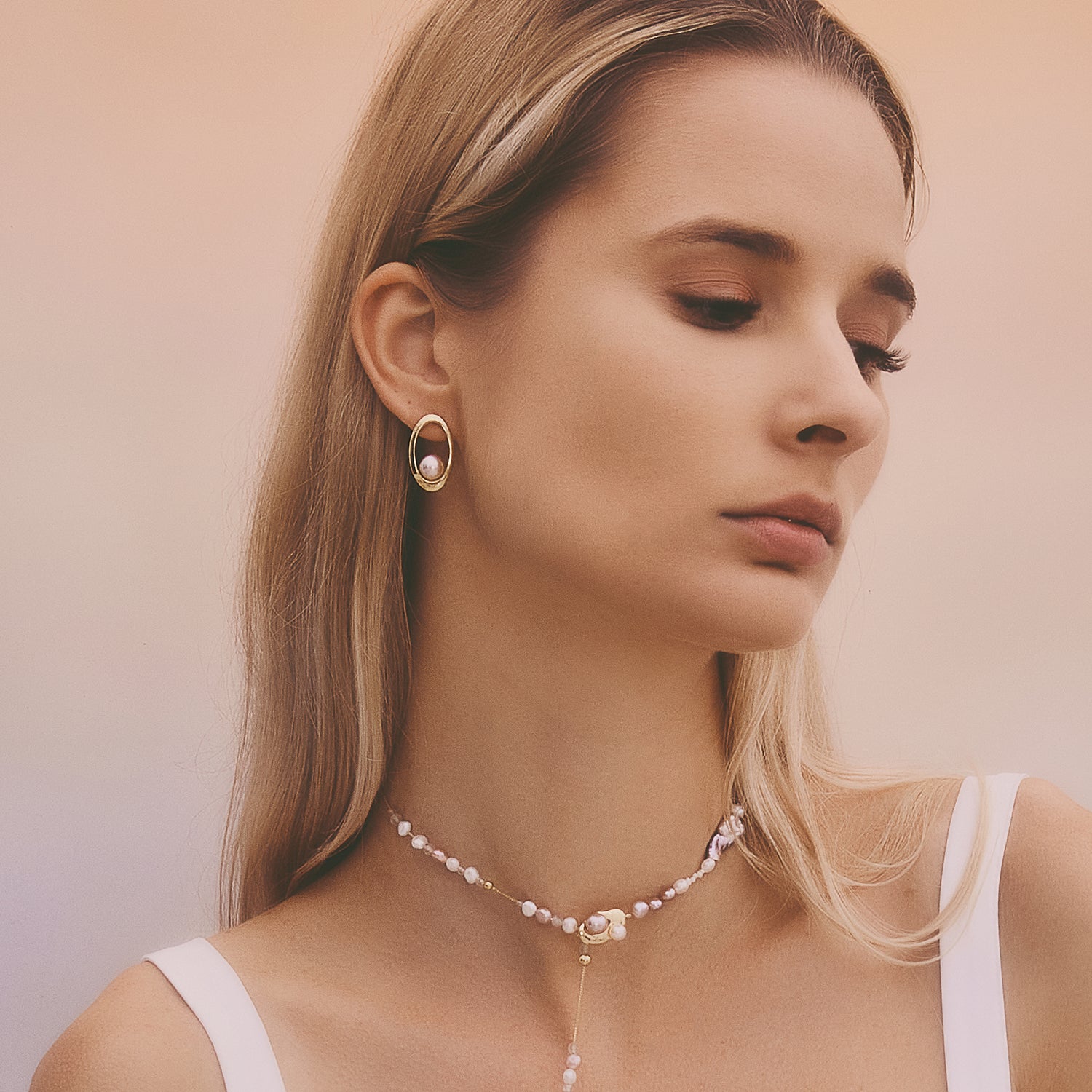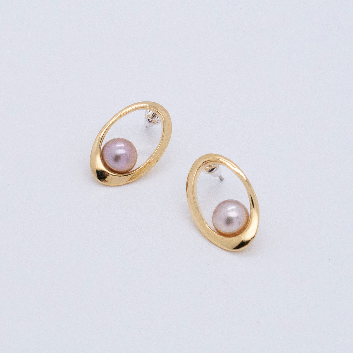 - 材質:黃銅厚鍍18K金、純銀耳針與後扣、天然淡水珍珠