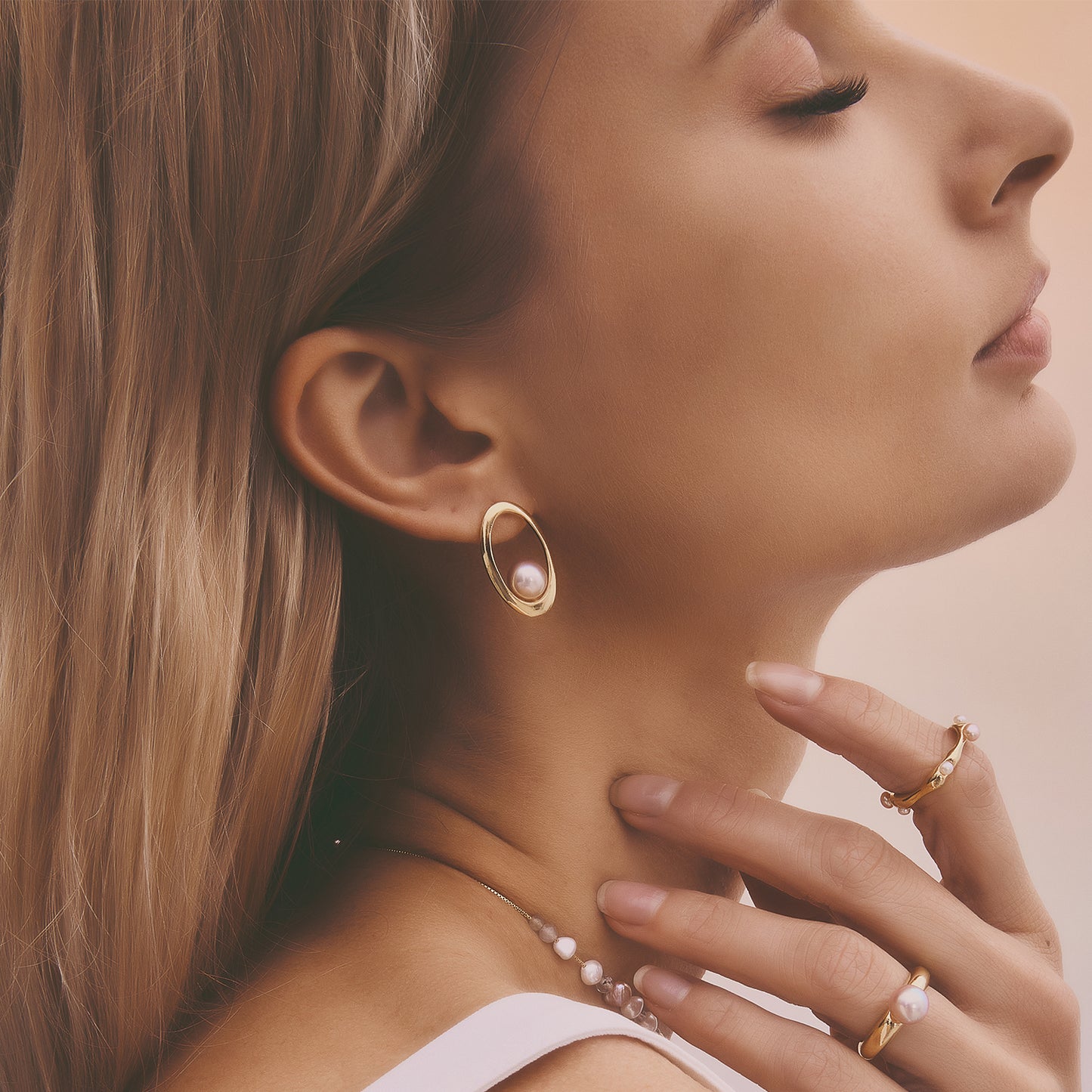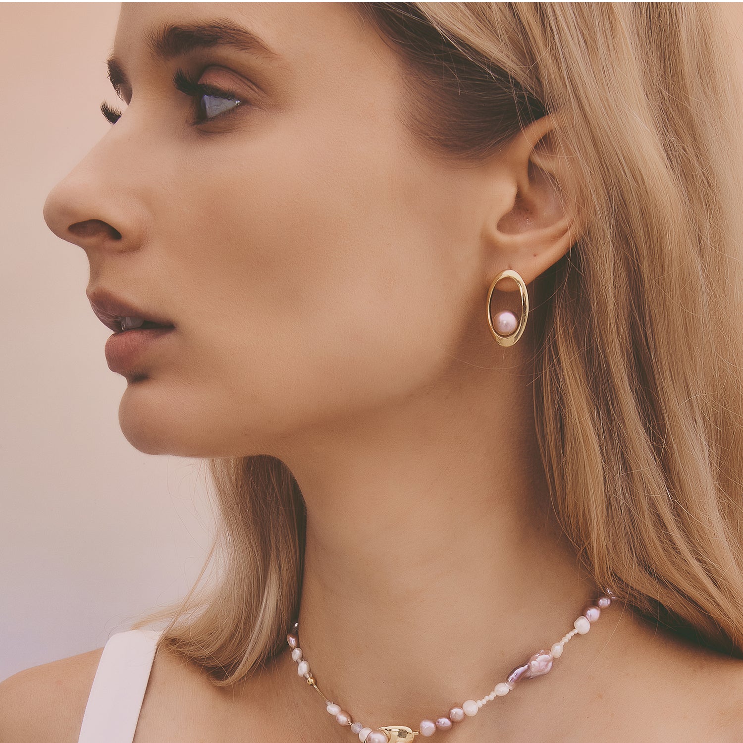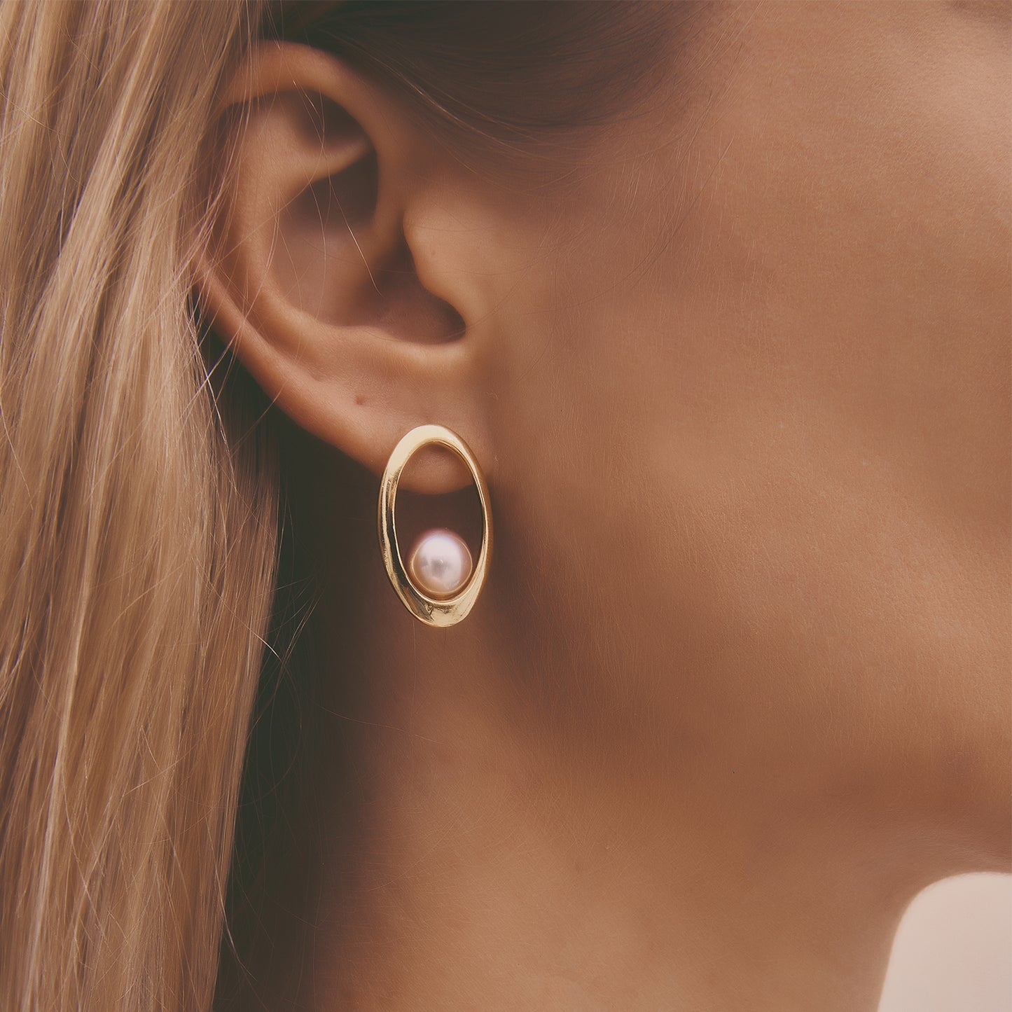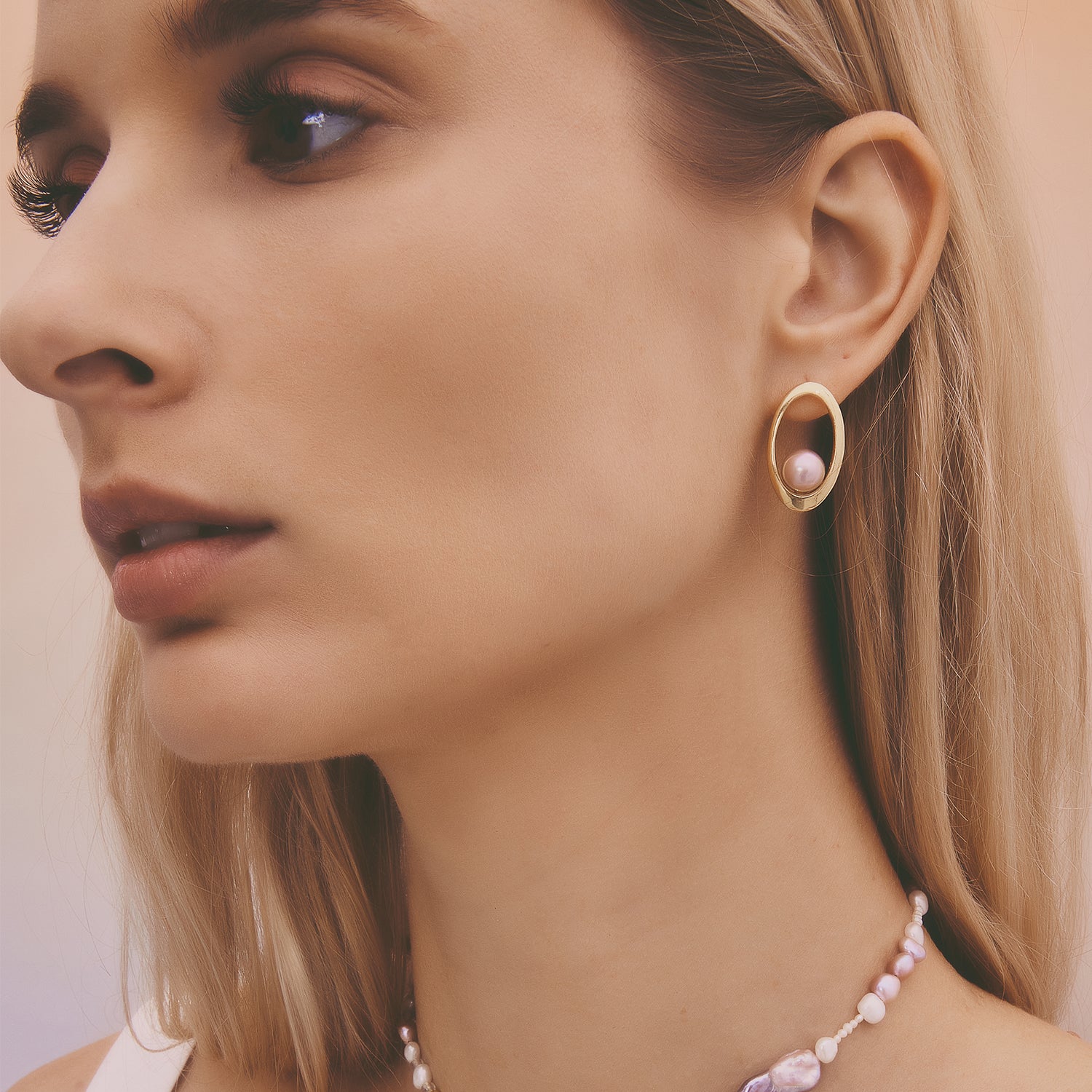 多重宇宙系列 - 簡約大珍珠耳環 - 厚鍍18K金