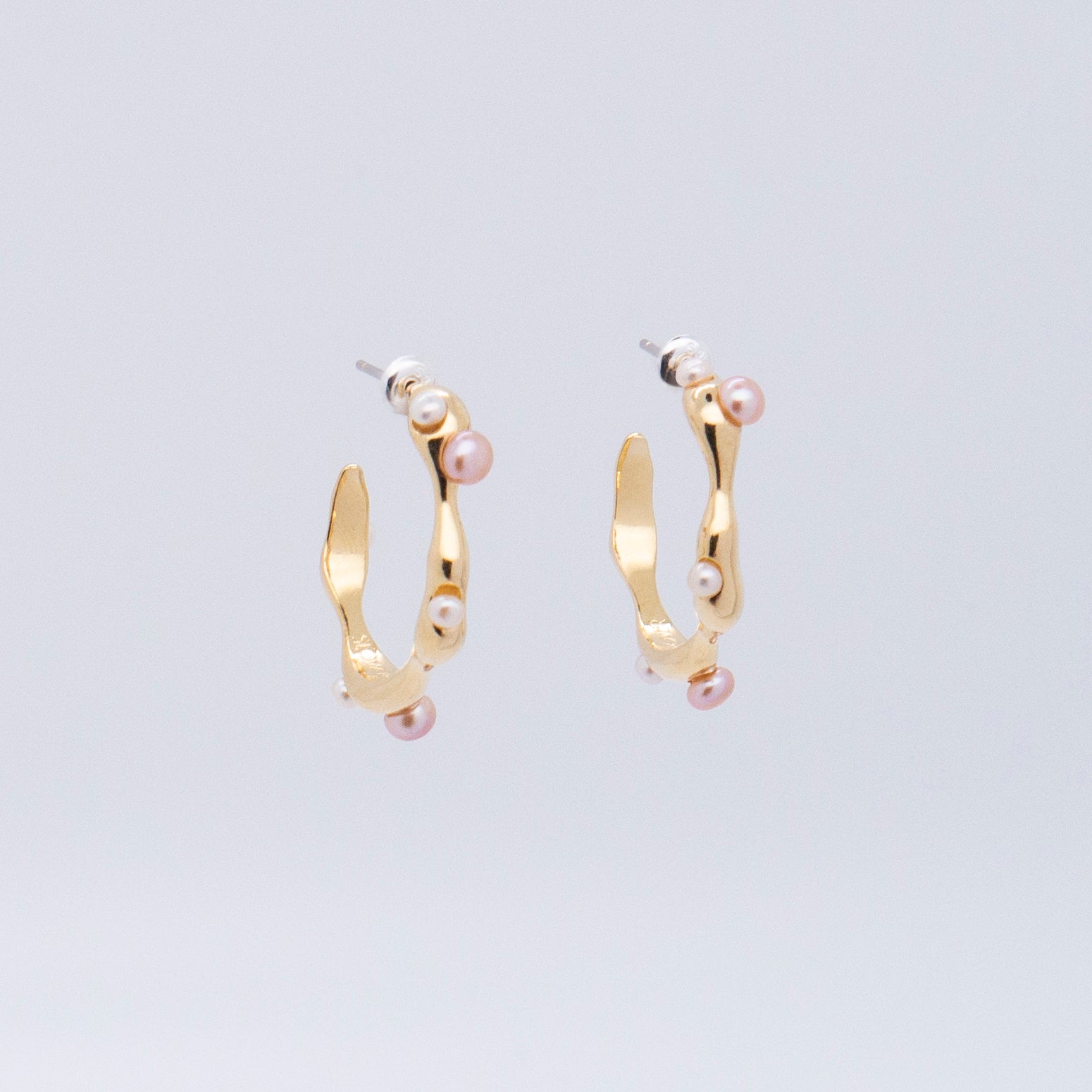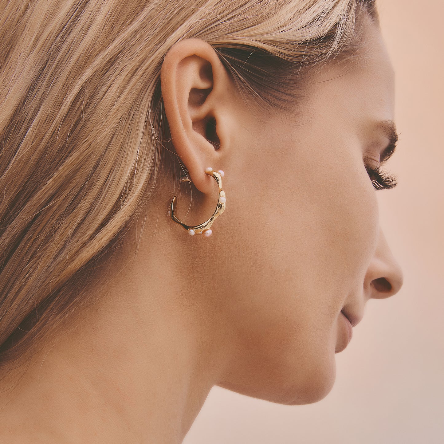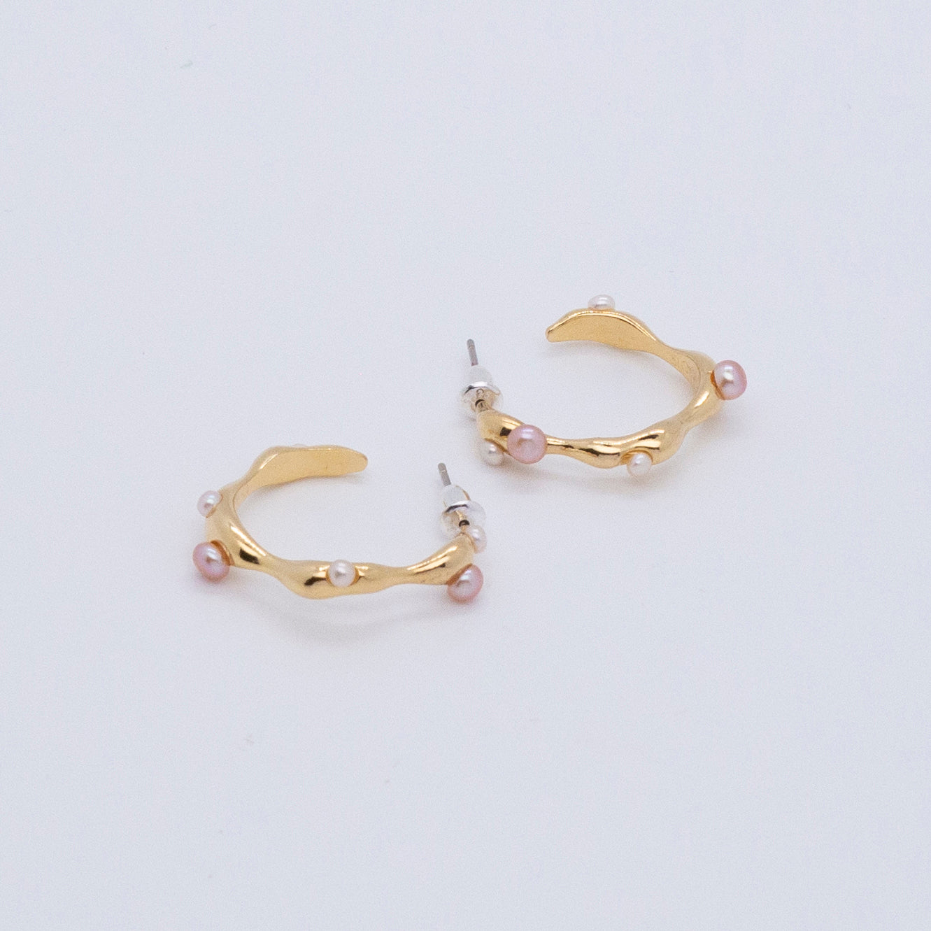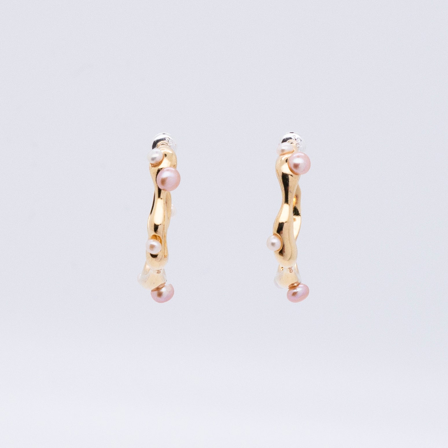 多重宇宙系列 - 流動小珍珠耳環 - 厚鍍18K金