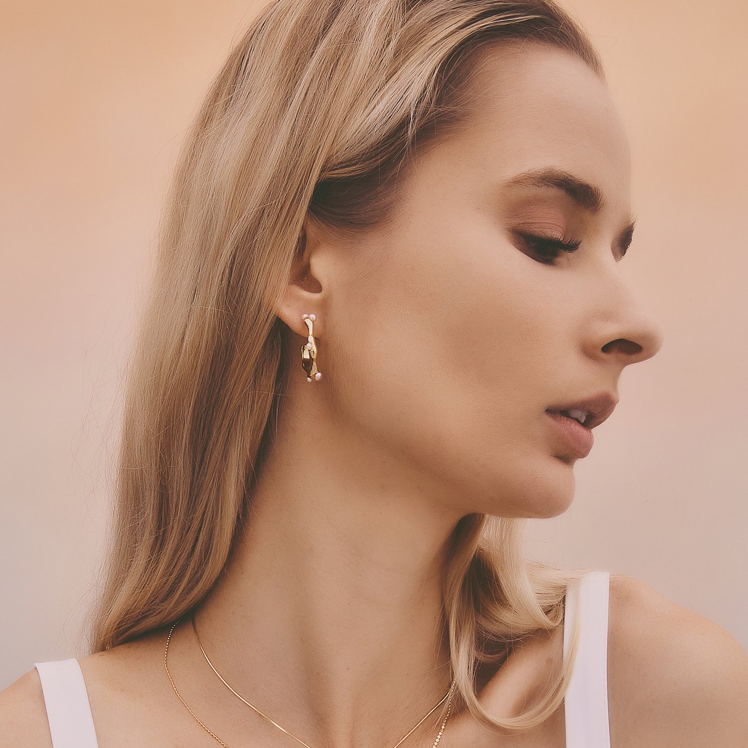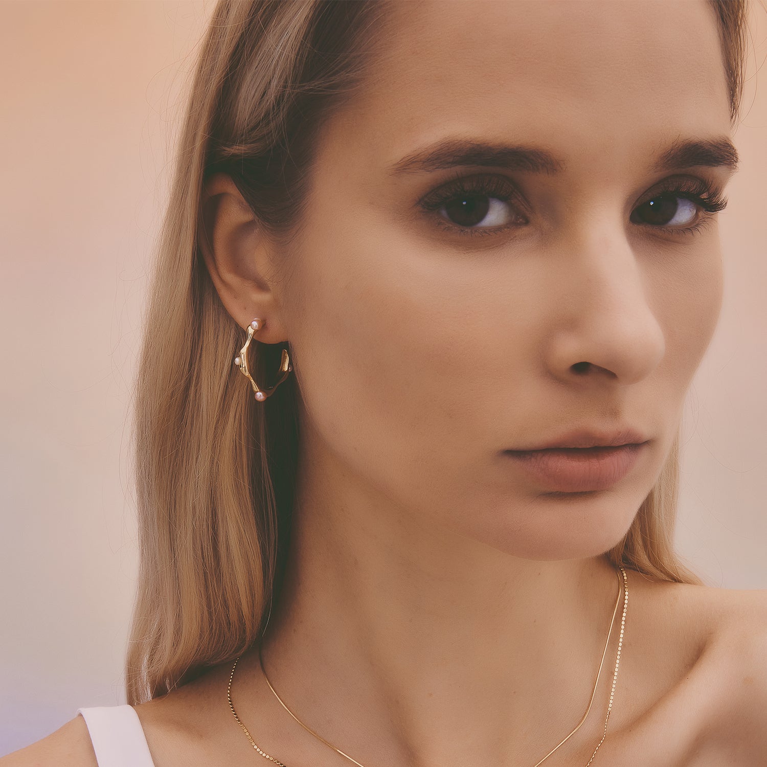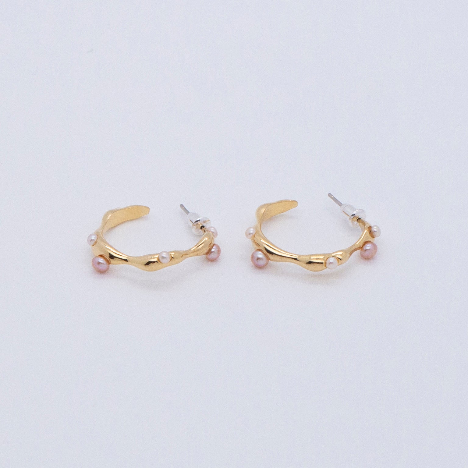 多重宇宙系列 - 流動小珍珠耳環 - 厚鍍18K金