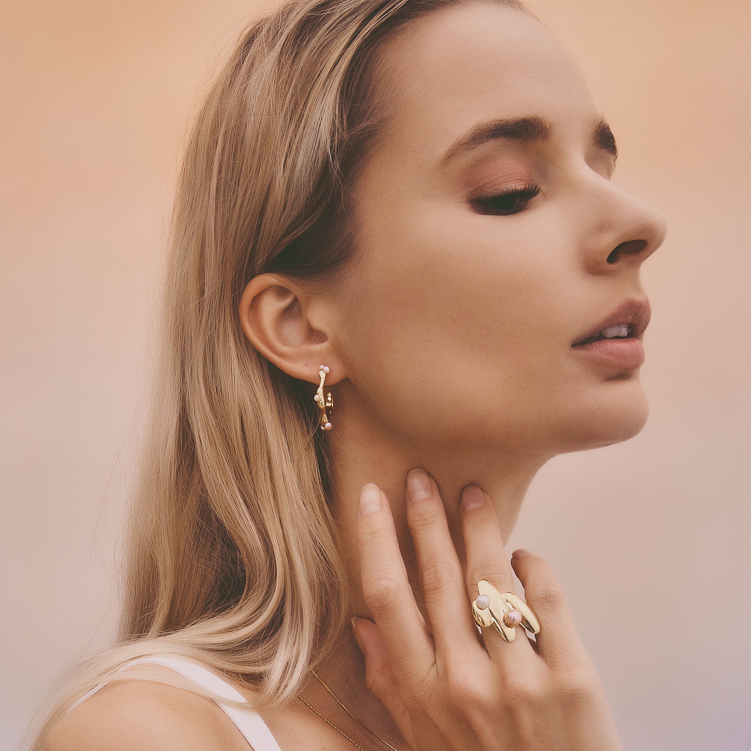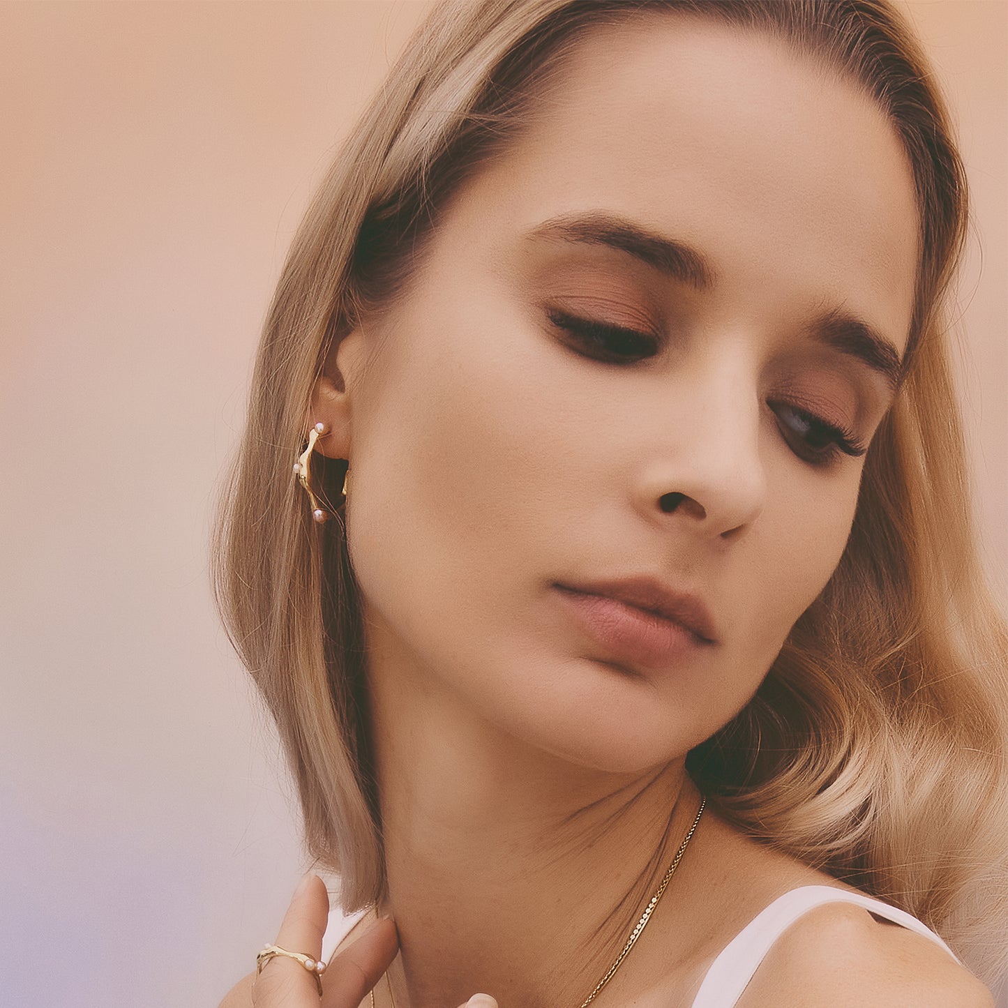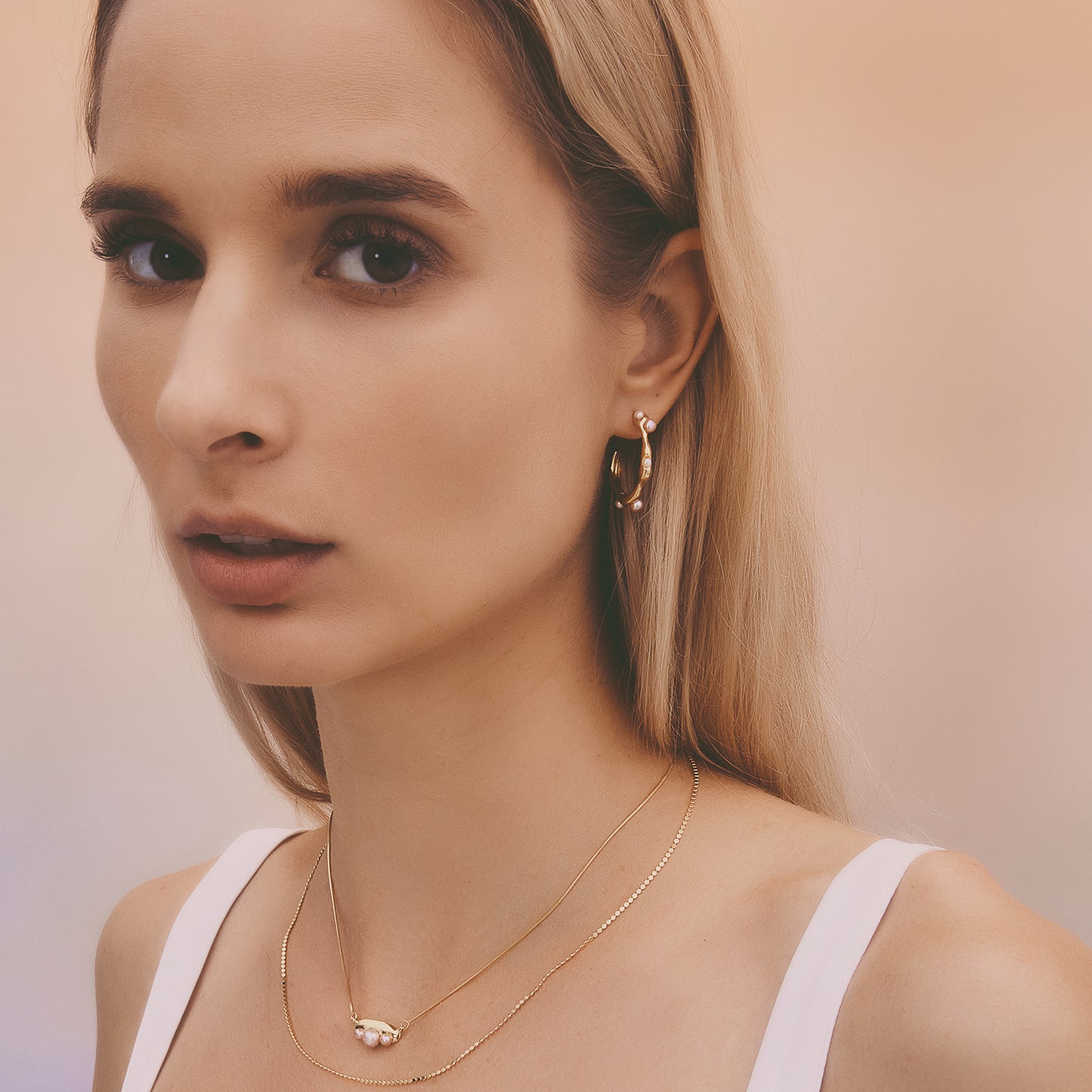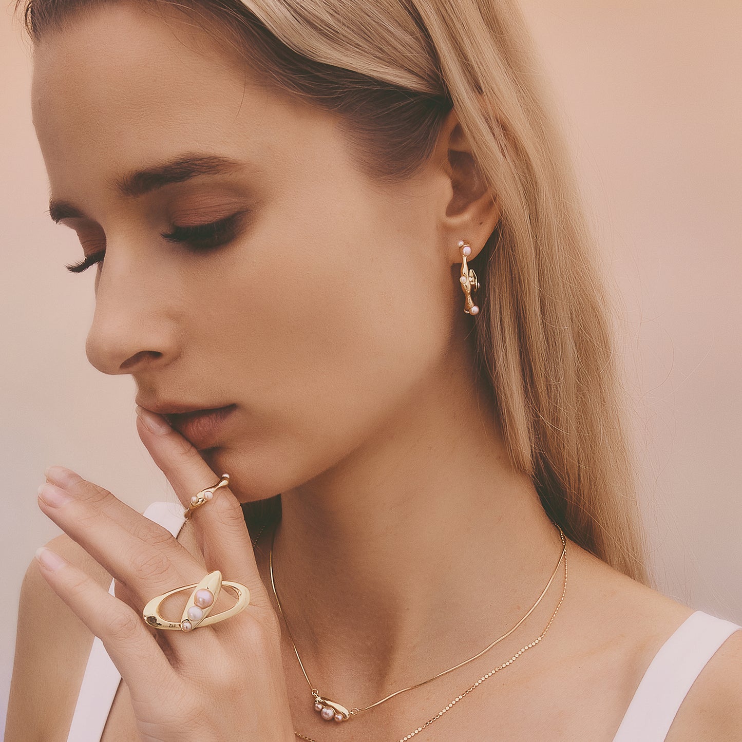 多重宇宙系列 - 流動小珍珠耳環 - 厚鍍18K金