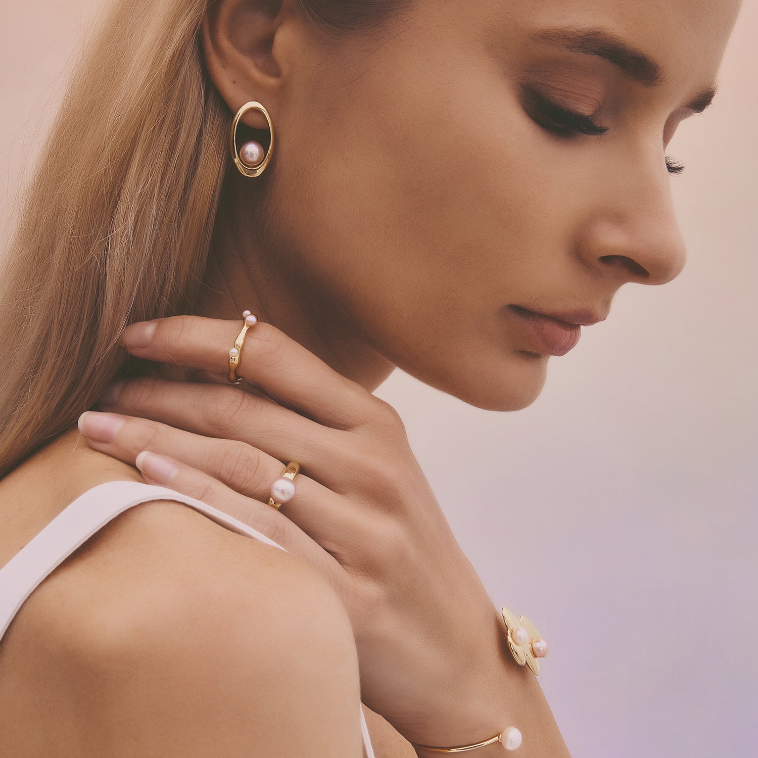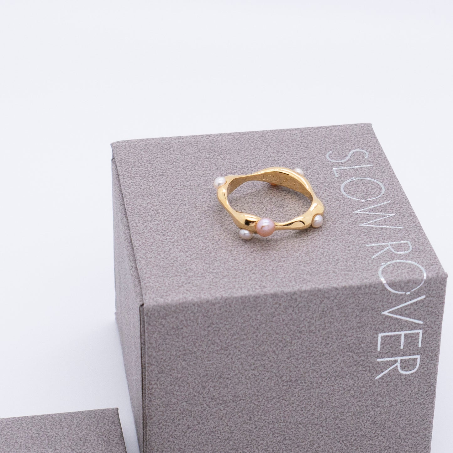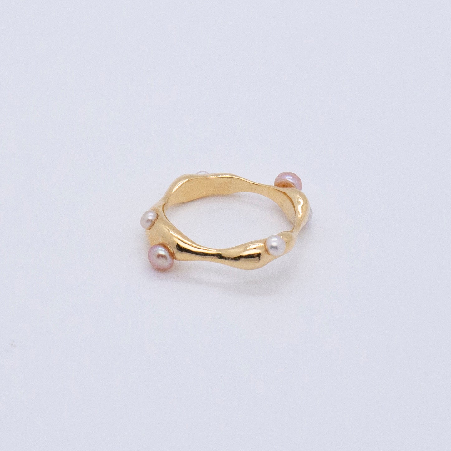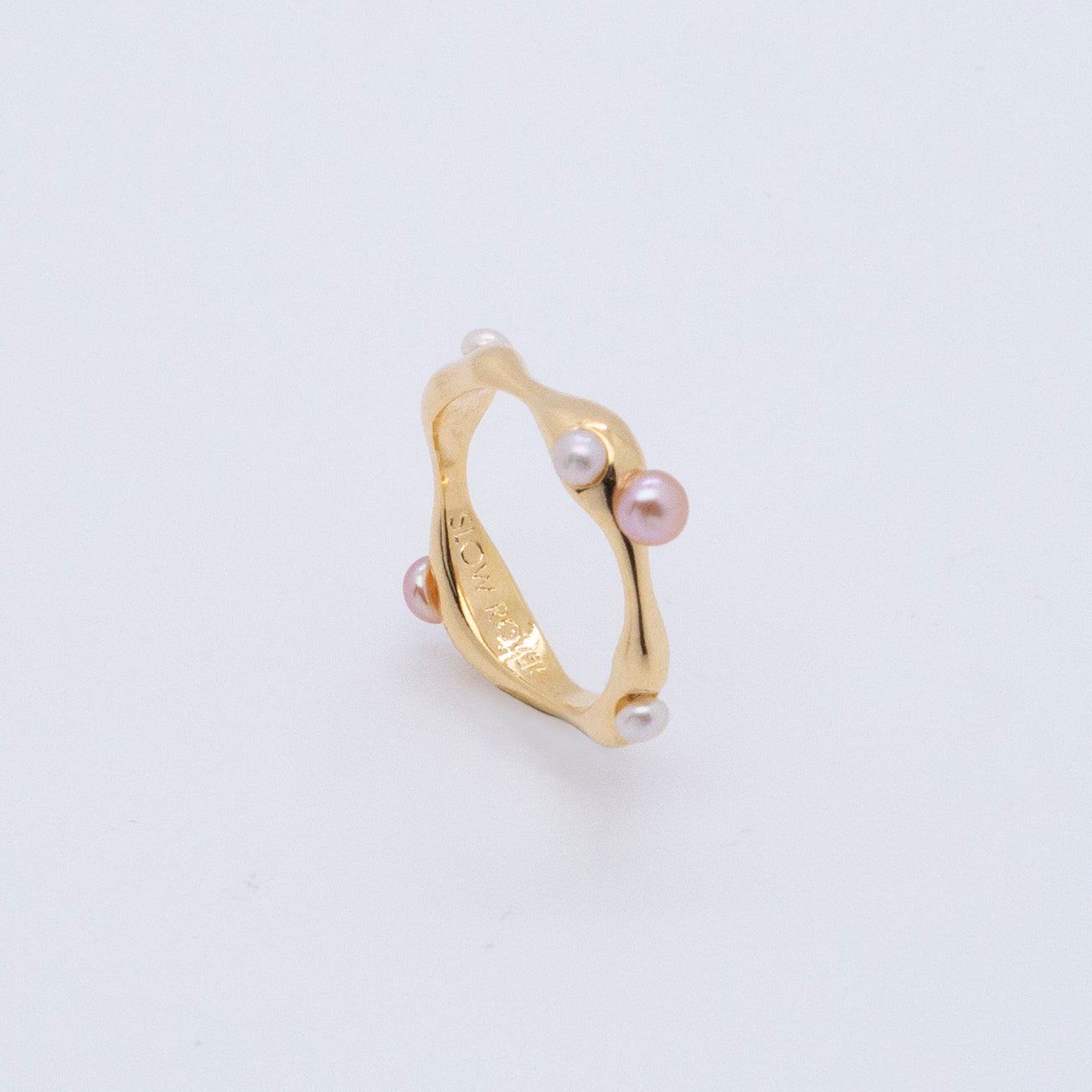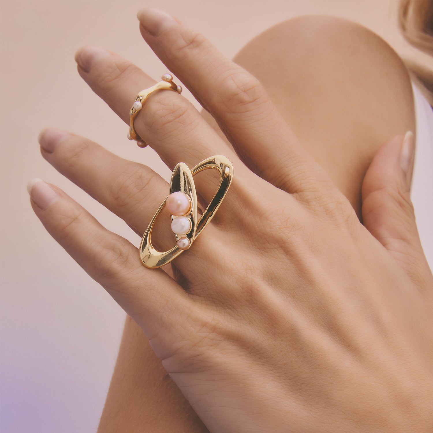 多重宇宙 流動小珍珠戒指-厚鍍18K金