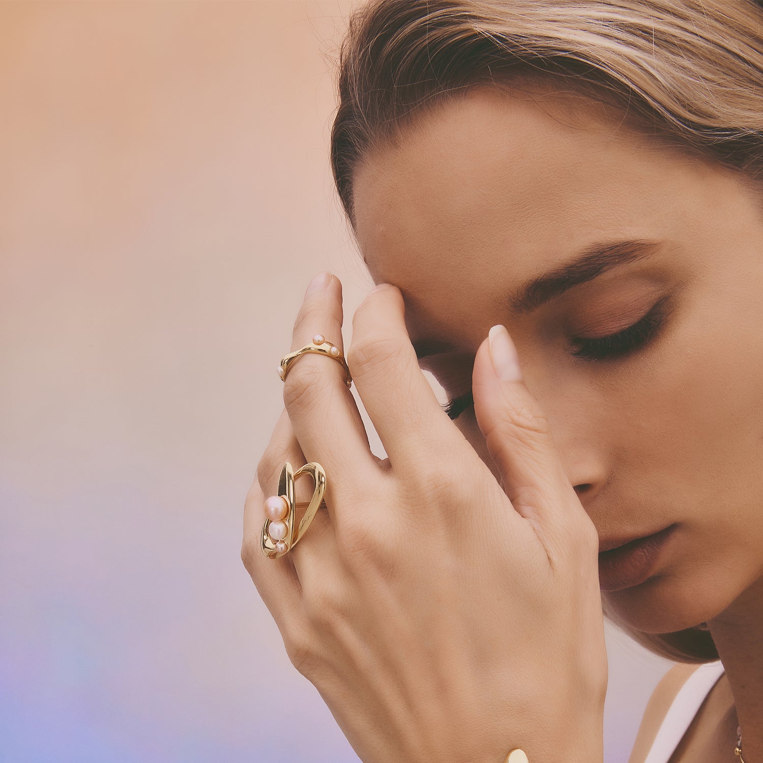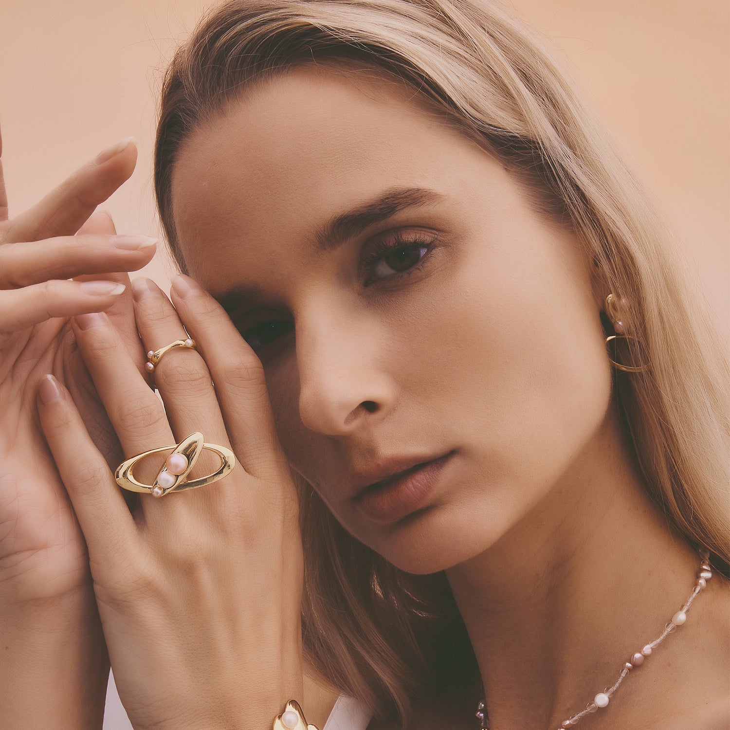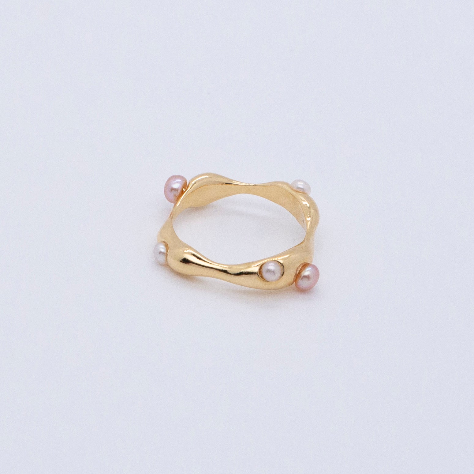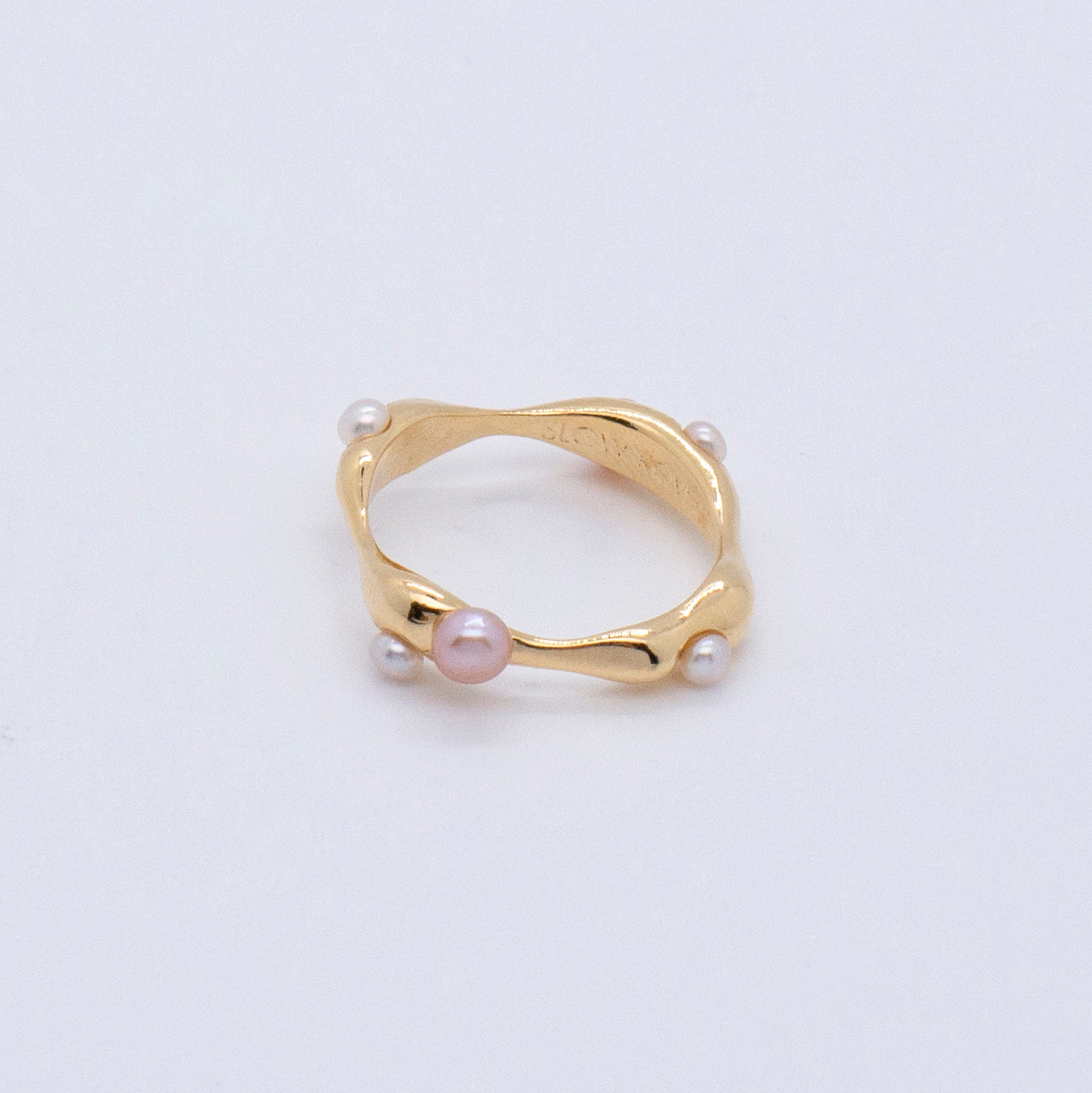 多重宇宙系列 - 流動小珍珠戒指 - 厚鍍18K金