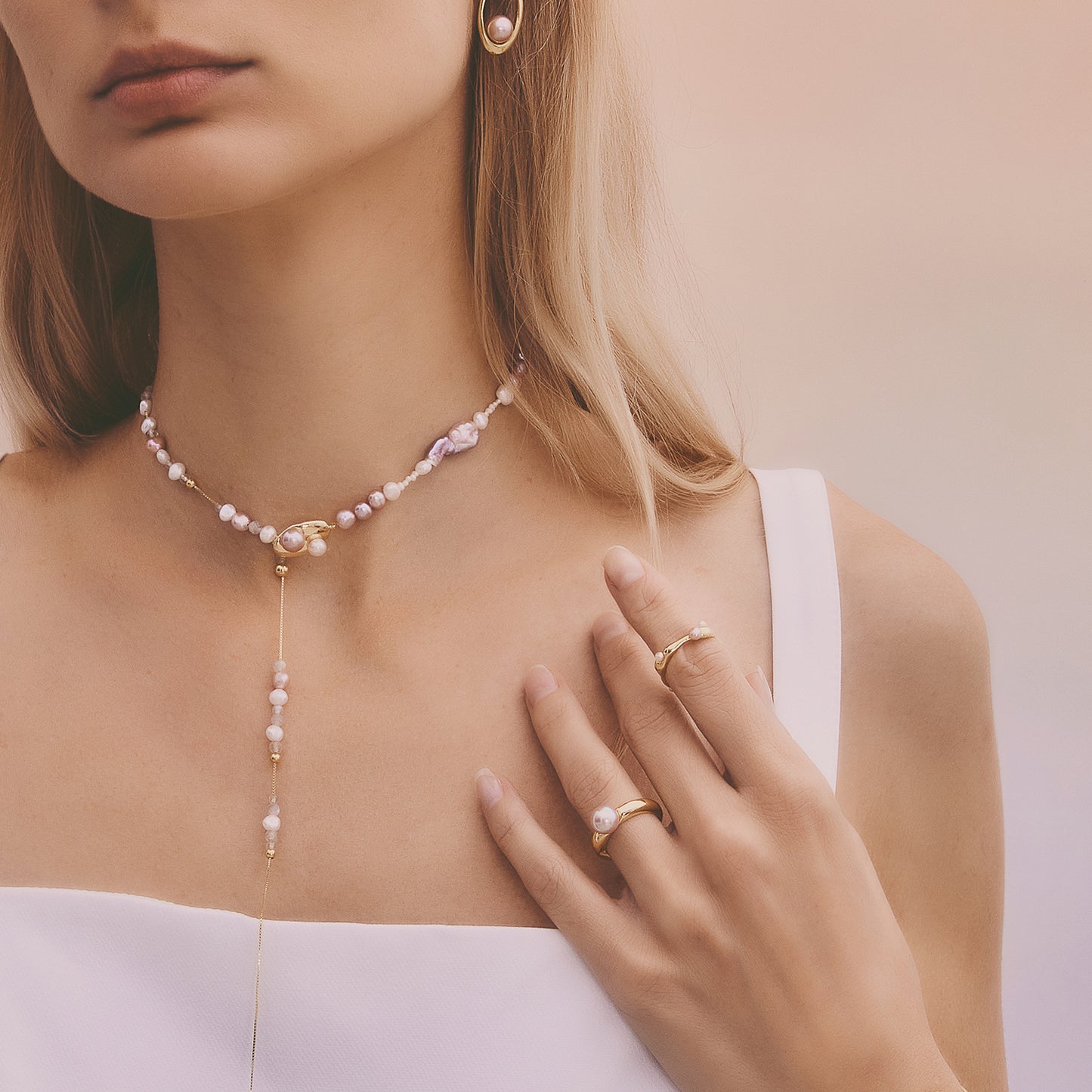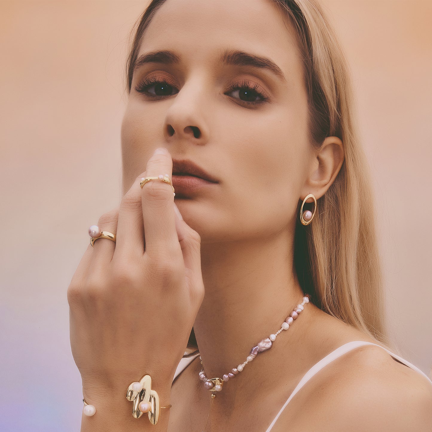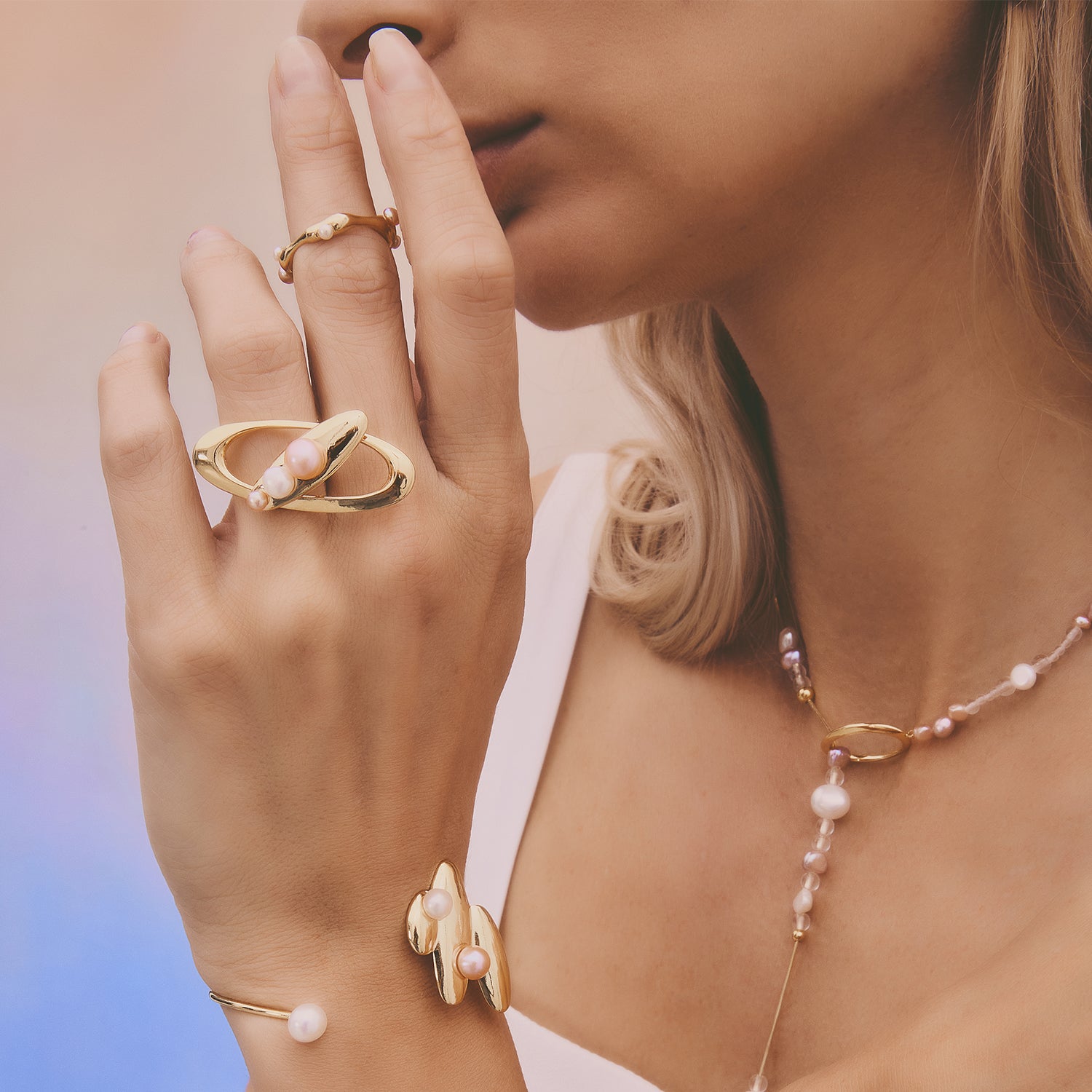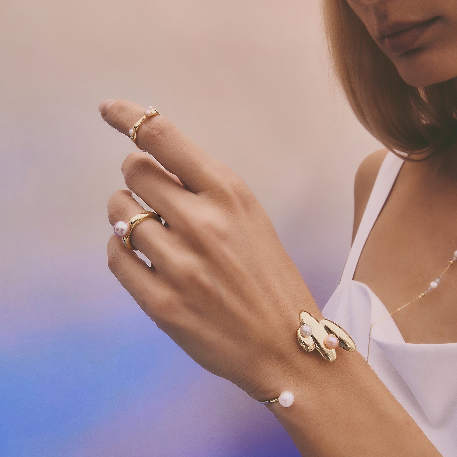 多重宇宙系列 - 流動小珍珠戒指 - 厚鍍18K金