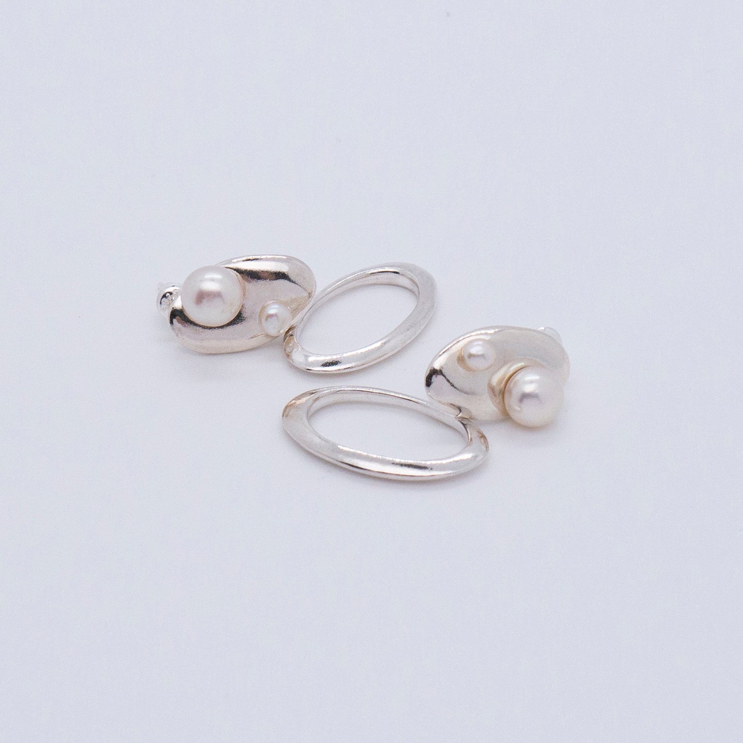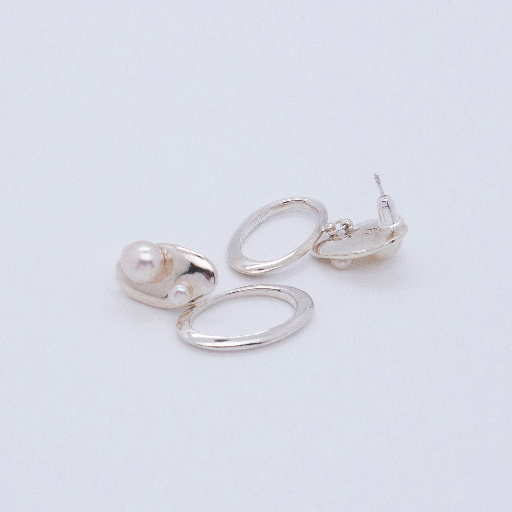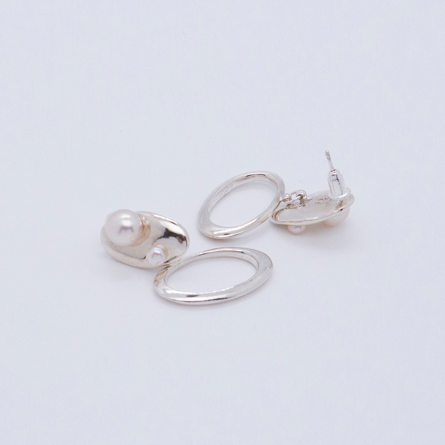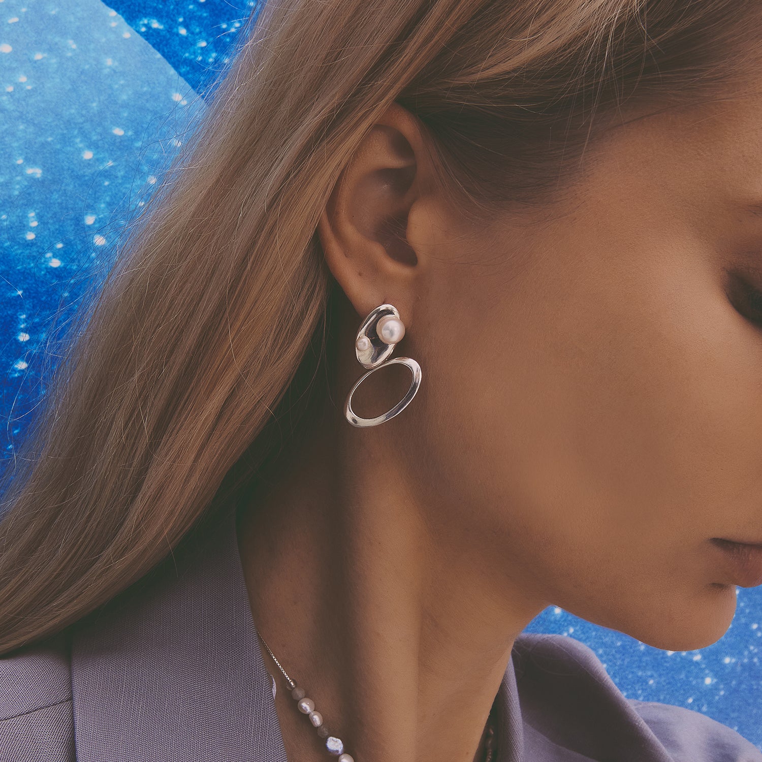 多重宇宙系列 - 平行時空珍珠垂墜耳環 - 純銀
