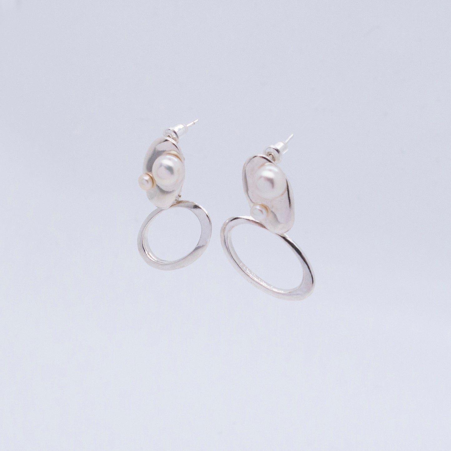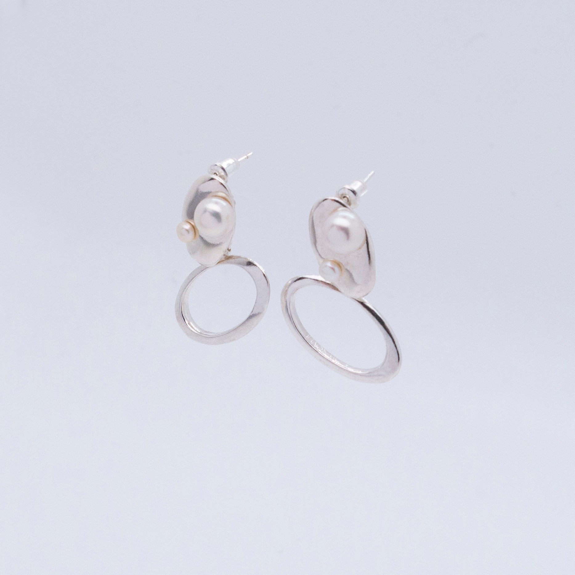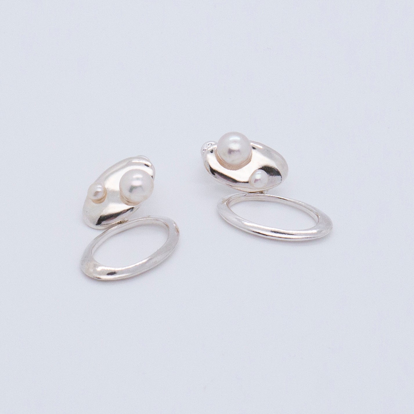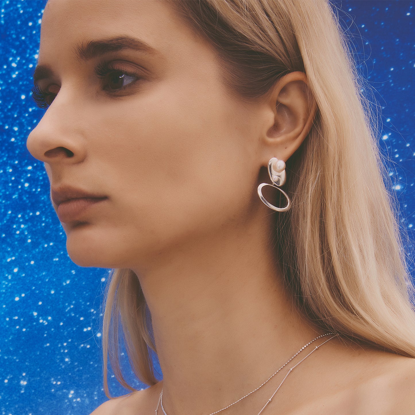 多重宇宙系列 - 平行時空珍珠垂墜耳環 - 純銀