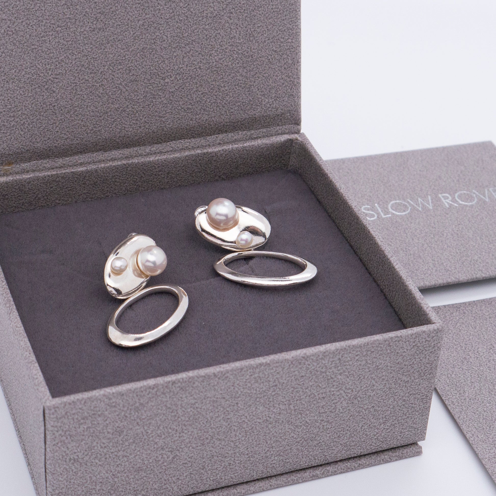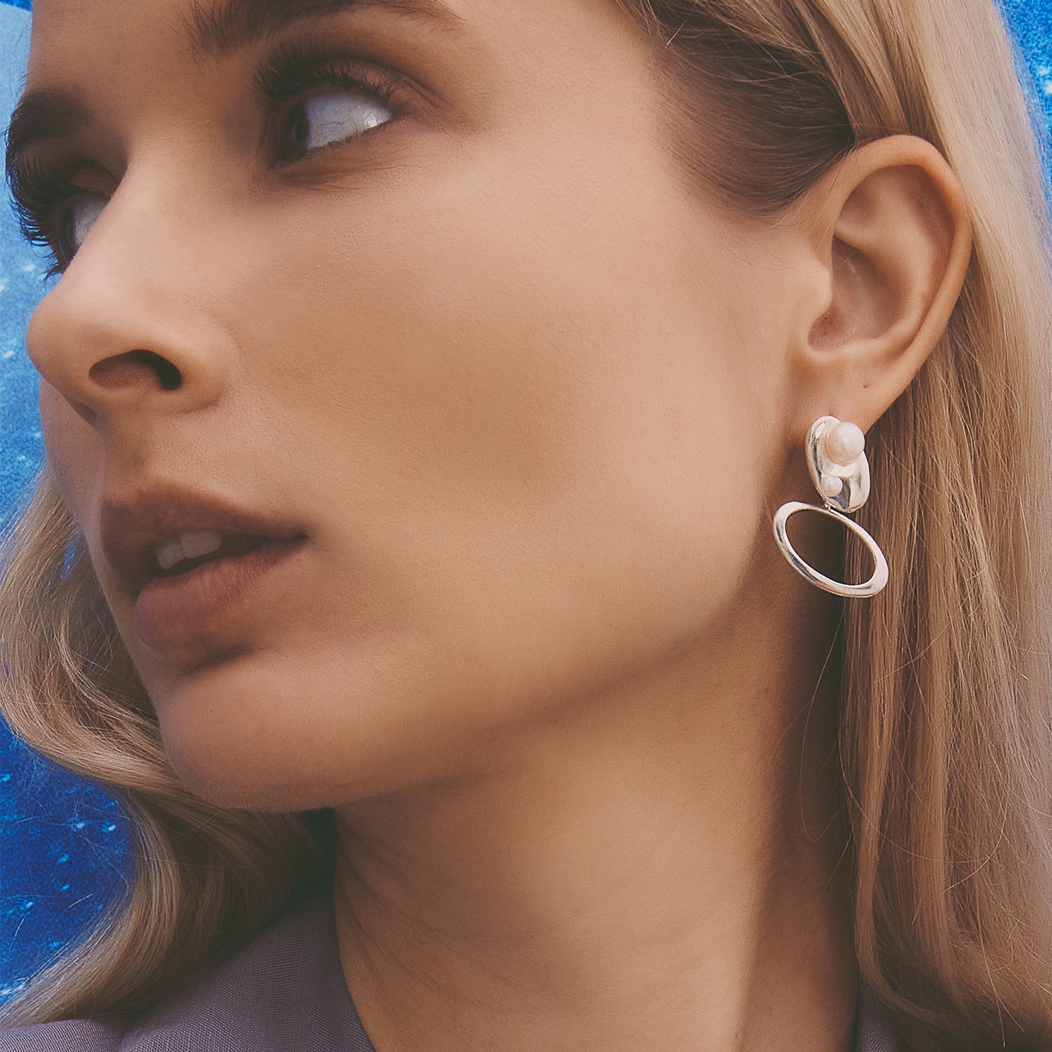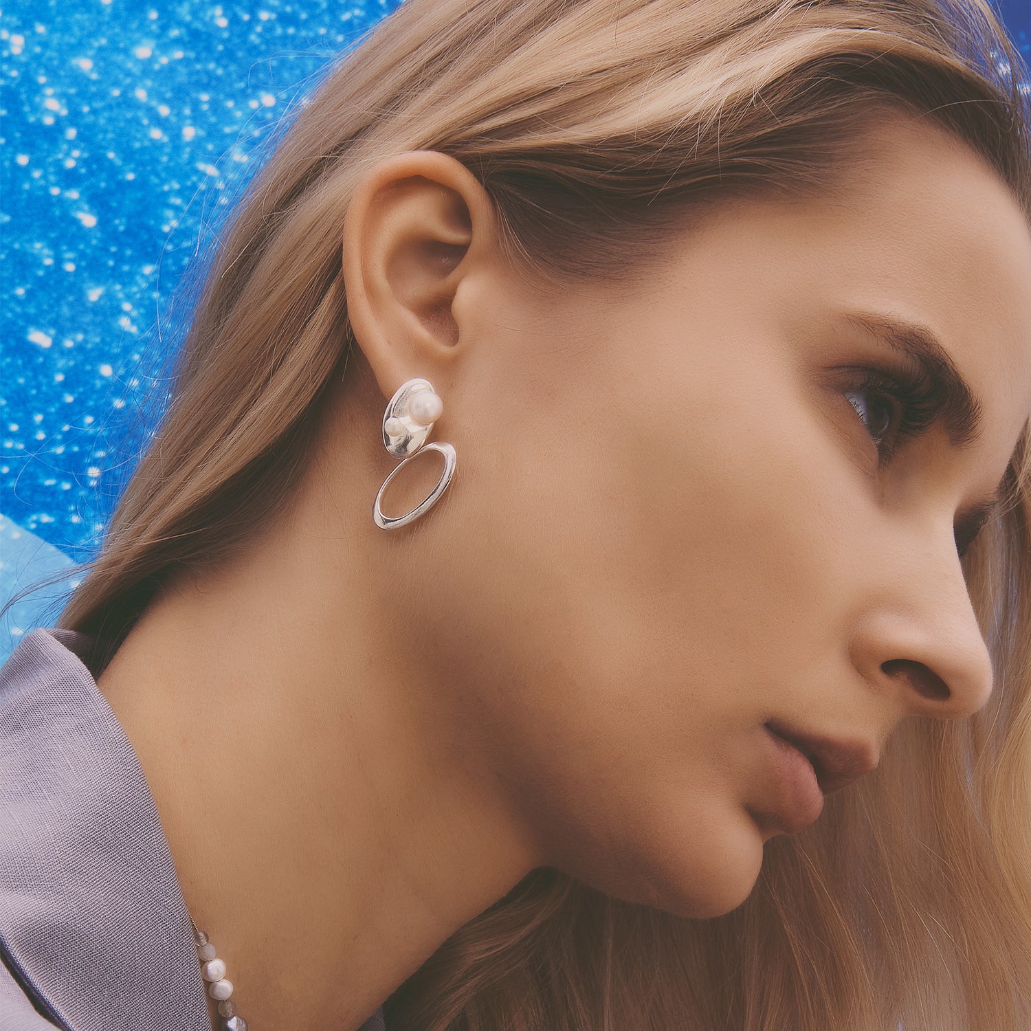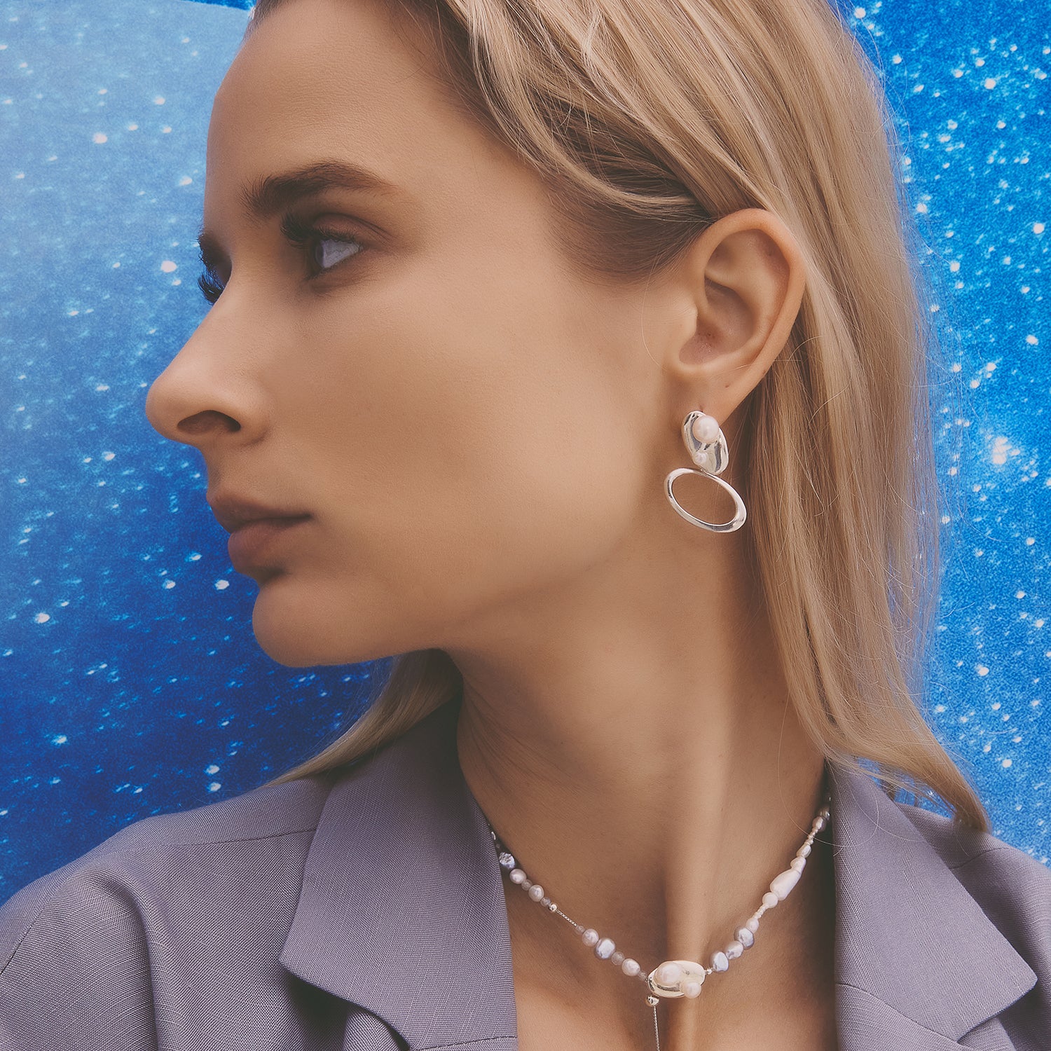 多重宇宙系列 - 平行時空珍珠垂墜耳環 - 純銀