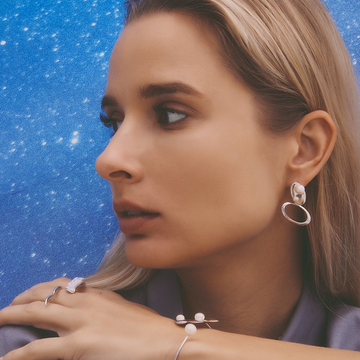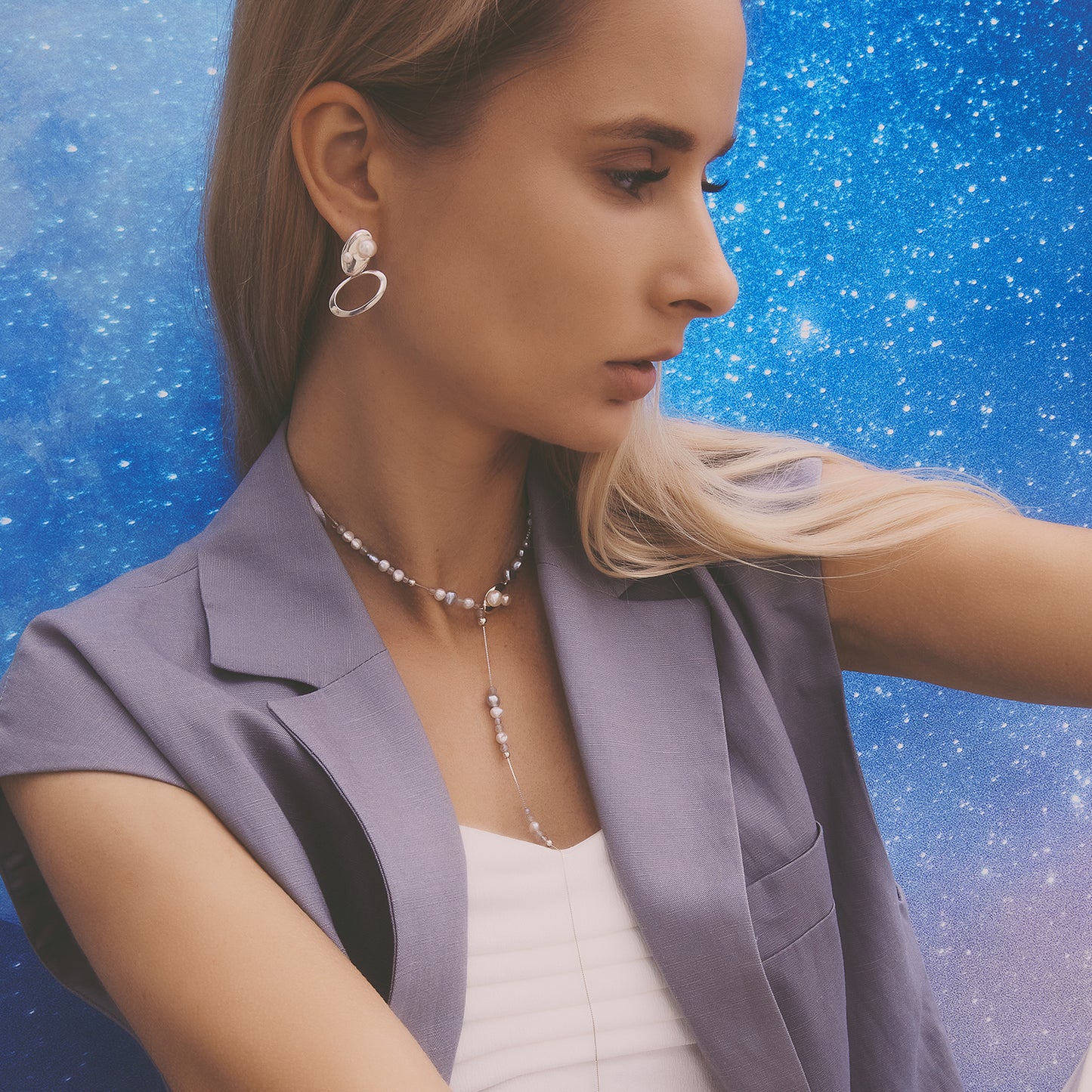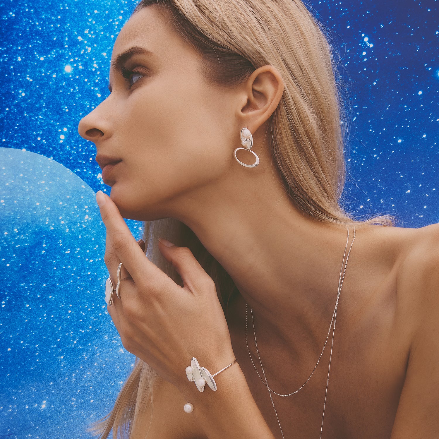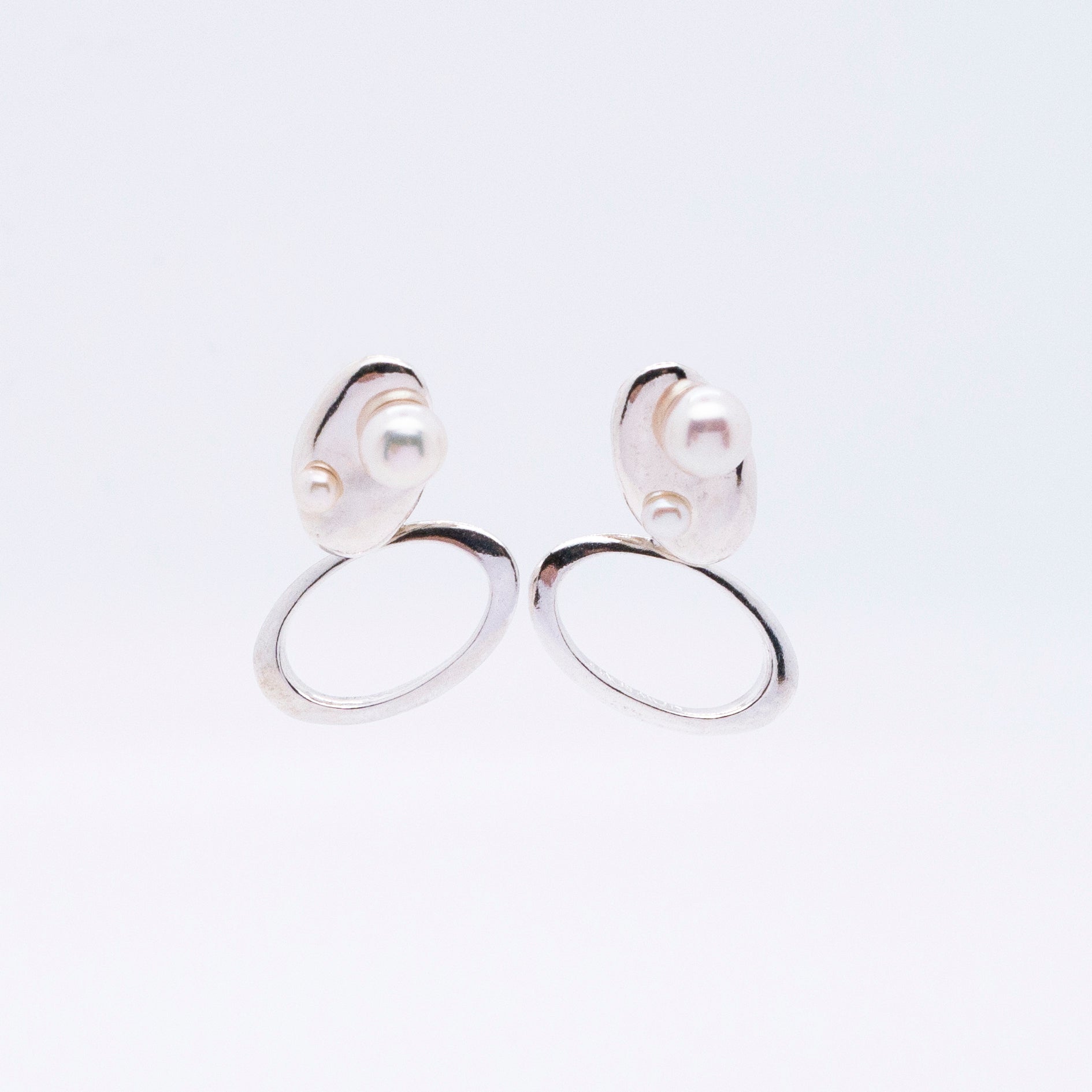 多重宇宙系列 - 平行時空珍珠垂墜耳環 - 純銀