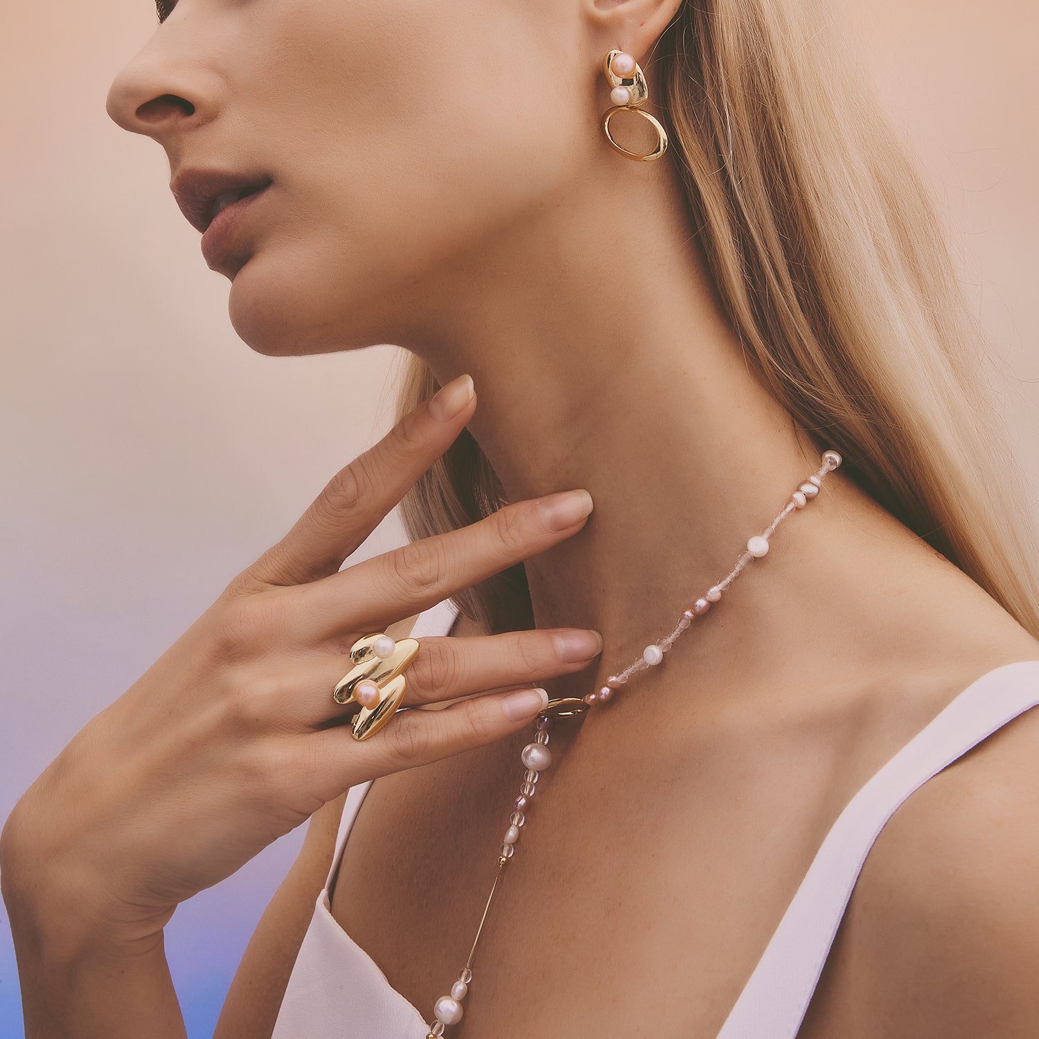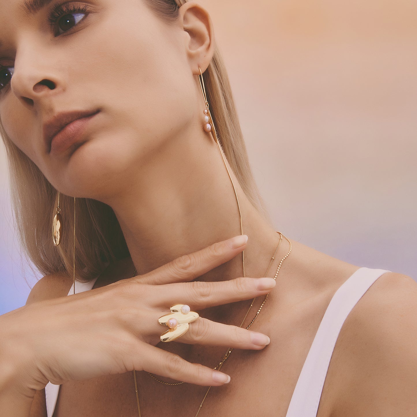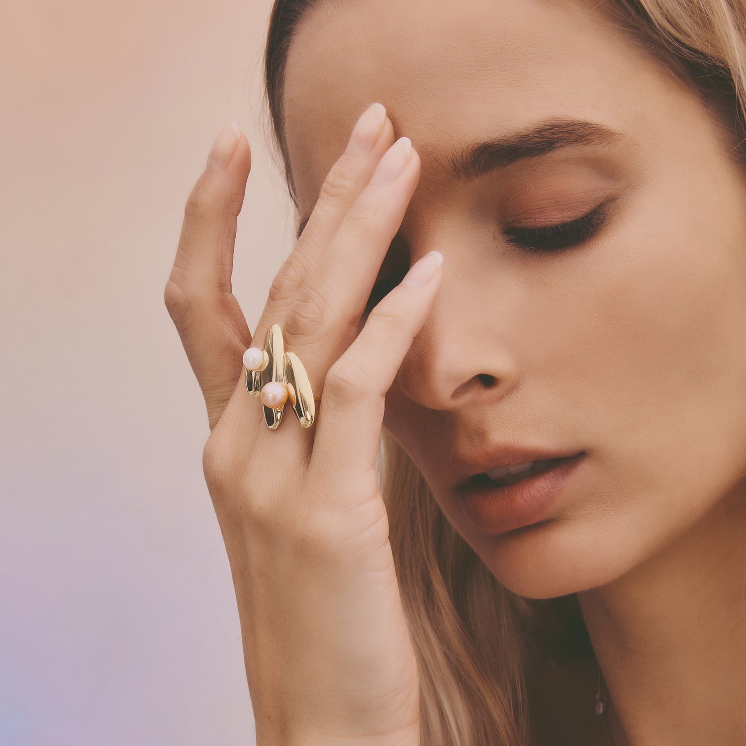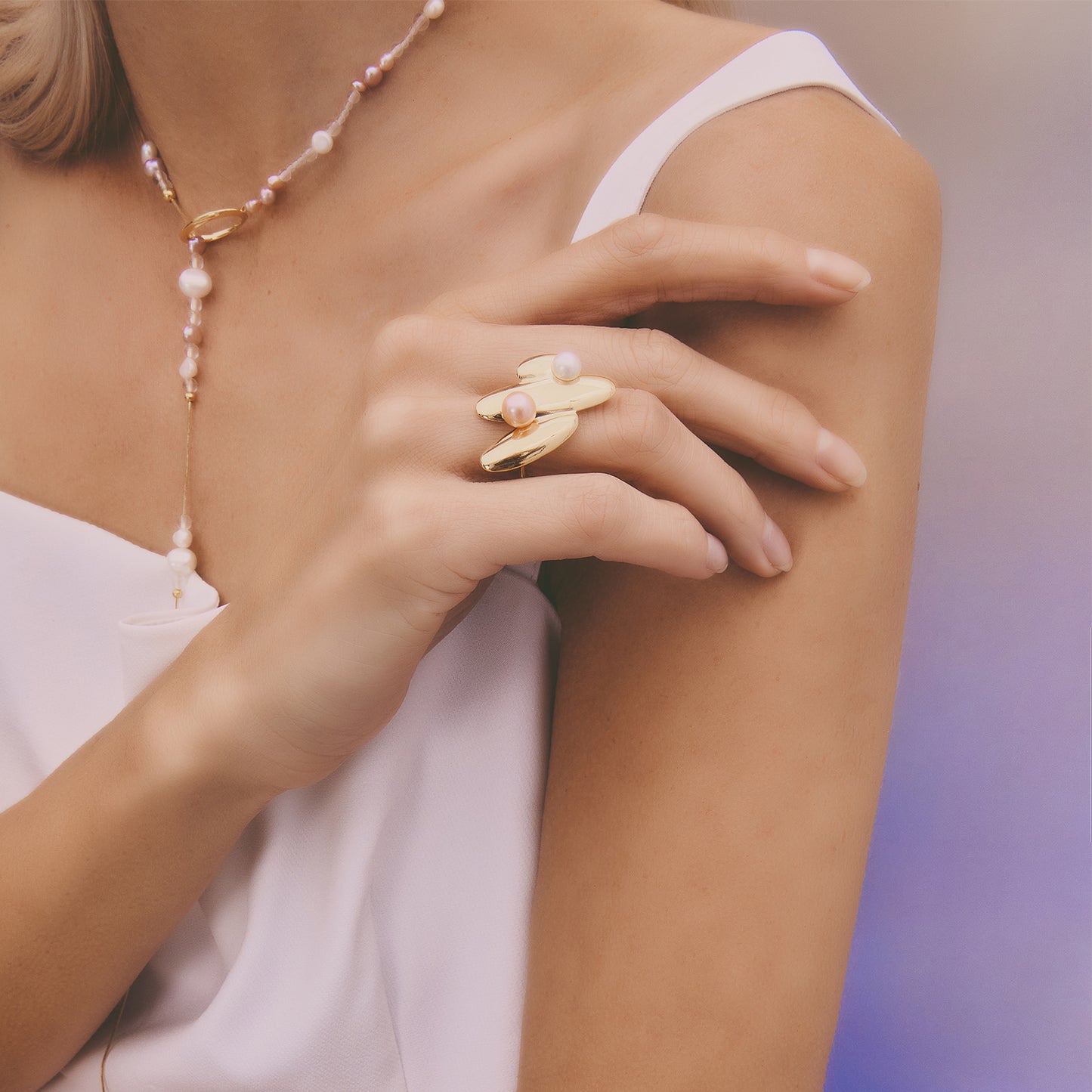 多重宇宙系列 - 平行時空珍珠戒指 - 厚鍍18K金
