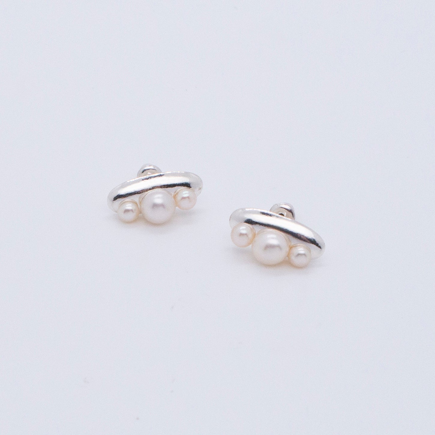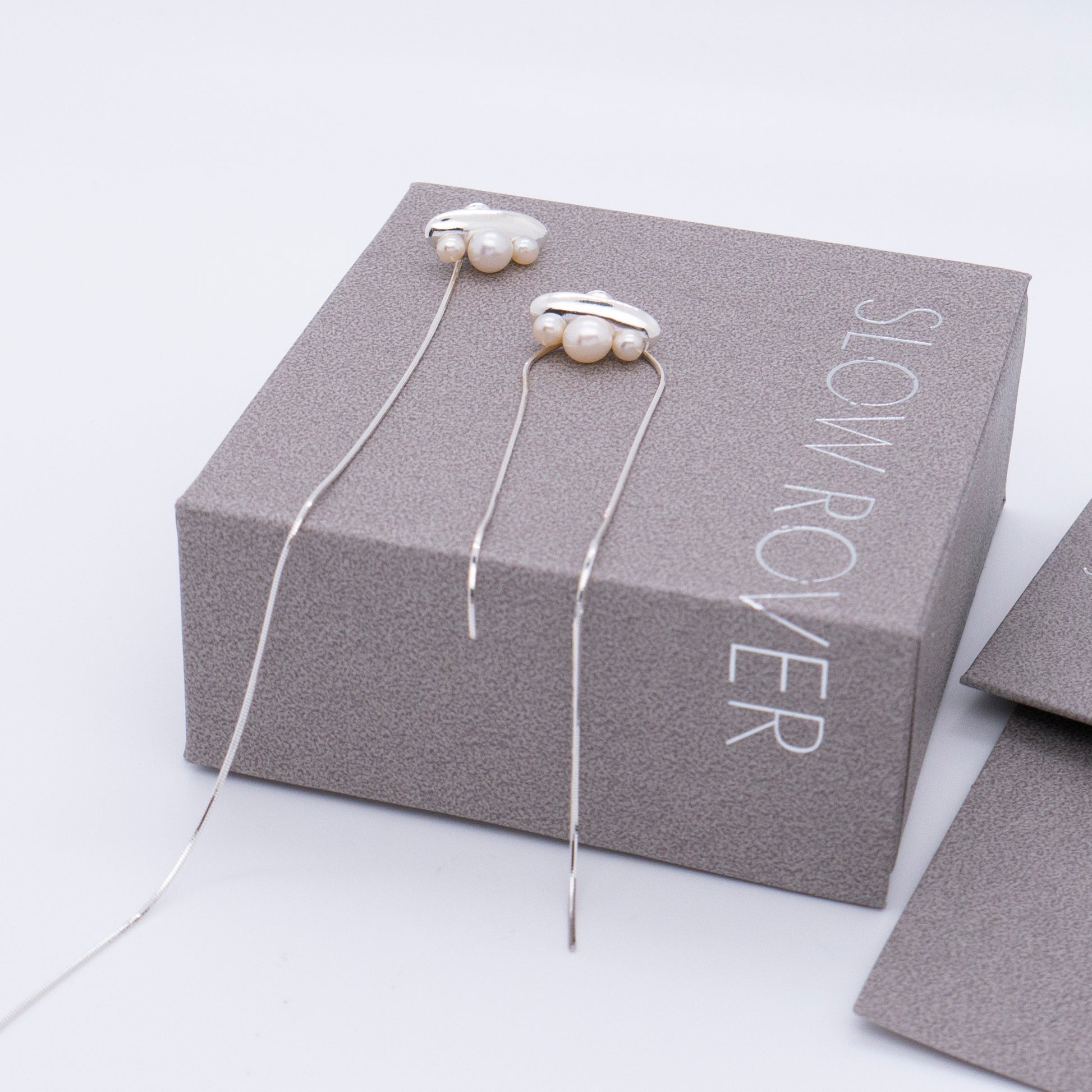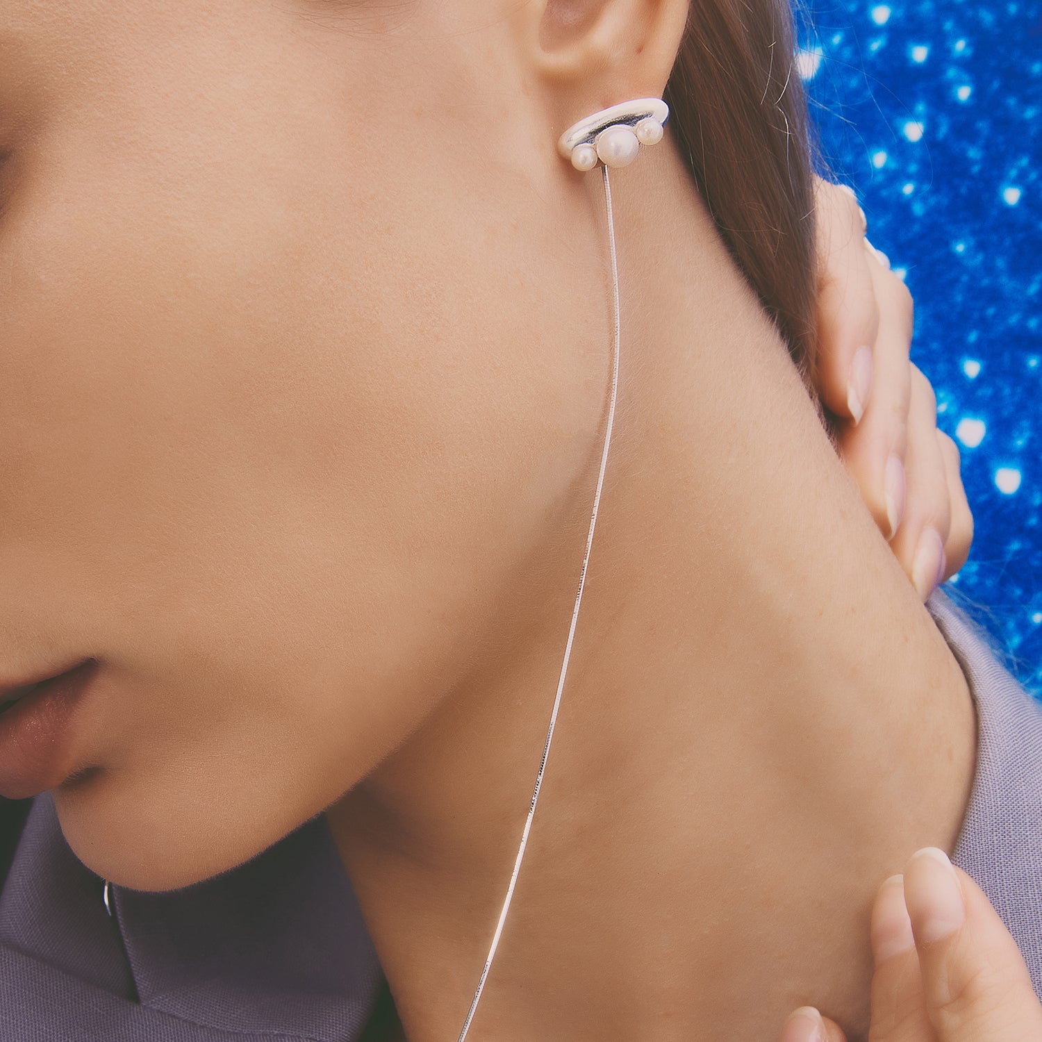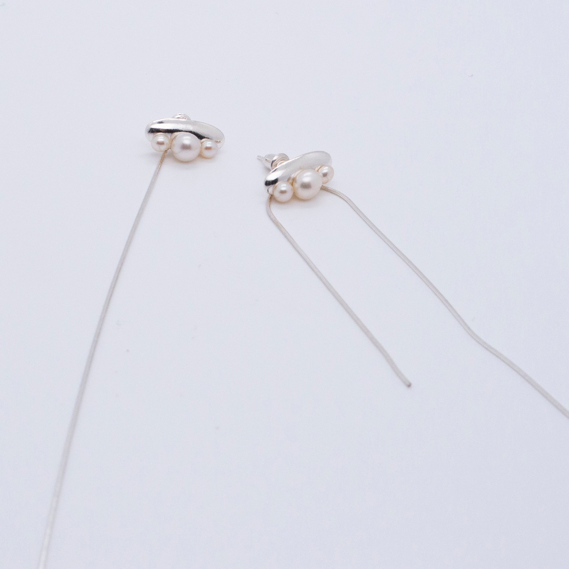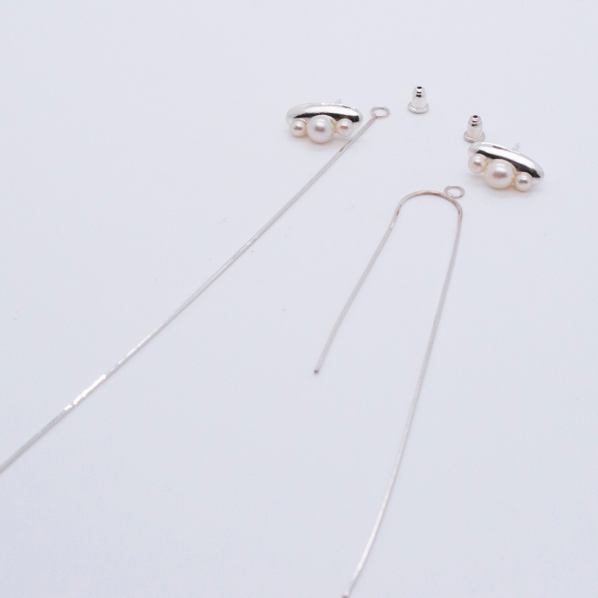 多重宇宙系列 - 時空旅行珍珠小耳環+可拆式不對稱耳後扣 - 純銀