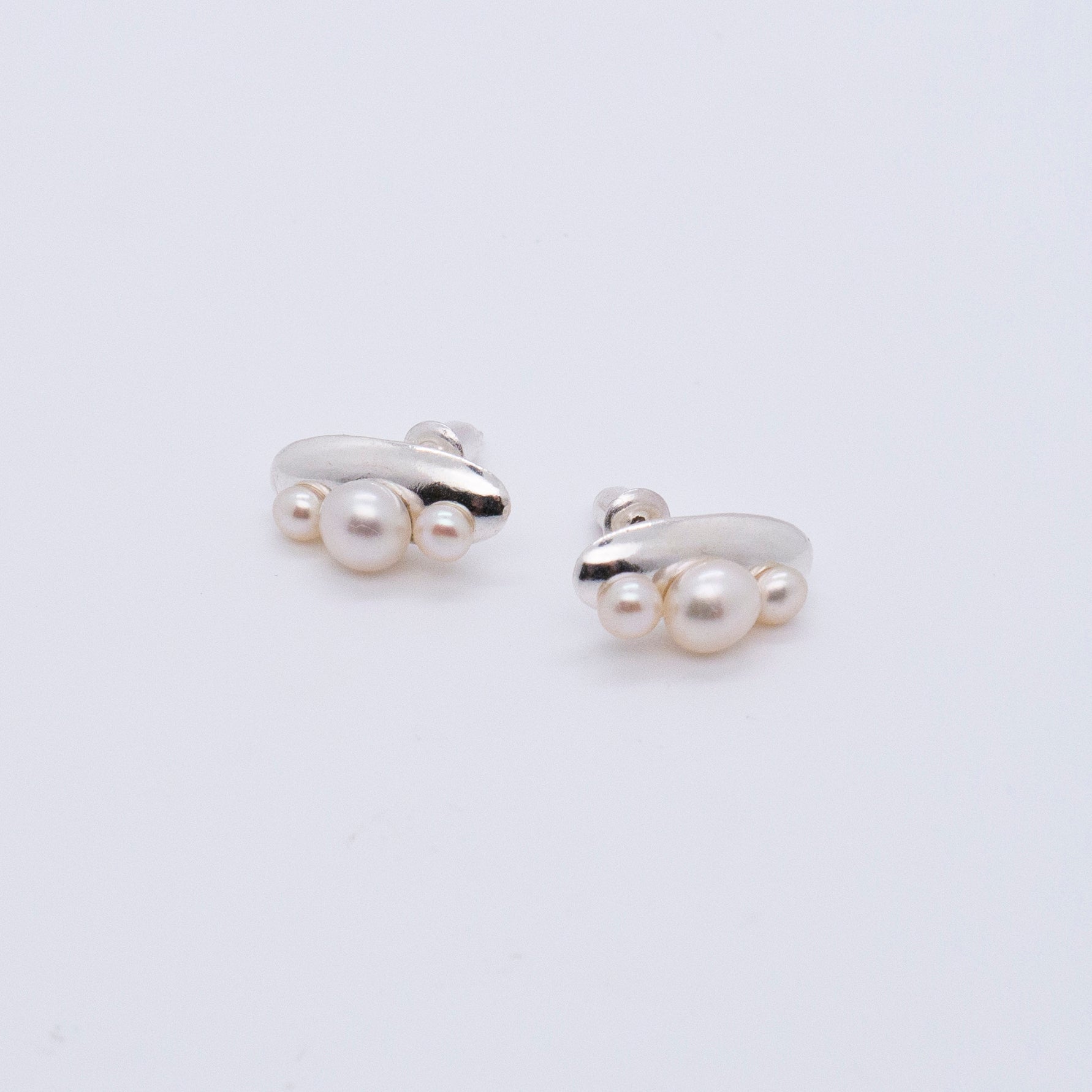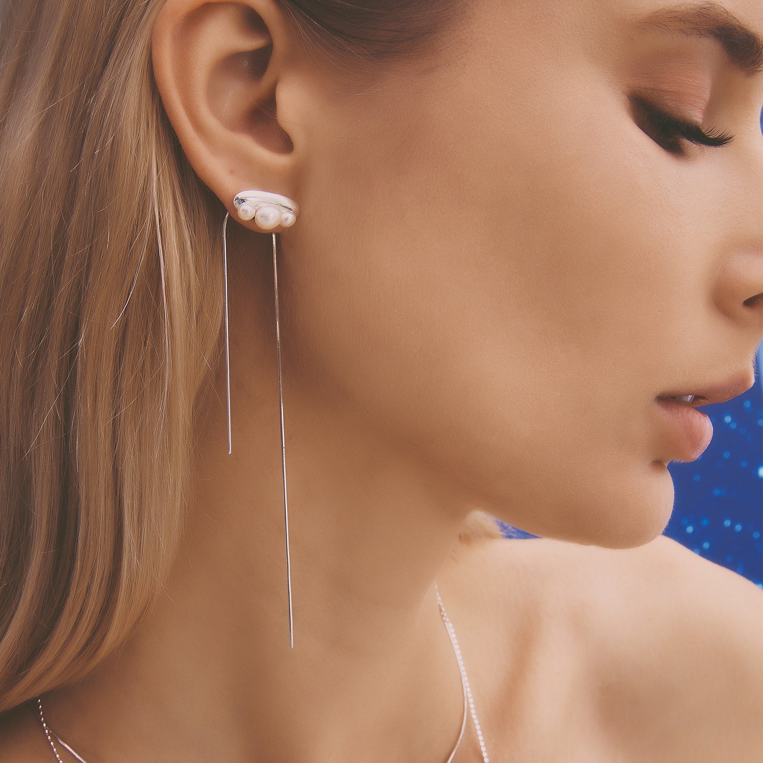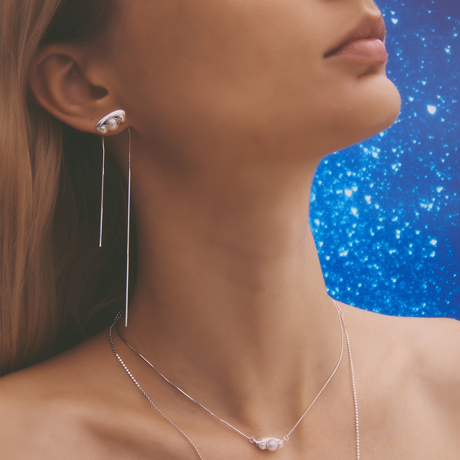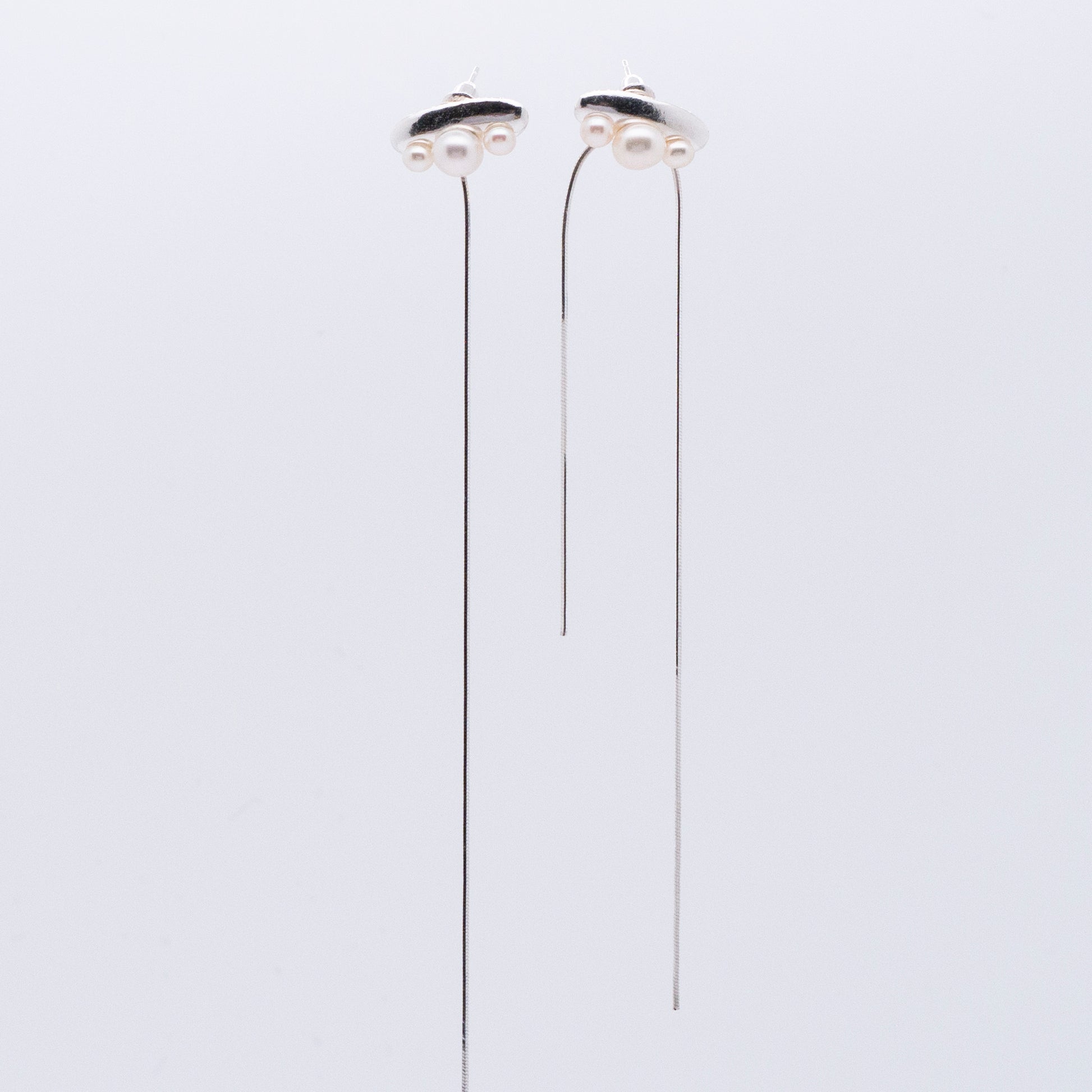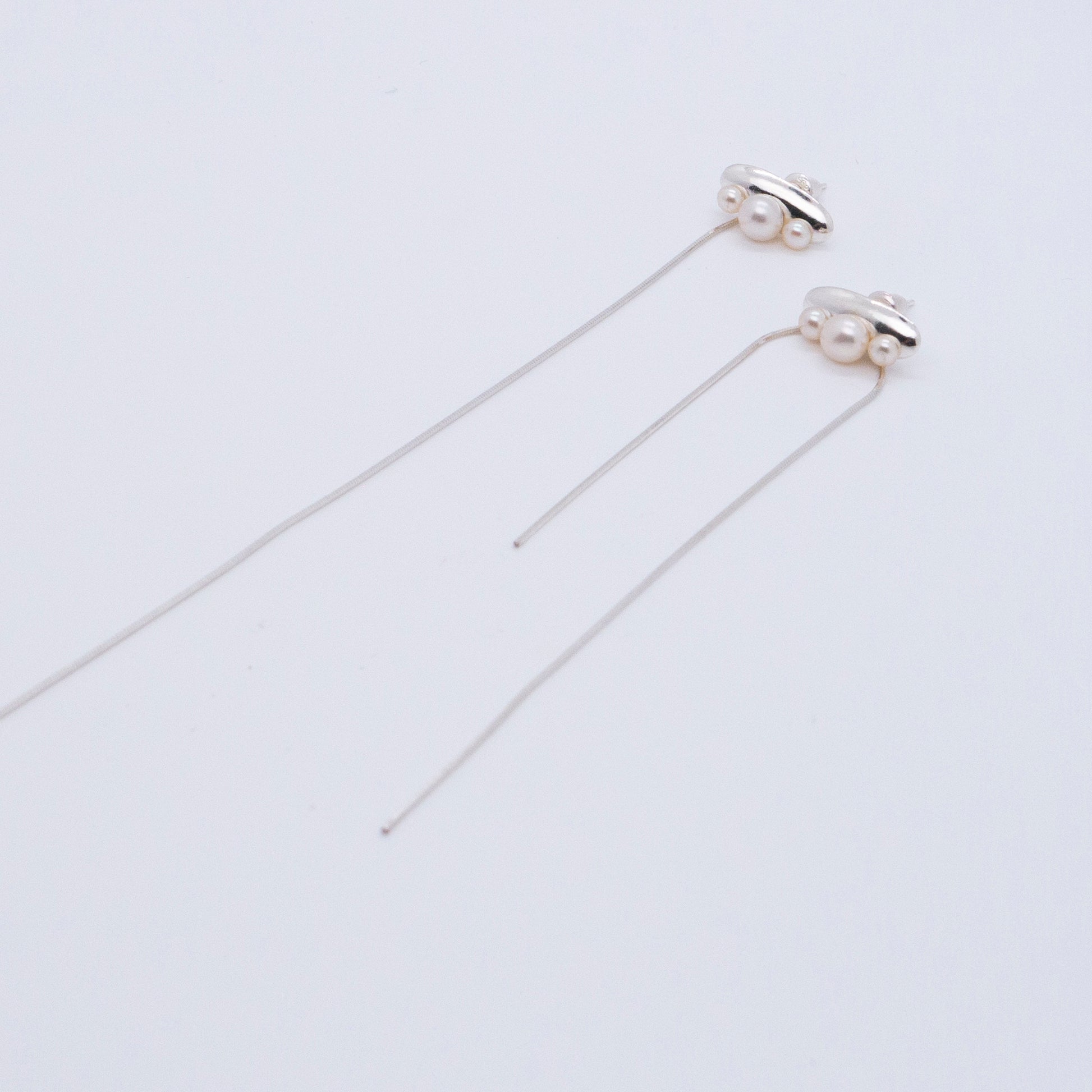 多重宇宙系列 - 時空旅行珍珠小耳環+可拆式不對稱耳後扣 - 純銀