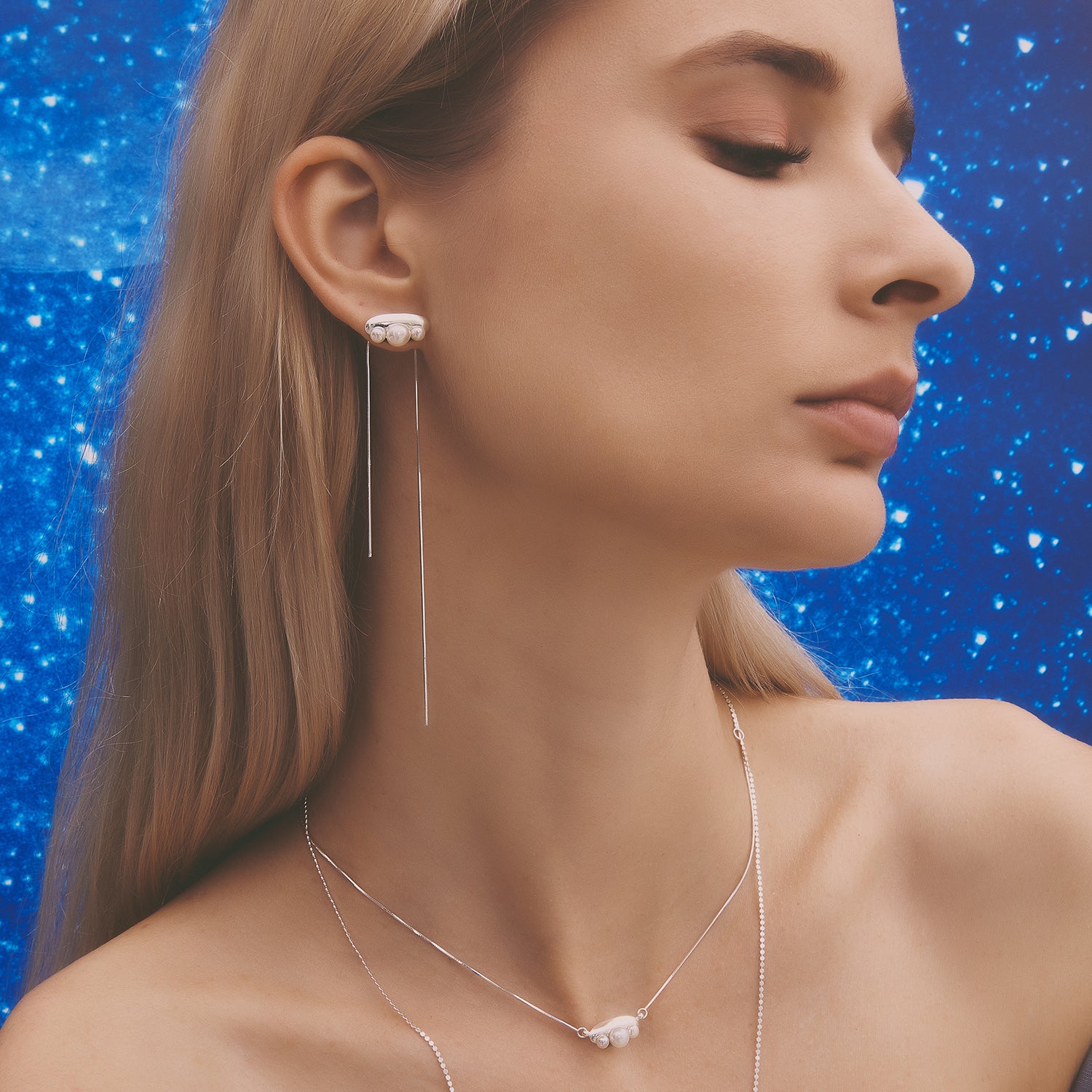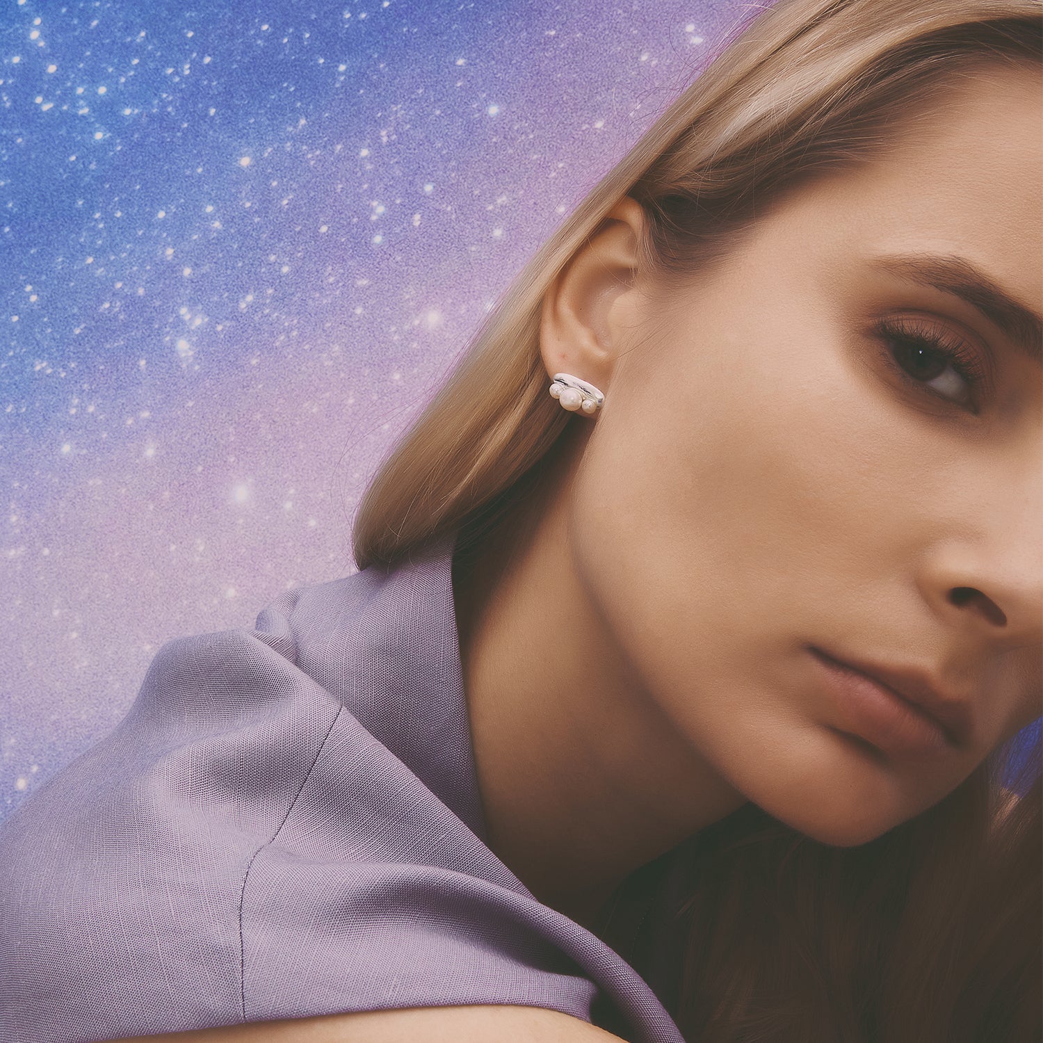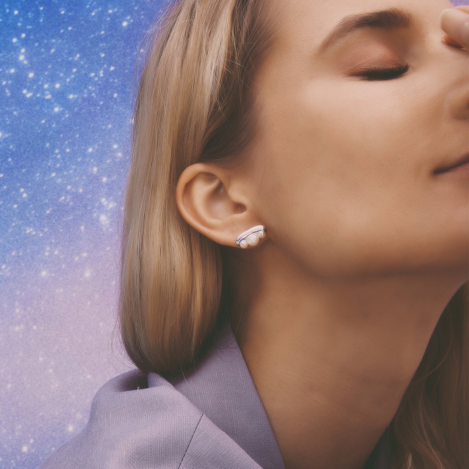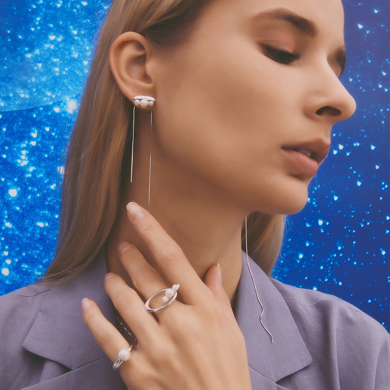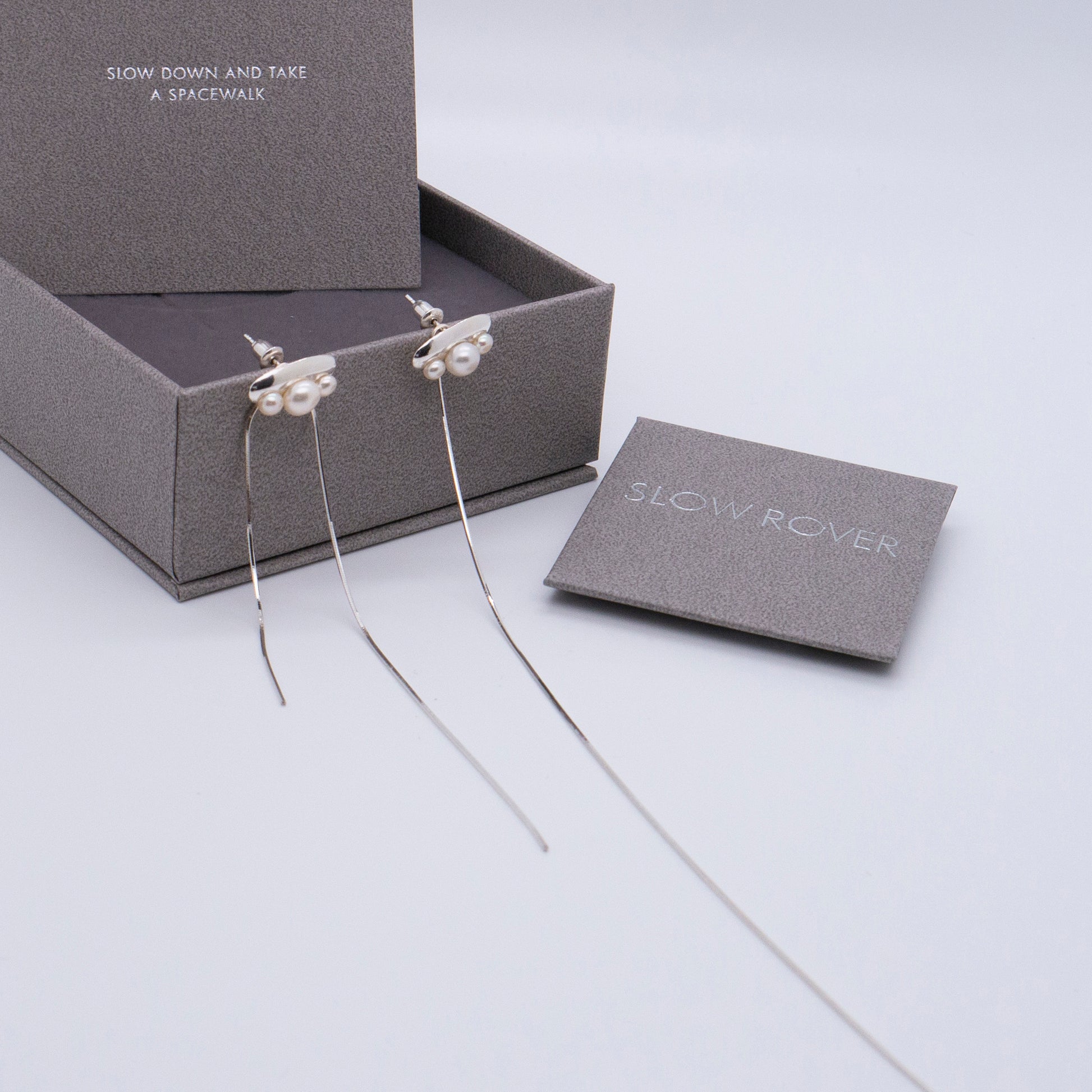多重宇宙系列 - 時空旅行珍珠小耳環+可拆式不對稱耳後扣 - 純銀
