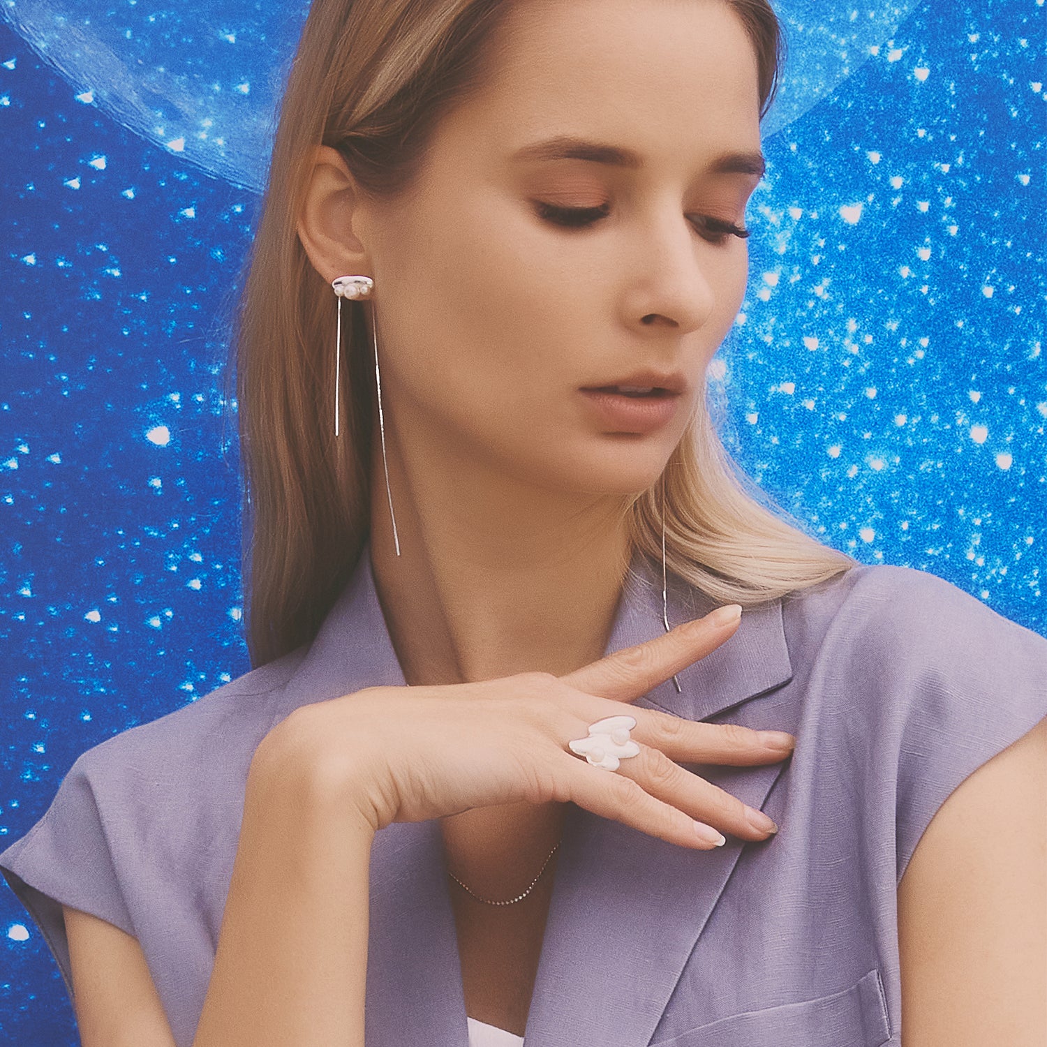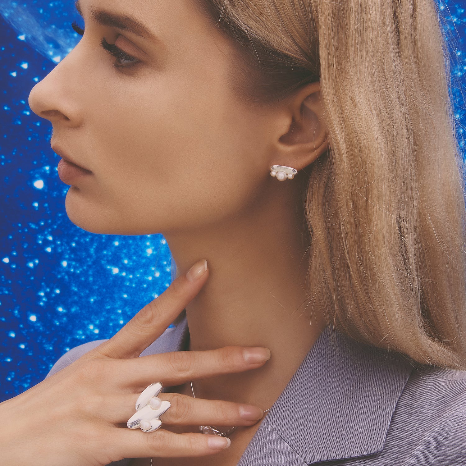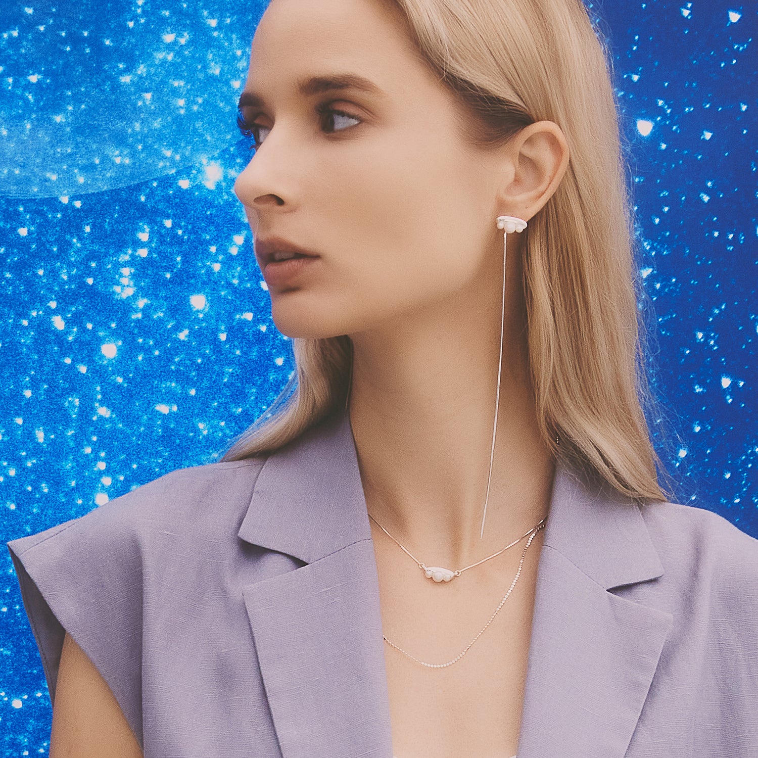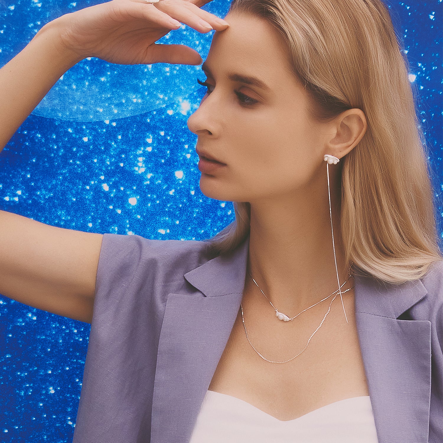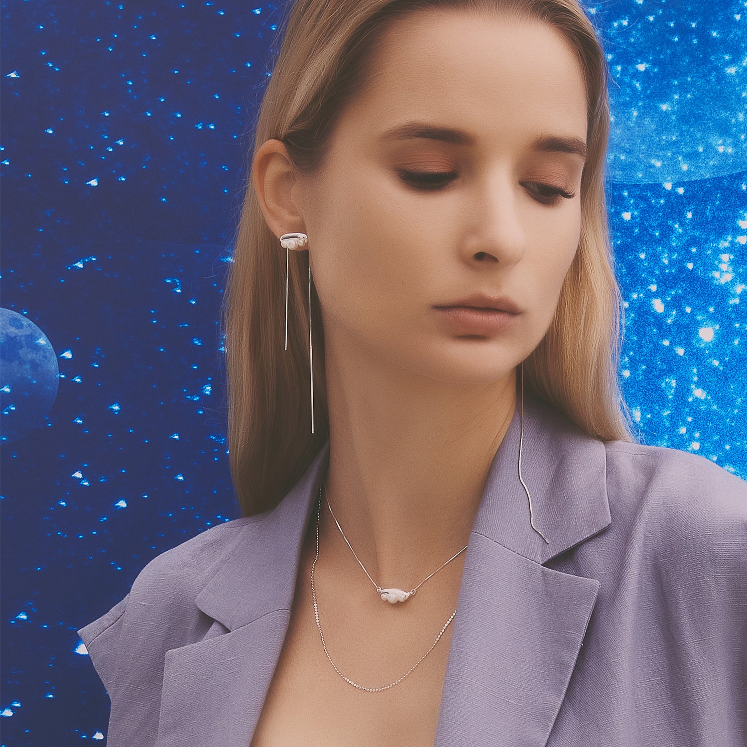 多重宇宙 時空旅行珍珠小耳環+可拆式不對稱耳後扣-純銀
