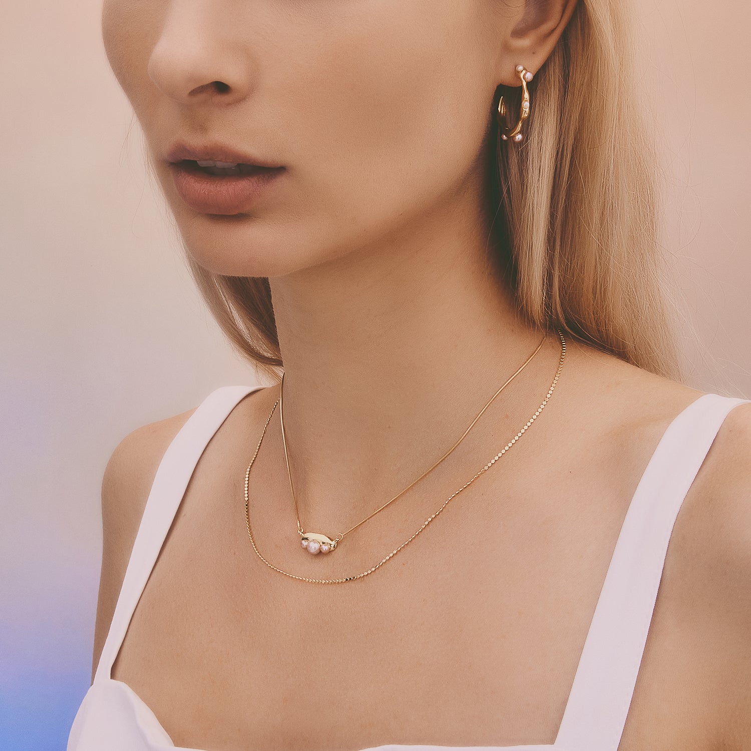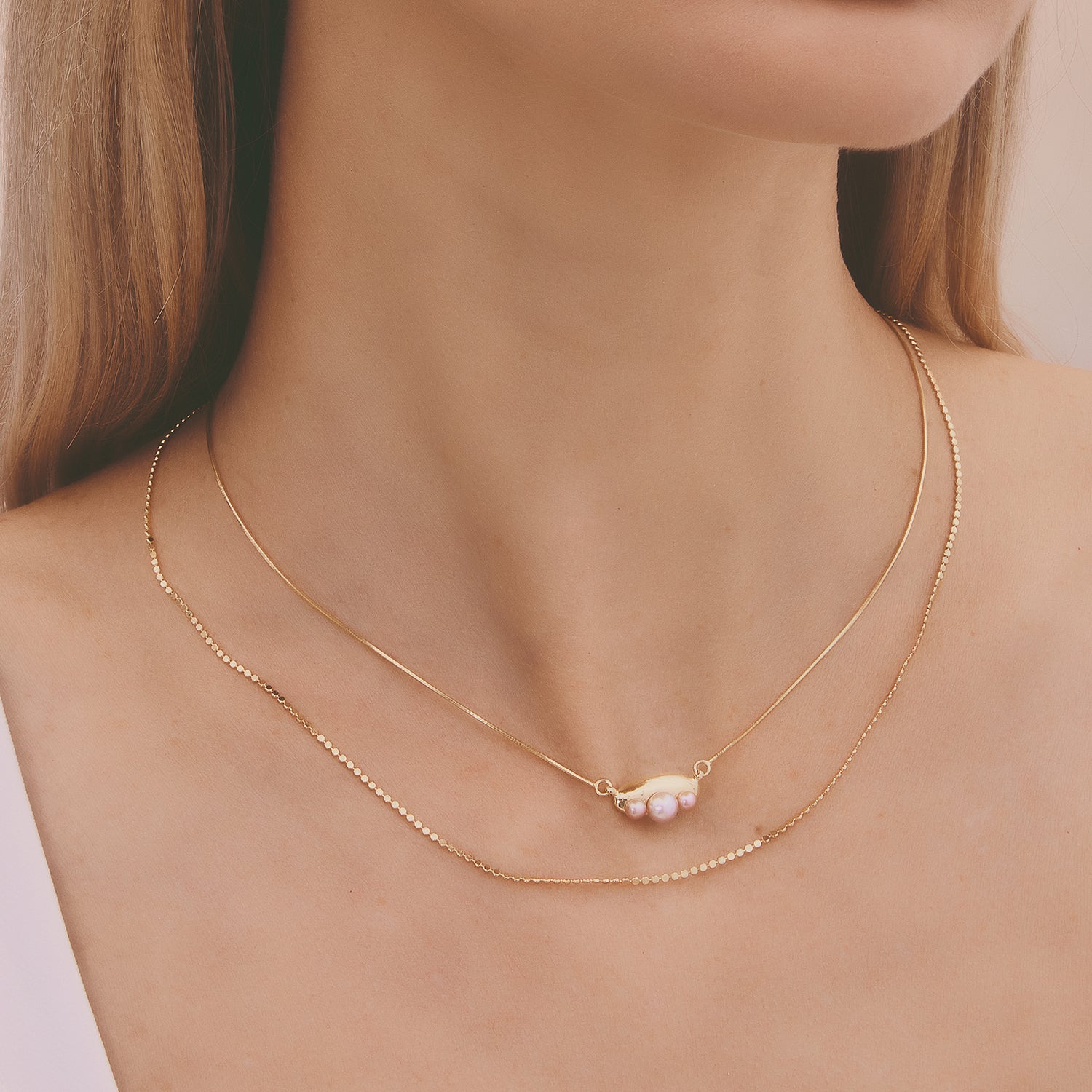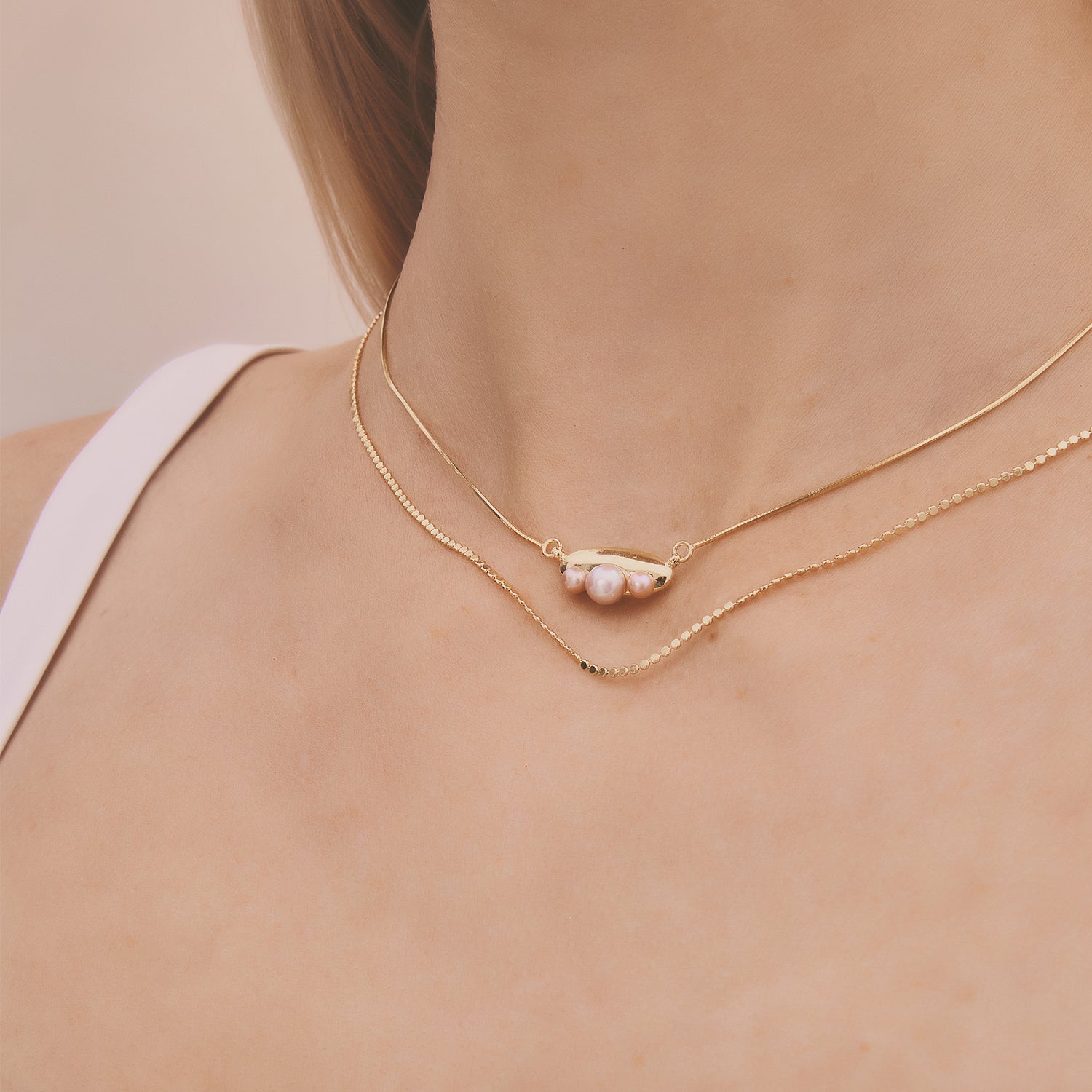 多重宇宙 時空旅行小珍珠鎖骨鏈-厚鍍18K金