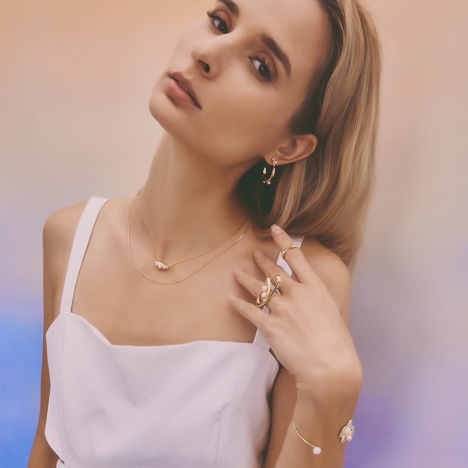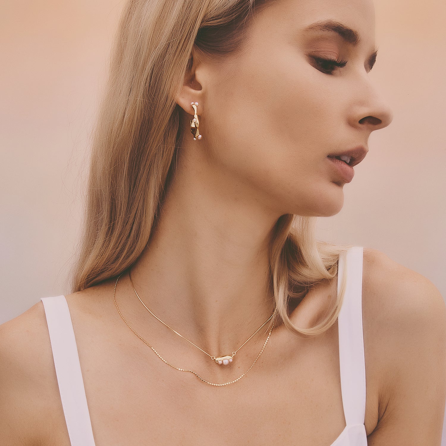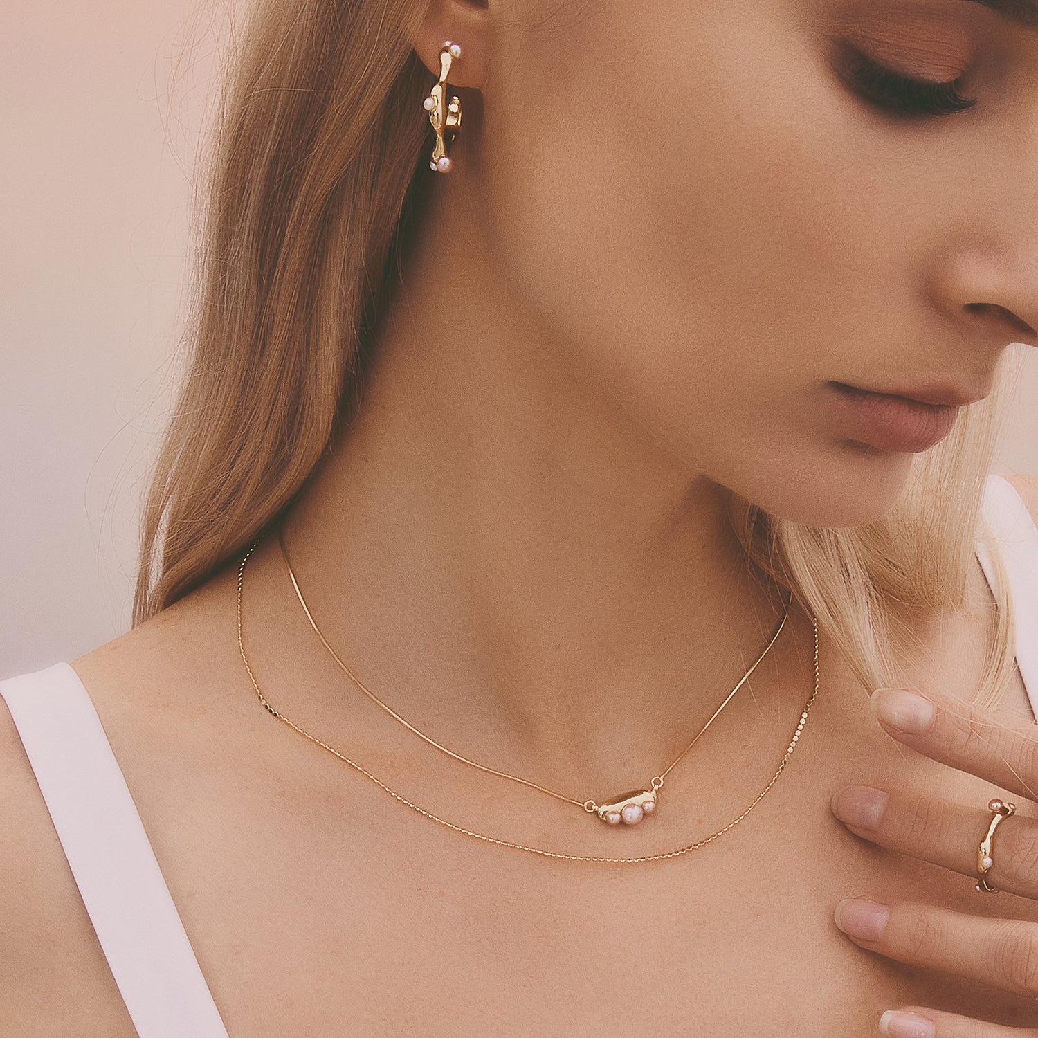 多重宇宙 時空旅行小珍珠鎖骨鏈-厚鍍18K金