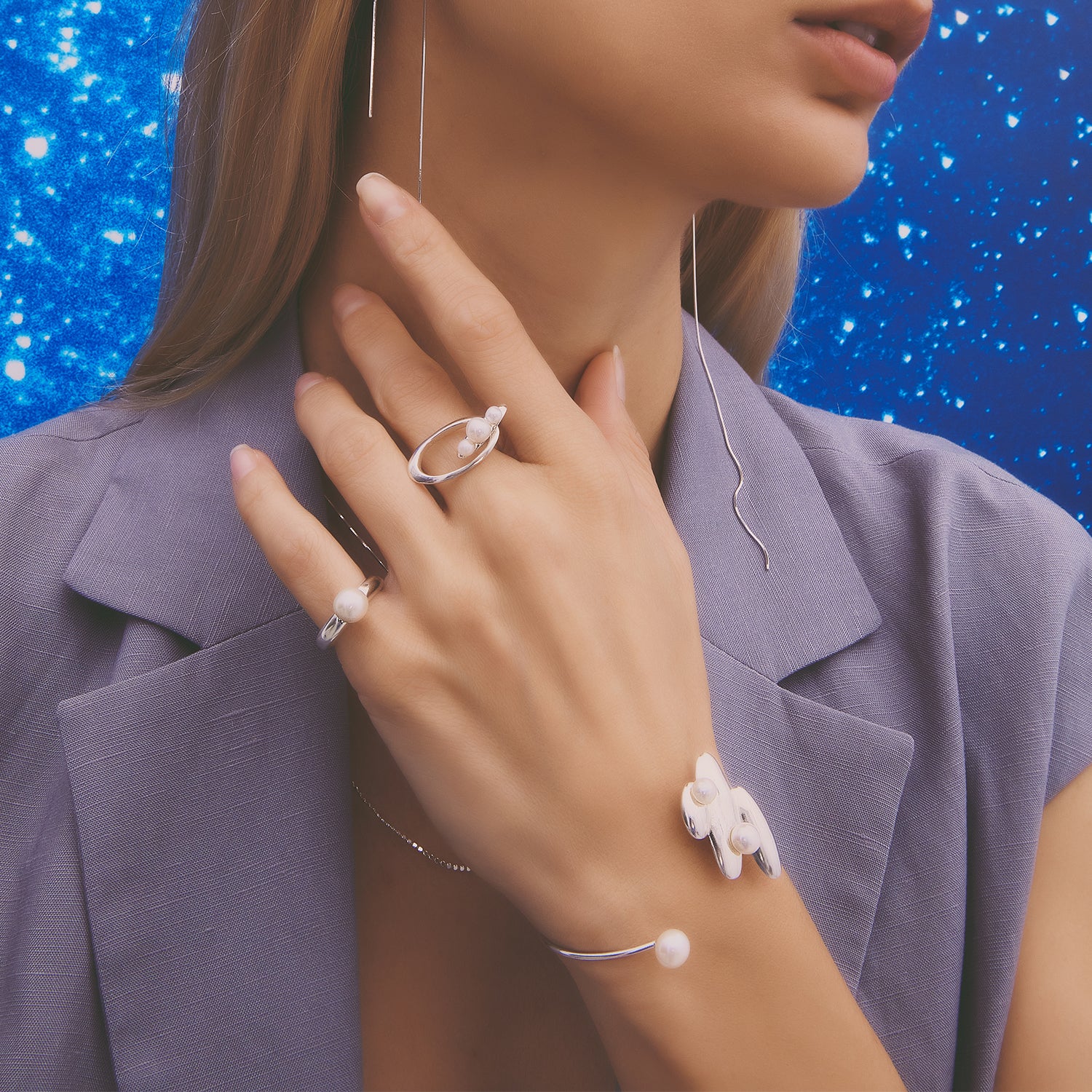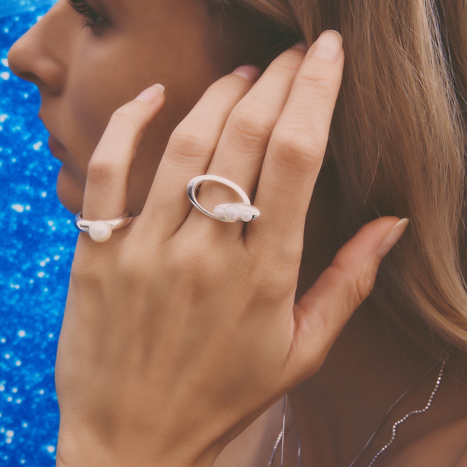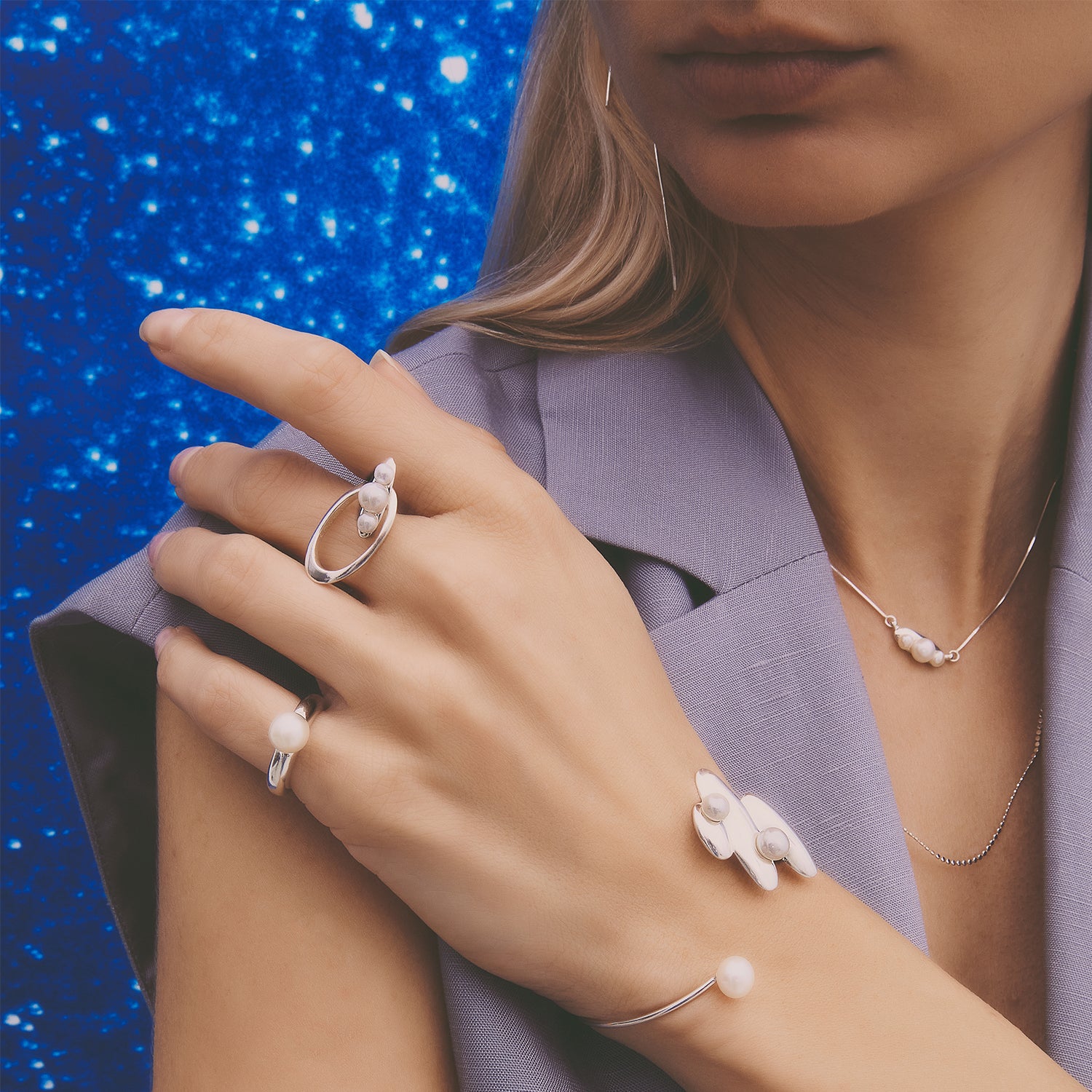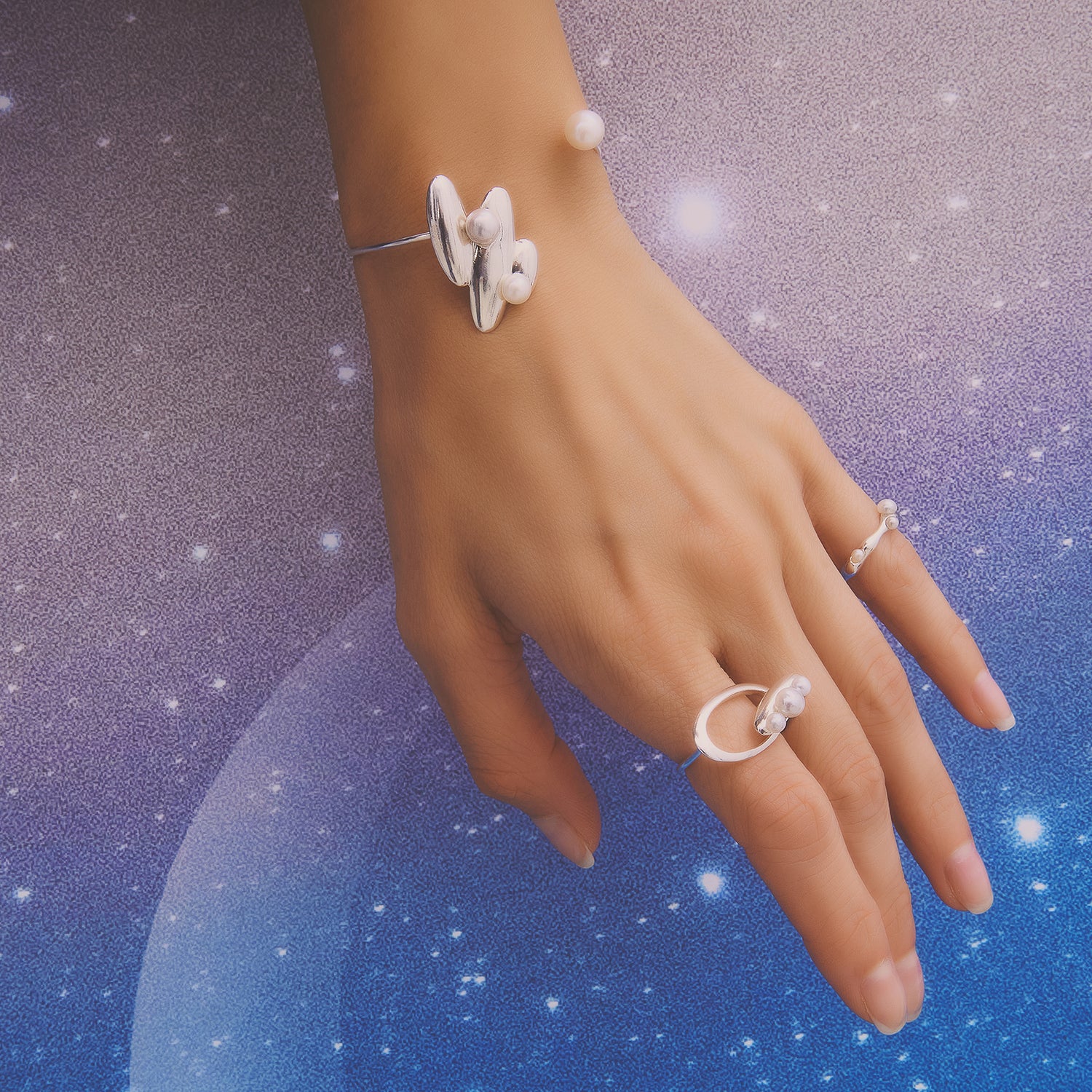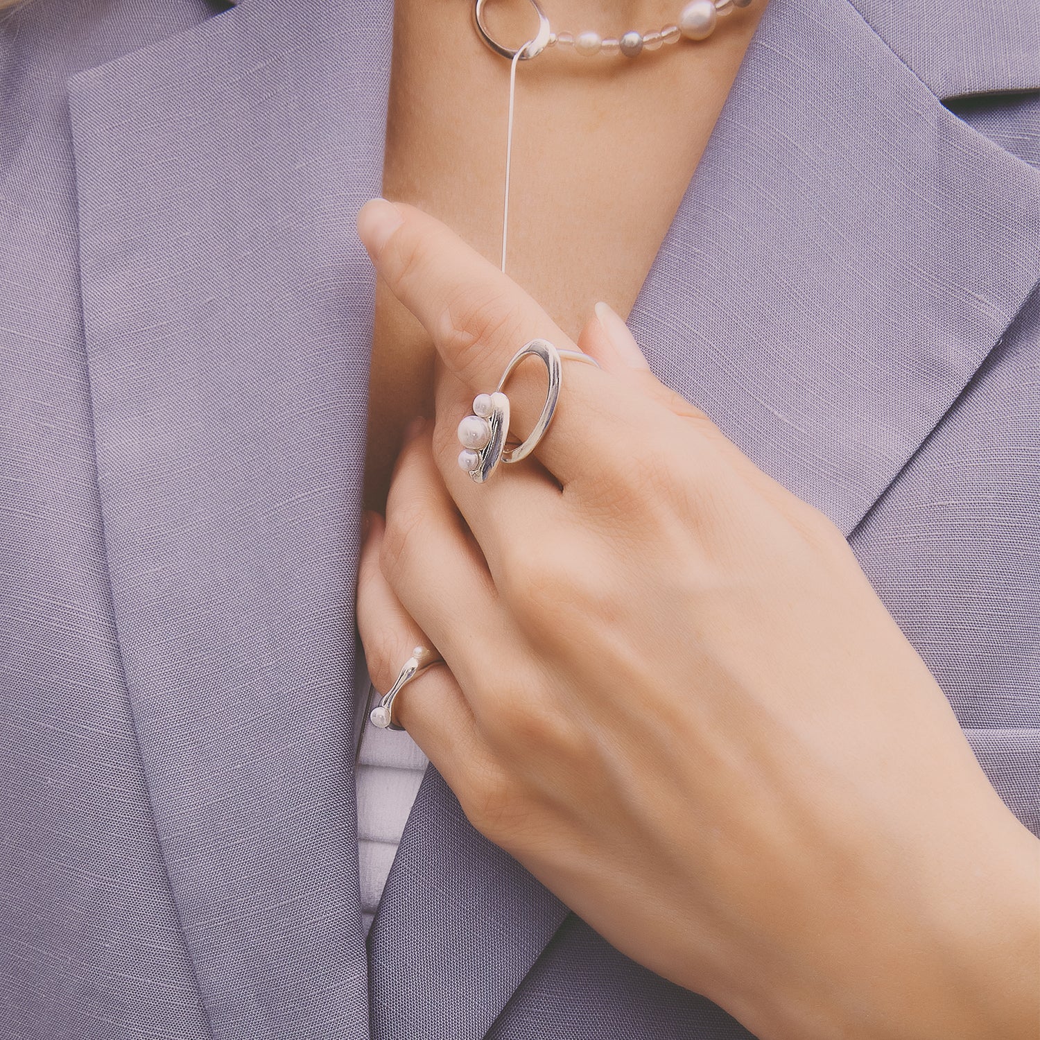 多重宇宙系列 - 時空旅行小珍珠戒指 - 純銀