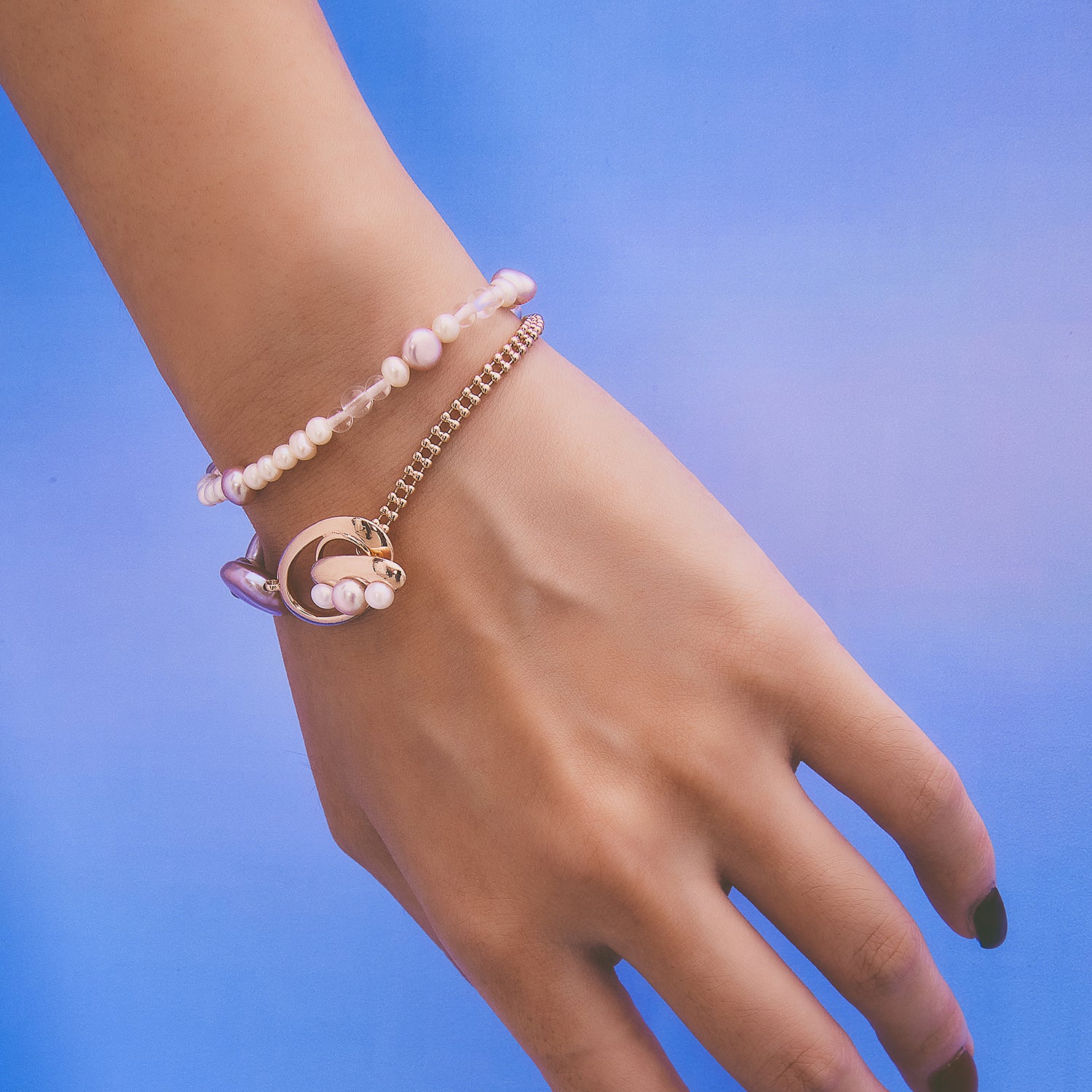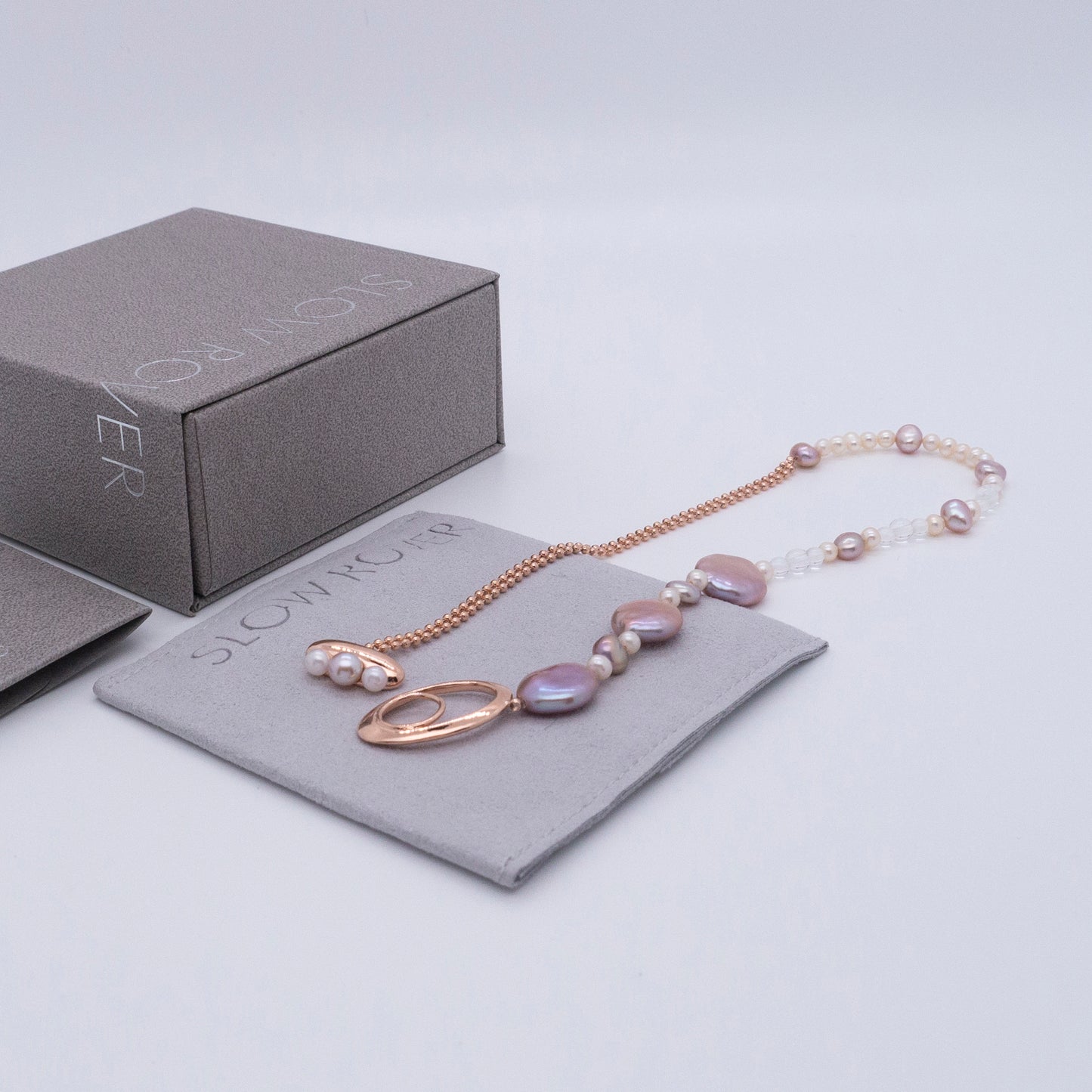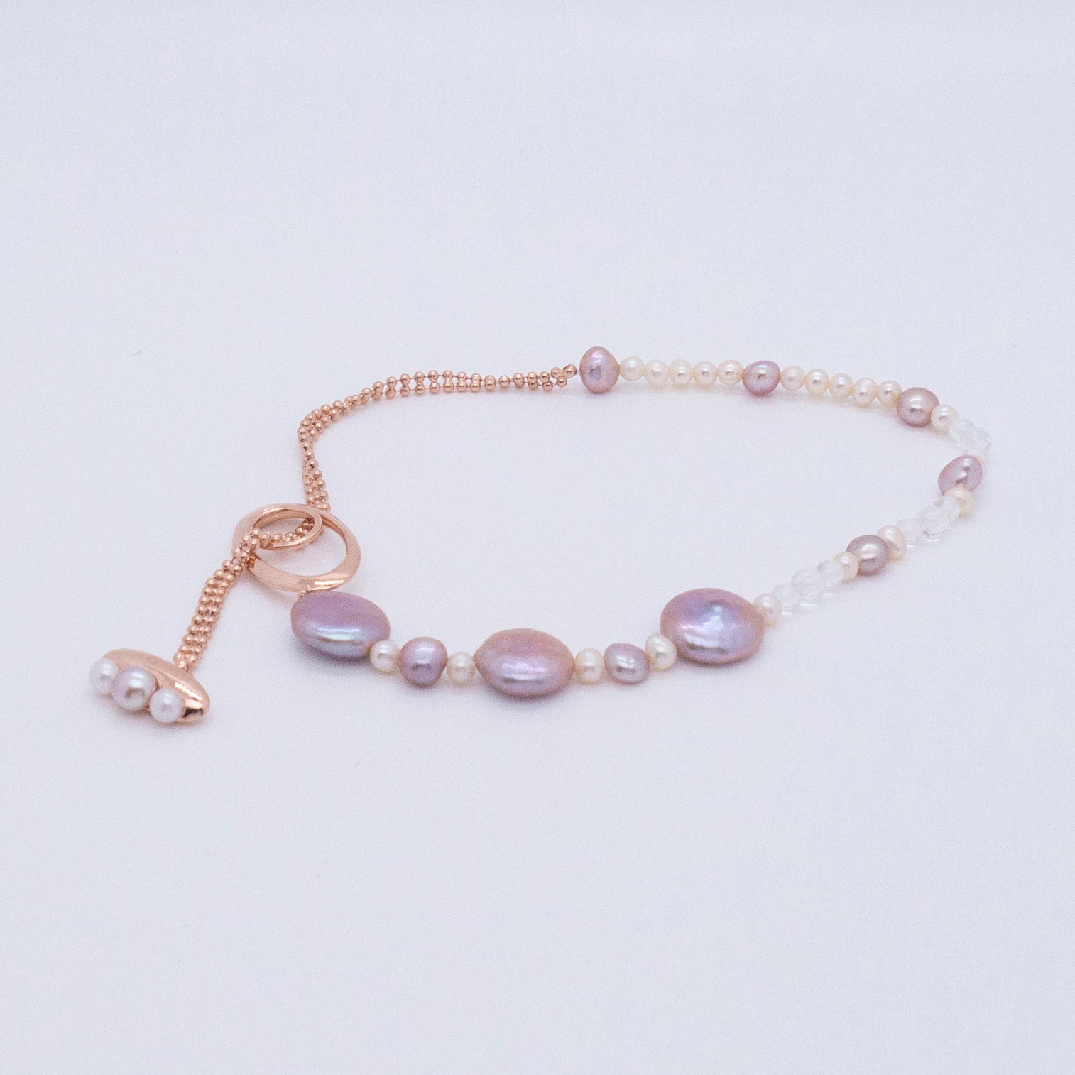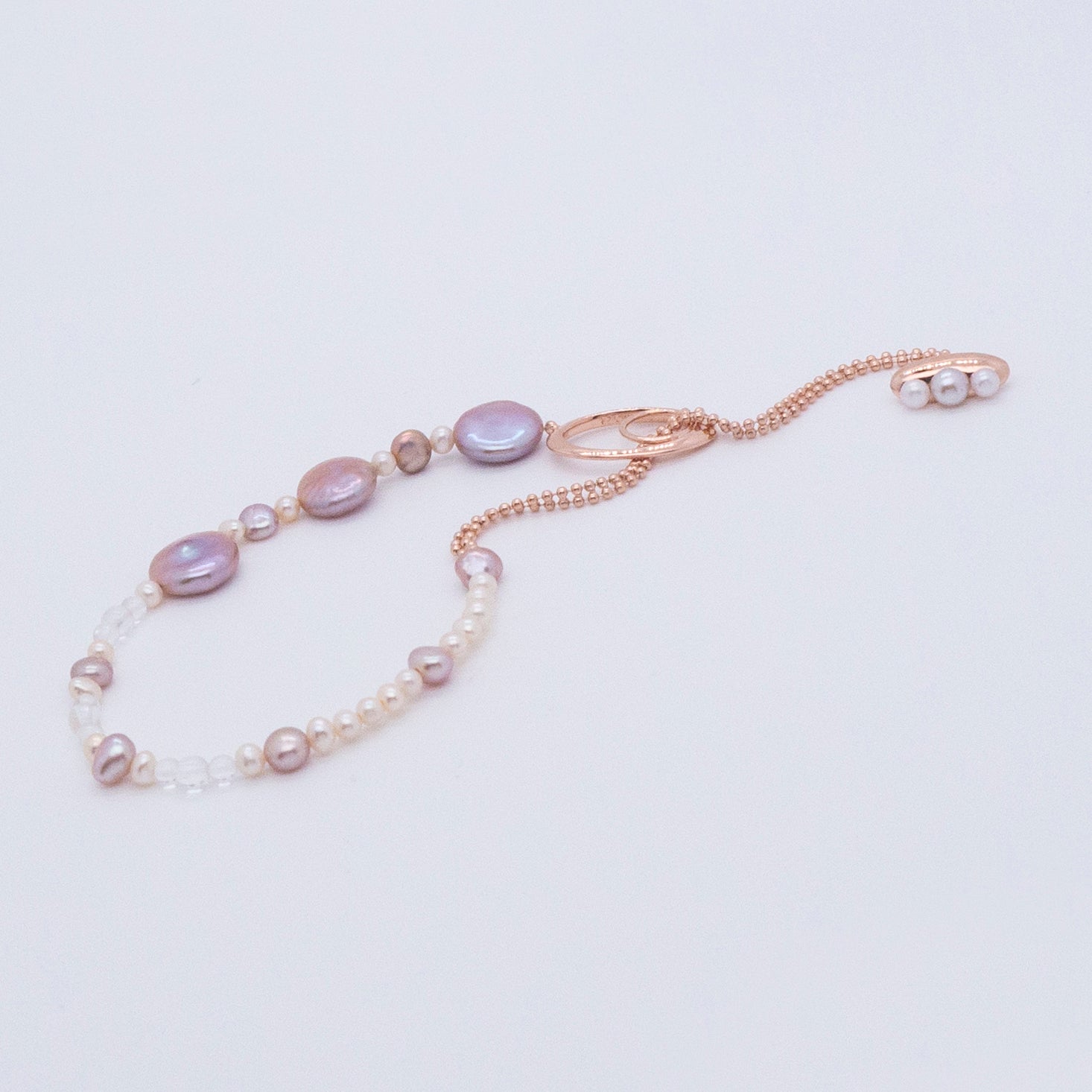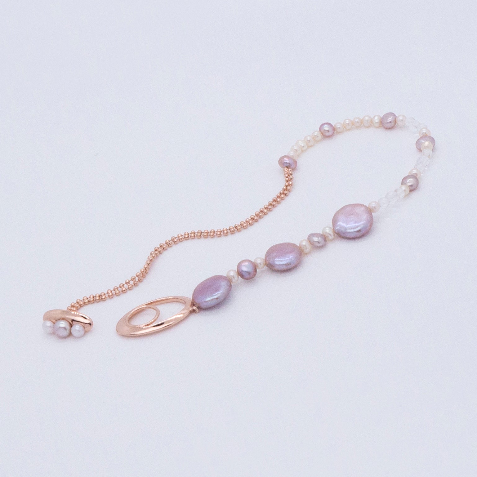 多重宇宙系列 - 時空旅行薰衣草色巴洛克珍珠手鍊 - 厚鍍玫瑰金