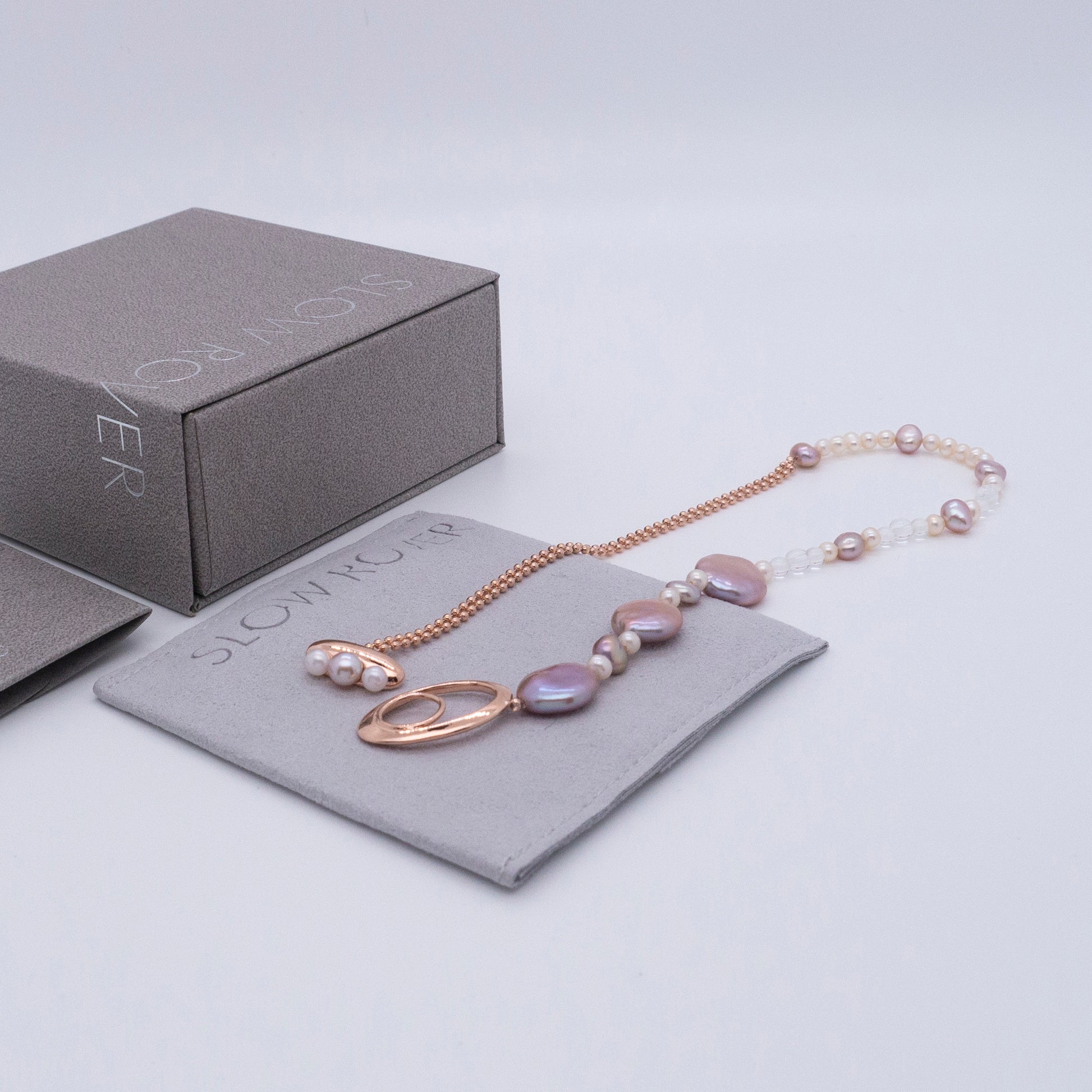 - 材質:黃銅厚鍍玫瑰金、天然淡水珍珠、白水晶