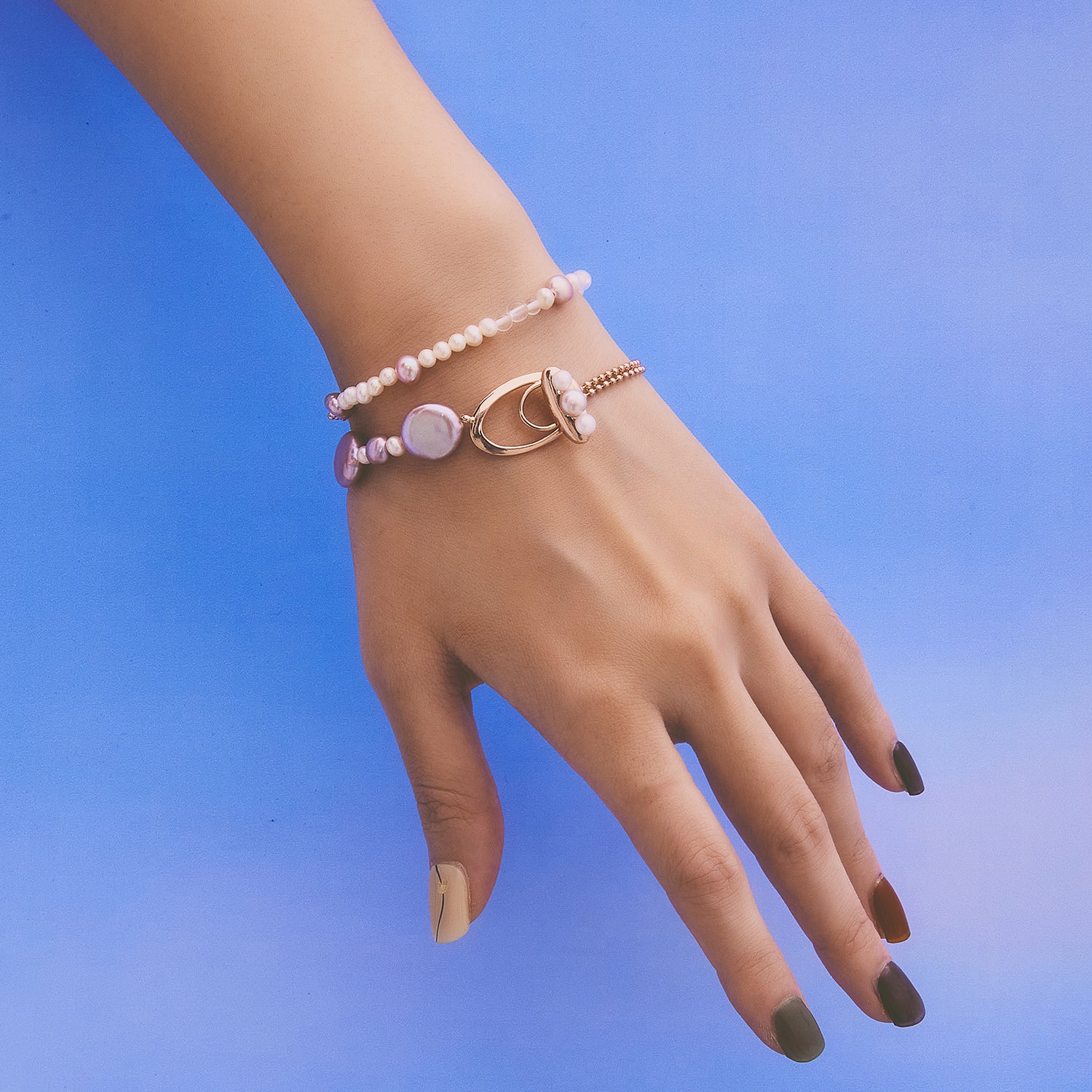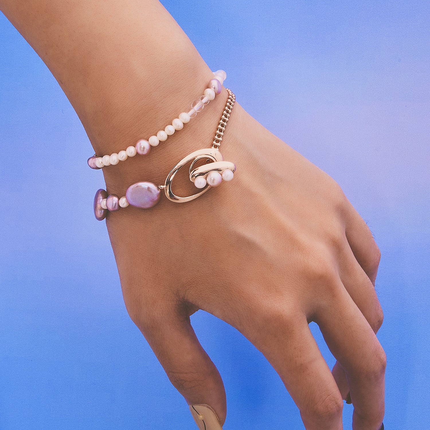 多重宇宙 時空旅行薰衣草色巴洛克珍珠手鍊-厚鍍玫瑰金