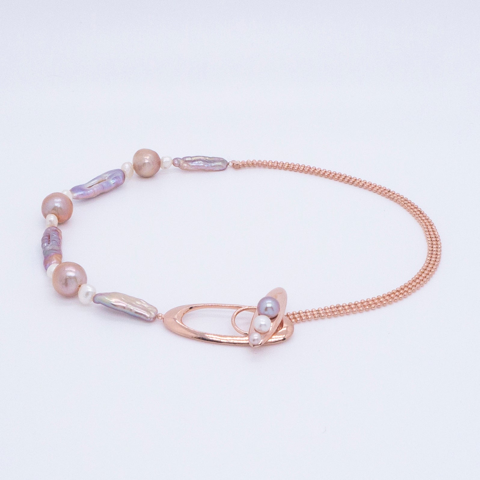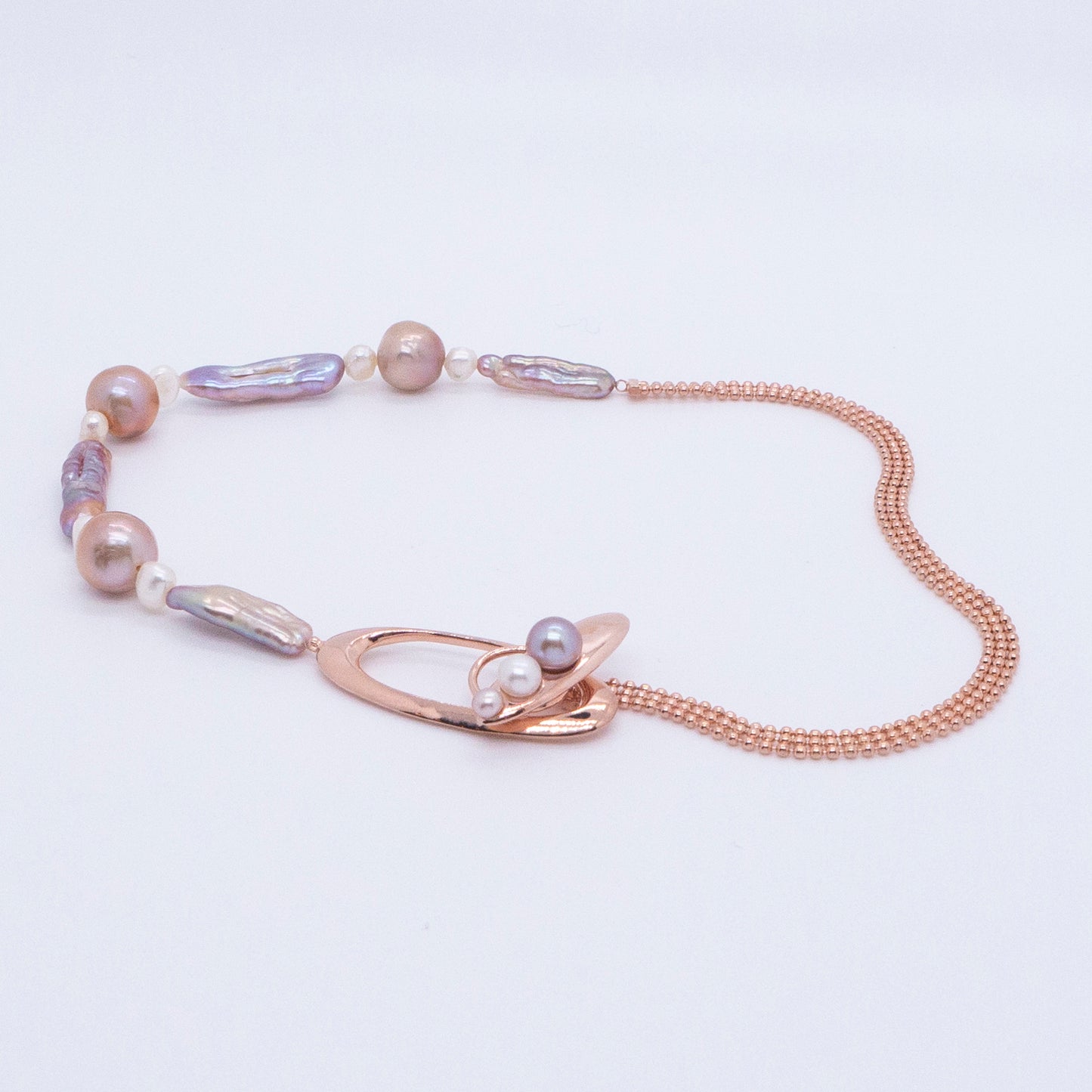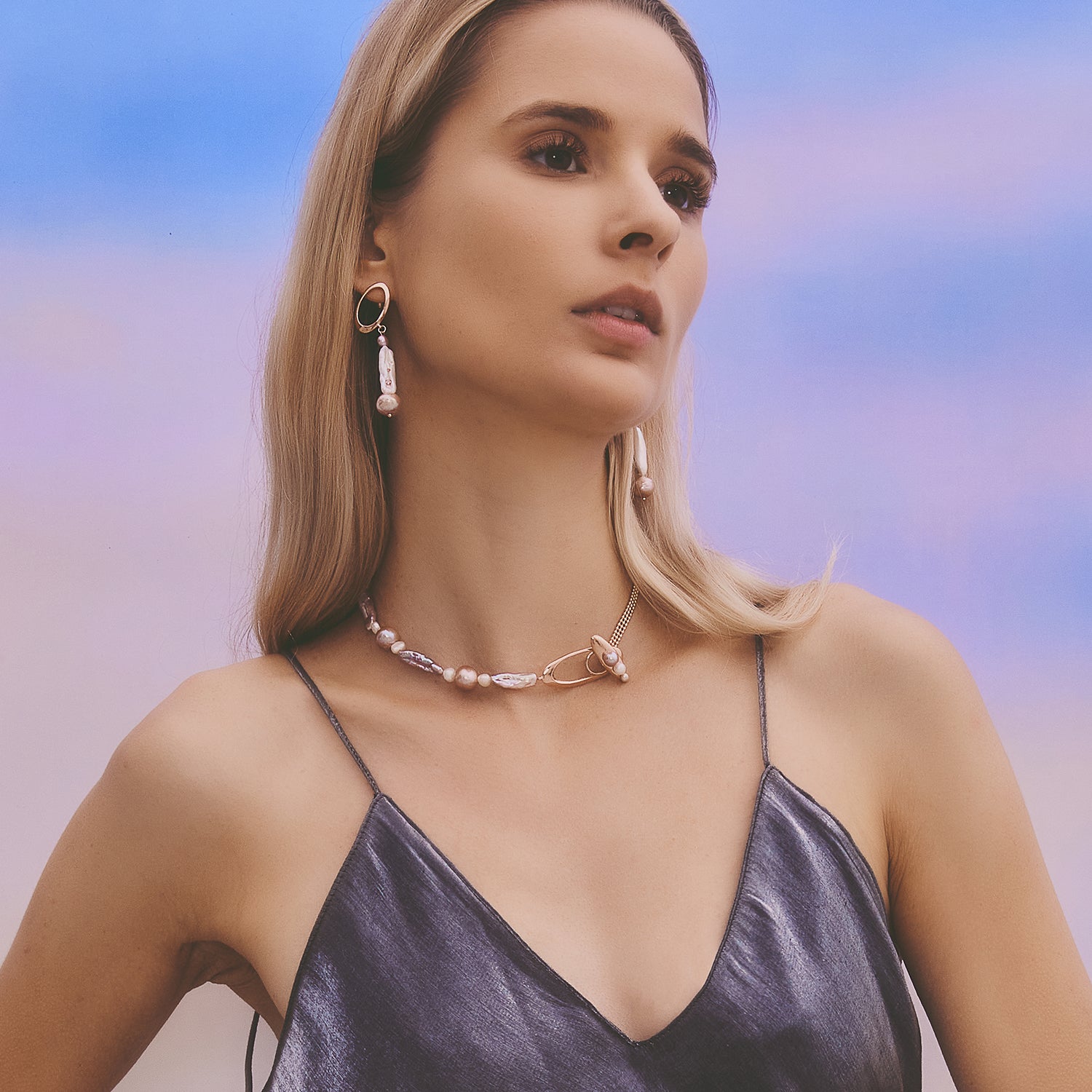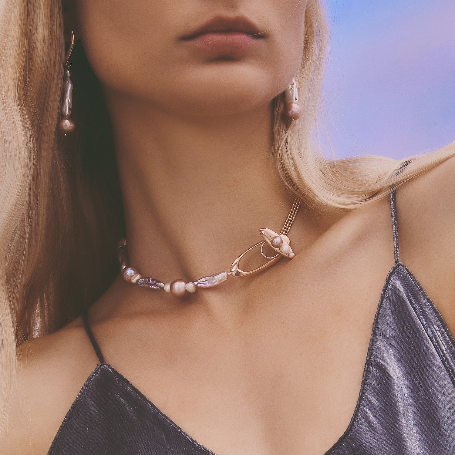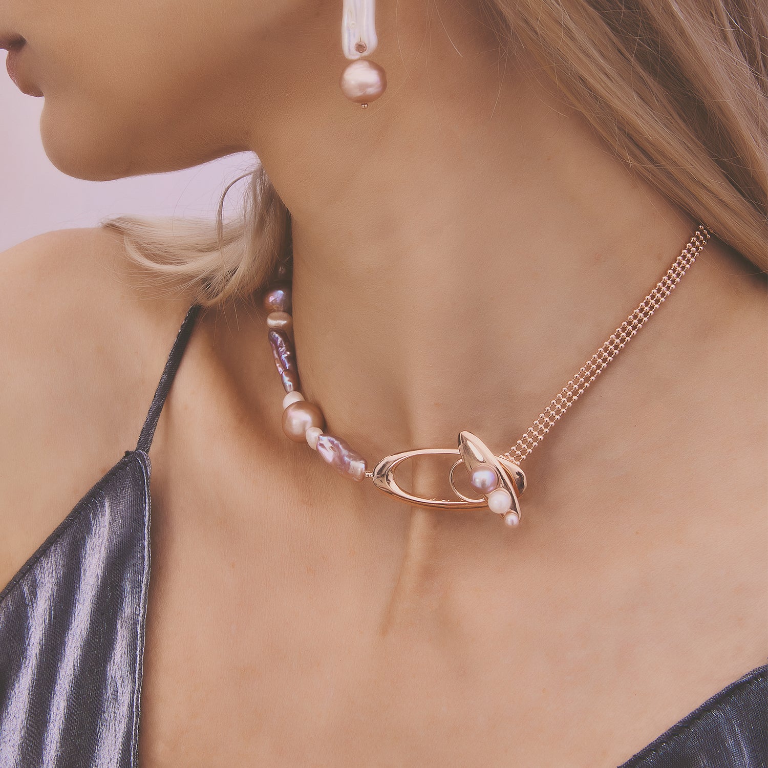 多重宇宙系列 - 時空旅行薰衣草色巴洛克珍珠短鍊 - 厚鍍玫瑰金
