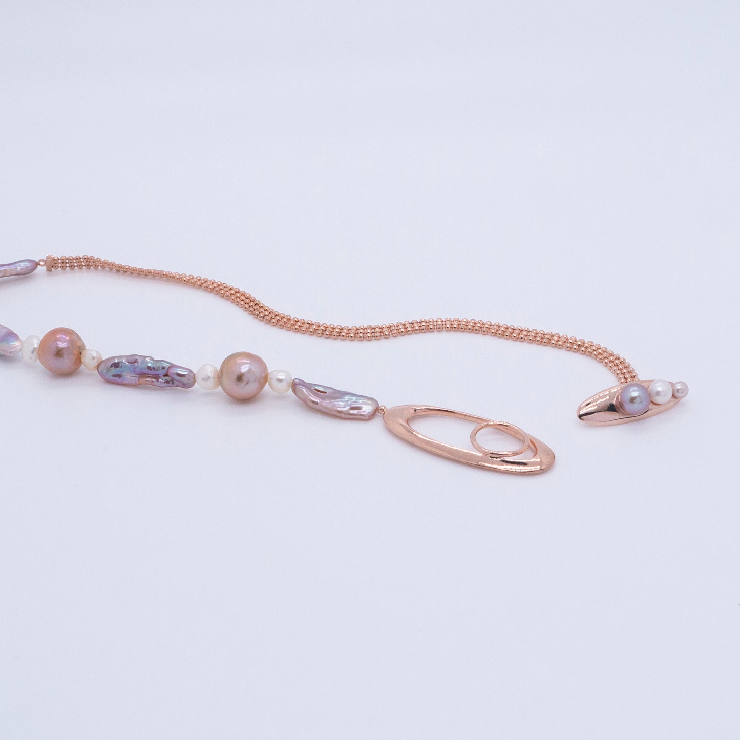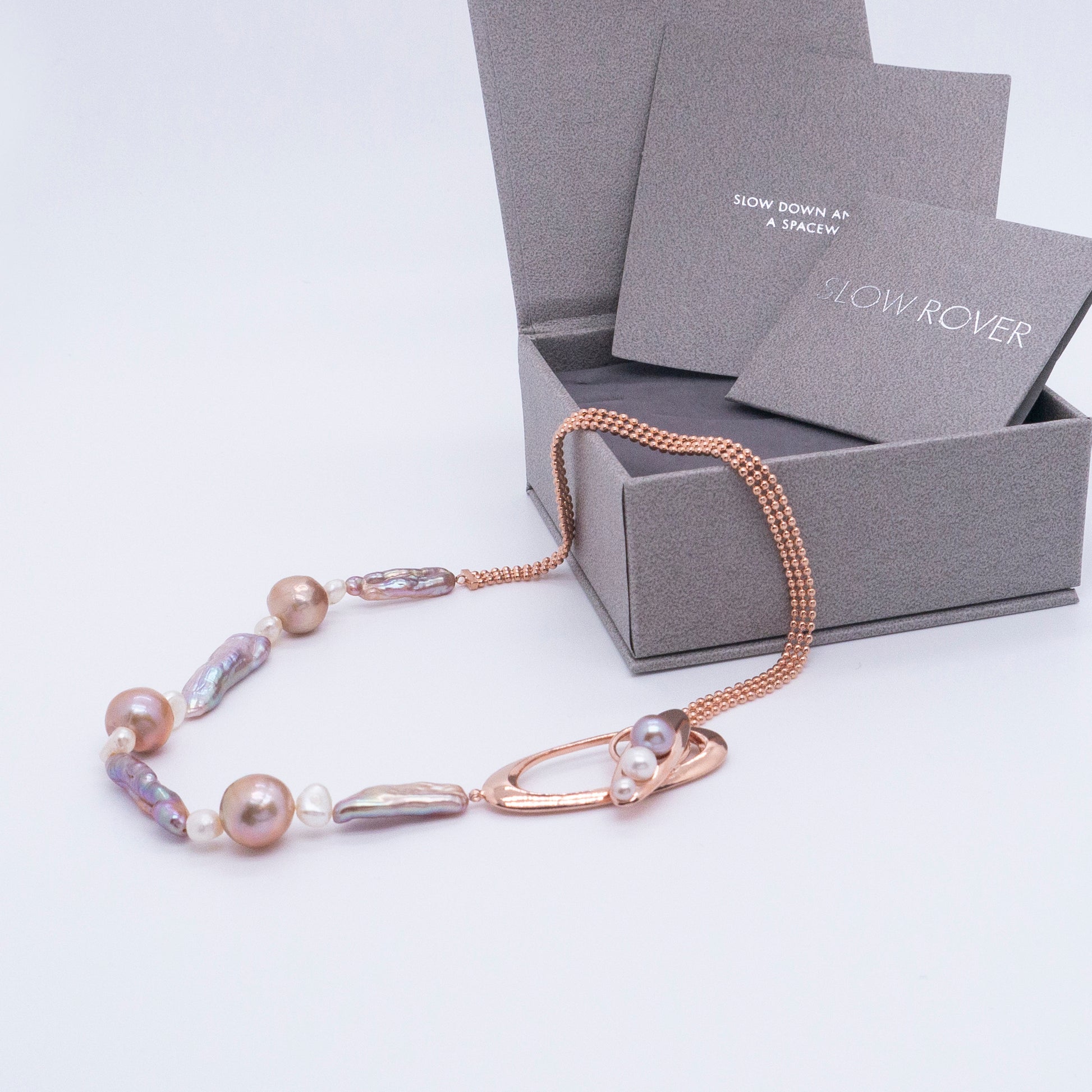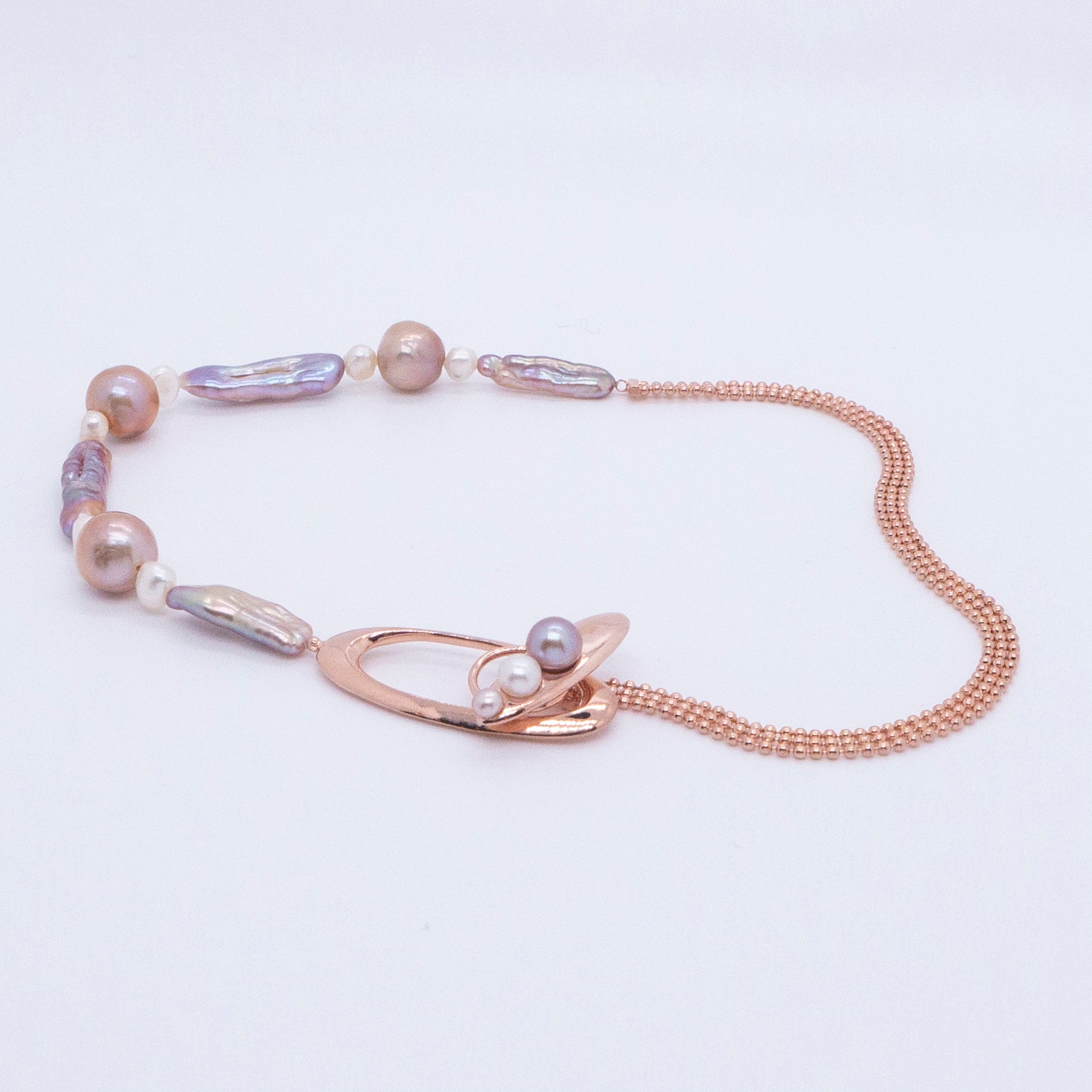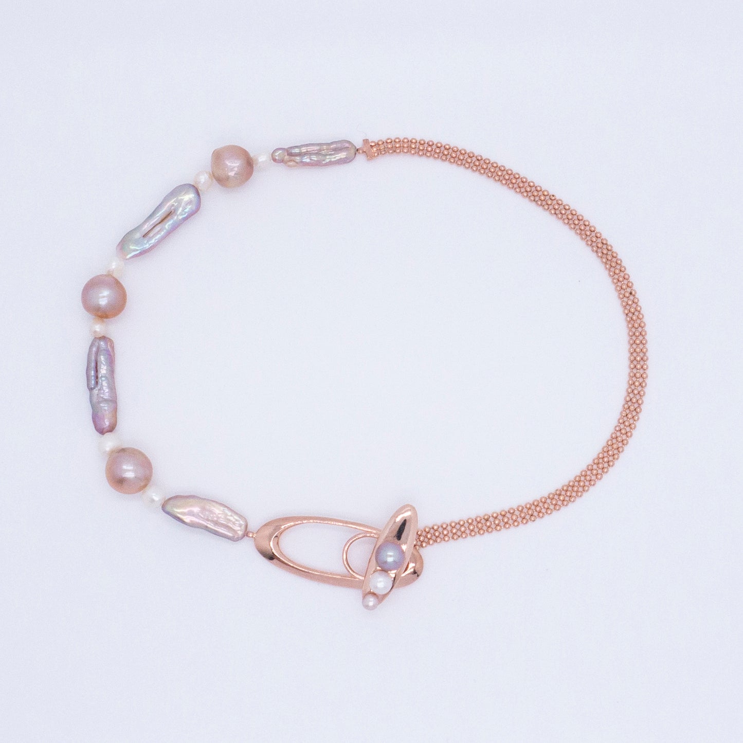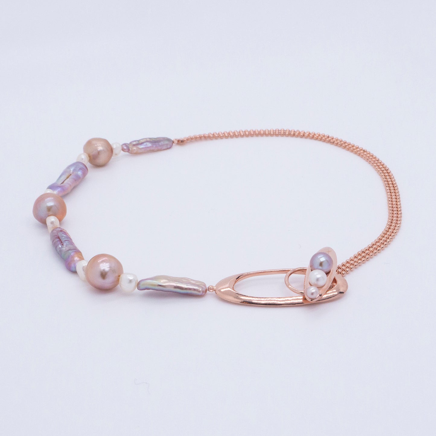 多重宇宙系列 - 時空旅行薰衣草色巴洛克珍珠短鍊 - 厚鍍玫瑰金