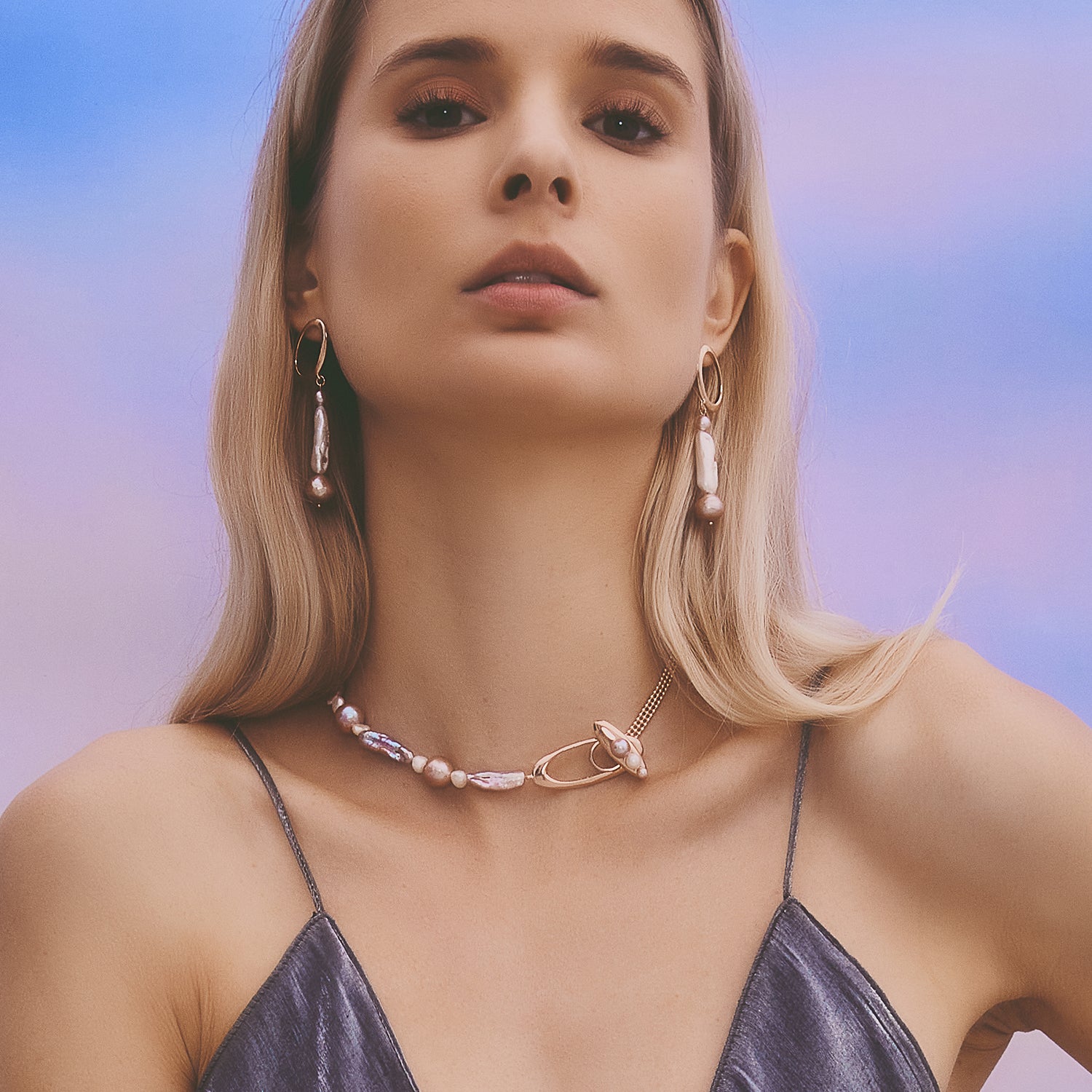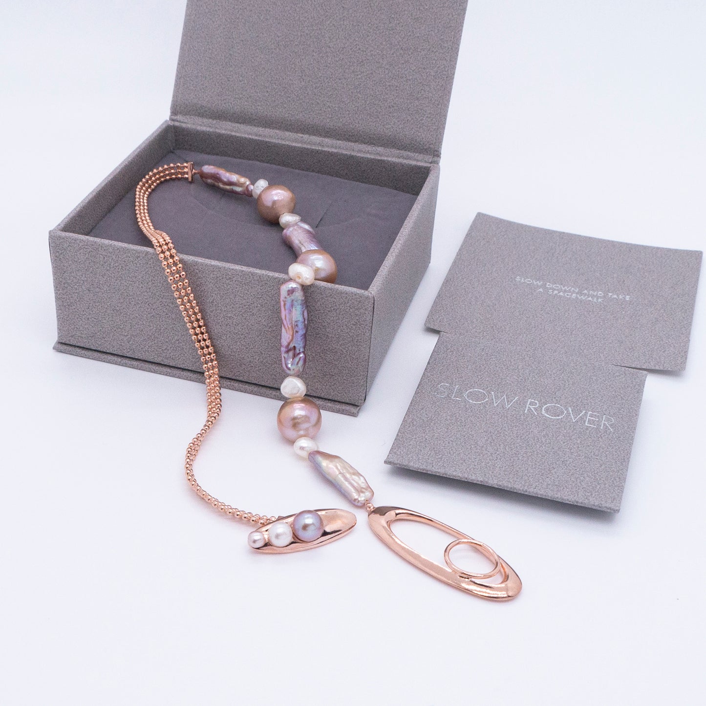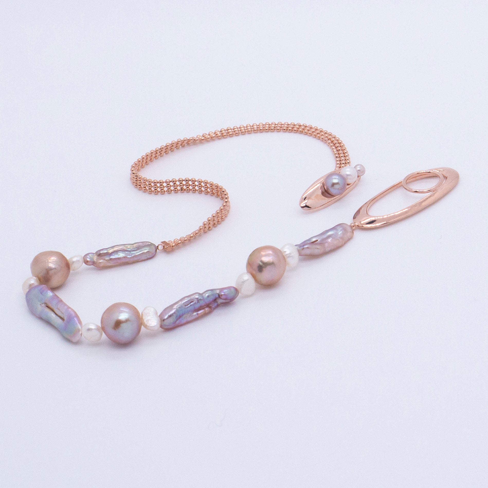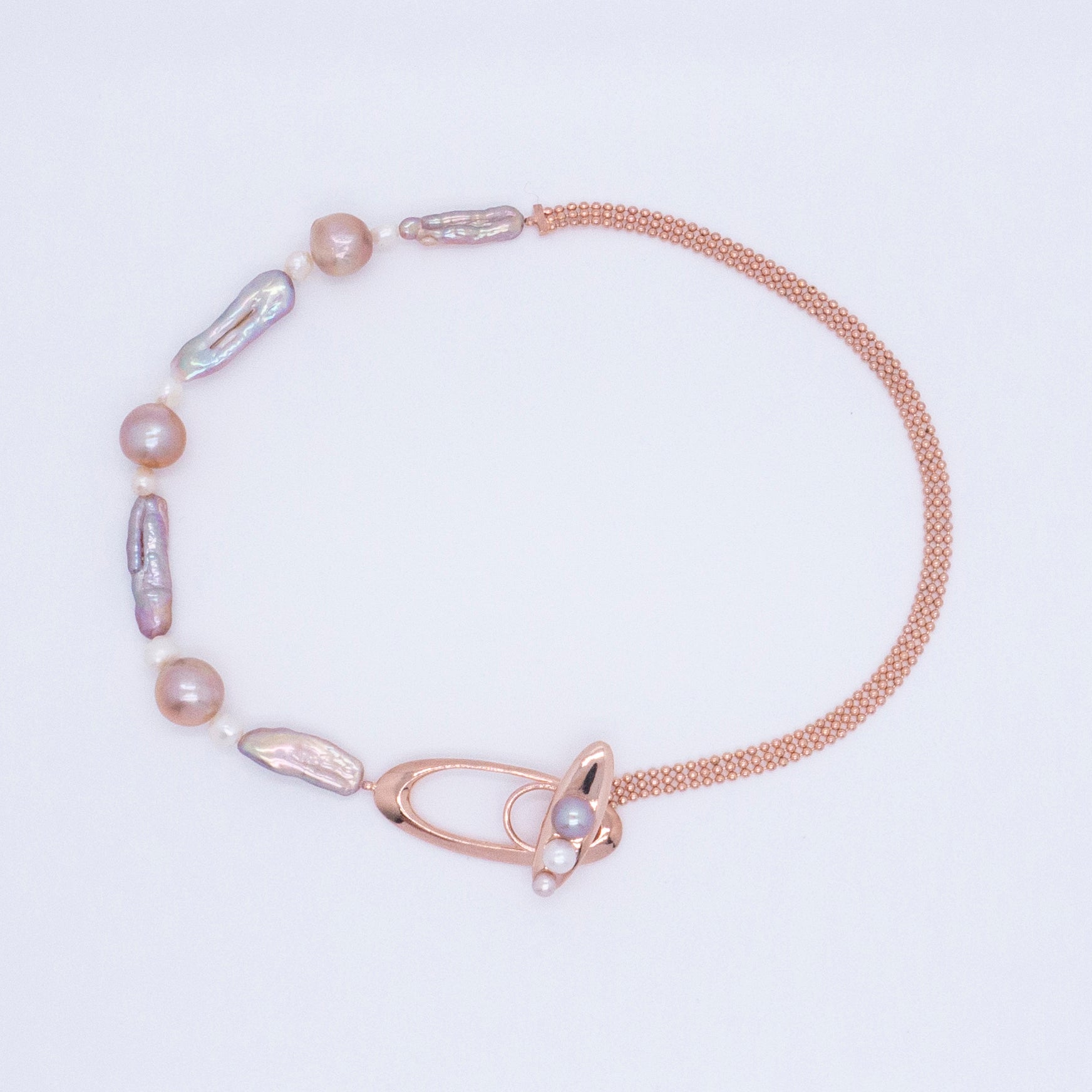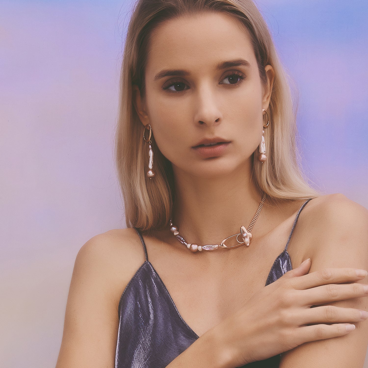多重宇宙系列 - 時空旅行薰衣草色巴洛克珍珠短鍊 - 厚鍍玫瑰金