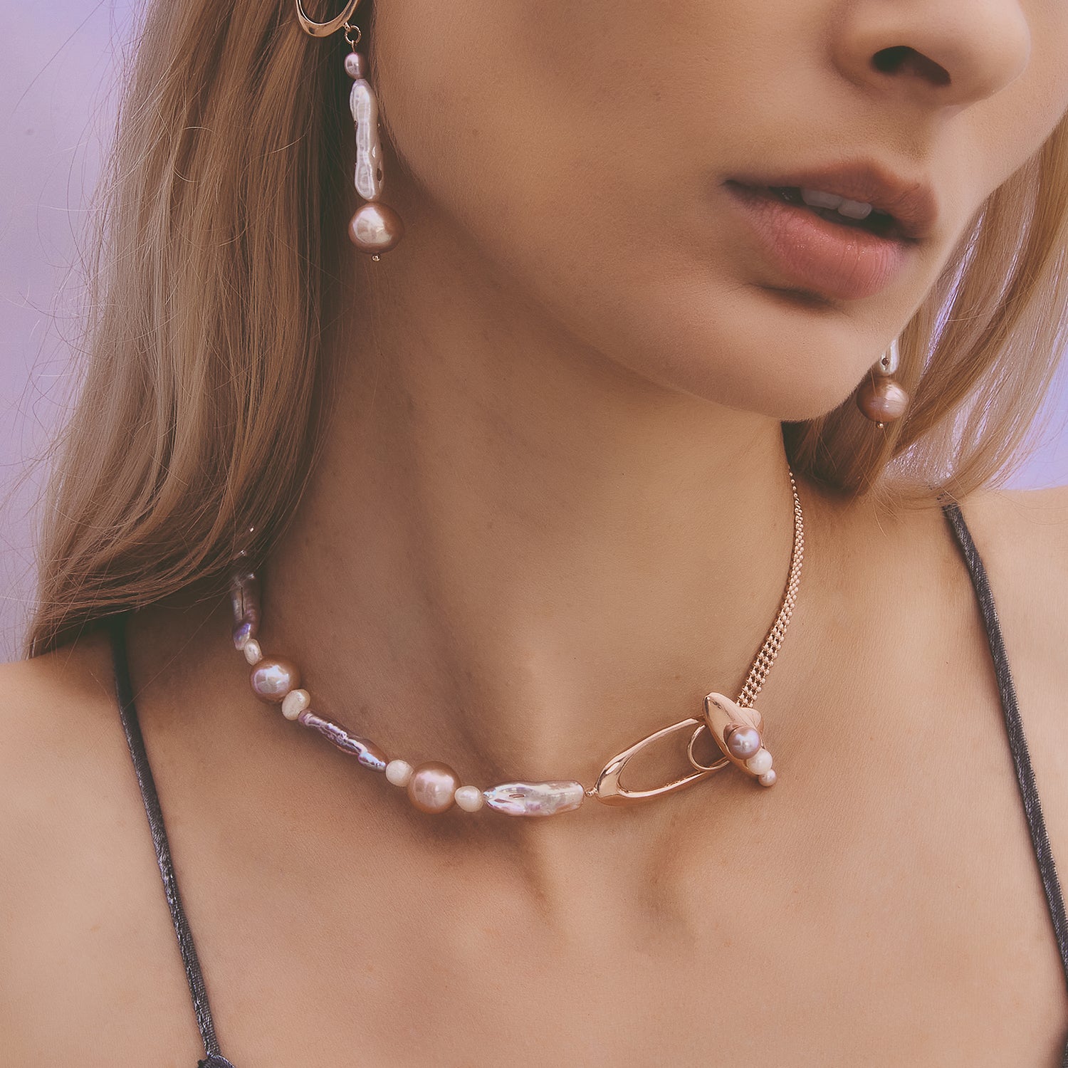 多重宇宙 時空旅行薰衣草色巴洛克珍珠短鍊-厚鍍玫瑰金