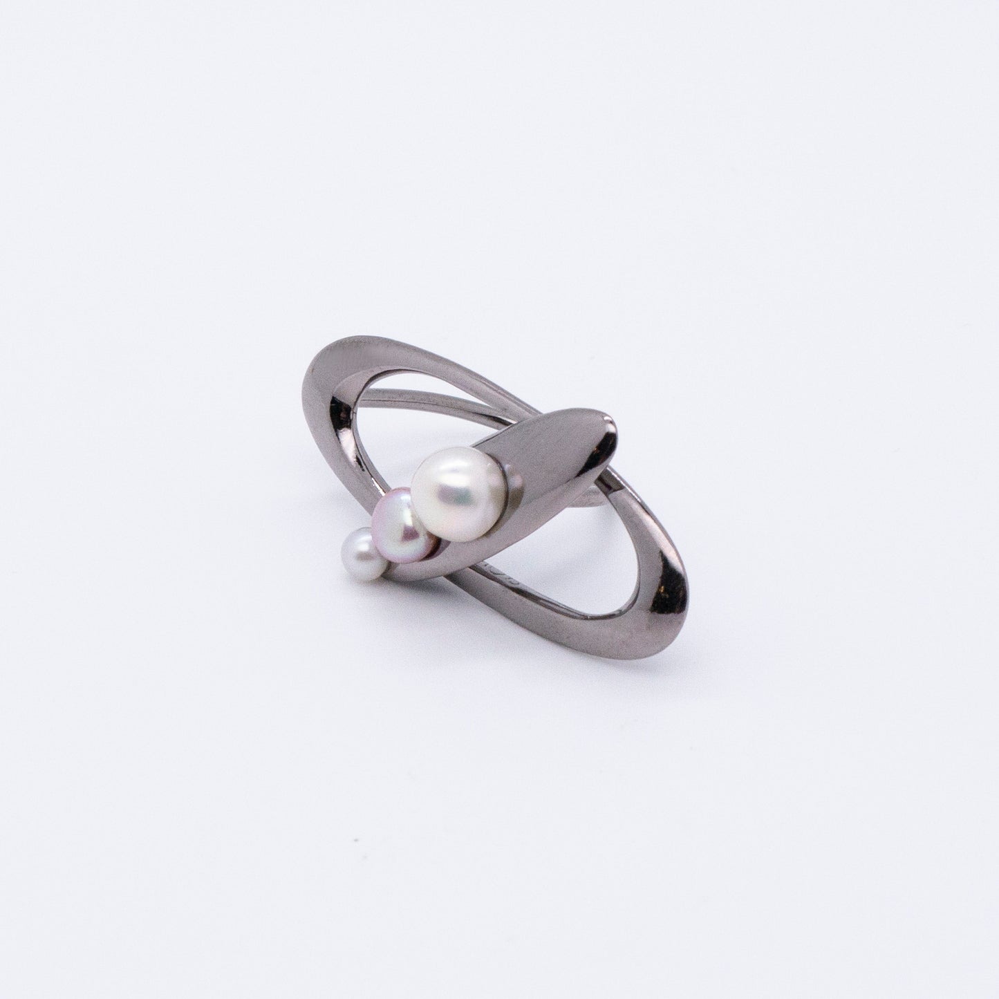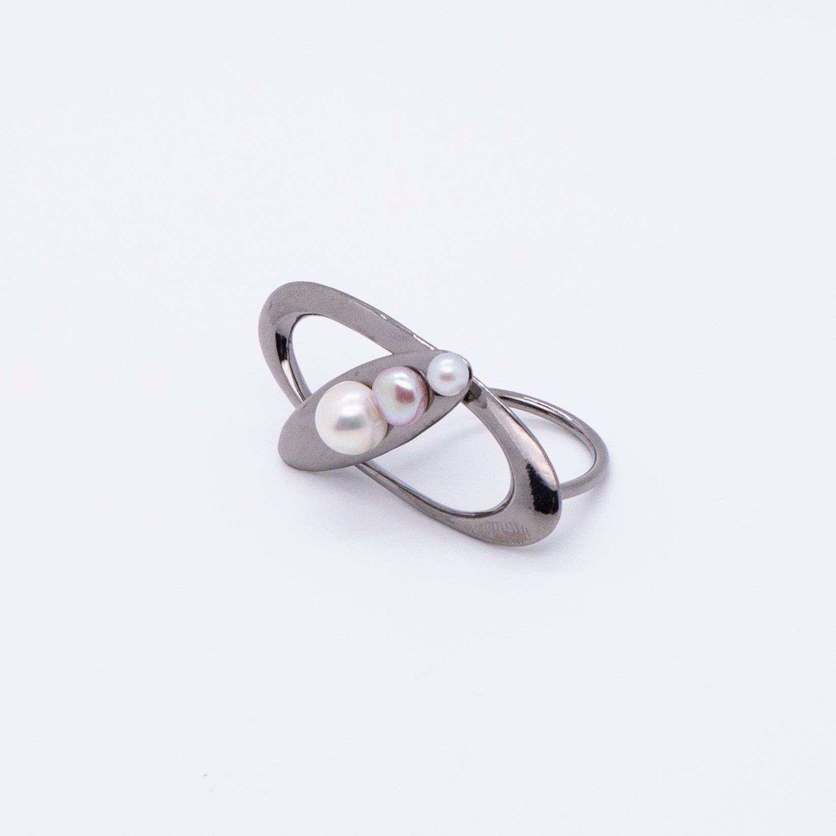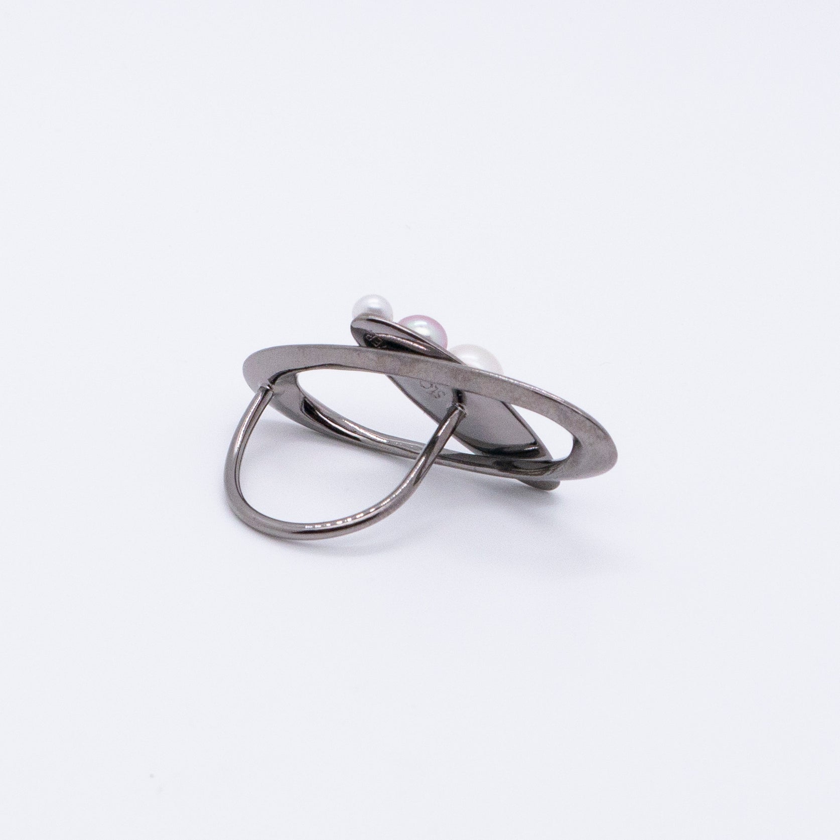 多重宇宙系列 - 時空旅行漸變珍珠戒指 - 厚鍍黑金