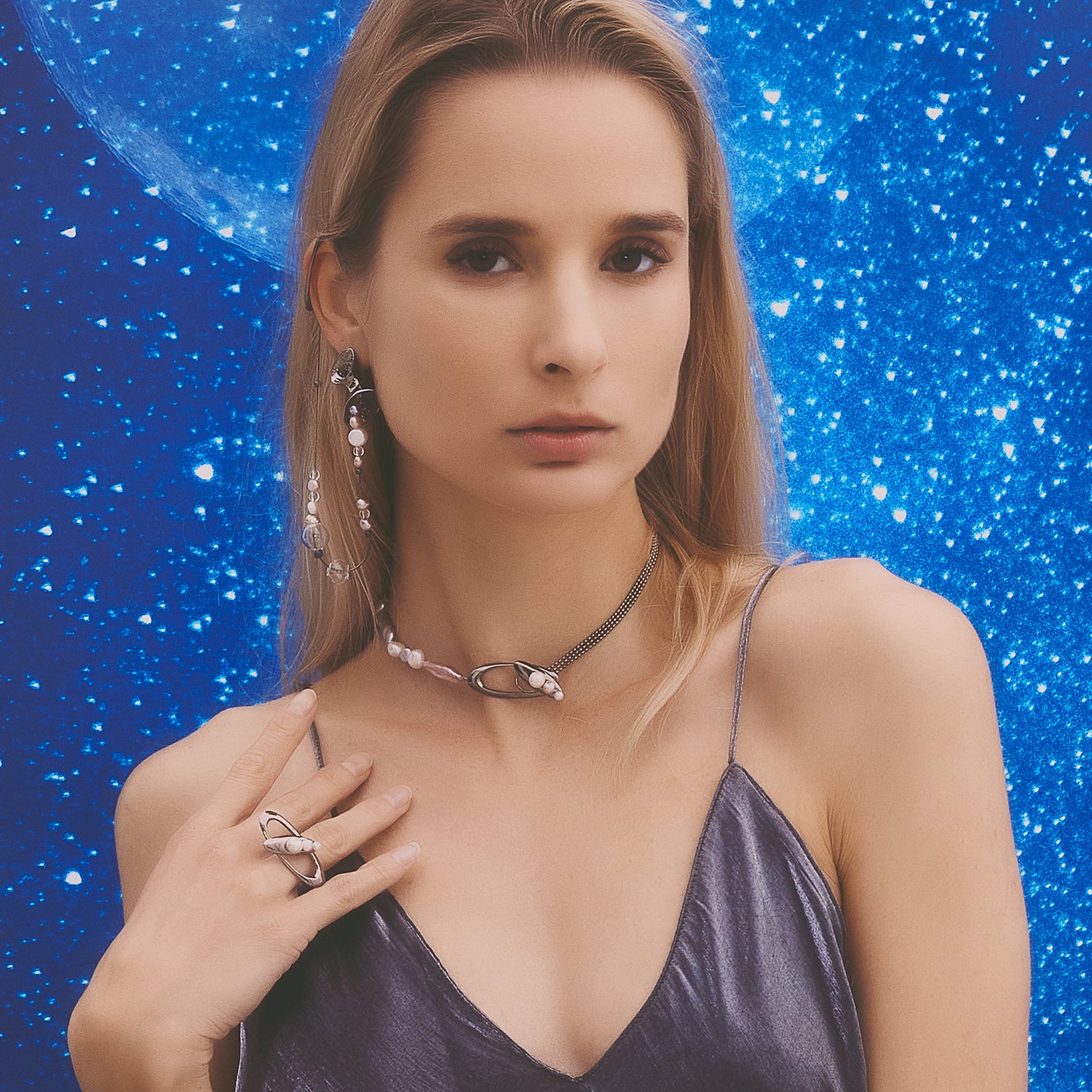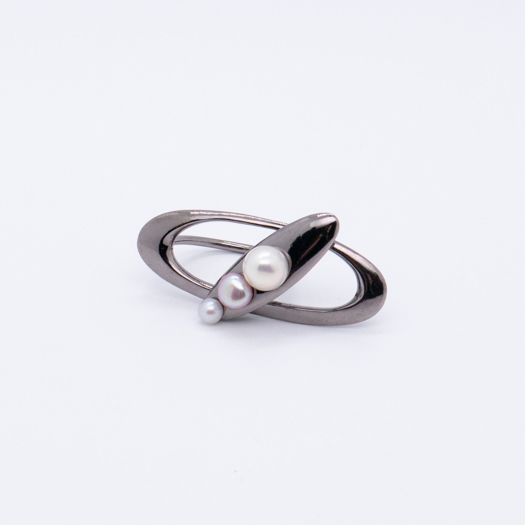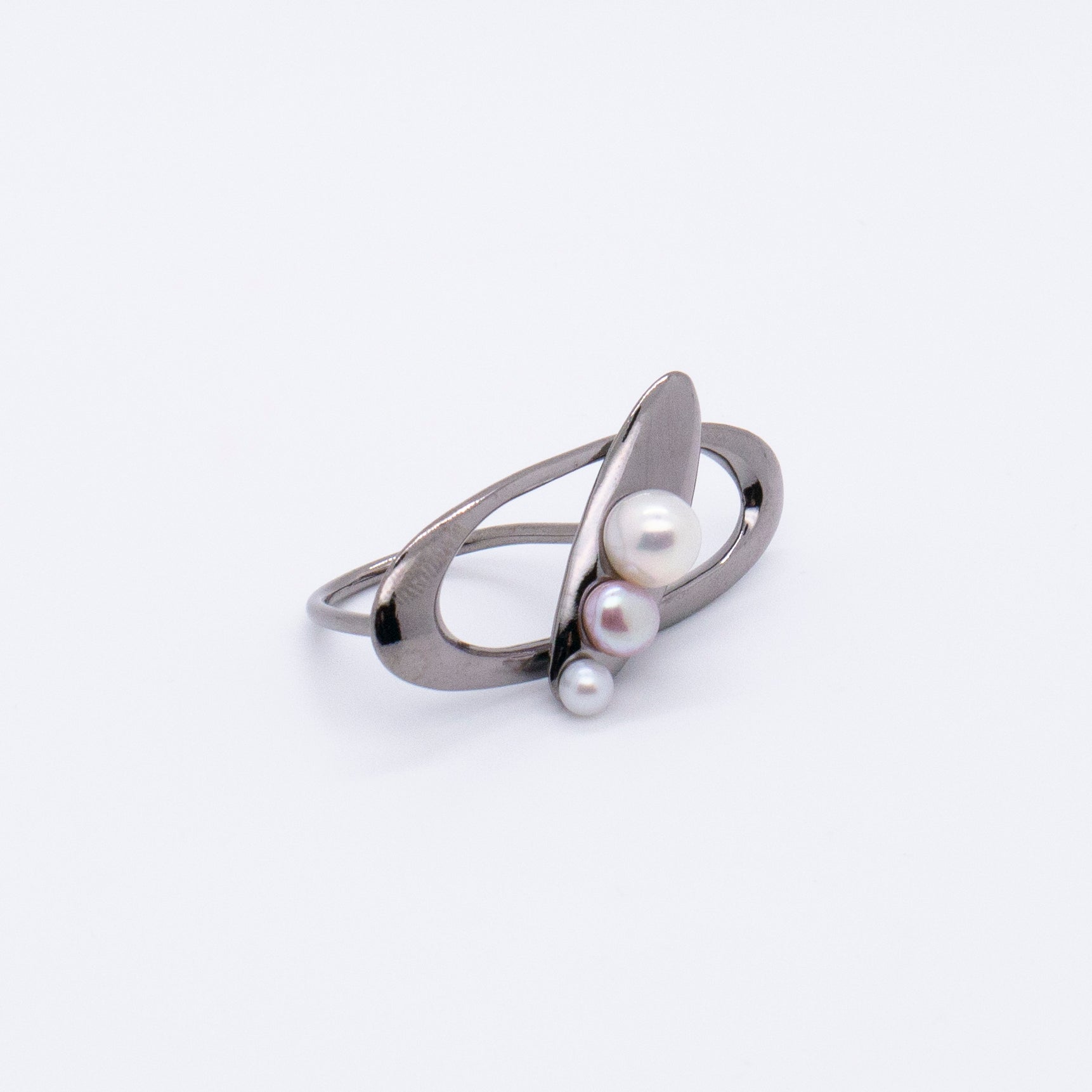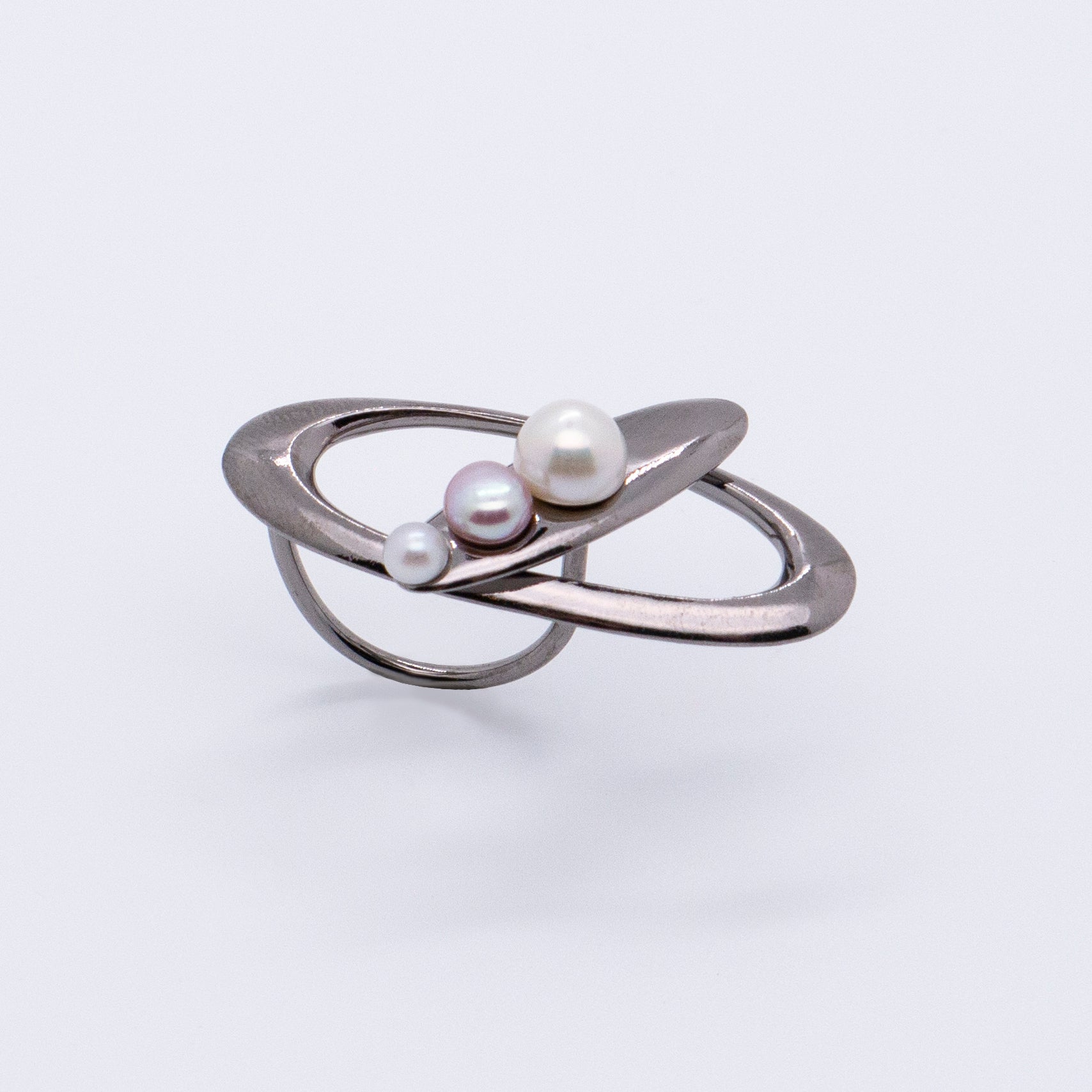 多重宇宙系列 - 時空旅行漸變珍珠戒指 - 厚鍍黑金