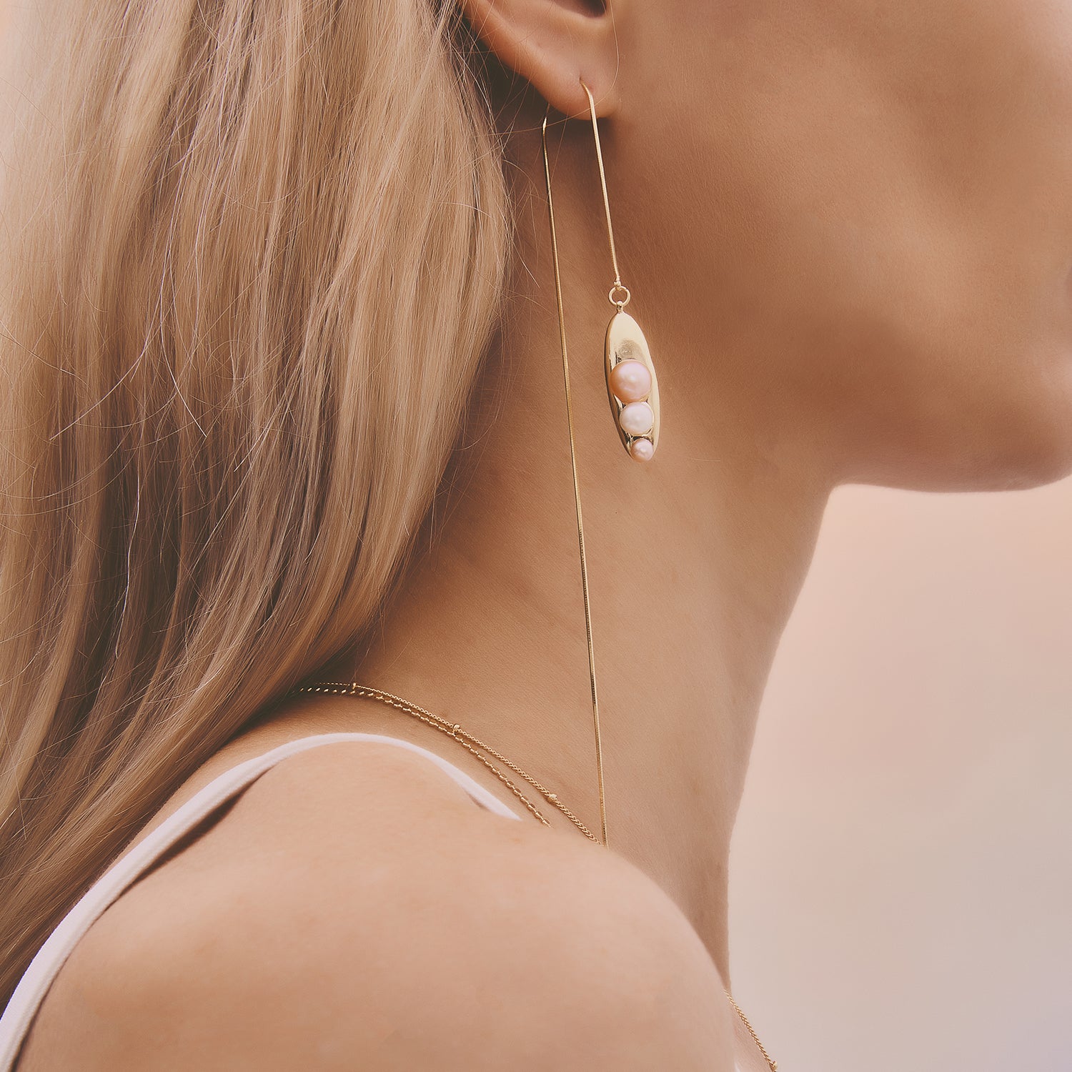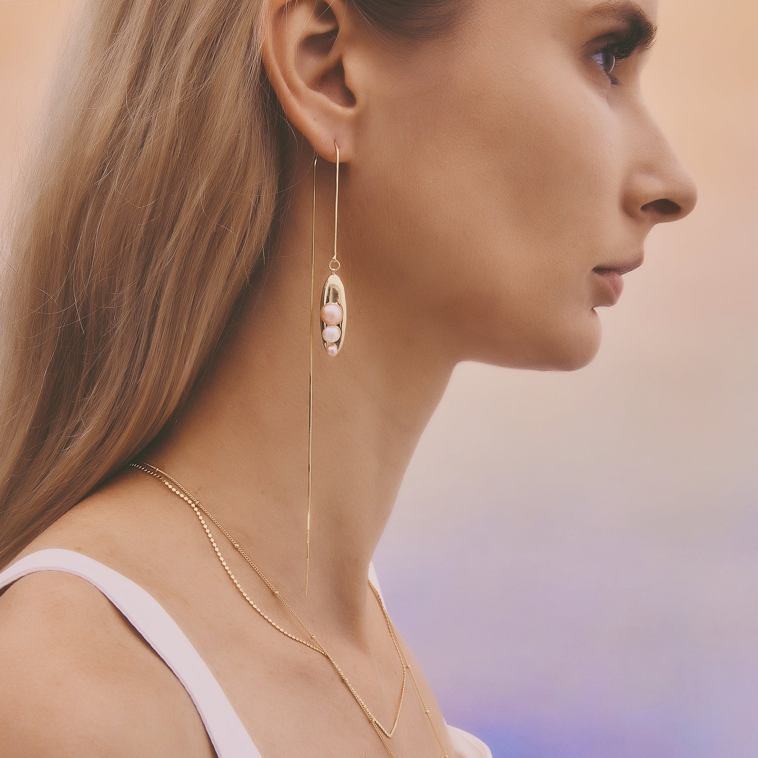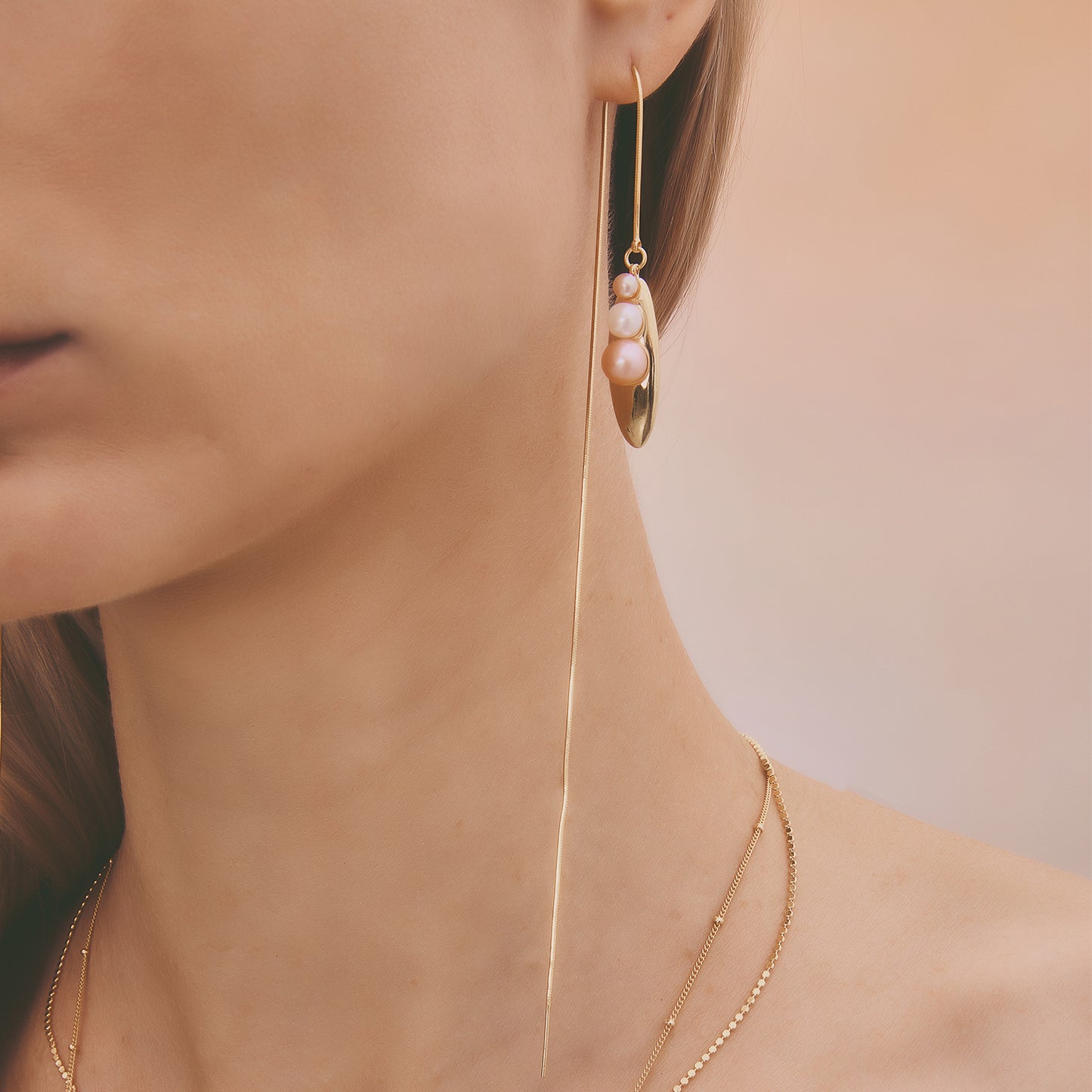 多重宇宙系列 - 時空旅行珍珠長耳線 - 厚鍍18K金